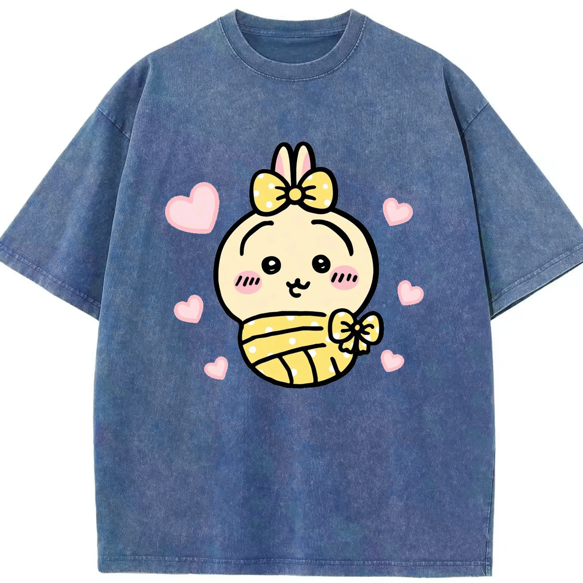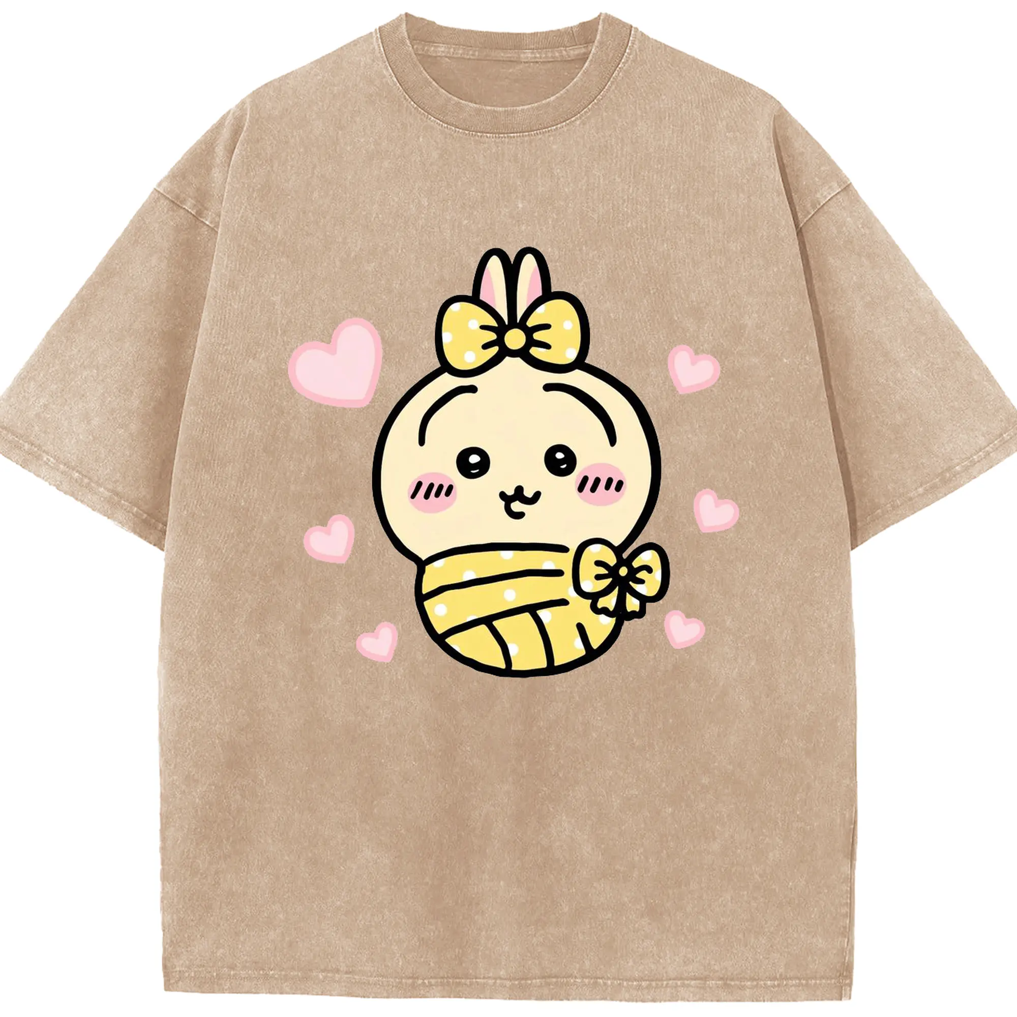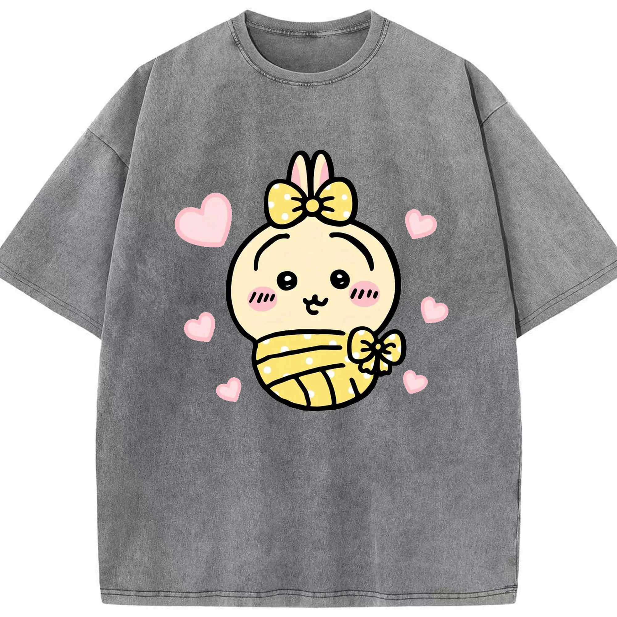 ちい が わ グッズ うさぎ - 綿100% ヴィンテージ風 半袖Tシャツ ・ 背面プリント ・ 柔らか肌触り ・ 通気性 快適 ・ スポーツ カジュアル 外出用