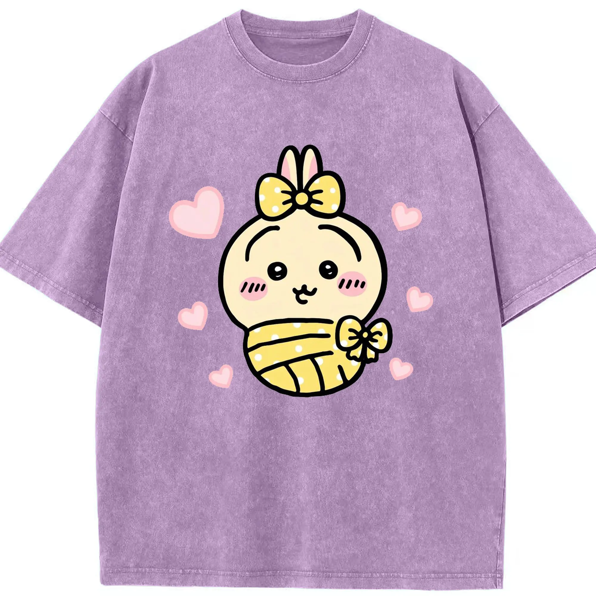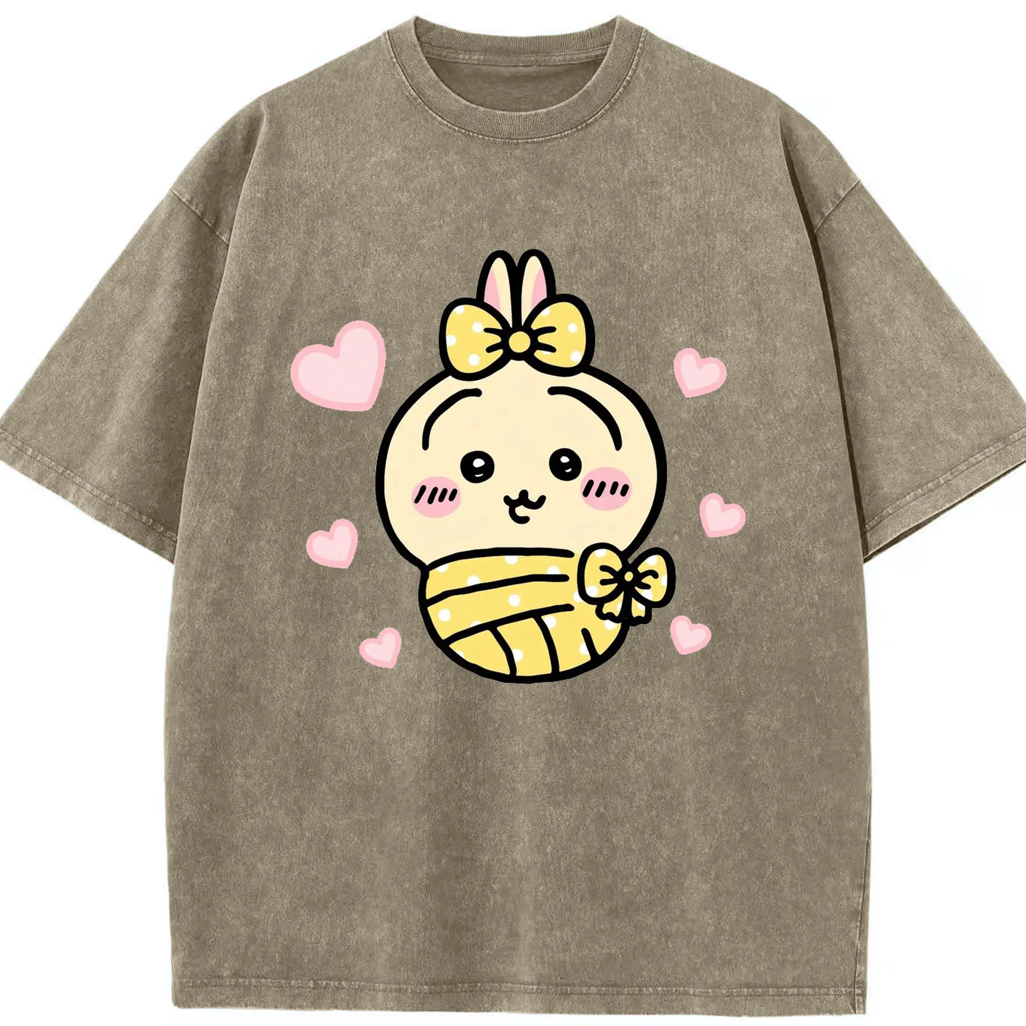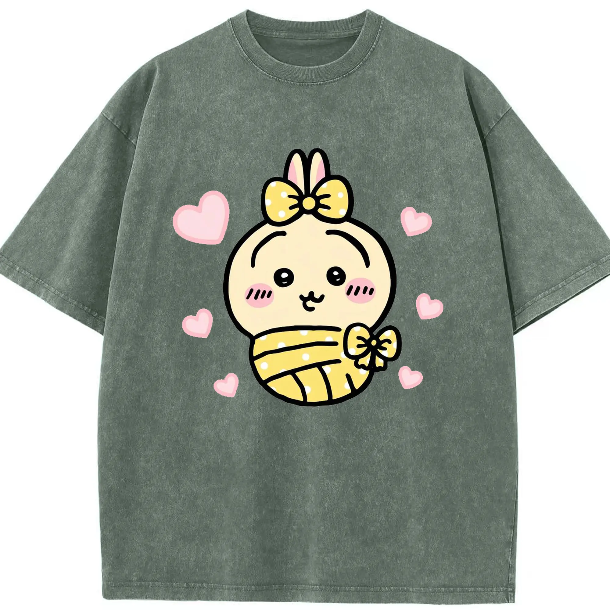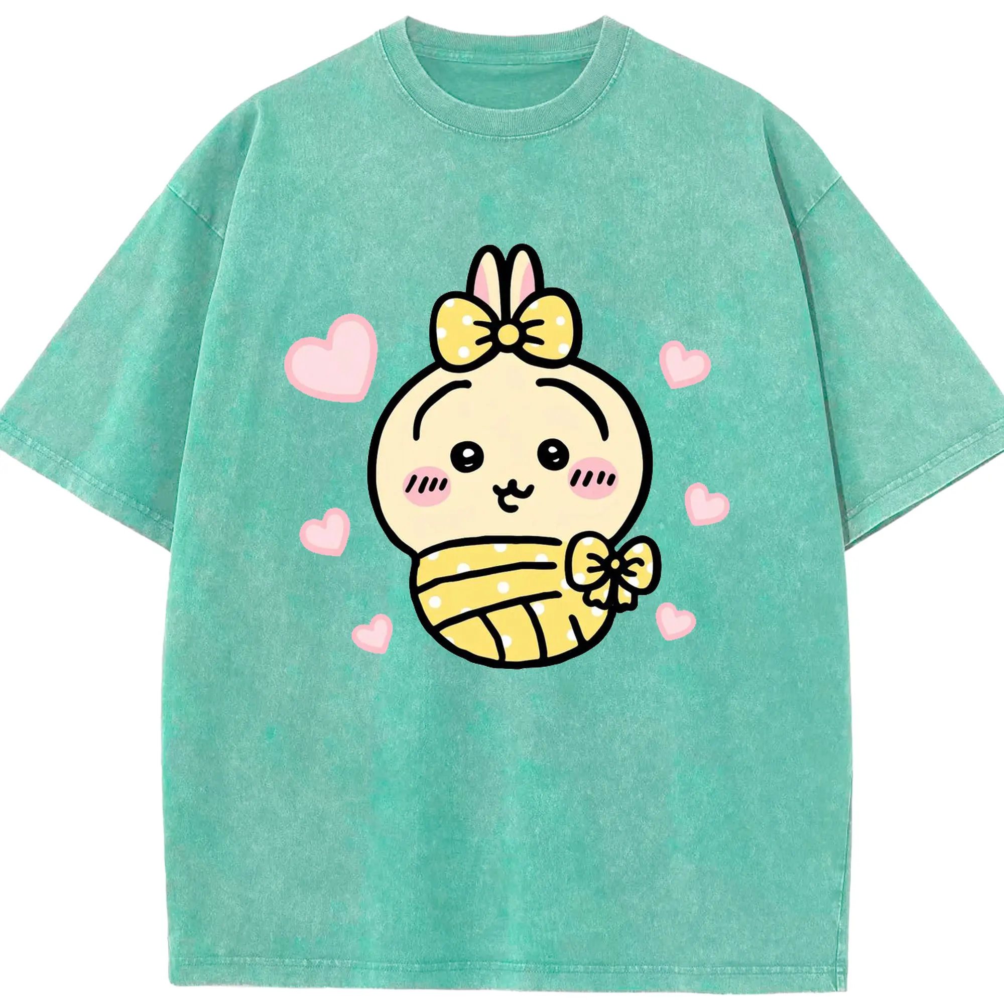 ちい が わ グッズ うさぎ - 綿100% ヴィンテージ風 半袖Tシャツ ・ 背面プリント ・ 柔らか肌触り ・ 通気性 快適 ・ スポーツ カジュアル 外出用