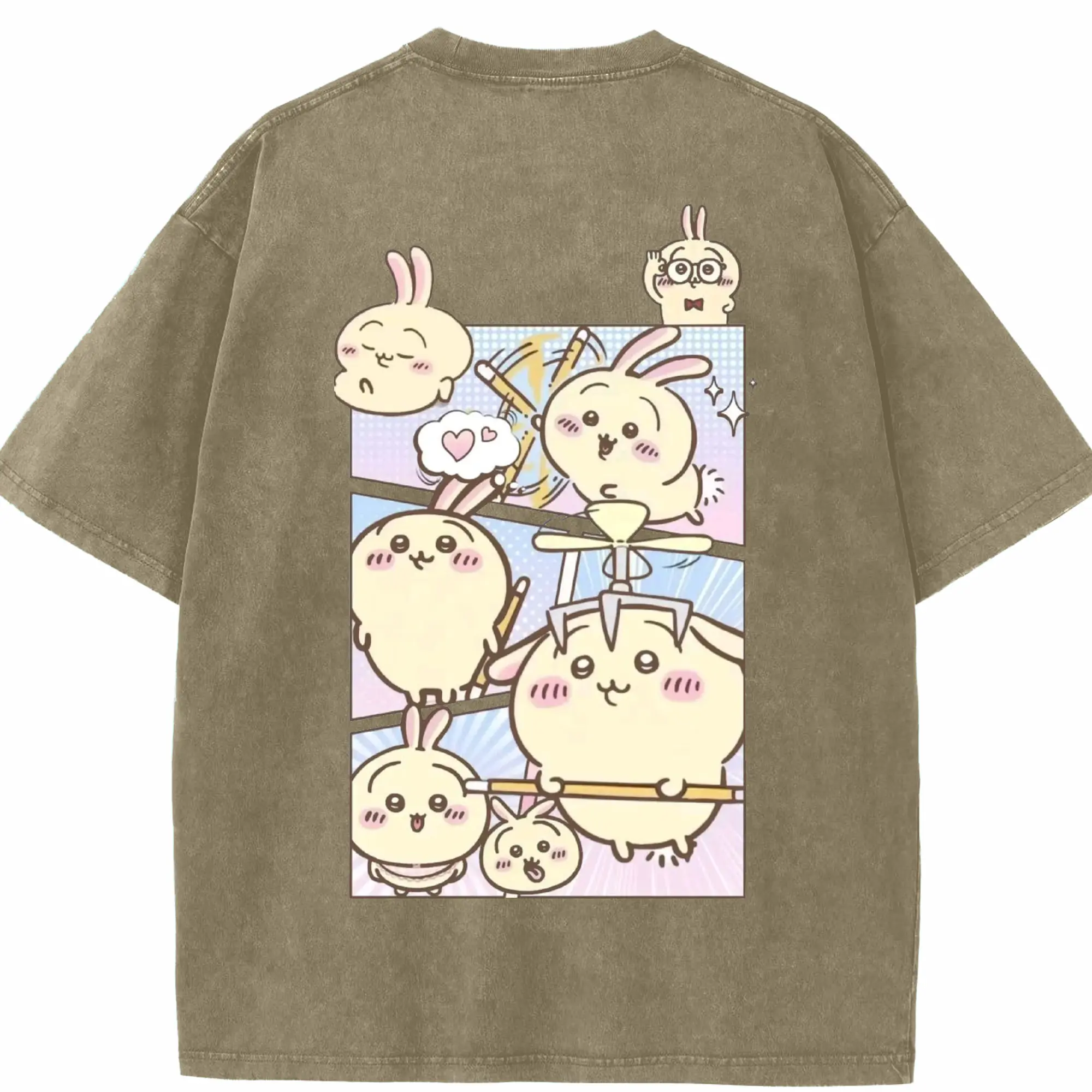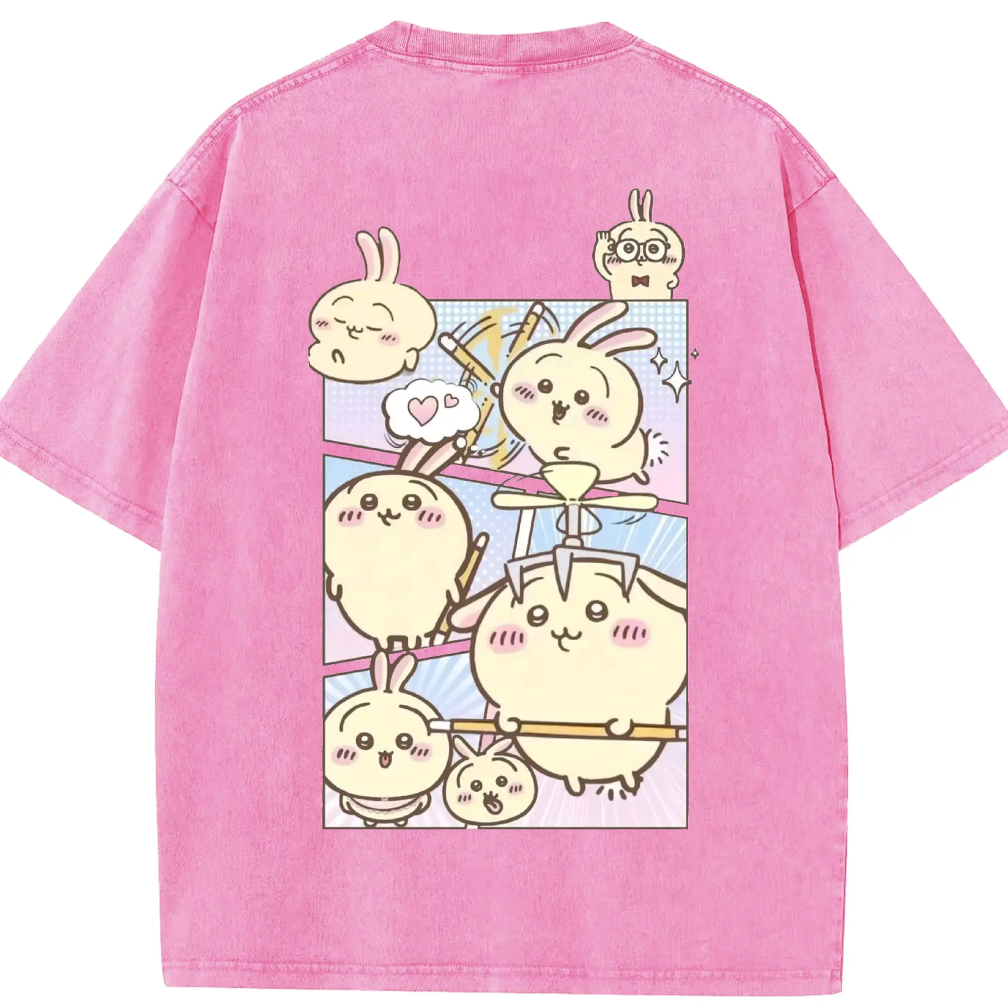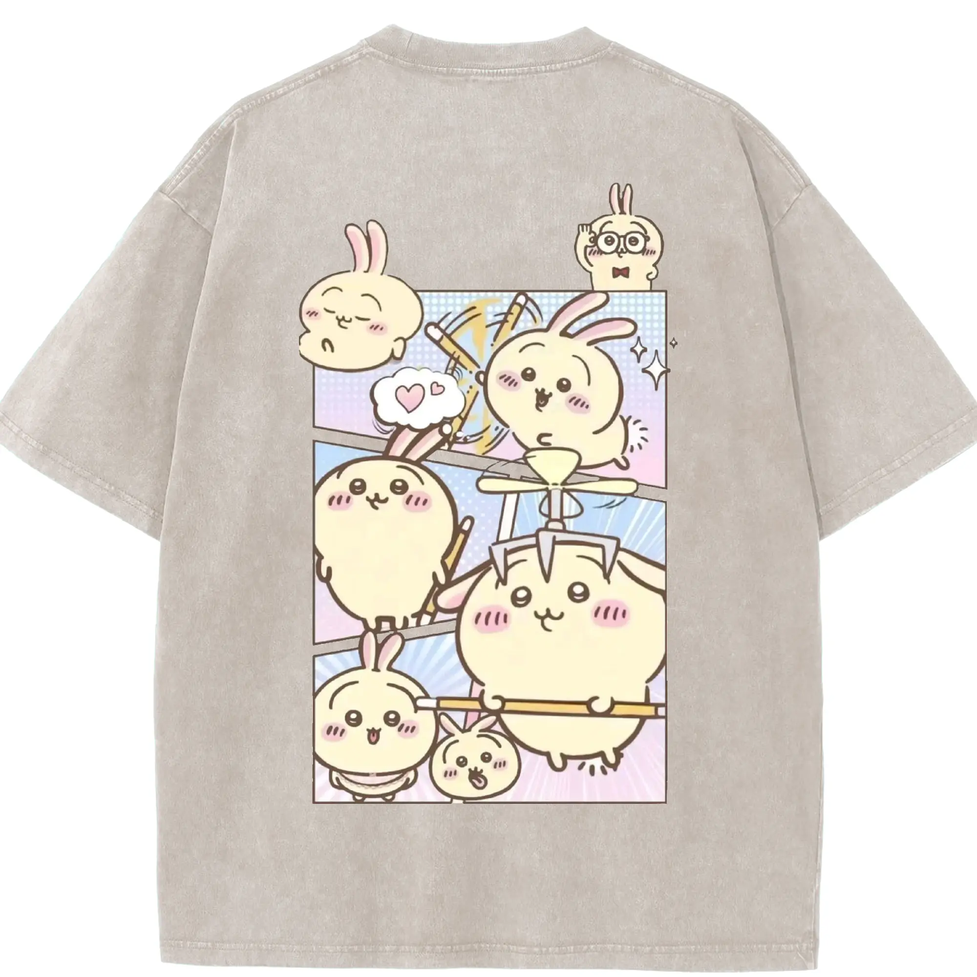 ちい が わ グッズ うさぎ - 綿100% ヴィンテージ風 半袖Tシャツ ・ フロントプリント ・ 柔らか肌触り ・ 通気性 快適 ・ スポーツ カジュアル 外出用
