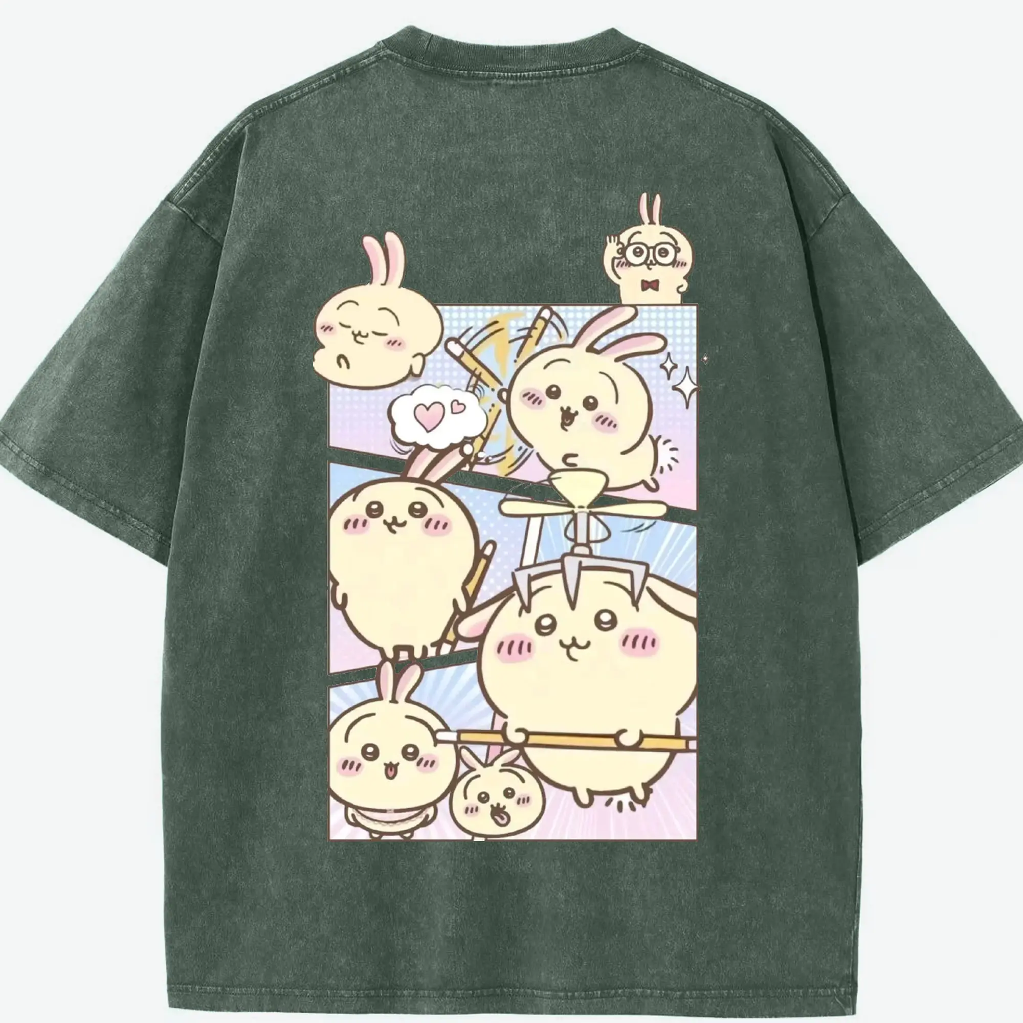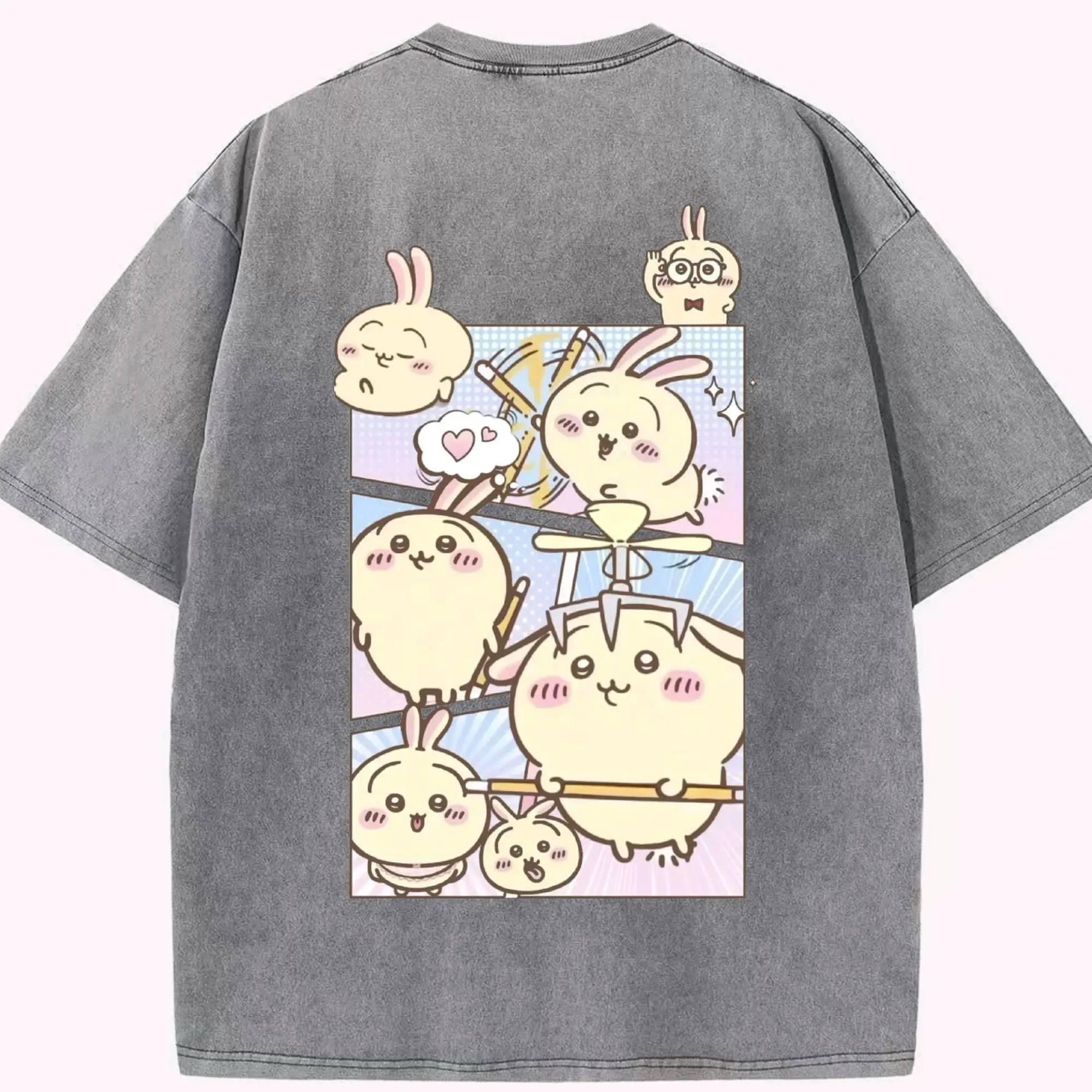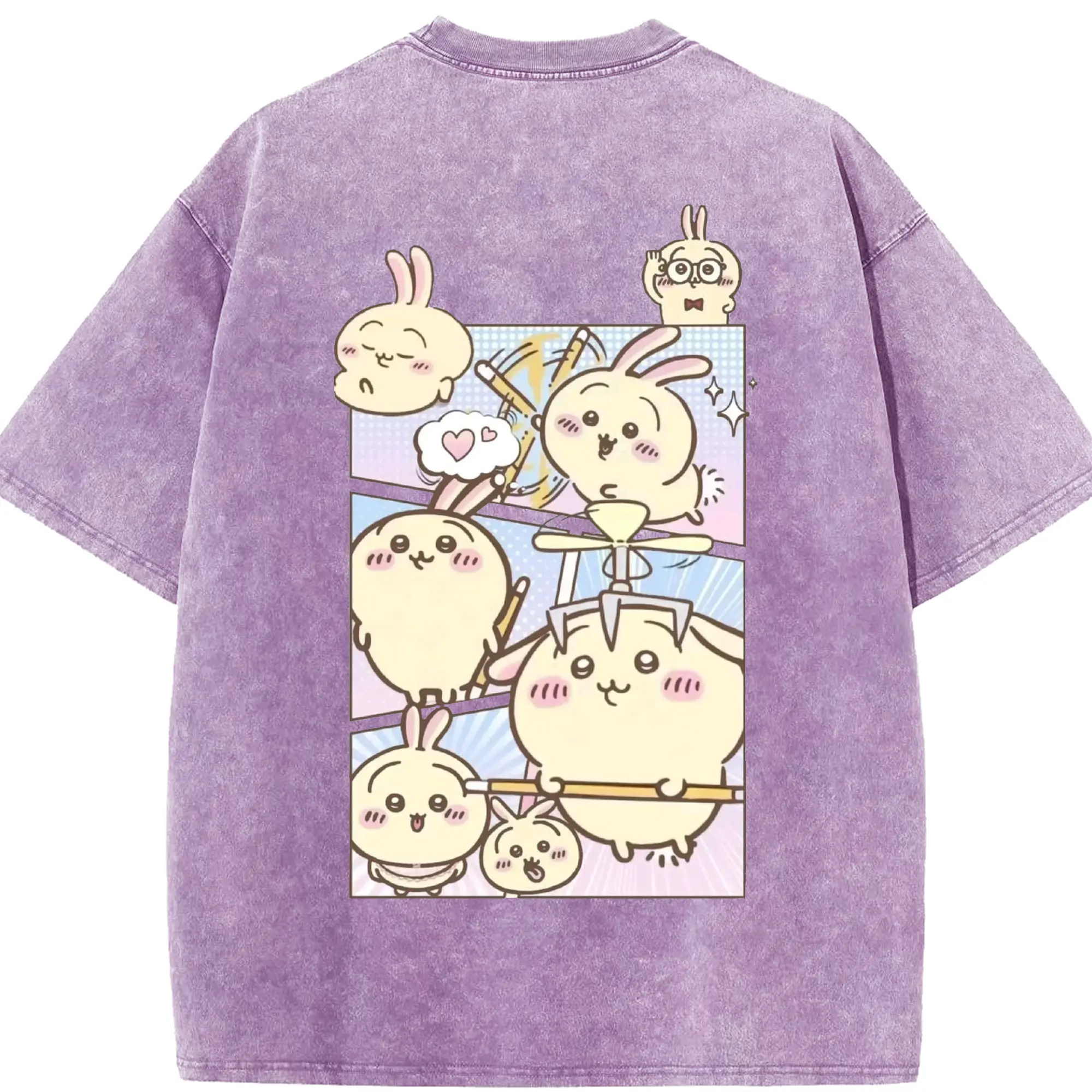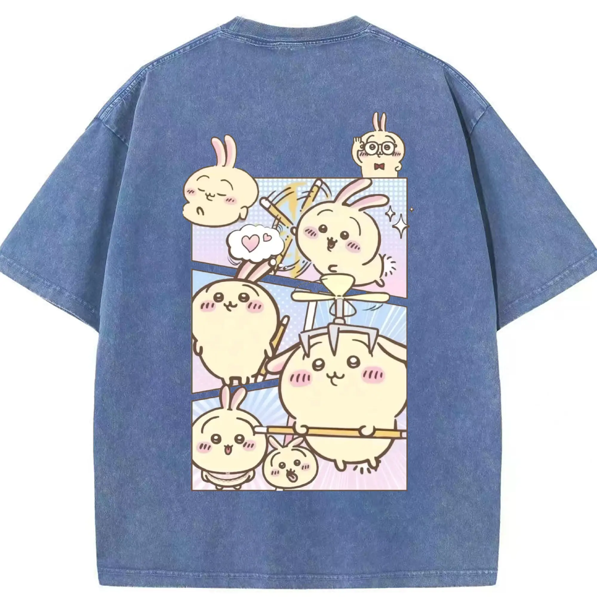 ちい が わ グッズ うさぎ - 綿100% ヴィンテージ風 半袖Tシャツ ・ フロントプリント ・ 柔らか肌触り ・ 通気性 快適 ・ スポーツ カジュアル 外出用