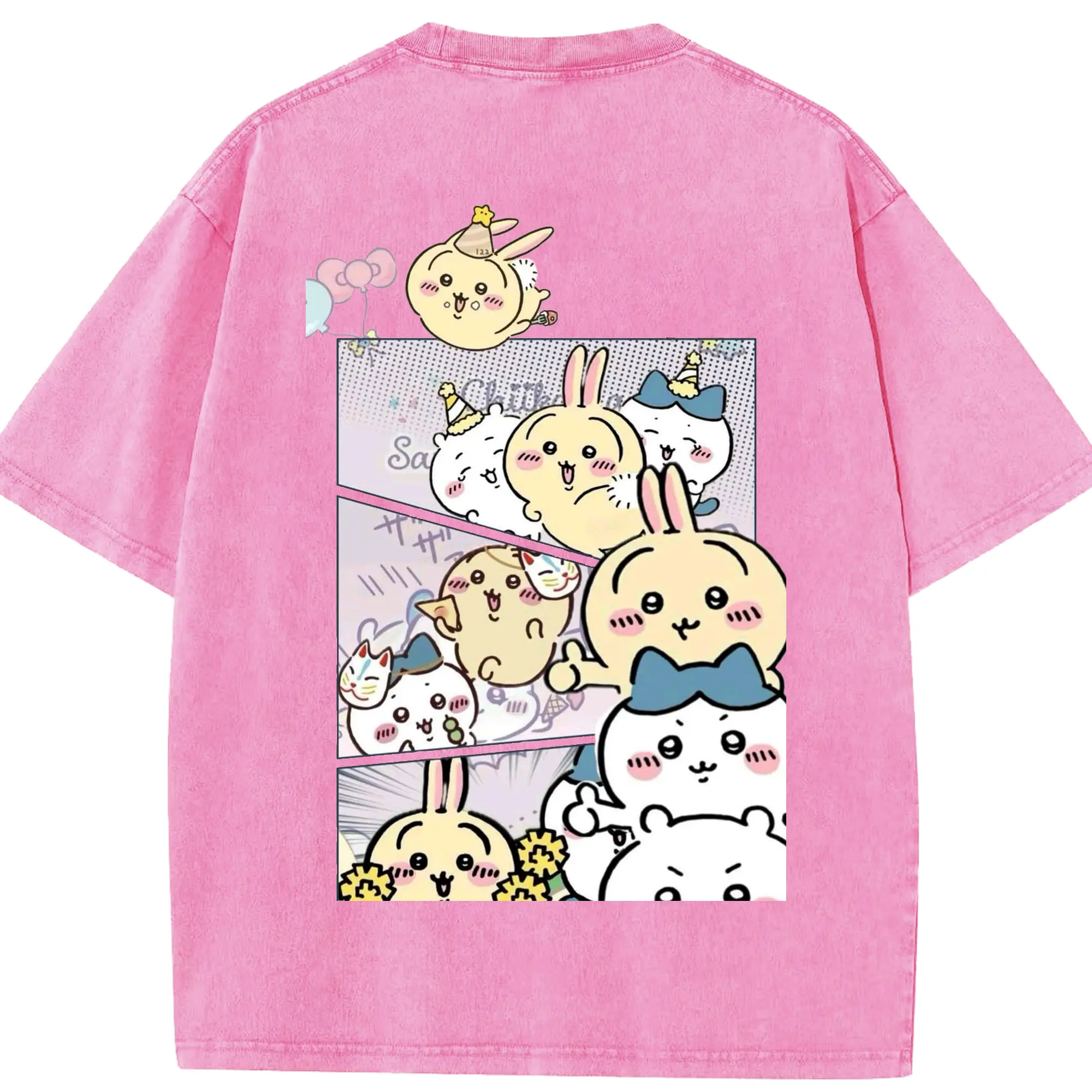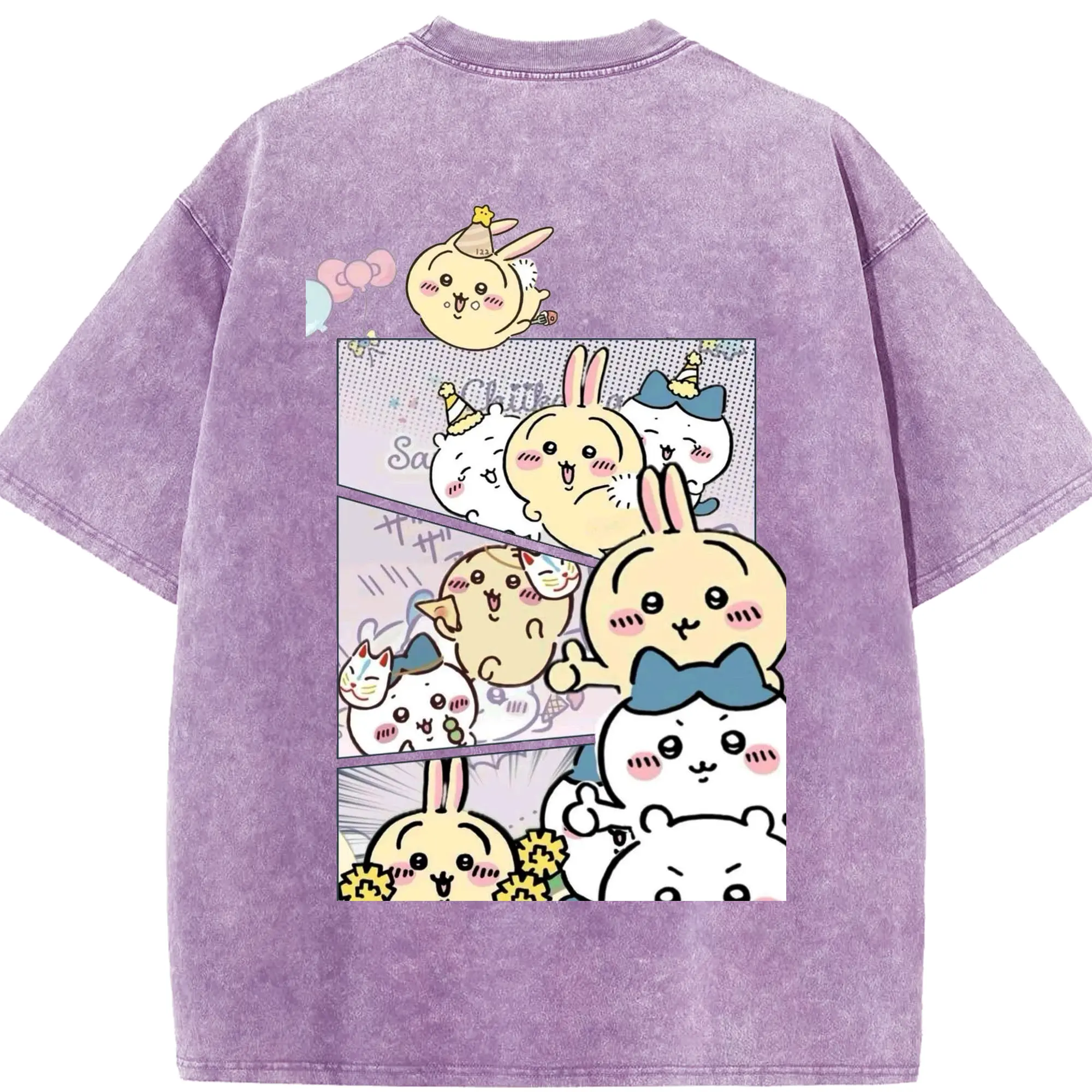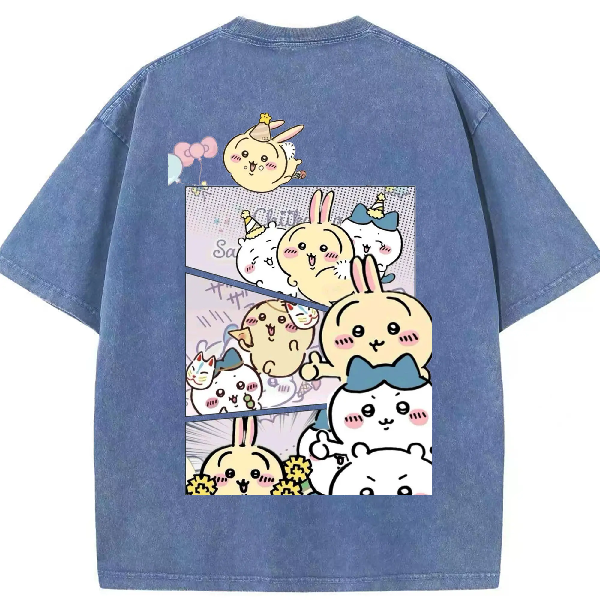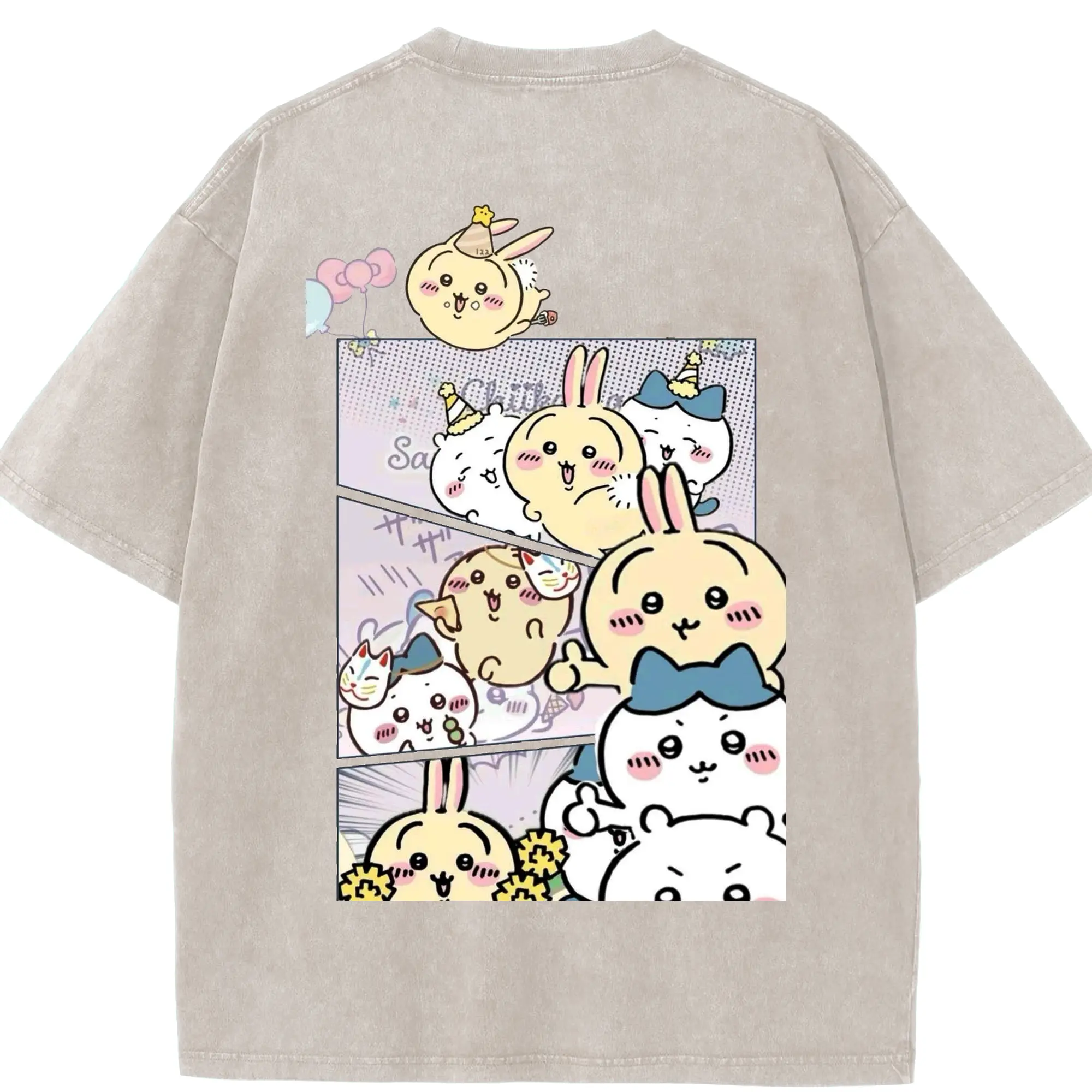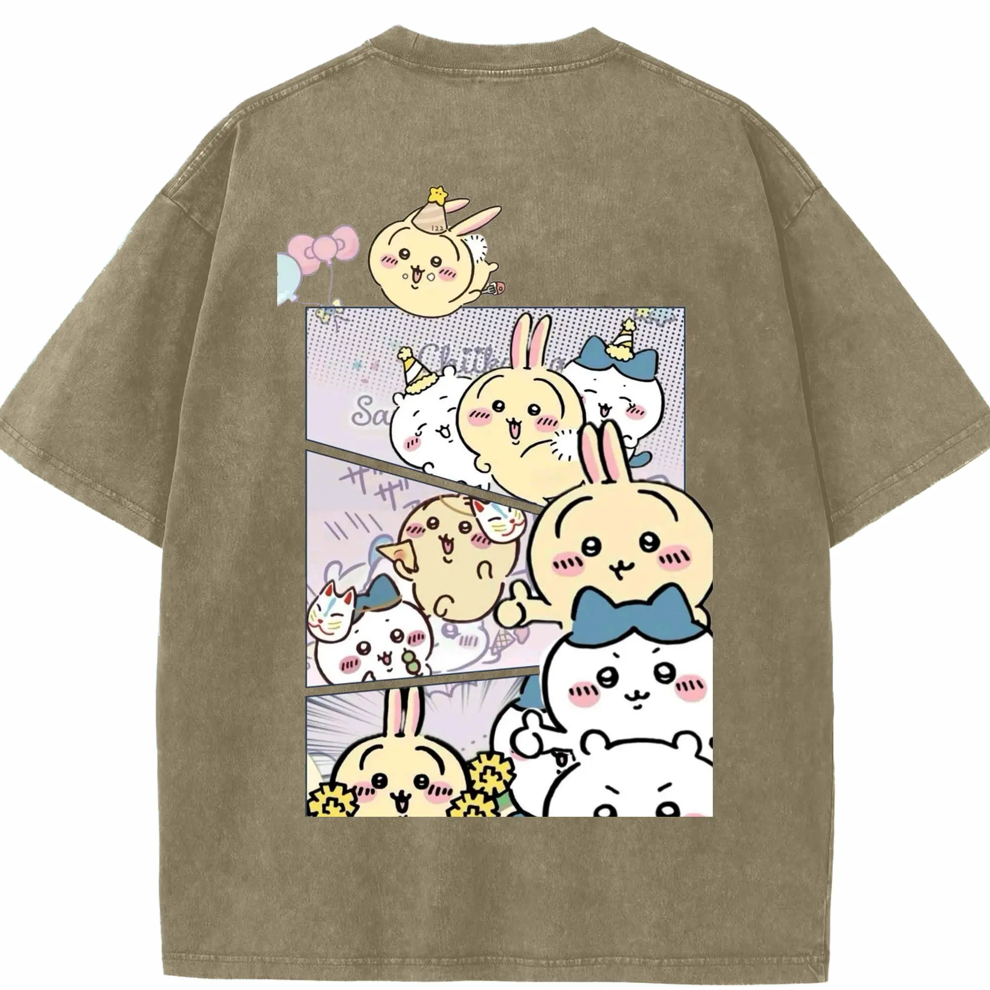 ちい が わ グッズ うさぎ - 綿100% ヴィンテージ風 半袖Tシャツ ・ フロントプリント ・ 柔らか肌触り ・ 通気性 快適 ・ スポーツ カジュアル 外出用