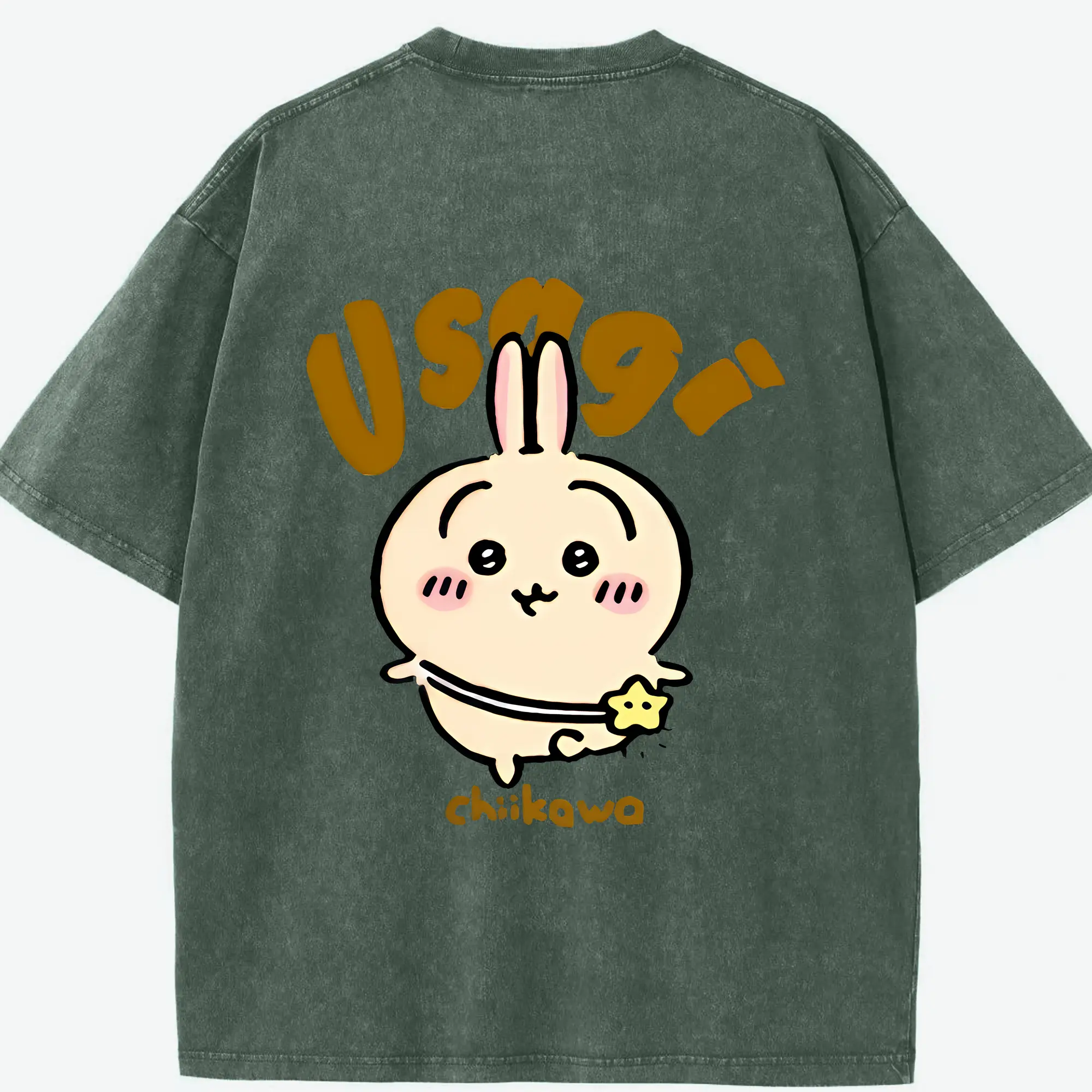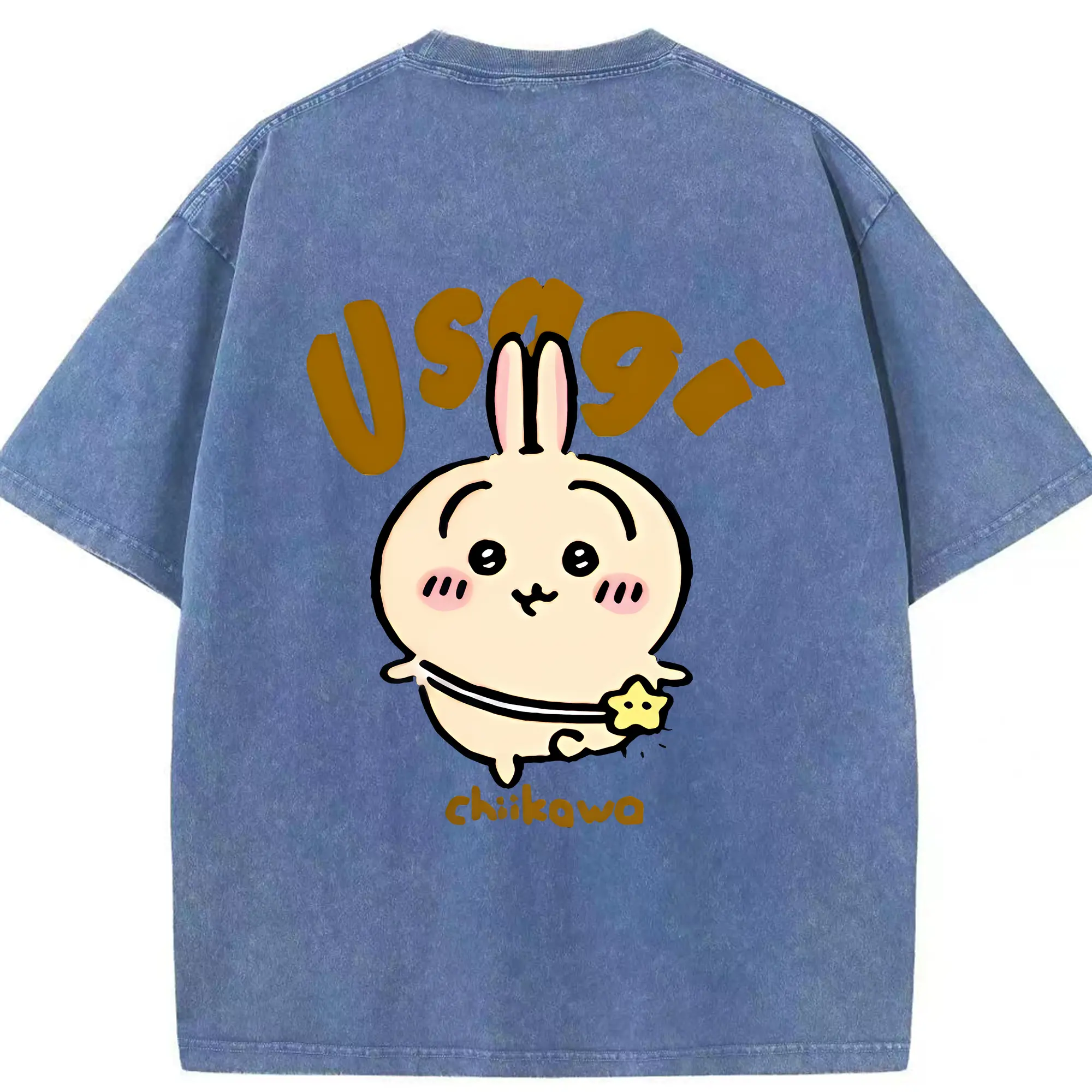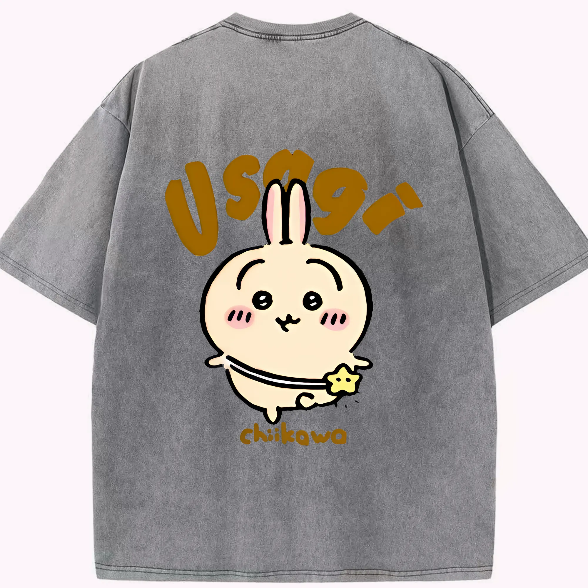 ちい が わ グッズ うさぎ - 綿100% ヴィンテージ風 半袖Tシャツ ・ フロントプリント ・ 柔らか肌触り ・ 通気性 快適 ・ スポーツ カジュアル 外出用