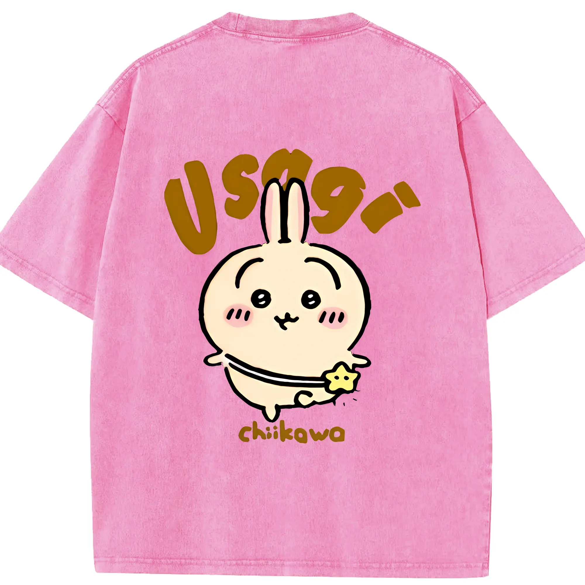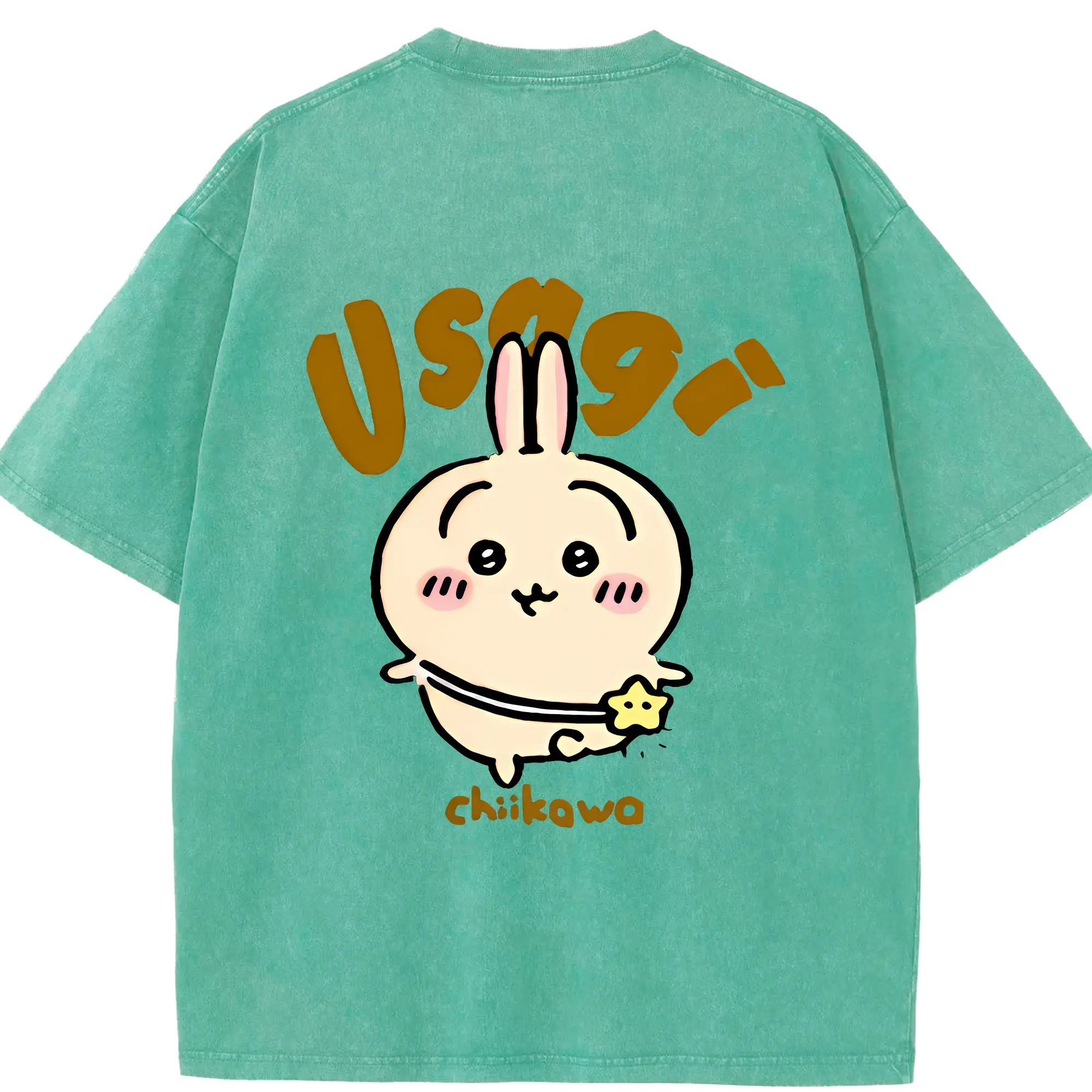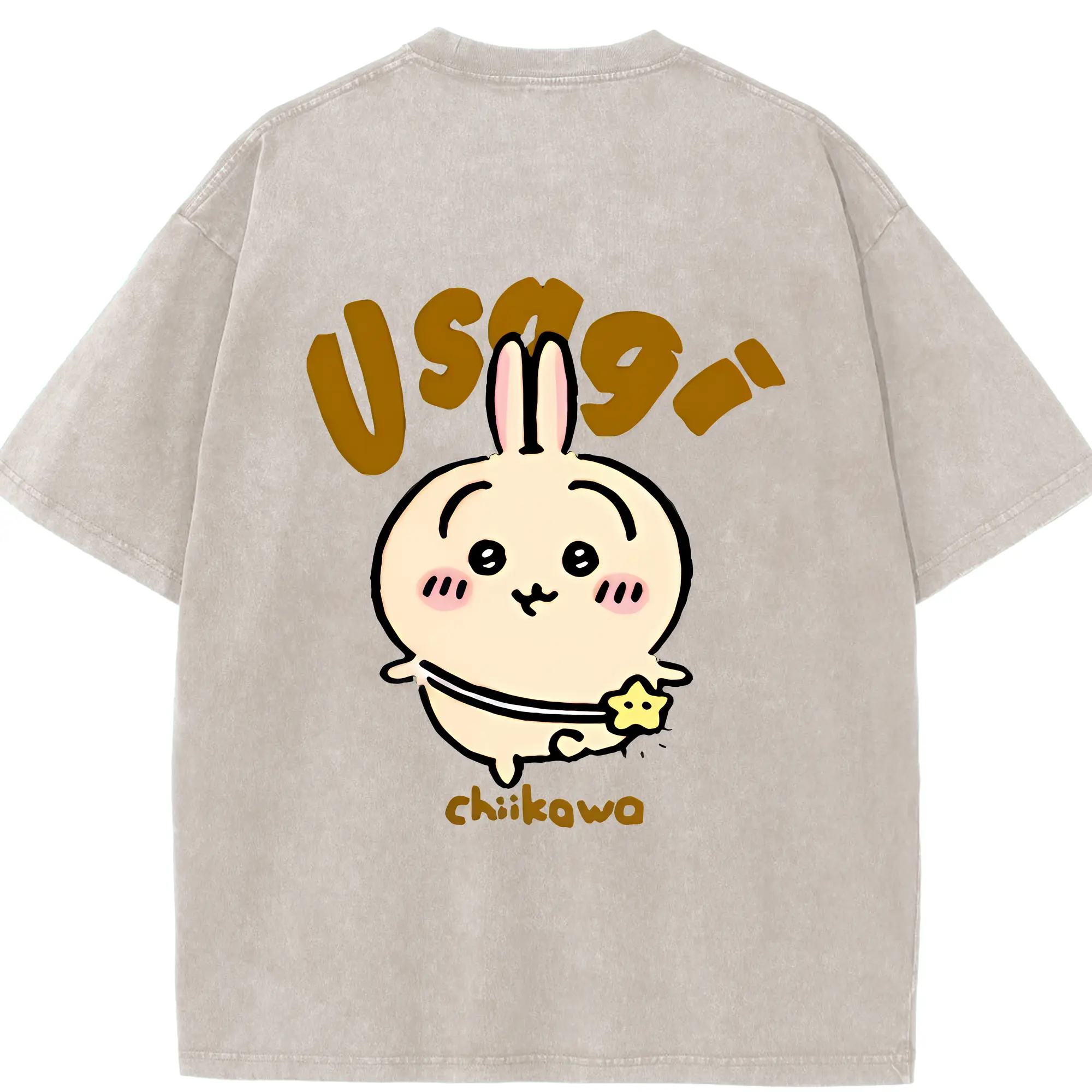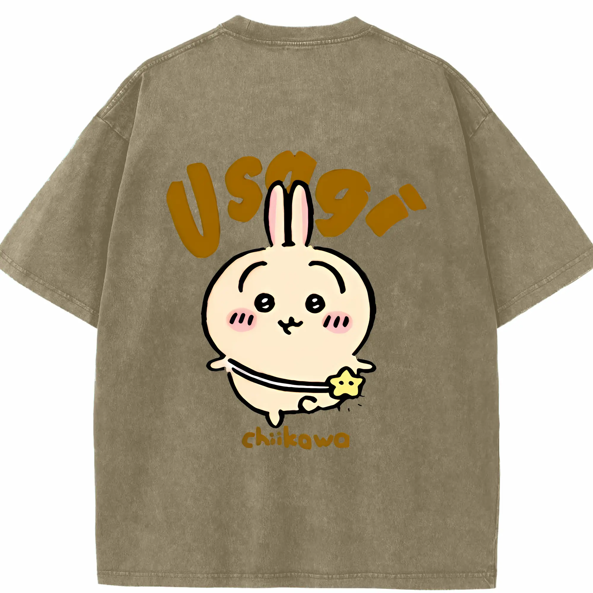 ちい が わ グッズ うさぎ - 綿100% ヴィンテージ風 半袖Tシャツ ・ フロントプリント ・ 柔らか肌触り ・ 通気性 快適 ・ スポーツ カジュアル 外出用