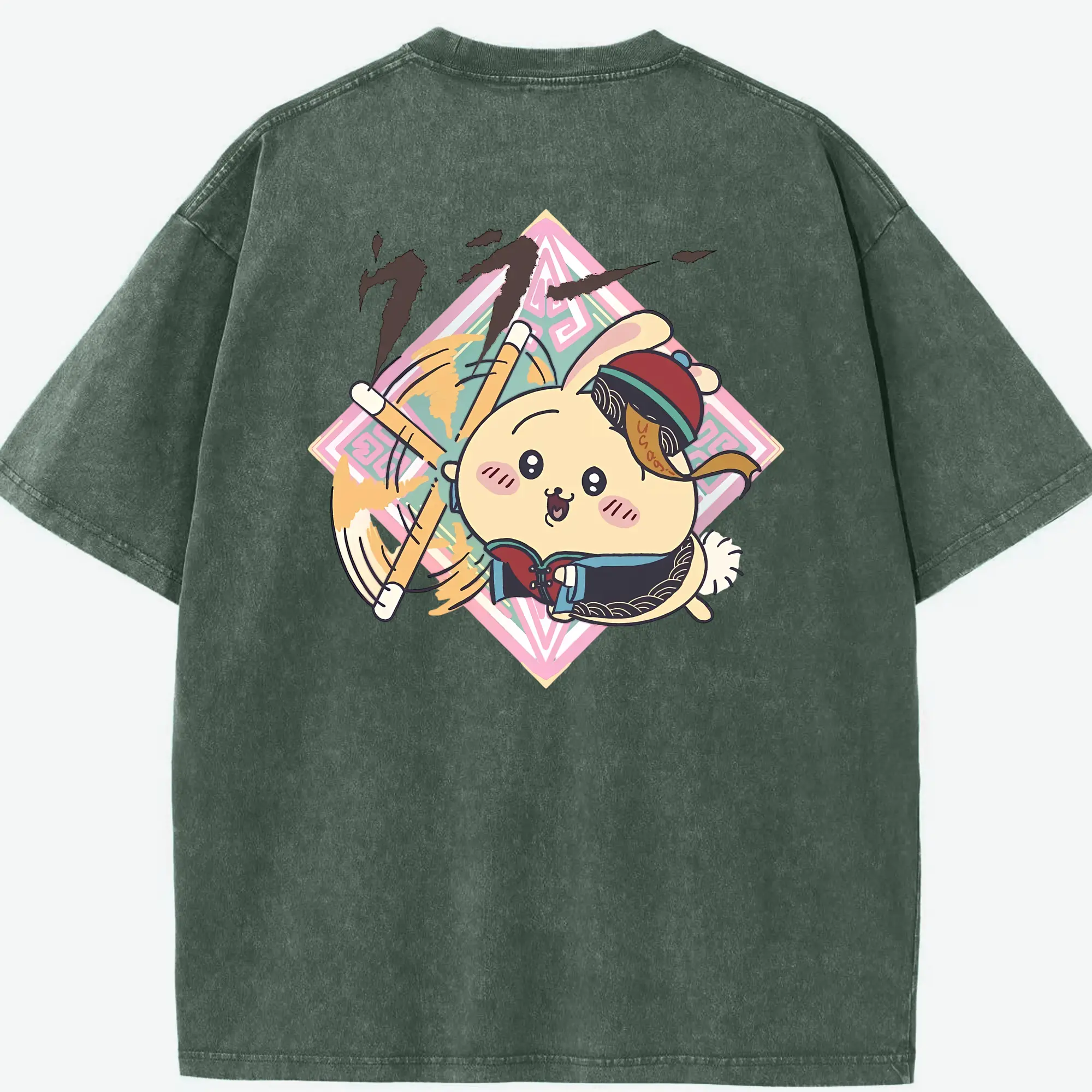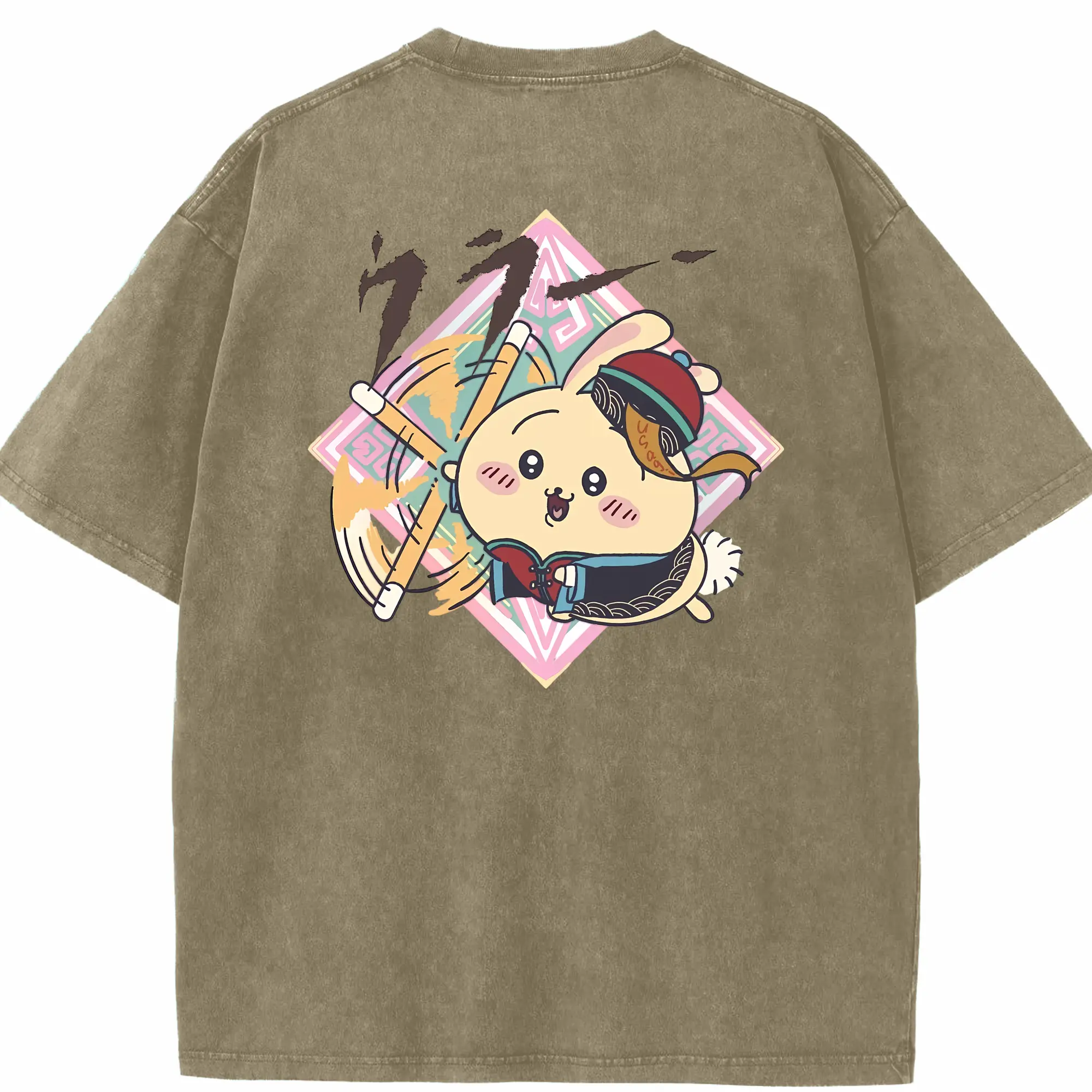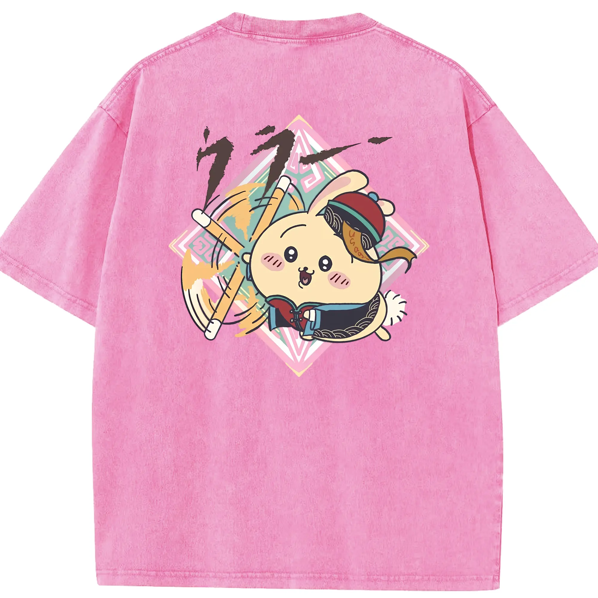 ちい が わ グッズ うさぎ - 綿100% ヴィンテージ風 半袖Tシャツ ・ フロントプリント ・ 柔らか肌触り ・ 通気性 快適 ・ スポーツ カジュアル 外出用