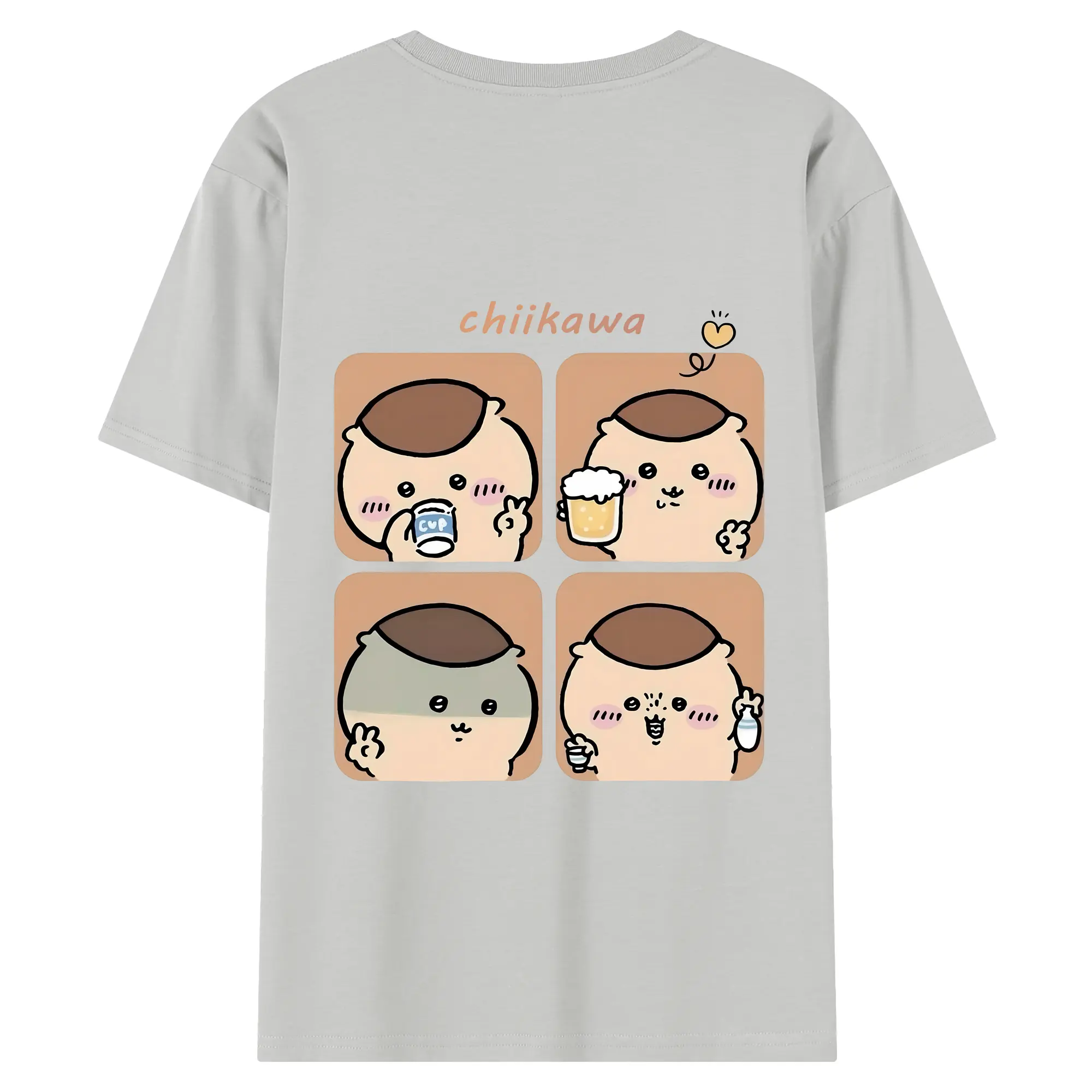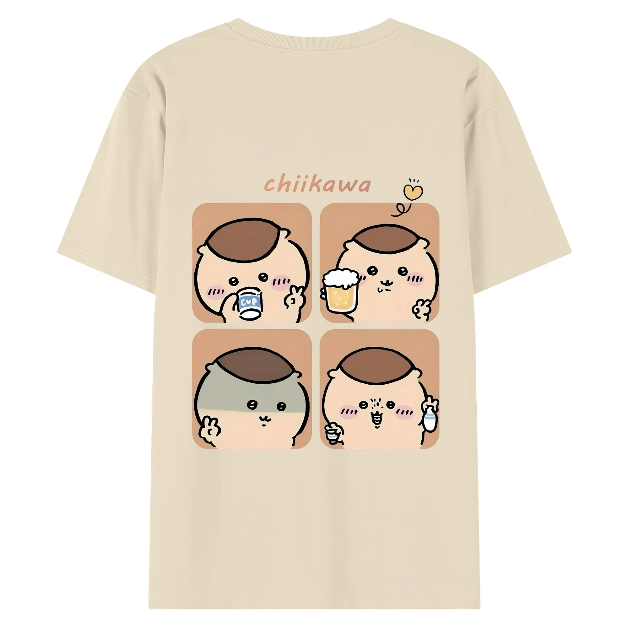 ちい が わ グッズ くりまんじゅう - 綿100% ヴィンテージ風 半袖Tシャツ ・ 背面プリント ・ 柔らか肌触り ・ 通気性 快適 ・ スポーツ カジュアル 外出用