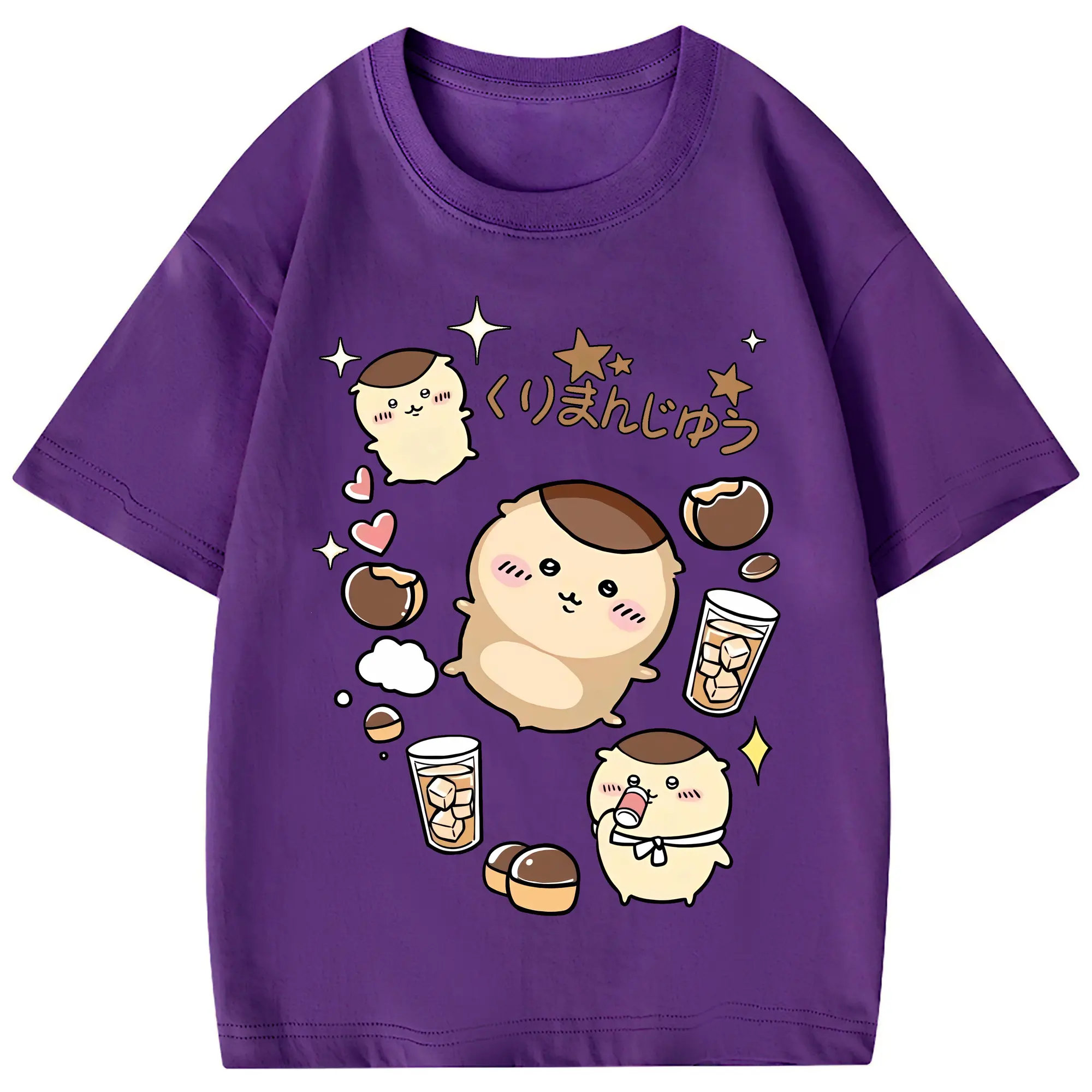 ちい が わ グッズ くりまんじゅう - 綿100% 半袖Tシャツ ・ フロントプリント ・ 快適 通気性 ・ 日常使い 散歩 スポーツ用