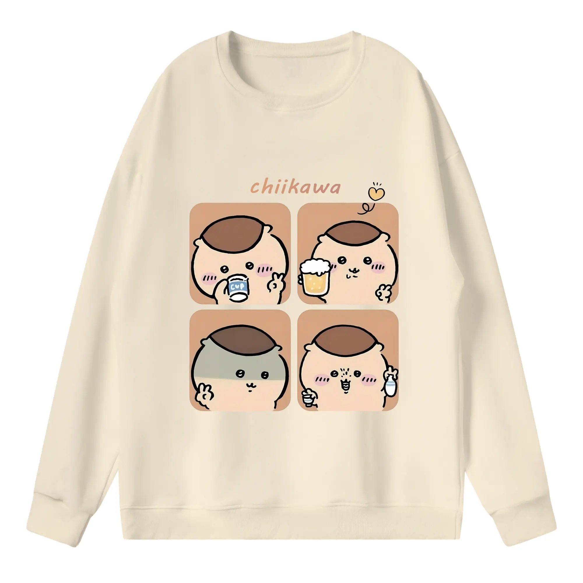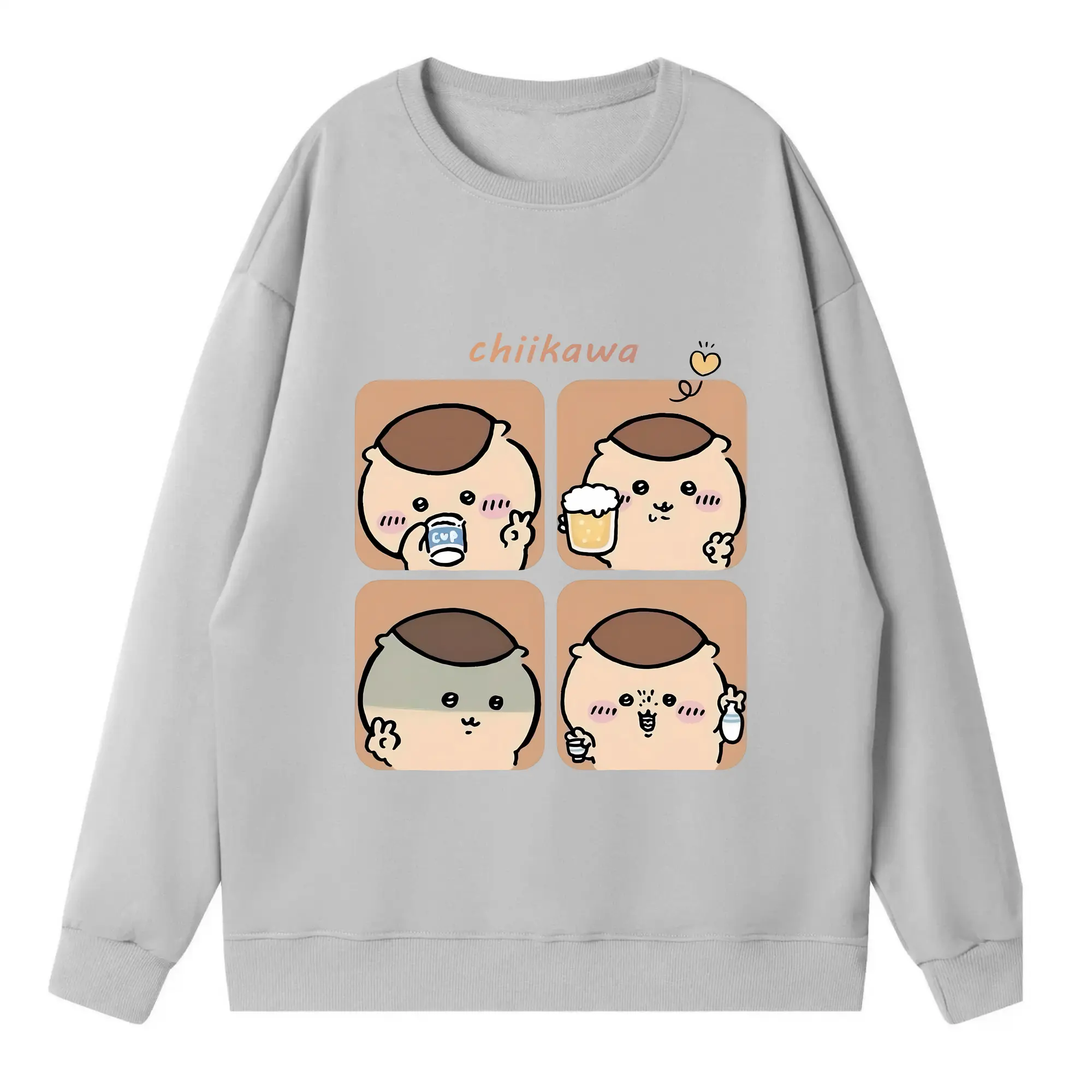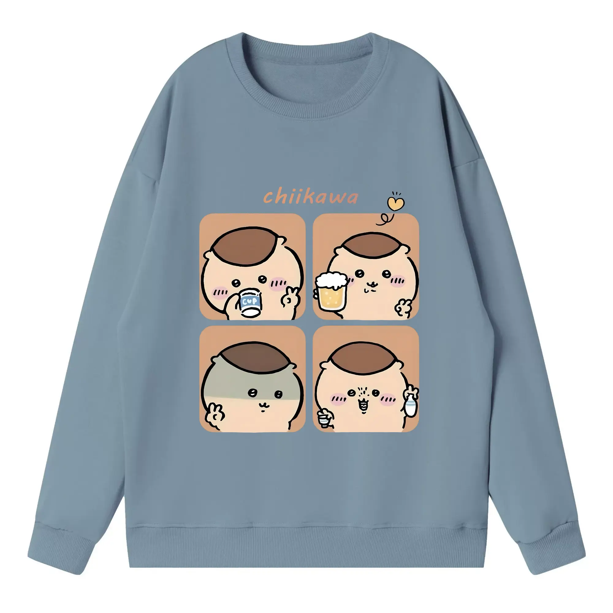 ちい が わ グッズ くりまんじゅう - 高品質 クルーネック スウェット ・ コットン59% ポリエステル41% ・ ユニセックス 長袖 トレーナー ・ カジュアル デイリー スポーツ 散歩用