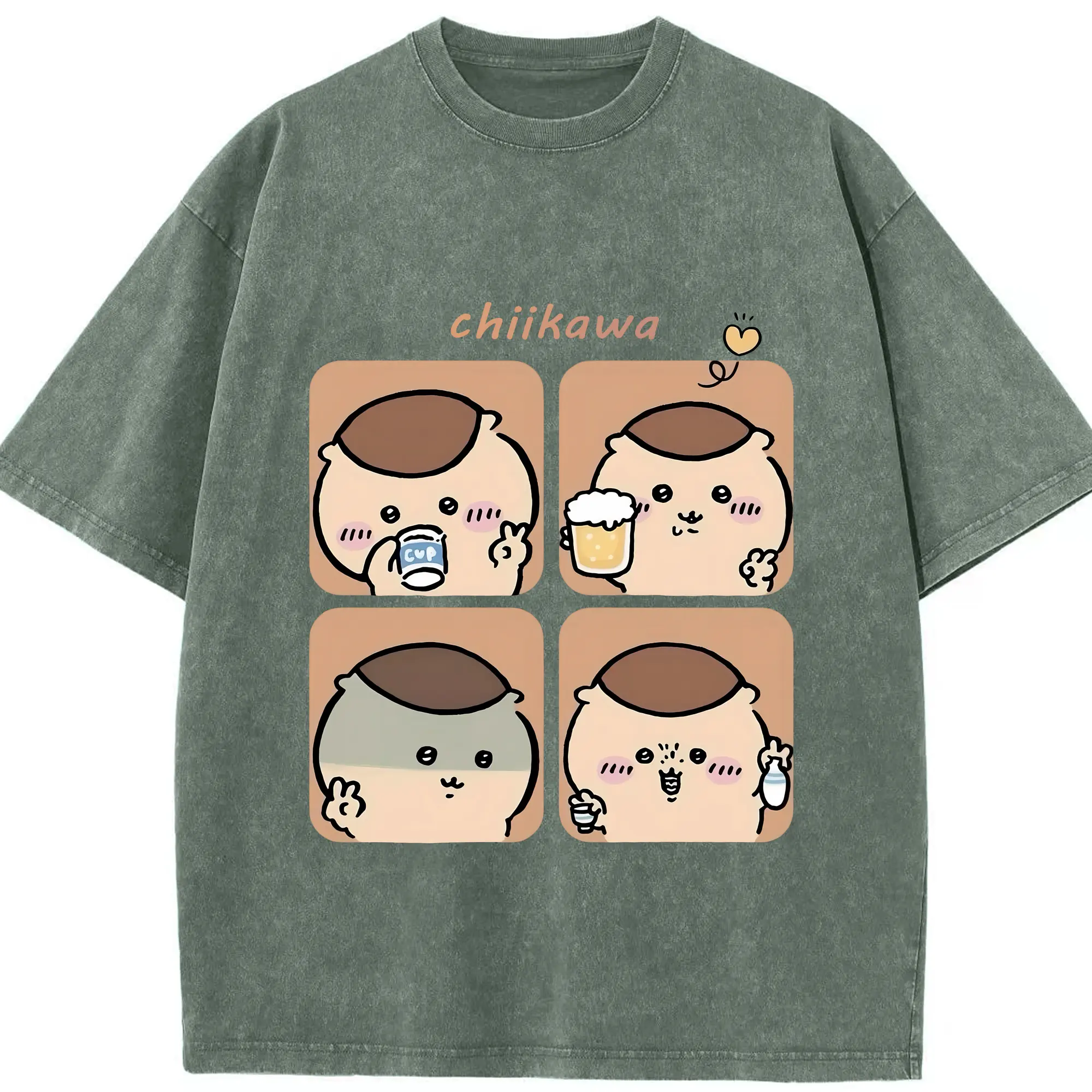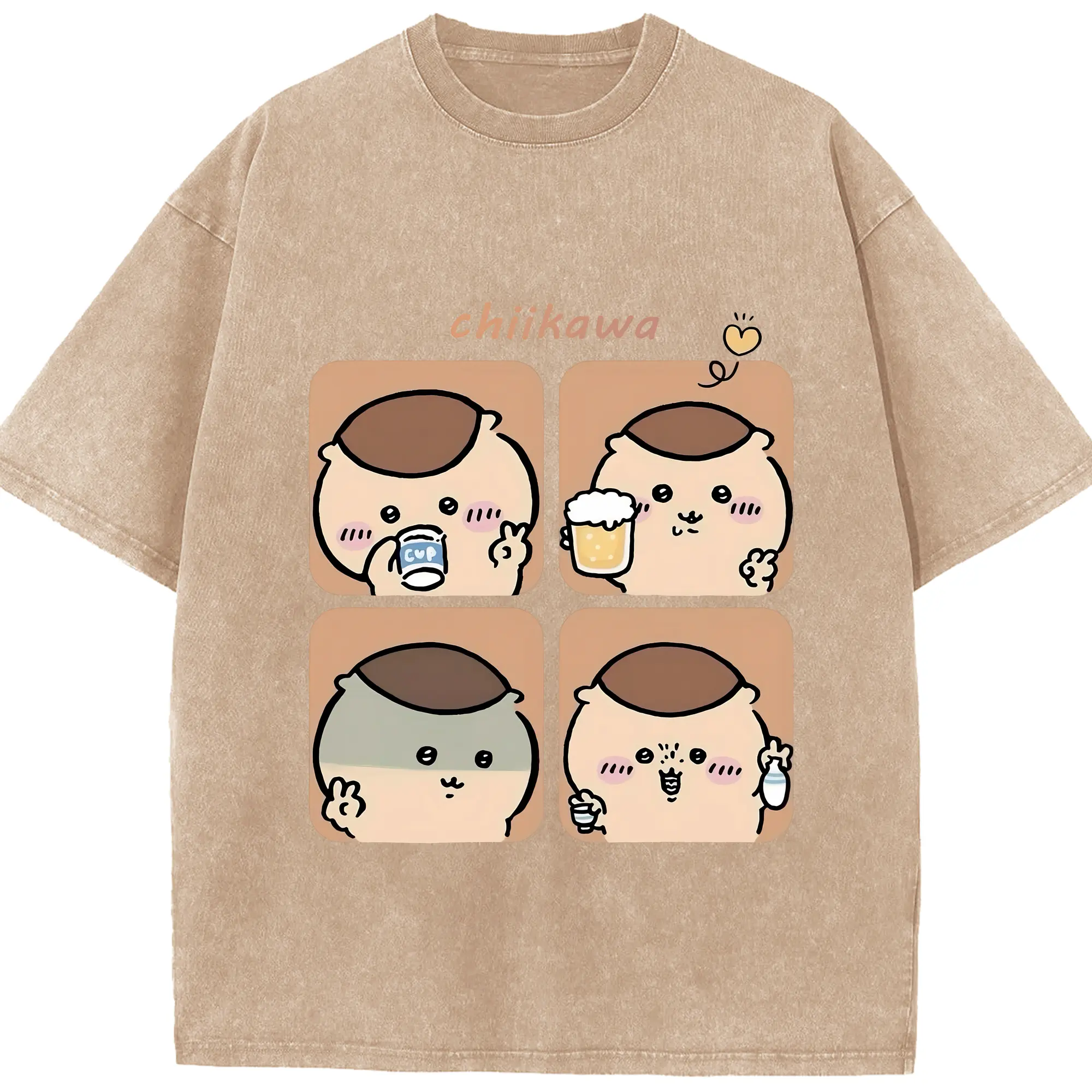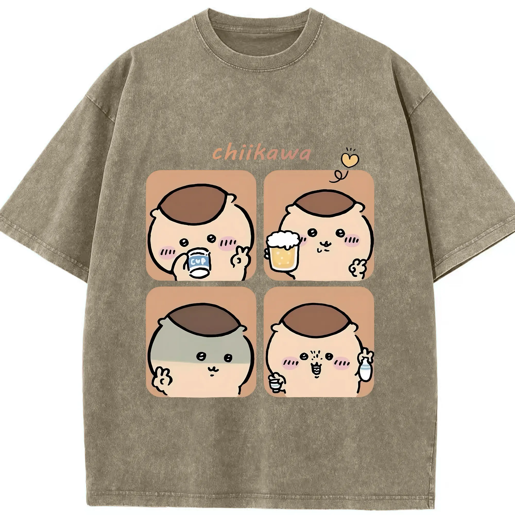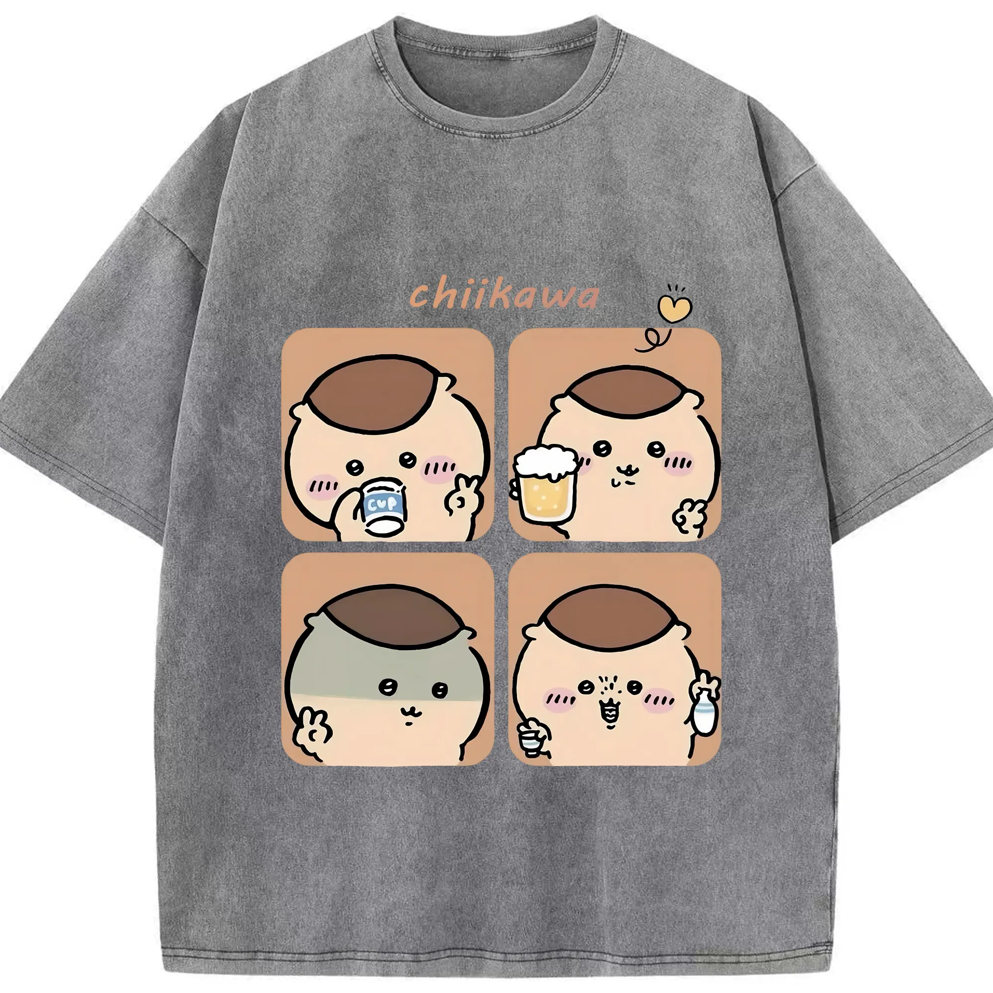 ちい が わ グッズ くりまんじゅう - 綿100% ヴィンテージ風 半袖Tシャツ ・ 背面プリント ・ 柔らか肌触り ・ 通気性 快適 ・ スポーツ カジュアル 外出用