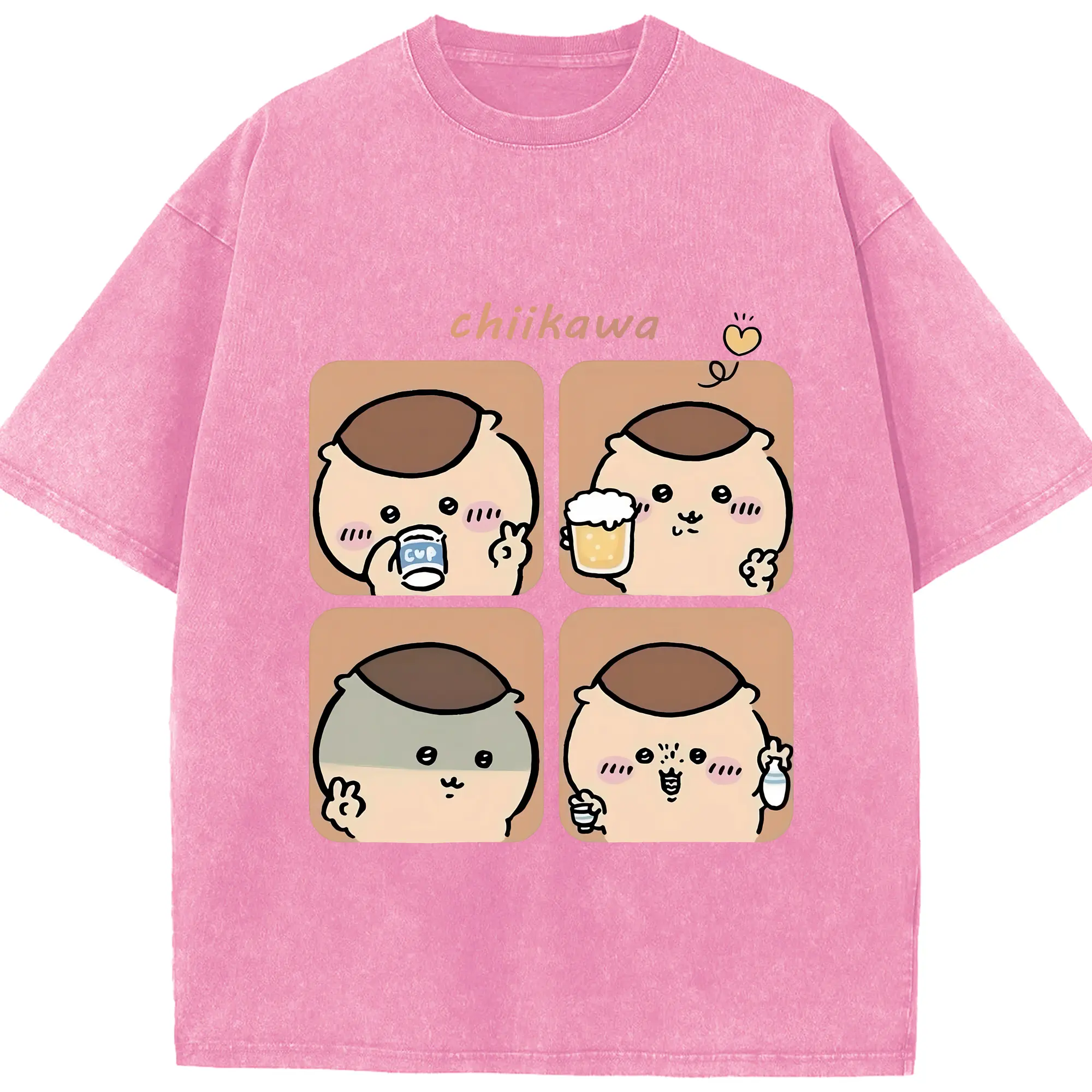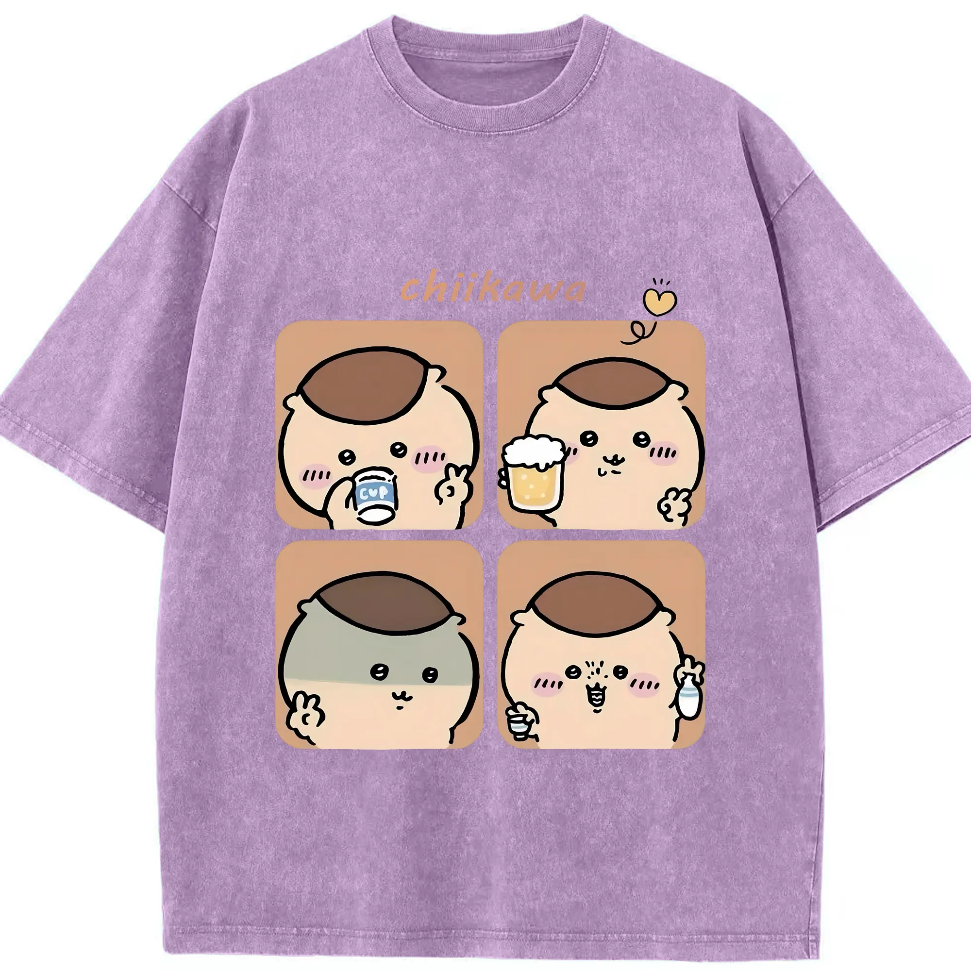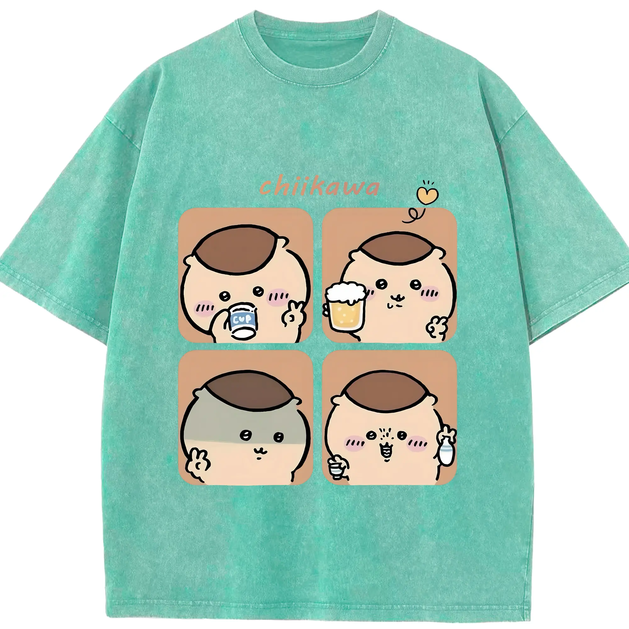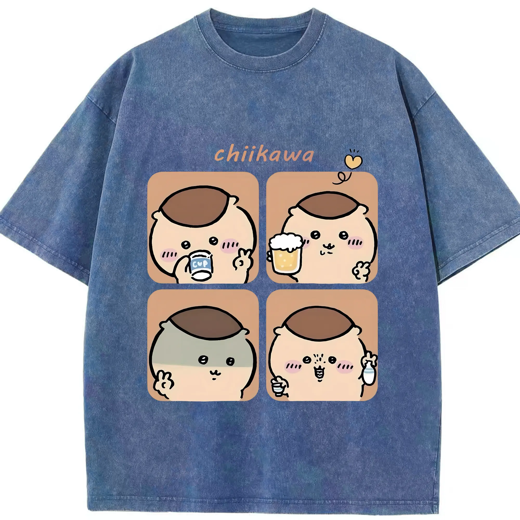 ちい が わ グッズ くりまんじゅう - 綿100% ヴィンテージ風 半袖Tシャツ ・ 背面プリント ・ 柔らか肌触り ・ 通気性 快適 ・ スポーツ カジュアル 外出用