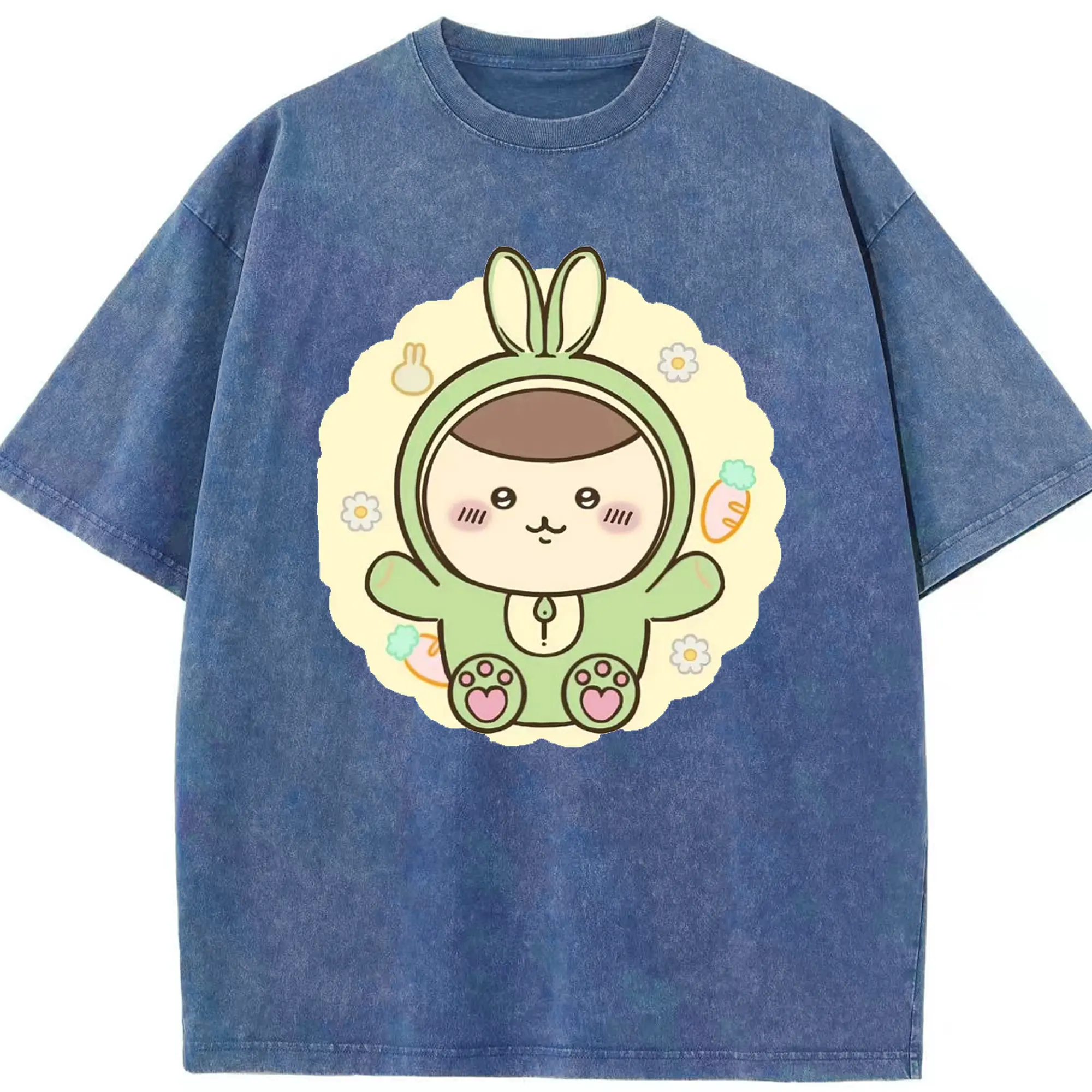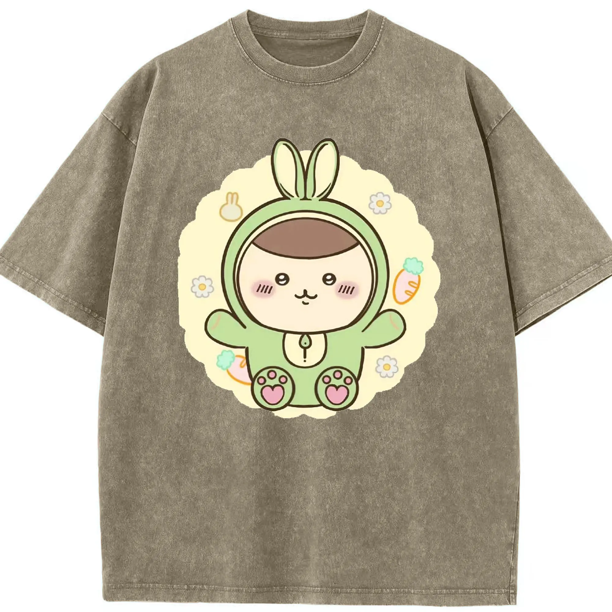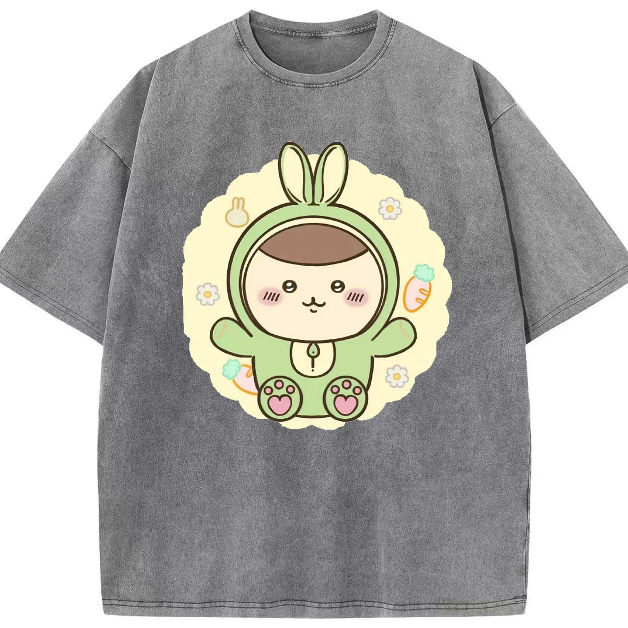 ちい が わ グッズ くりまんじゅう - 綿100% ヴィンテージ風 半袖Tシャツ ・ 背面プリント ・ 柔らか肌触り ・ 通気性 快適 ・ スポーツ カジュアル 外出用
