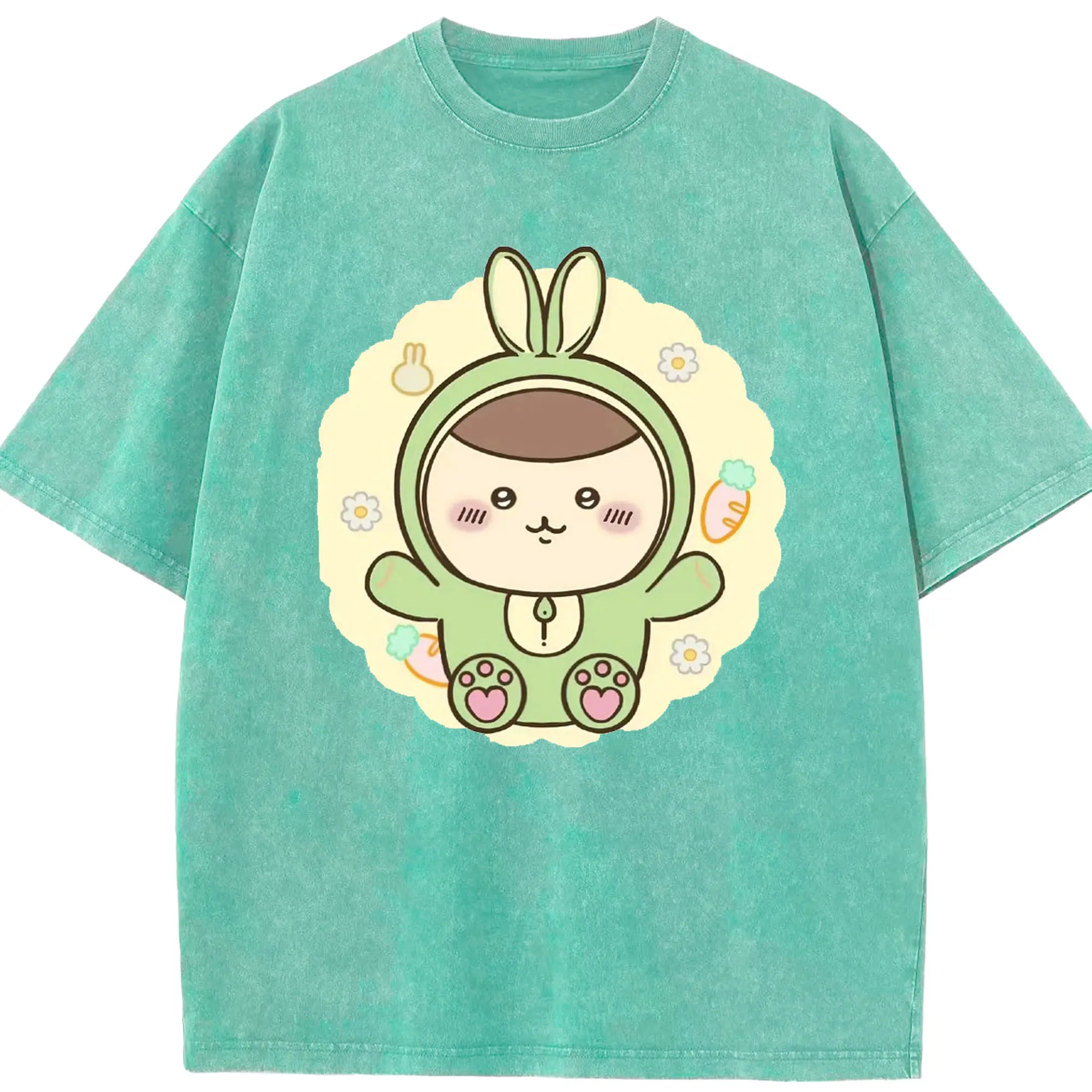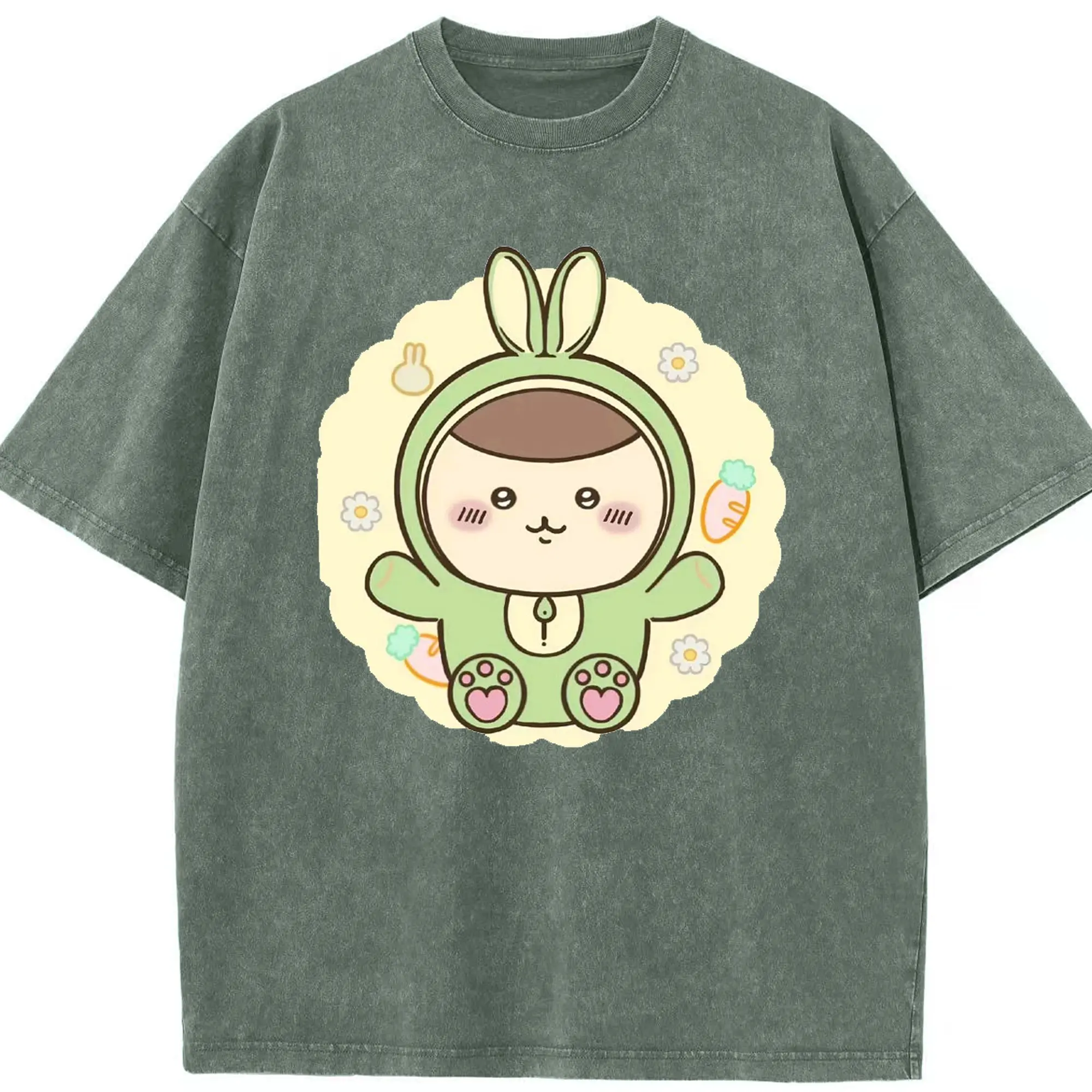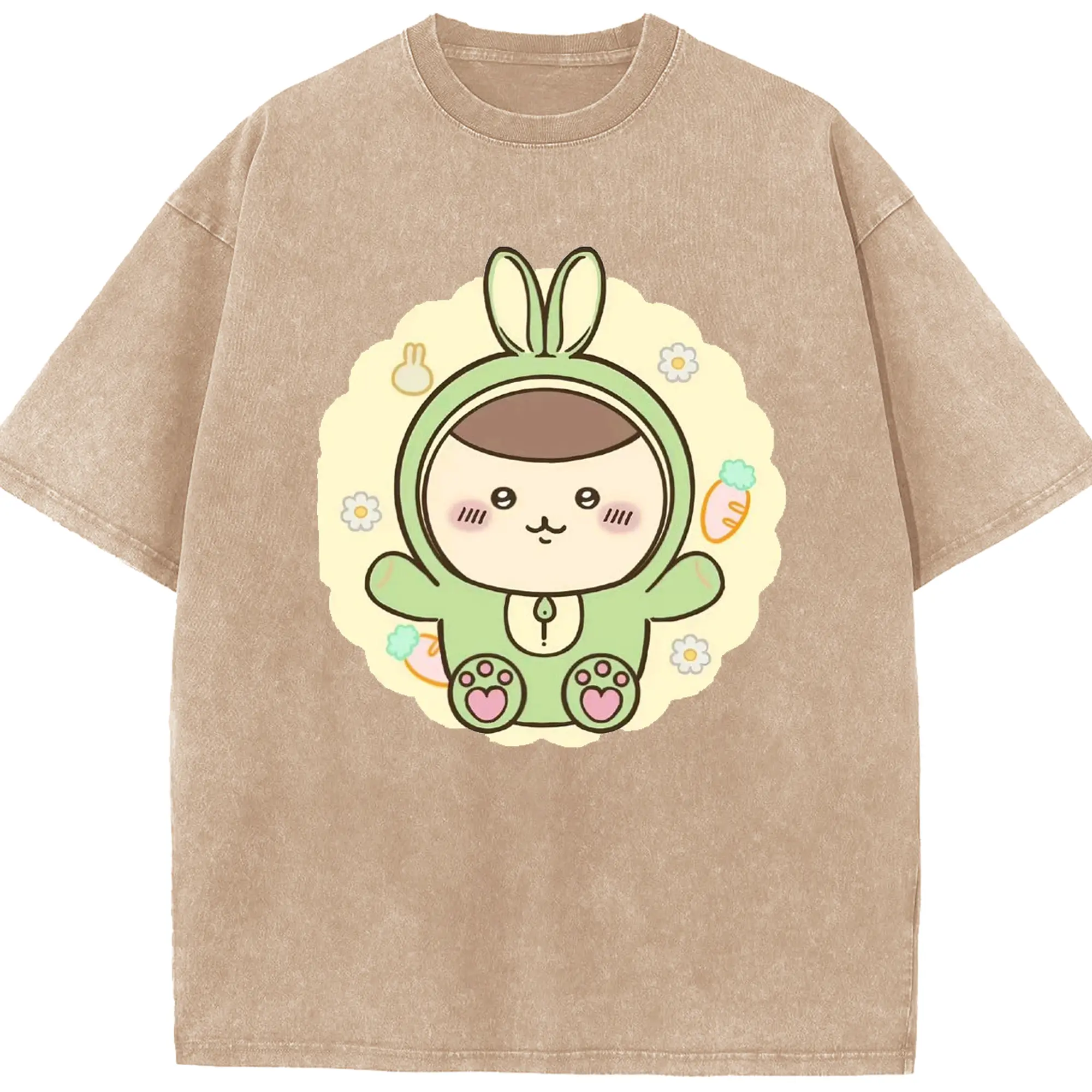ちい が わ グッズ くりまんじゅう - 綿100% ヴィンテージ風 半袖Tシャツ ・ 背面プリント ・ 柔らか肌触り ・ 通気性 快適 ・ スポーツ カジュアル 外出用