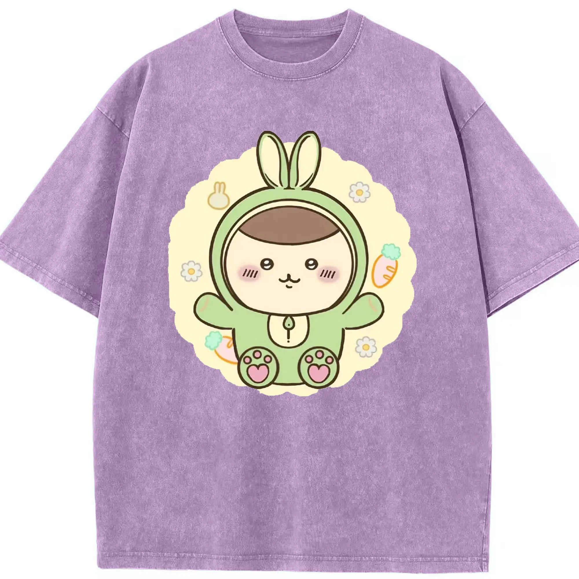 ラブブ グッズ ラブブ - 綿100% ヴィンテージ風 半袖Tシャツ ・ フロントプリント ・ 柔らか肌触り ・ 通気性 快適 ・ スポーツ カジュアル 外出用