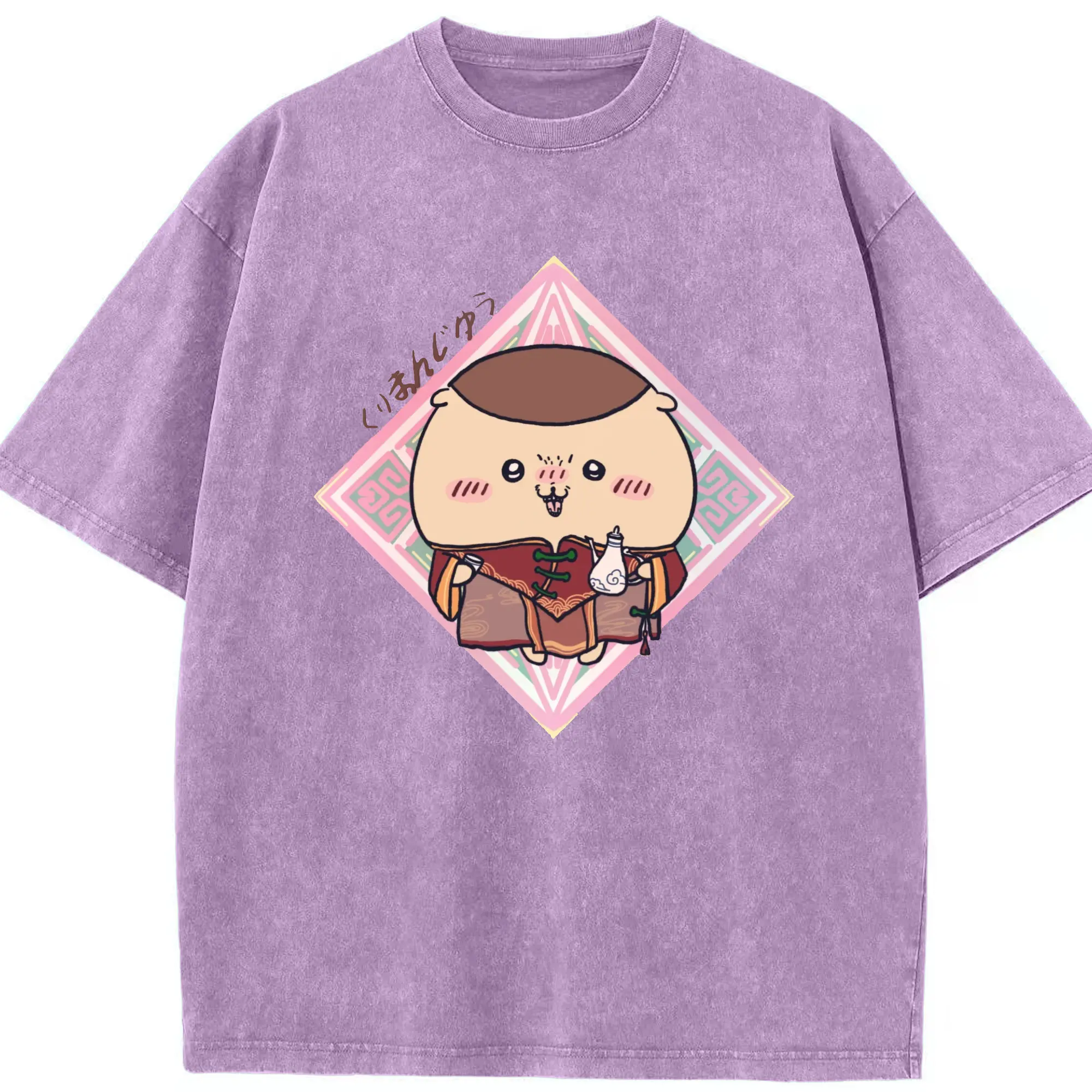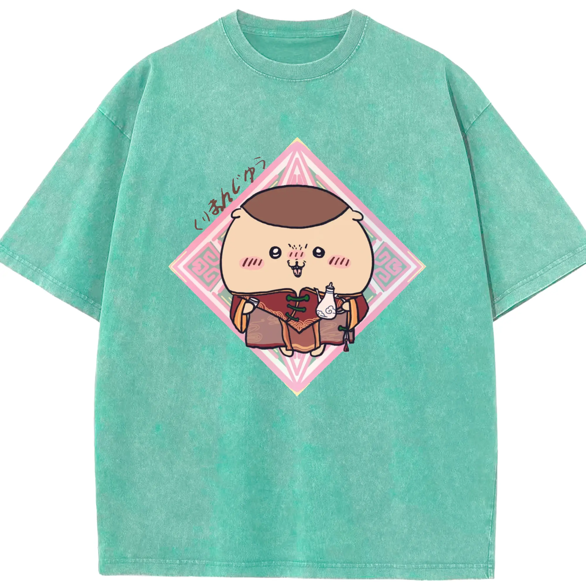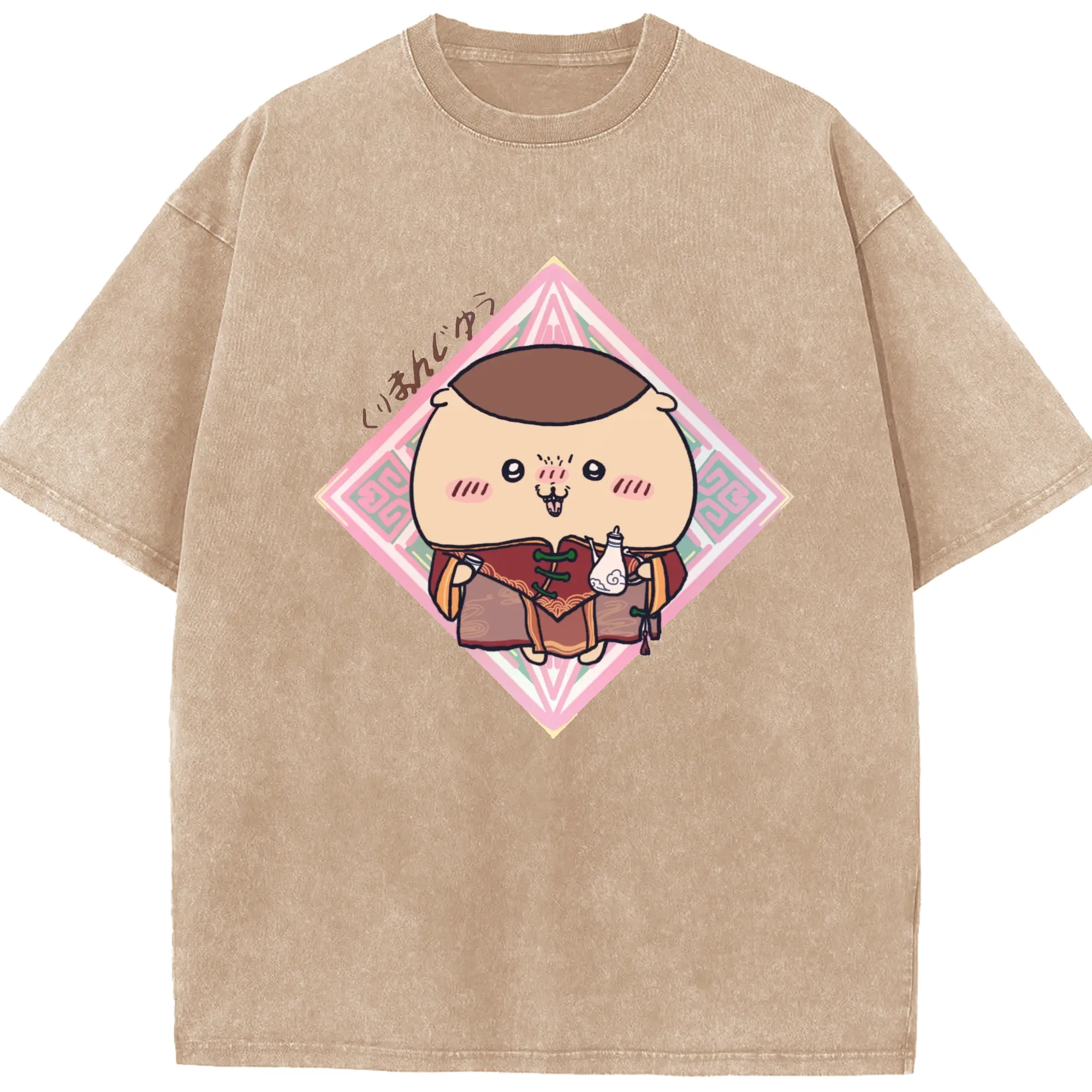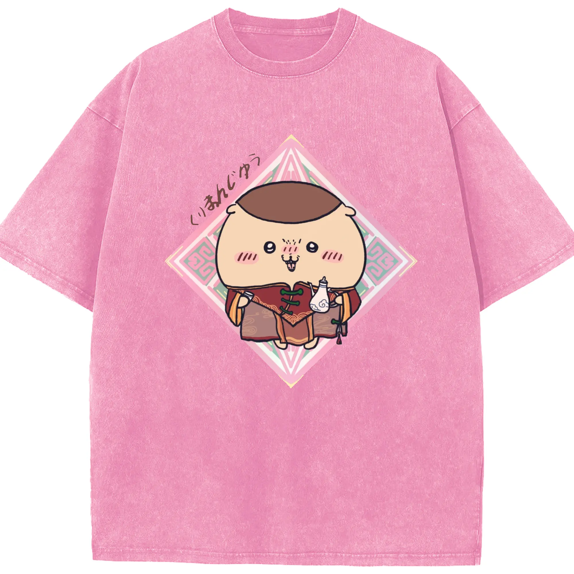 ちい が わ グッズ くりまんじゅう - 綿100% ヴィンテージ風 半袖Tシャツ ・ 背面プリント ・ 柔らか肌触り ・ 通気性 快適 ・ スポーツ カジュアル 外出用