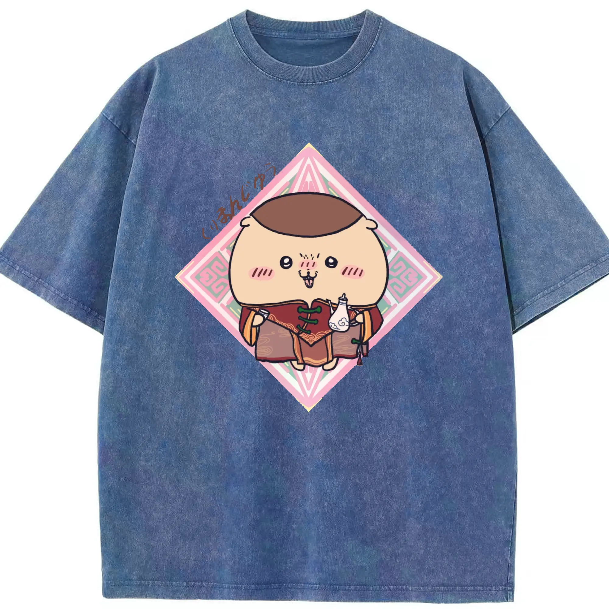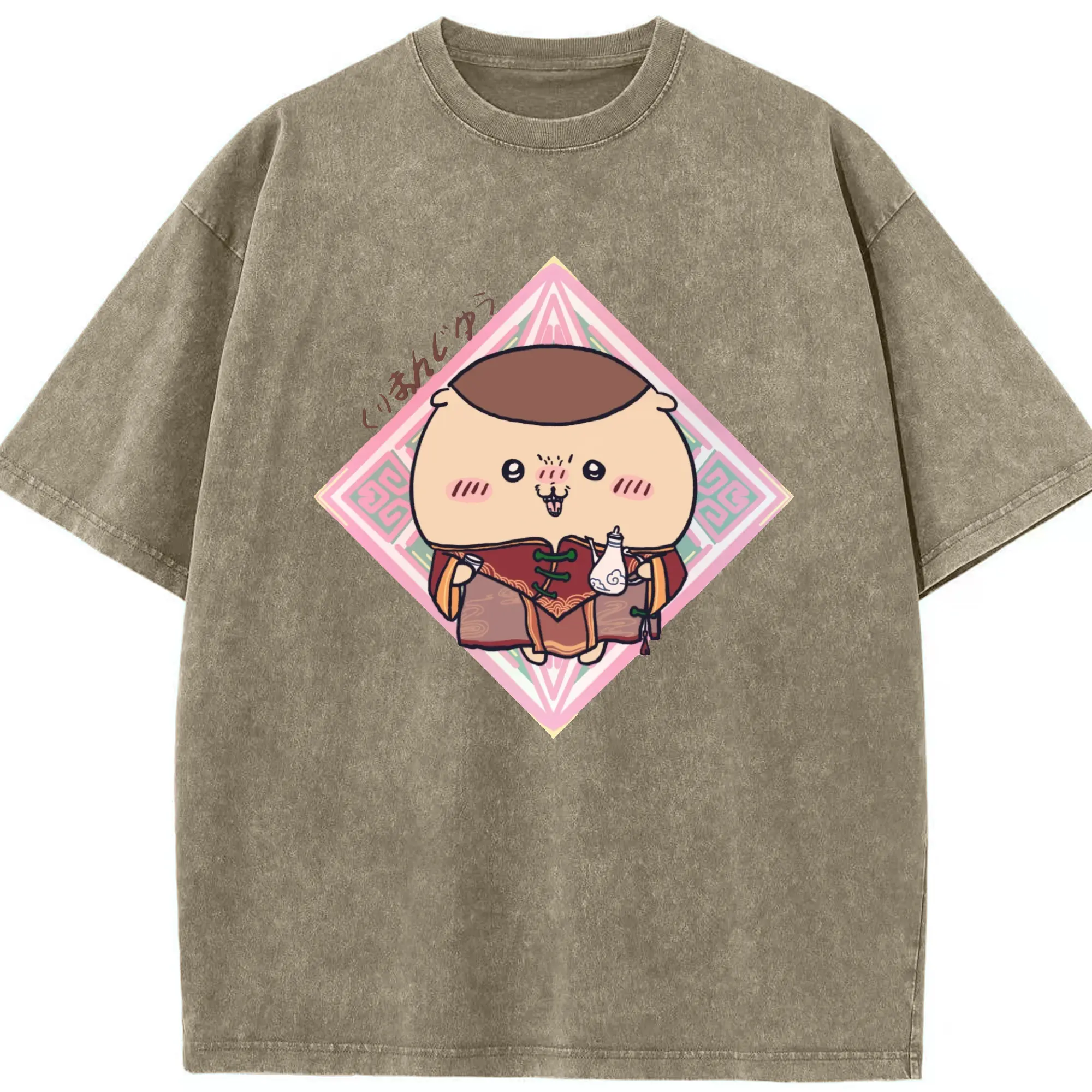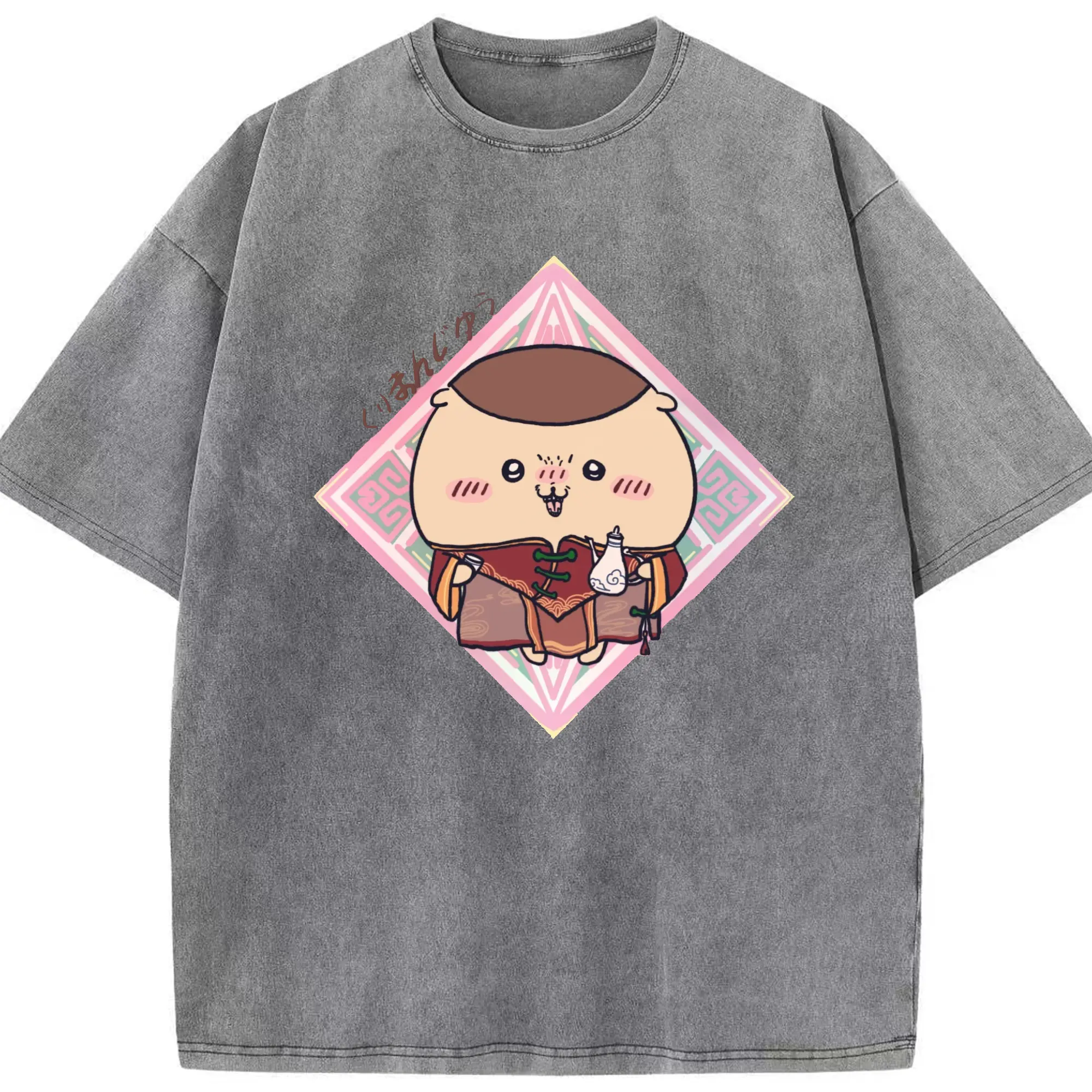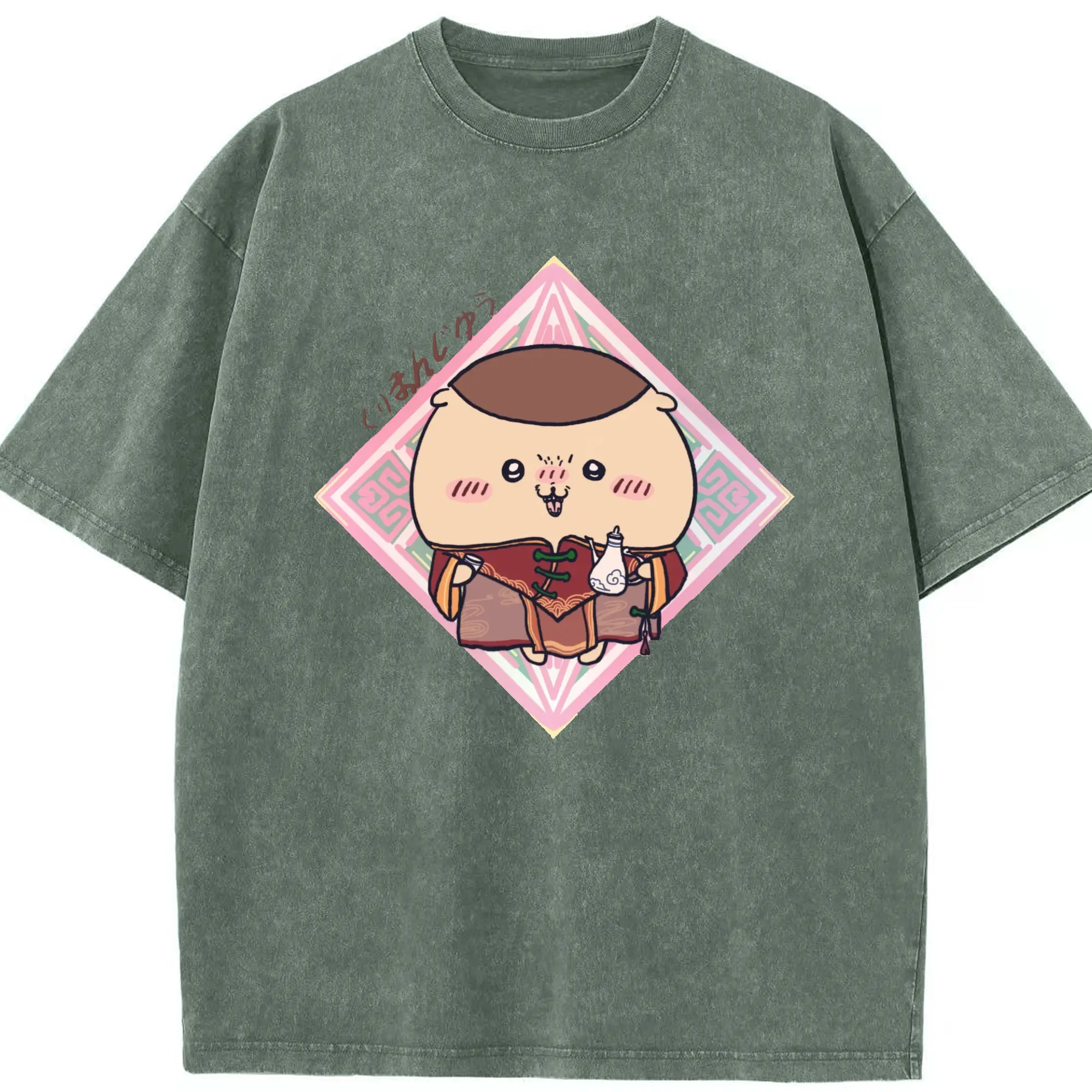 ちい が わ グッズ くりまんじゅう - 綿100% ヴィンテージ風 半袖Tシャツ ・ 背面プリント ・ 柔らか肌触り ・ 通気性 快適 ・ スポーツ カジュアル 外出用