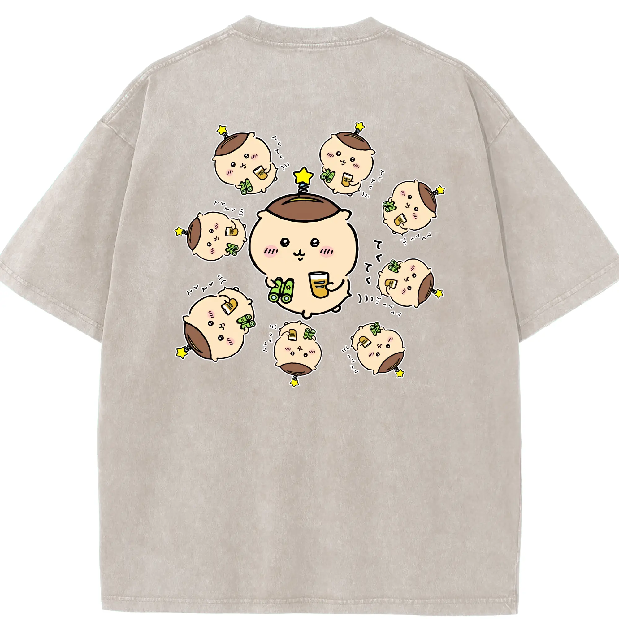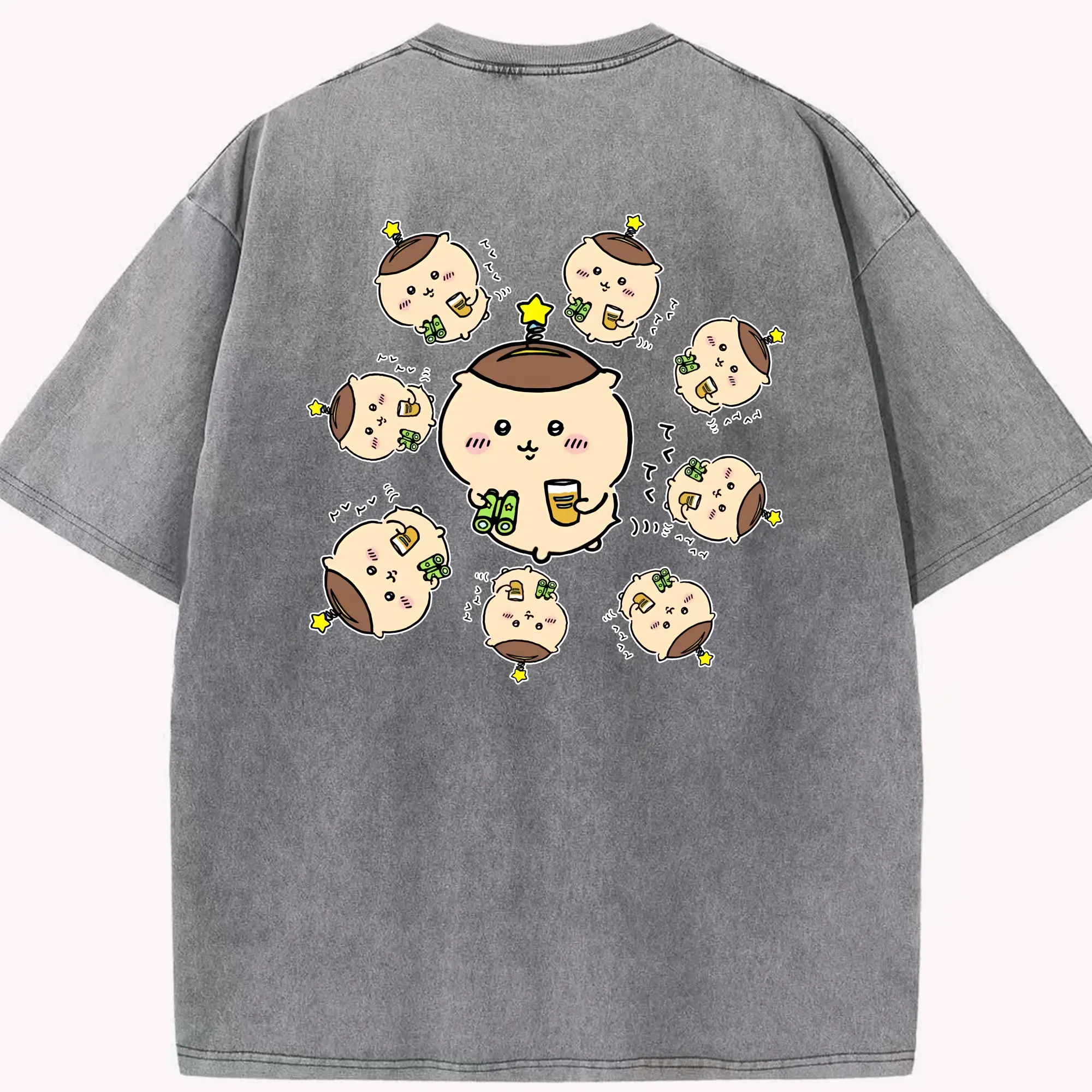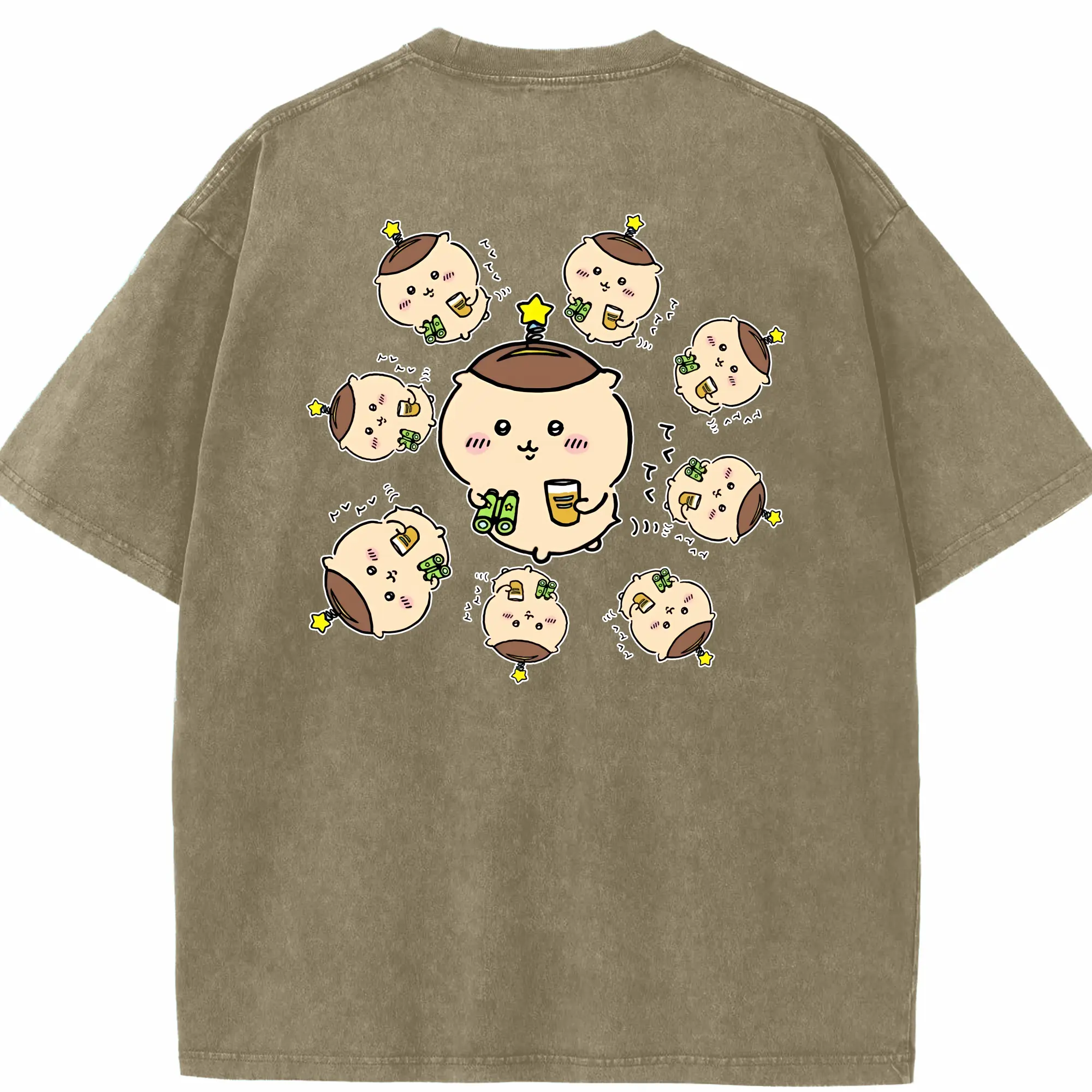 ちい が わ グッズ くりまんじゅう - 綿100% ヴィンテージ風 半袖Tシャツ ・ フロントプリント ・ 柔らか肌触り ・ 通気性 快適 ・ スポーツ カジュアル 外出用