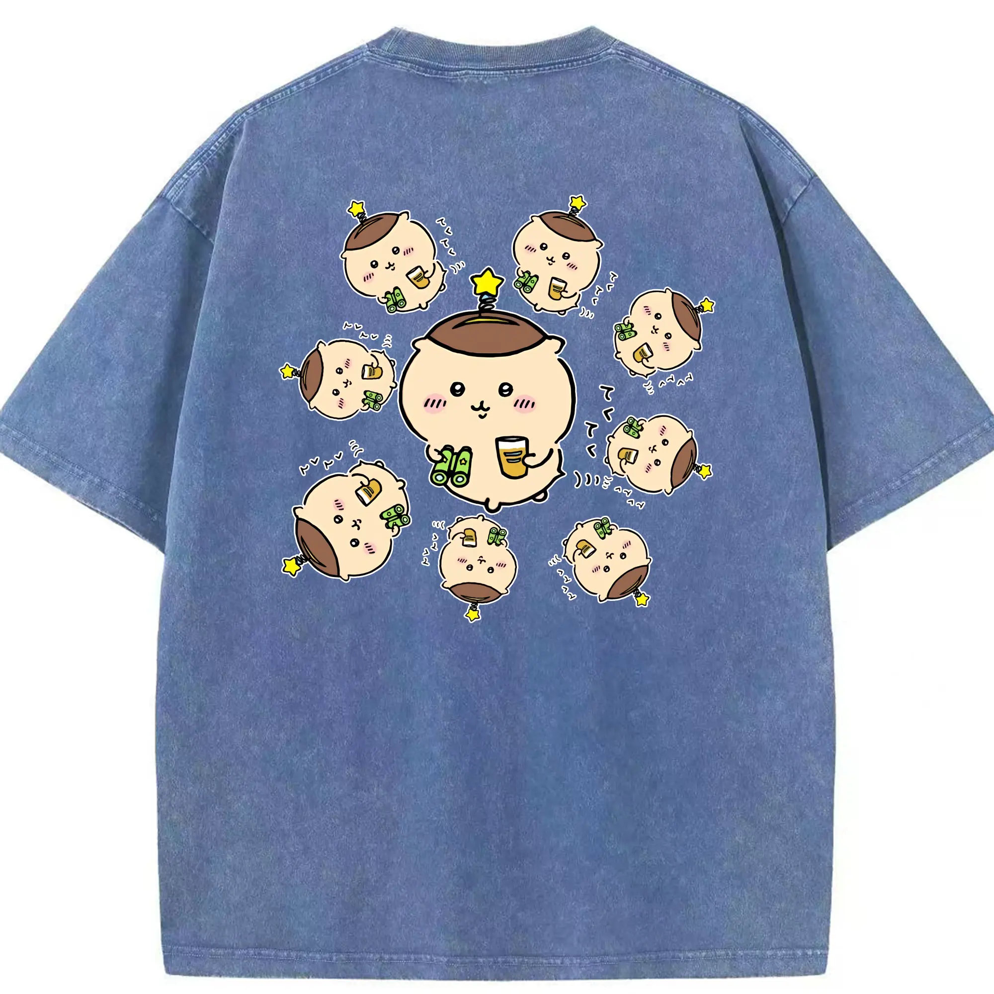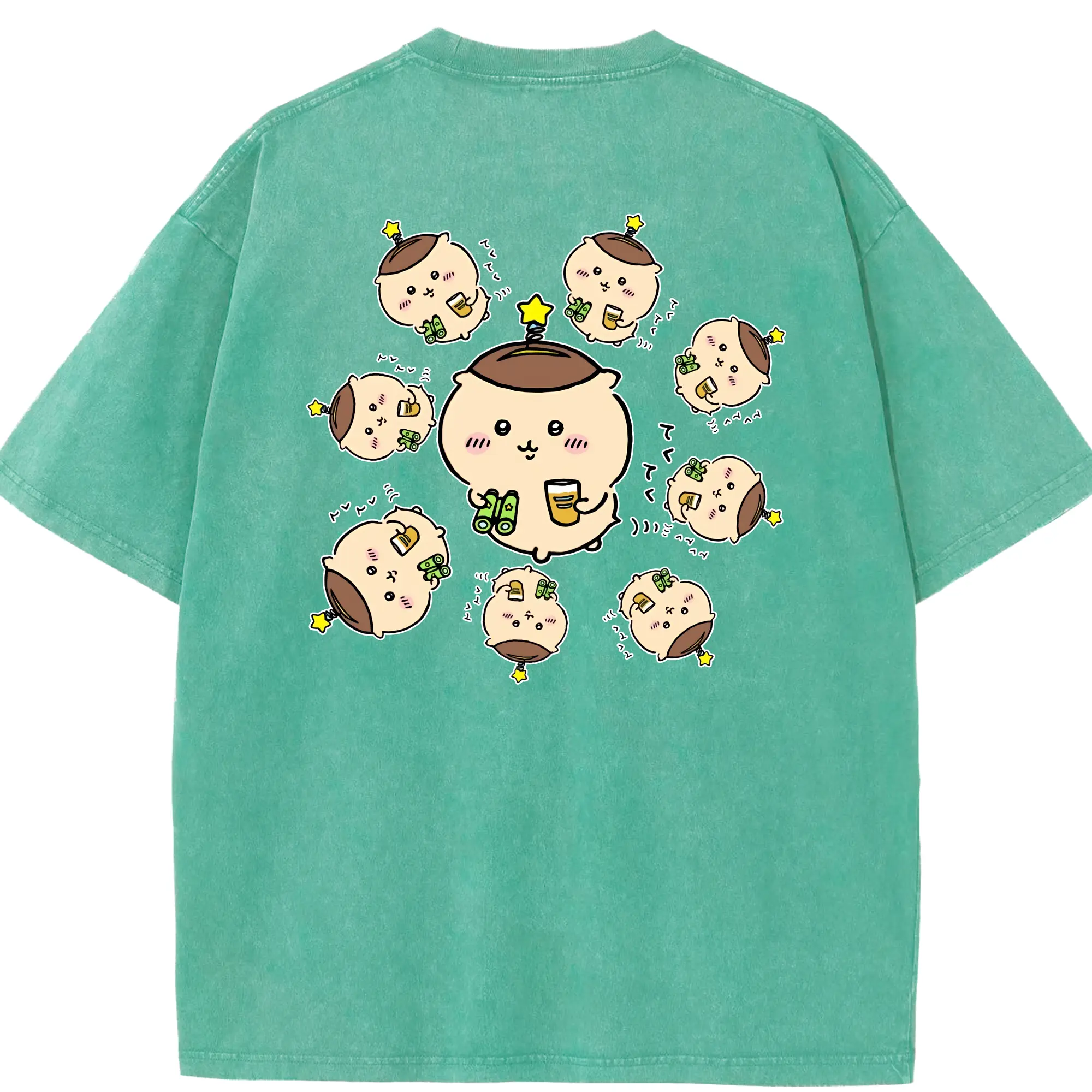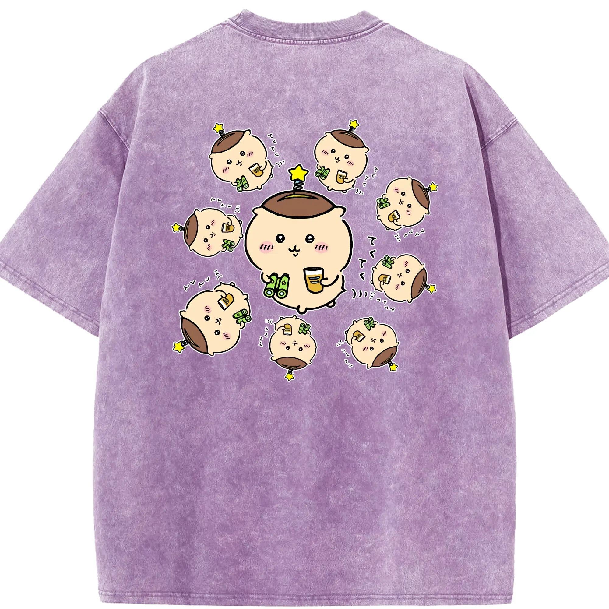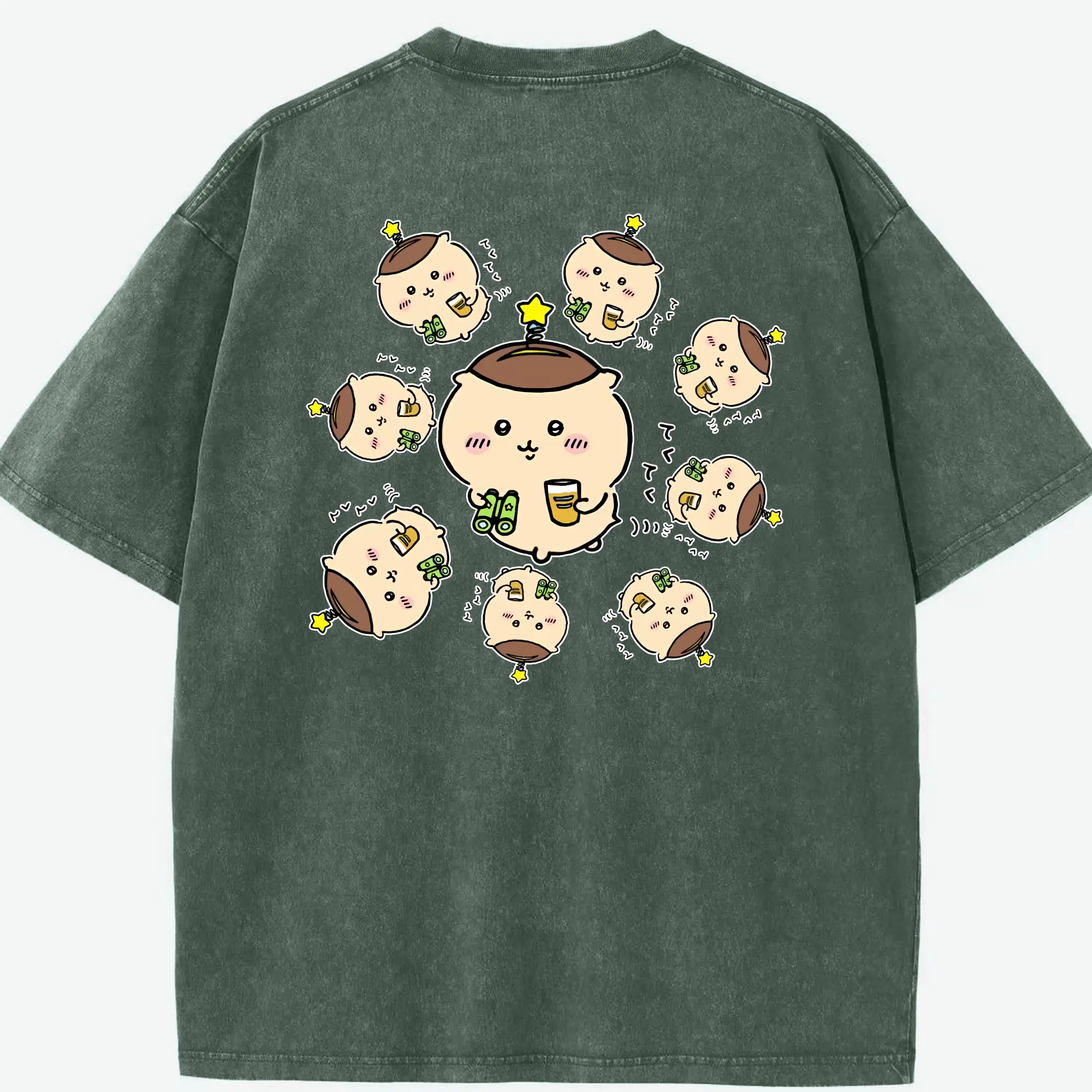 ちい が わ グッズ くりまんじゅう - 綿100% ヴィンテージ風 半袖Tシャツ ・ フロントプリント ・ 柔らか肌触り ・ 通気性 快適 ・ スポーツ カジュアル 外出用