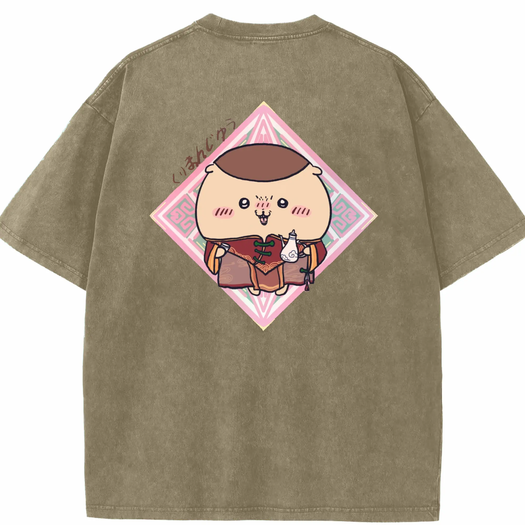 ちい が わ グッズ くりまんじゅう - 綿100% ヴィンテージ風 半袖Tシャツ ・ フロントプリント ・ 柔らか肌触り ・ 通気性 快適 ・ スポーツ カジュアル 外出用