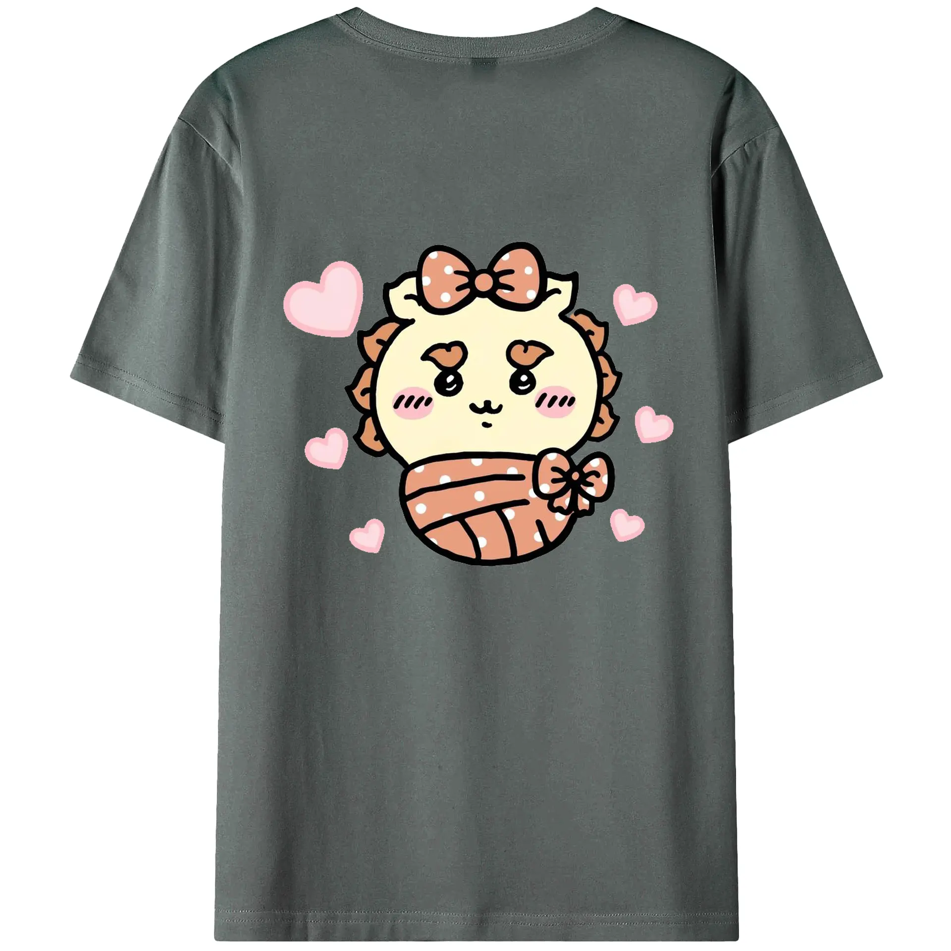 ちい が わ グッズ シーサー - 綿100% ヴィンテージ風 半袖Tシャツ ・ 背面プリント ・ 柔らか肌触り ・ 通気性 快適 ・ スポーツ カジュアル 外出用