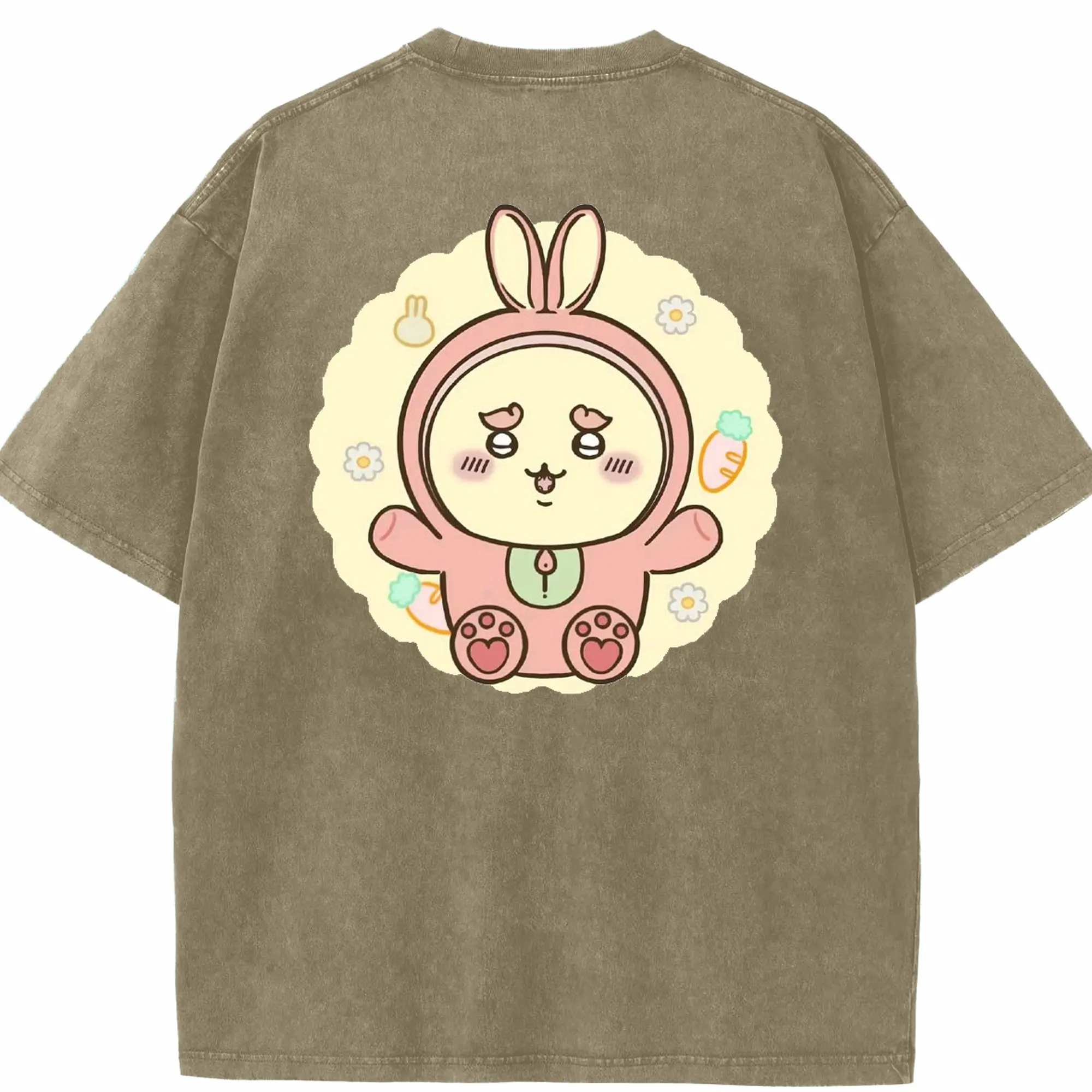 ちい が わ グッズ シーサー - 綿100% ヴィンテージ風 半袖Tシャツ ・ フロントプリント ・ 柔らか肌触り ・ 通気性 快適 ・ スポーツ カジュアル 外出用