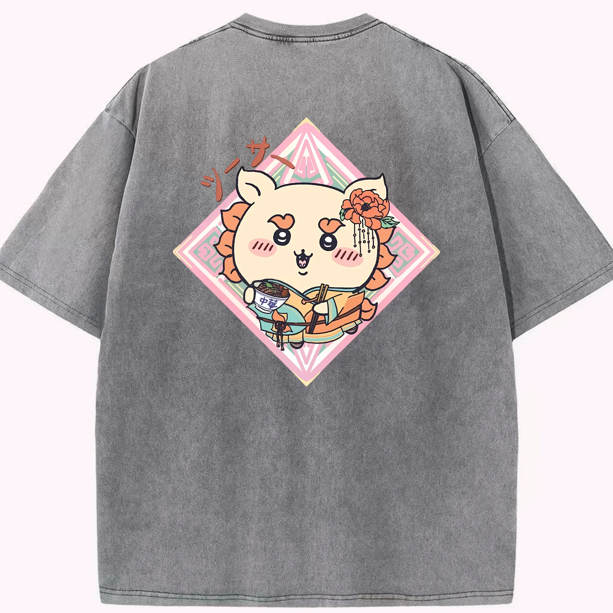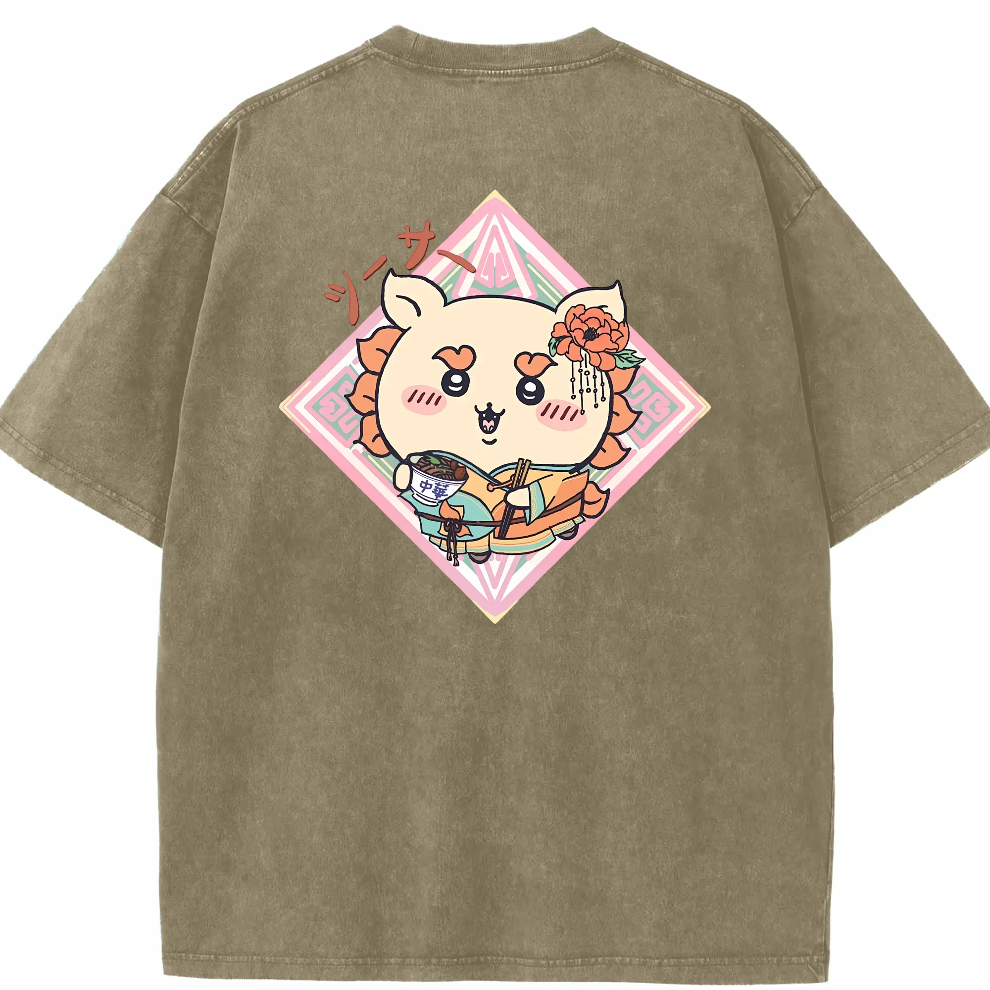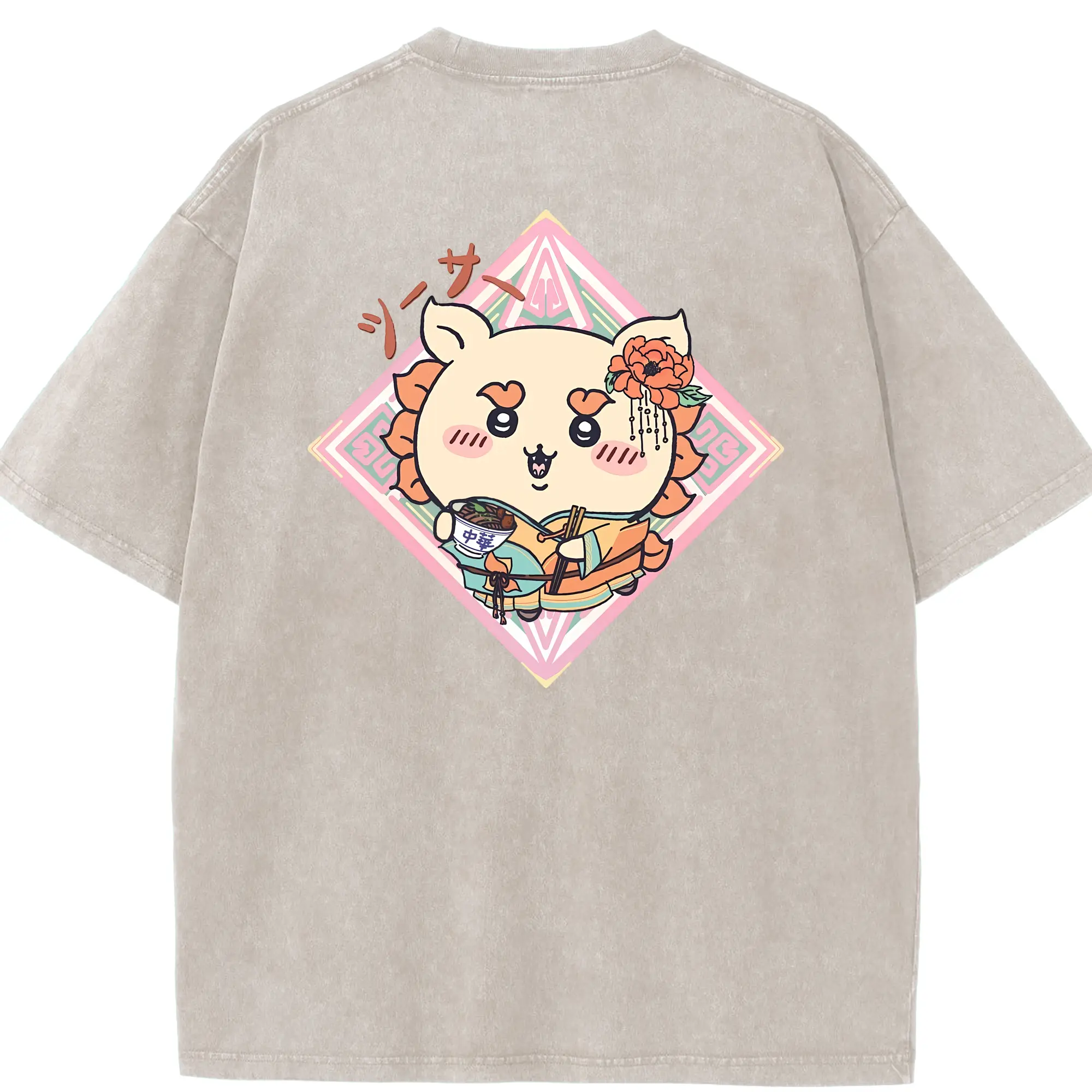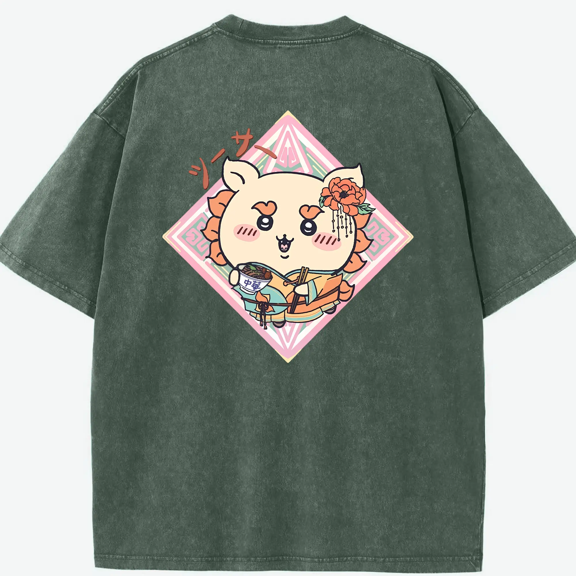 ちい が わ グッズ シーサー - 綿100% ヴィンテージ風 半袖Tシャツ ・ フロントプリント ・ 柔らか肌触り ・ 通気性 快適 ・ スポーツ カジュアル 外出用
