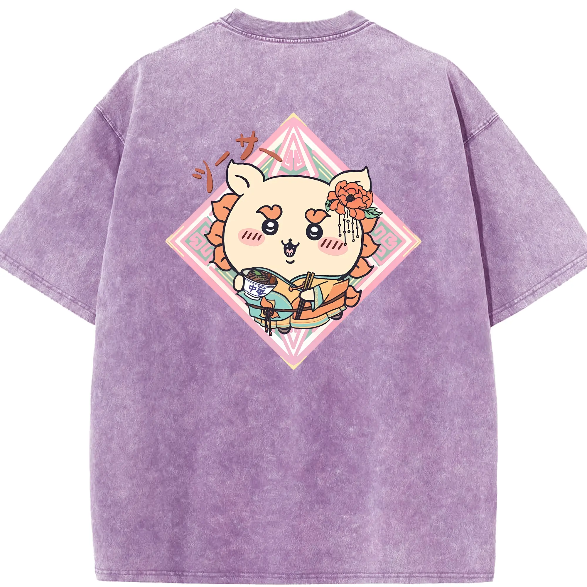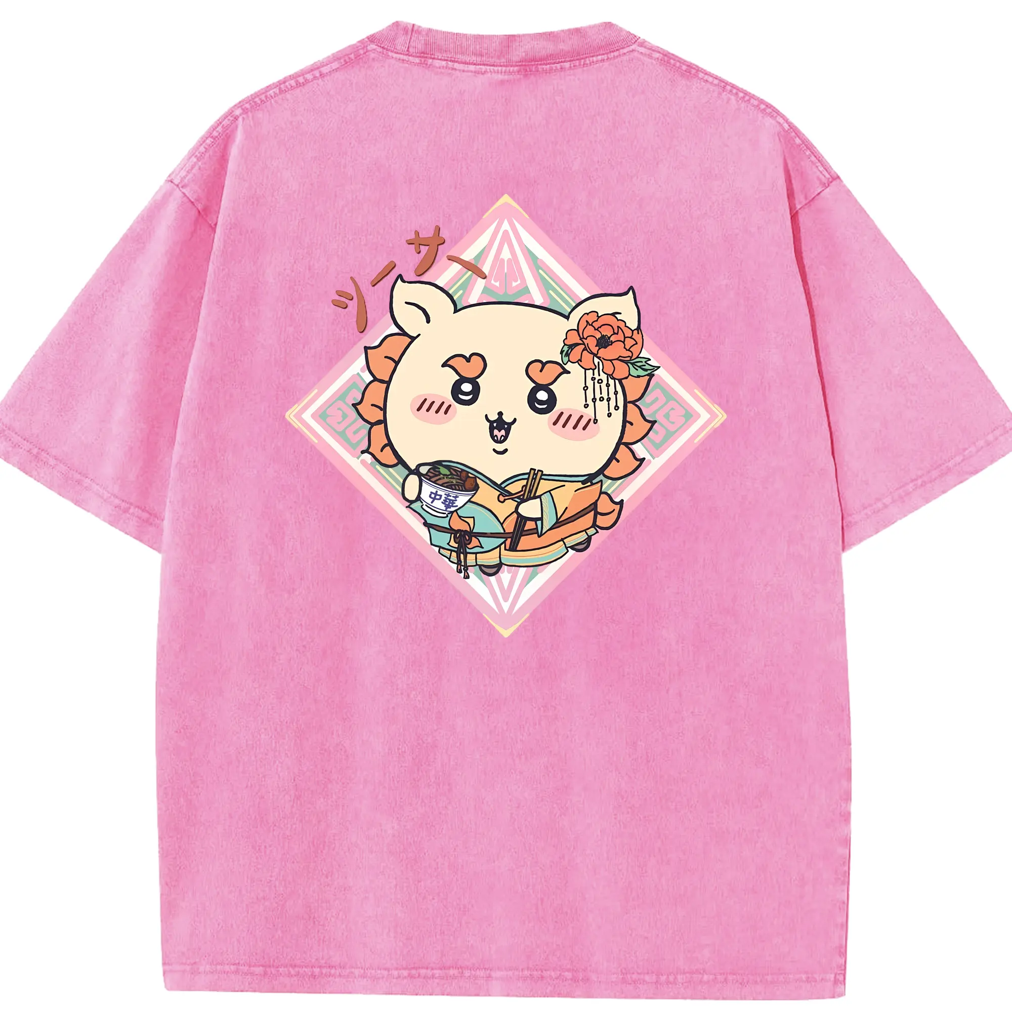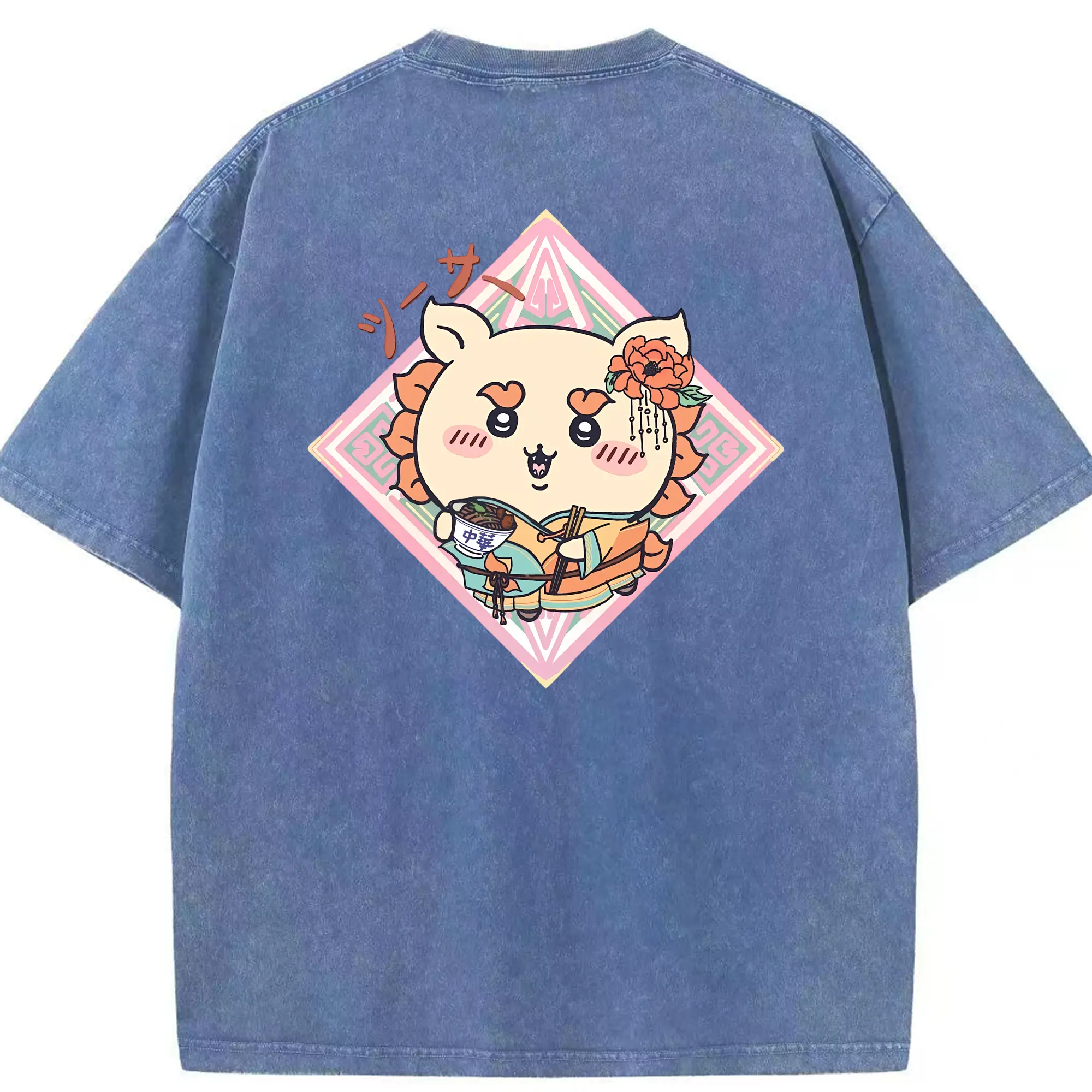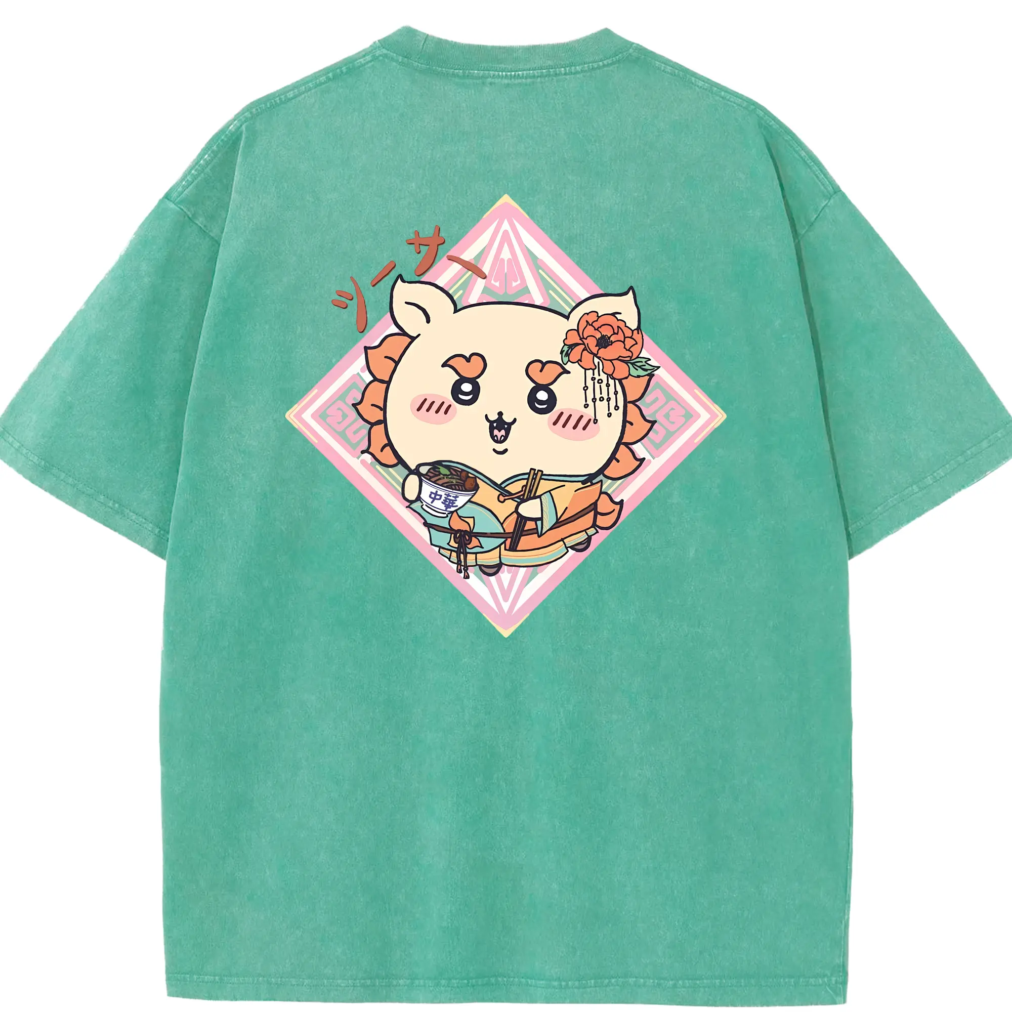 ちい が わ グッズ シーサー - 綿100% ヴィンテージ風 半袖Tシャツ ・ フロントプリント ・ 柔らか肌触り ・ 通気性 快適 ・ スポーツ カジュアル 外出用