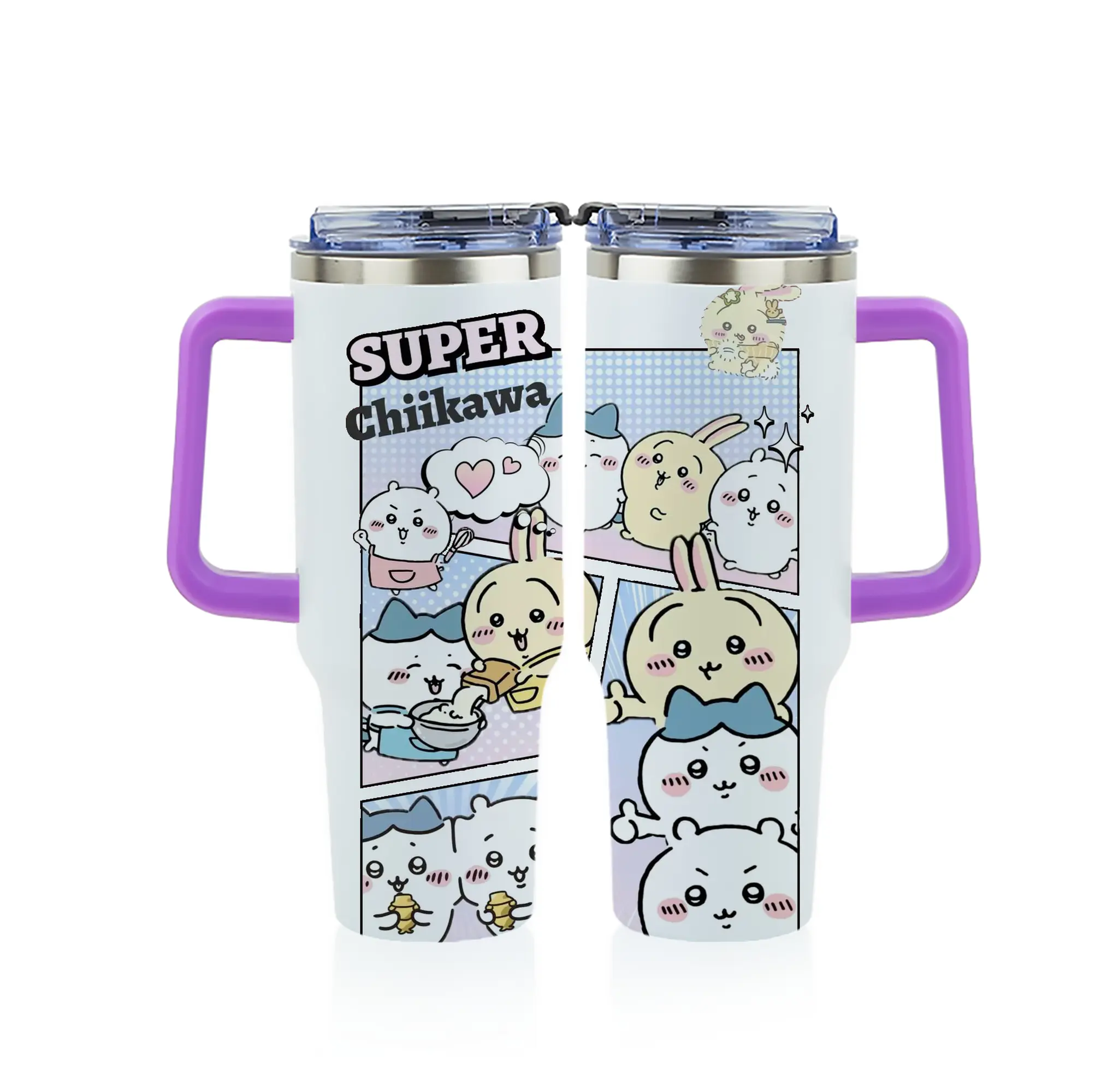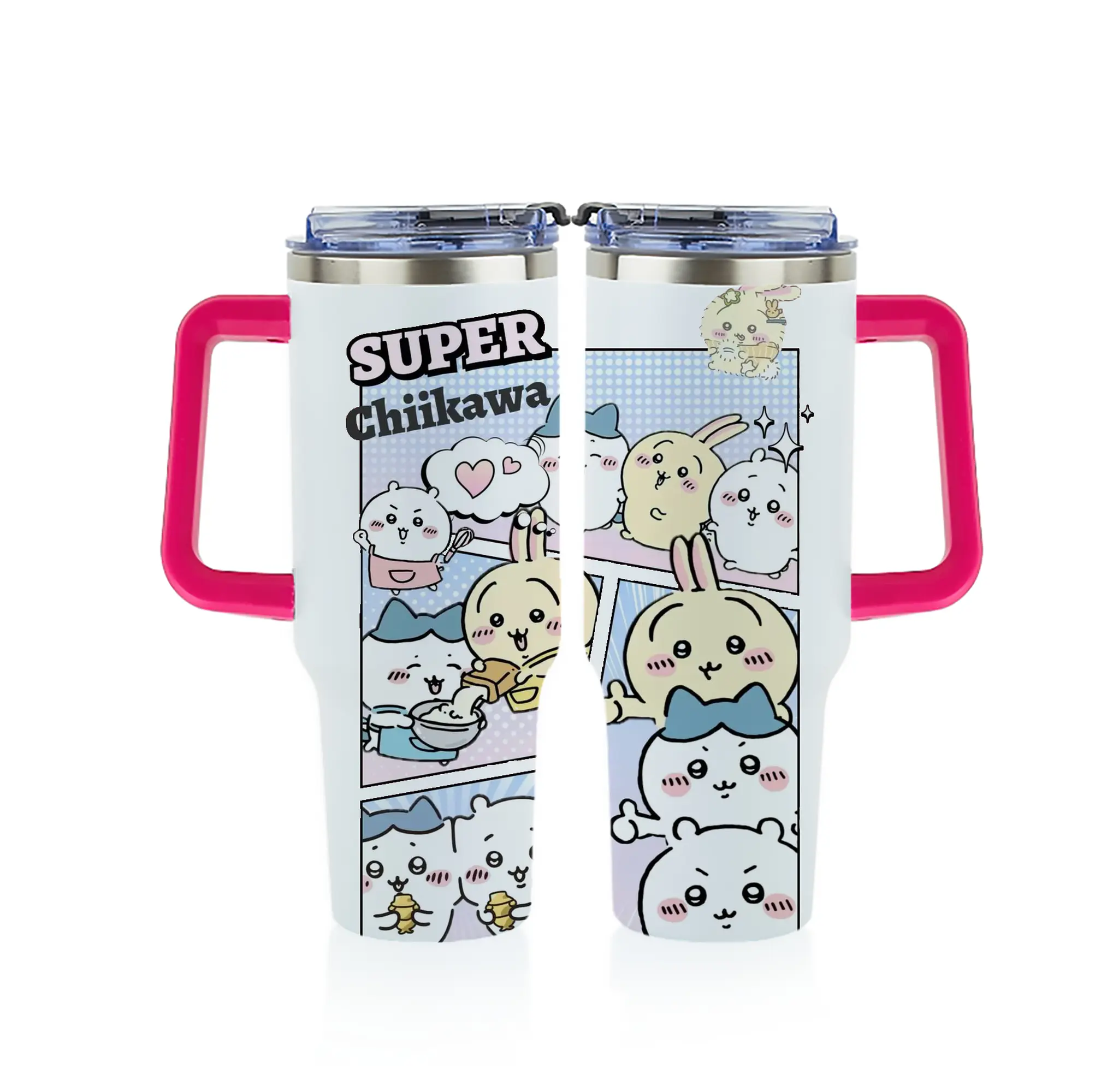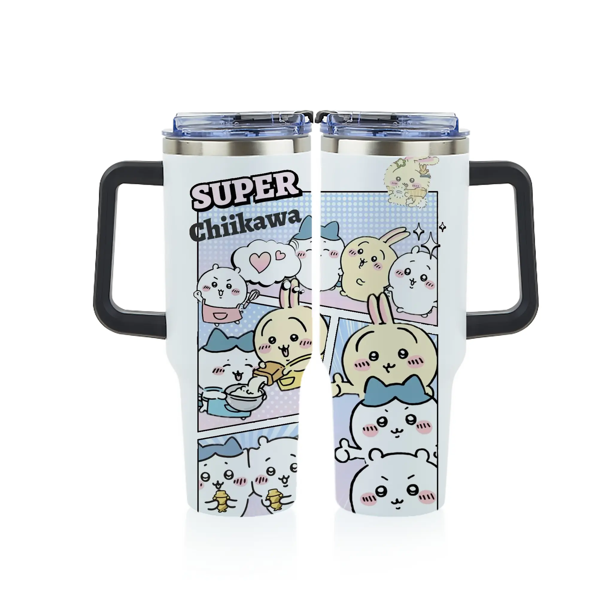 ちい が わ グッズ ハチワレ - 1200mL フルプリント車用タンブラー ・ 304ステンレス 内側 ・ 201ステンレス 外側 ・ 保温 保冷 ・ 通勤 ドライブ アウトドア用