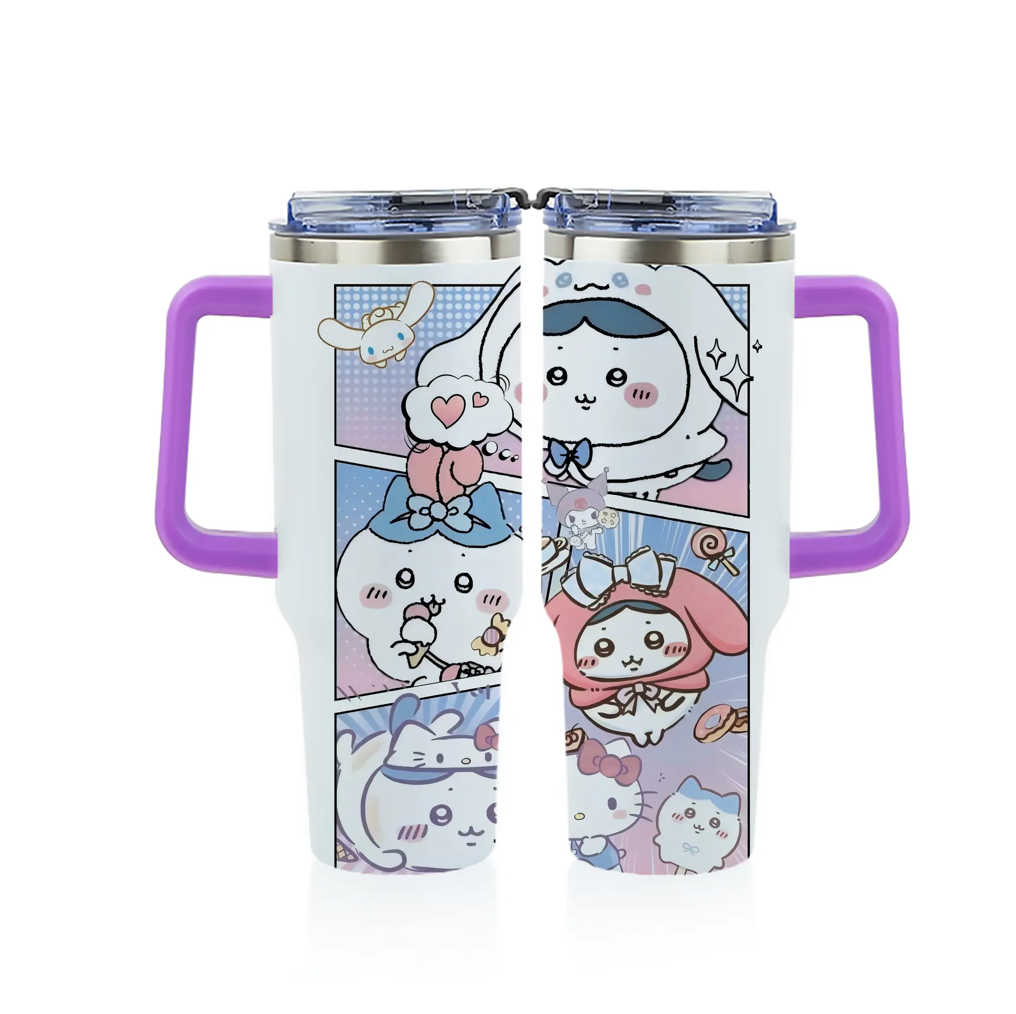 ちい が わ グッズ ハチワレ - 1200mL フルプリント車用タンブラー ・ 304ステンレス 内側 ・ 201ステンレス 外側 ・ 保温 保冷 ・ 通勤 ドライブ アウトドア用