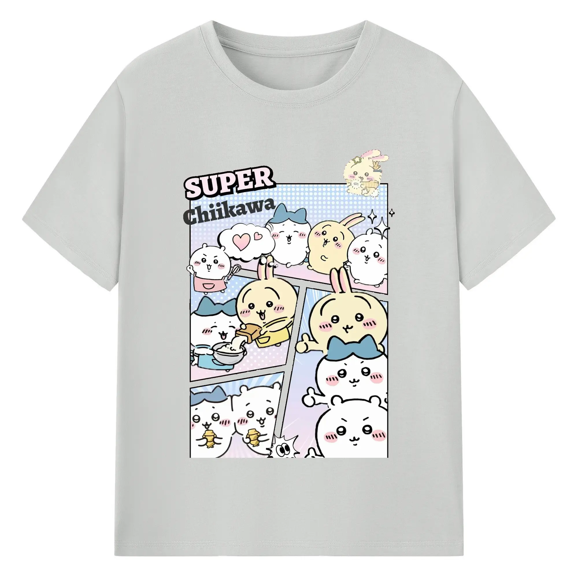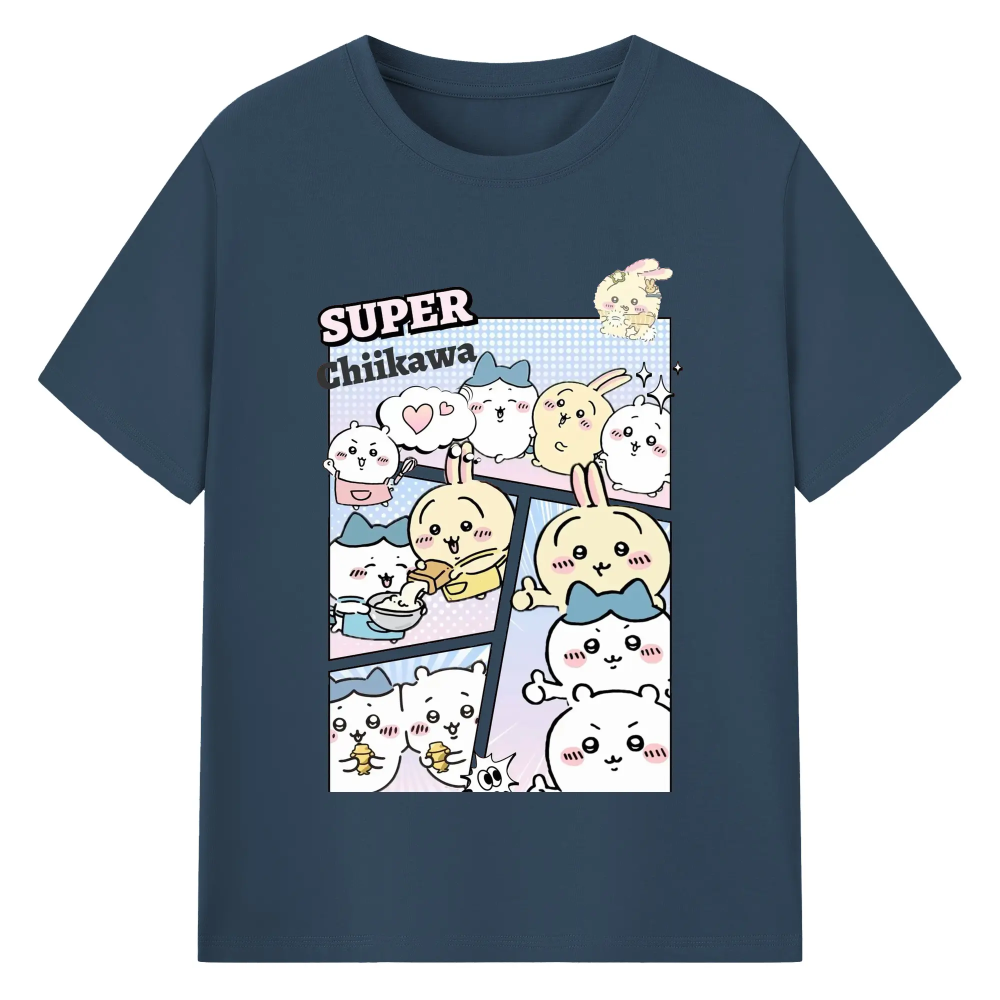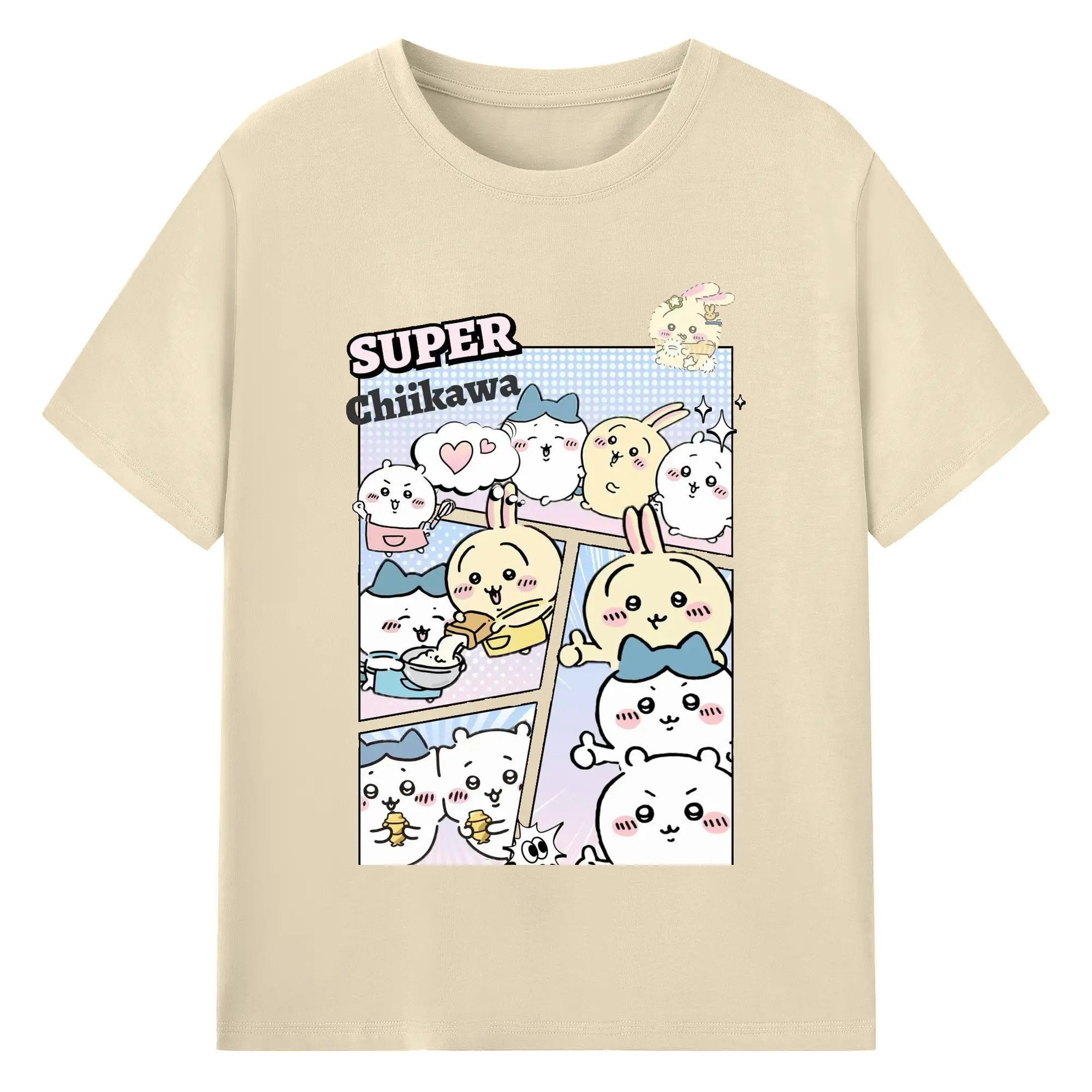 ちい が わ グッズ ハチワレ - 綿100% 半袖Tシャツ ・ バックプリント ・ 快適 通気性 ・ 日常使い 散歩 スポーツ用