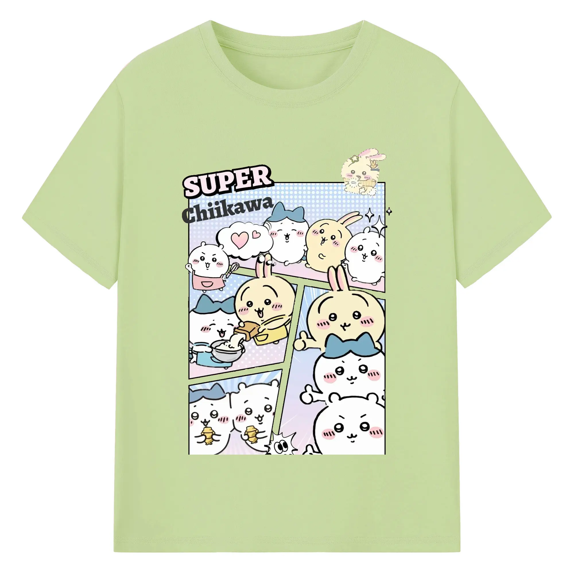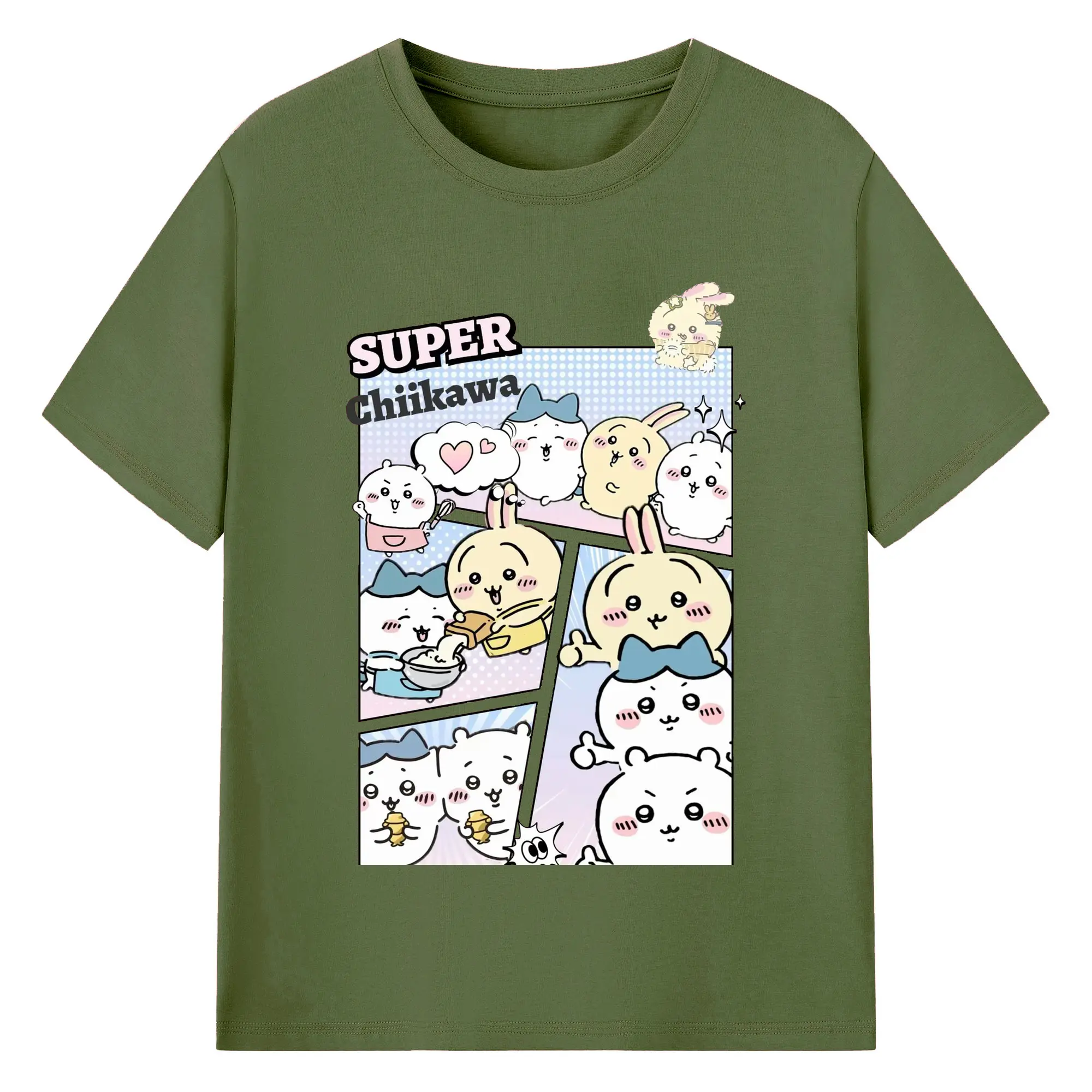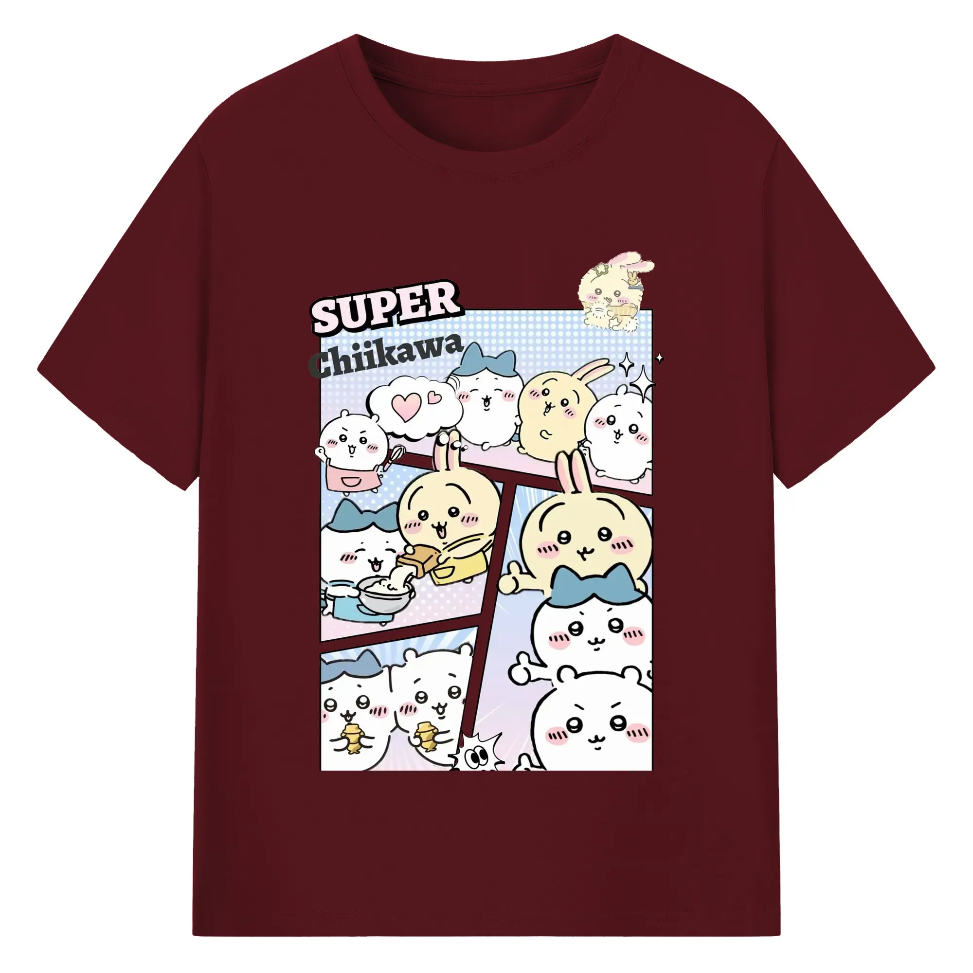 ちい が わ グッズ ハチワレ - 綿100% 半袖Tシャツ ・ バックプリント ・ 快適 通気性 ・ 日常使い 散歩 スポーツ用