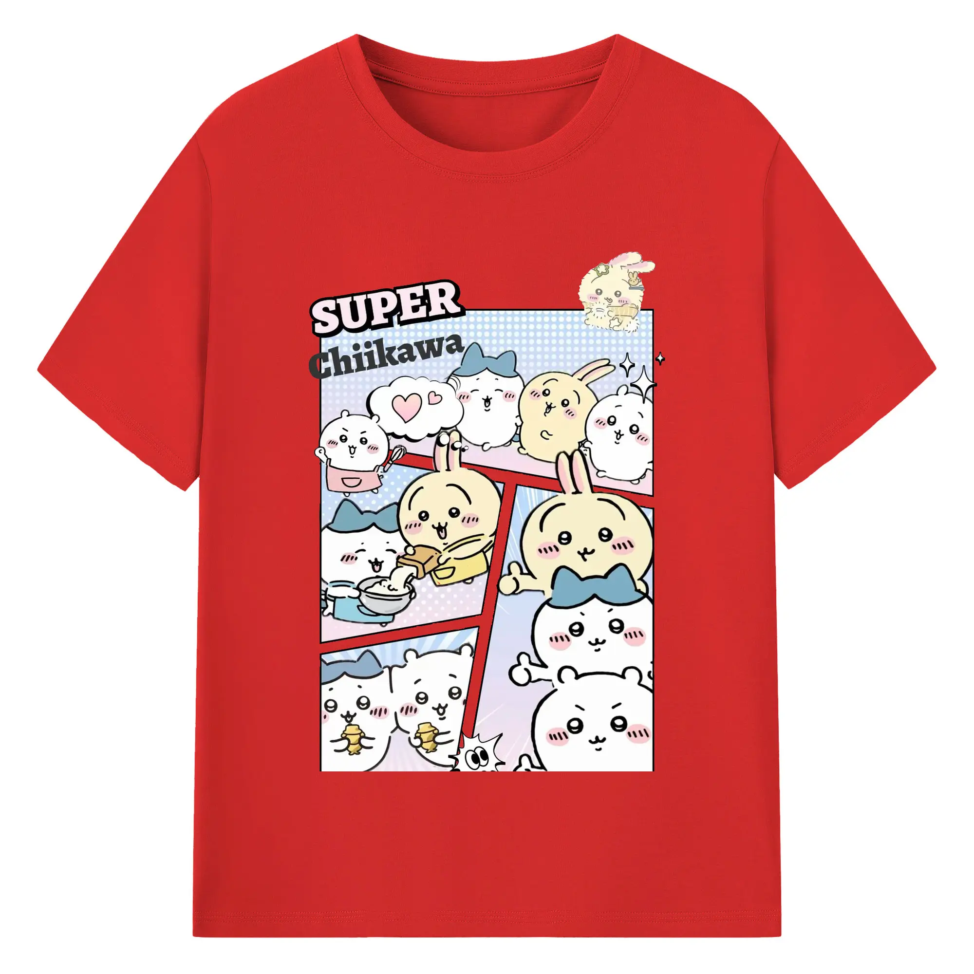ちい が わ グッズ ハチワレ - 綿100% キッズTシャツ ・ フロントプリント ・ 快適 通気性 ・ スポーツ カジュアル 散歩用