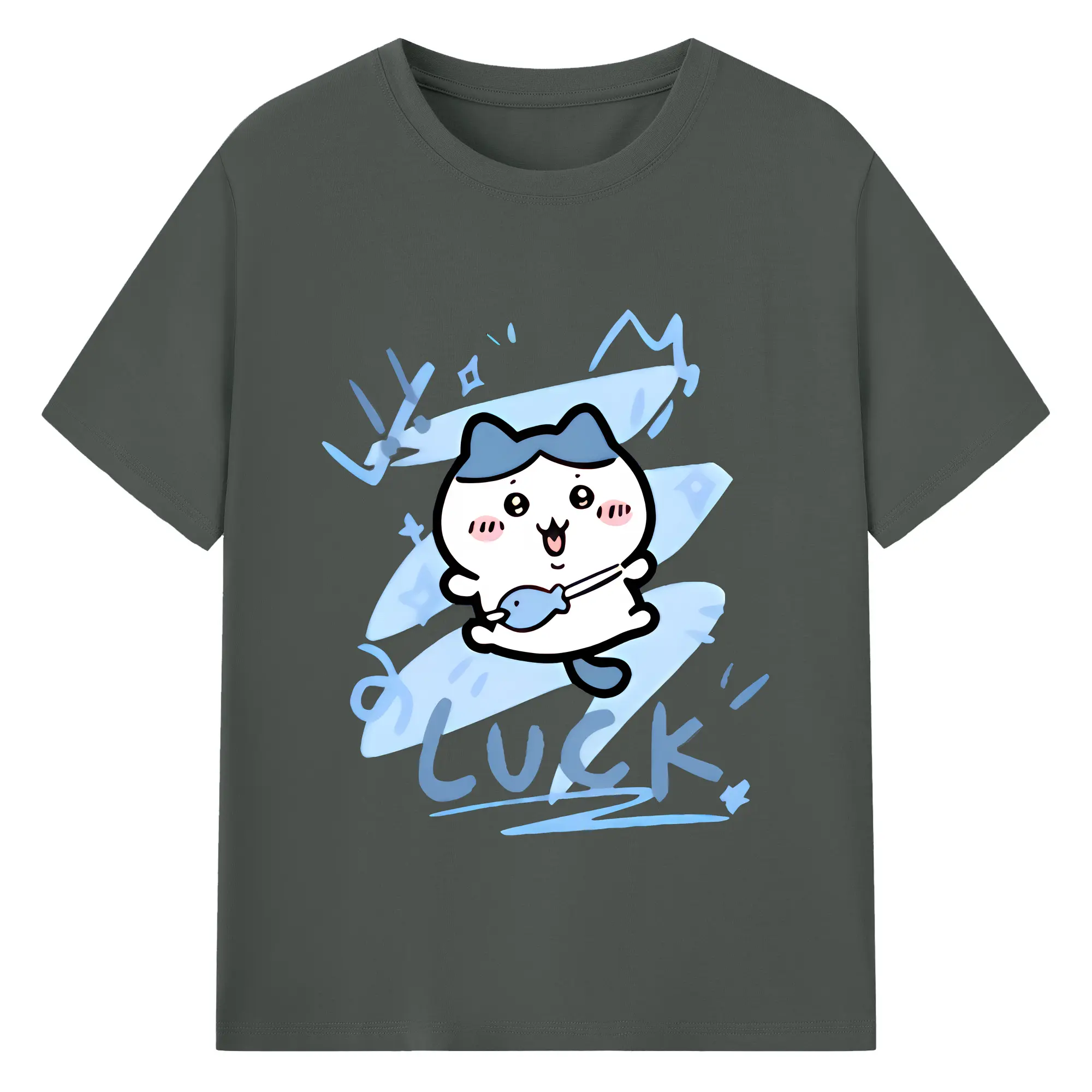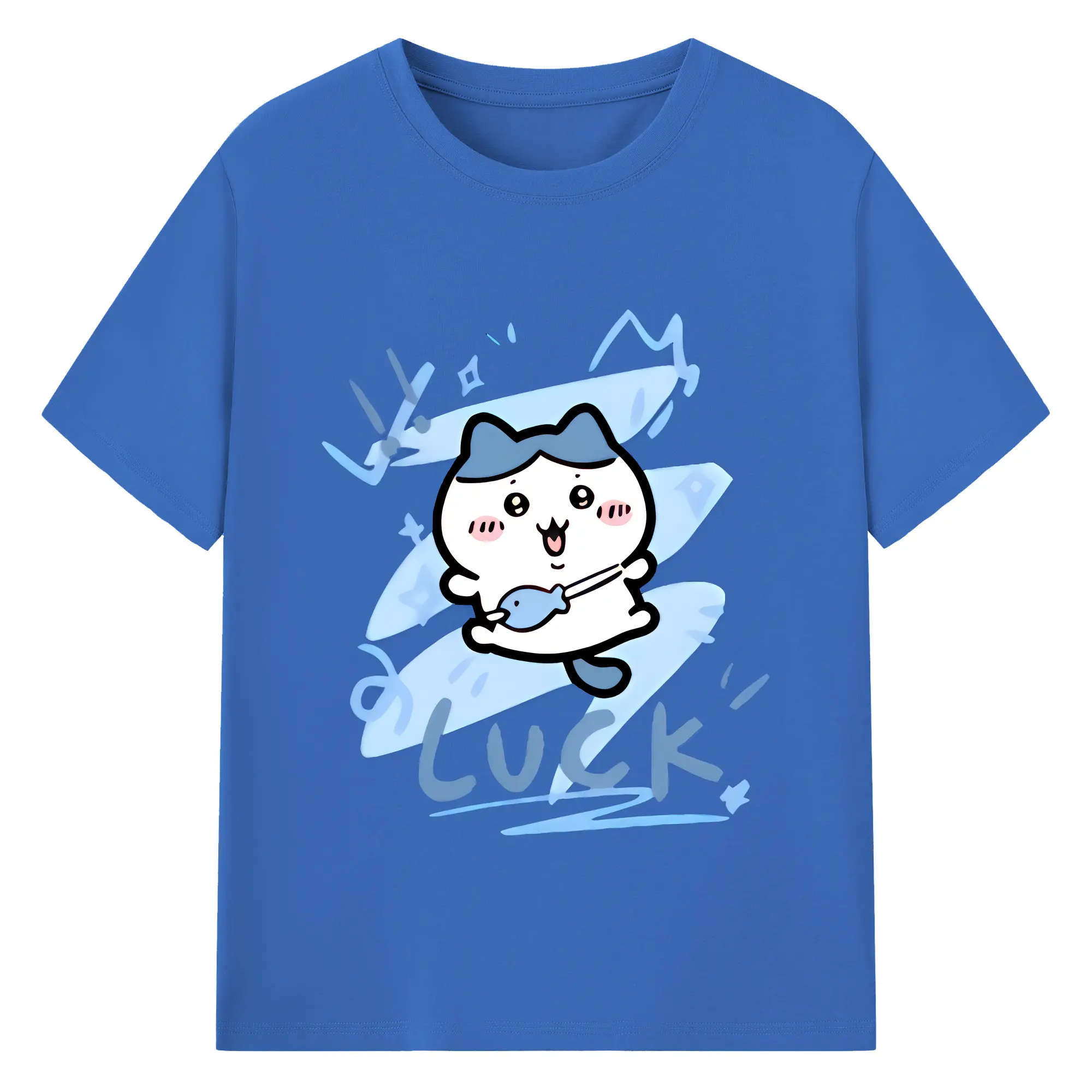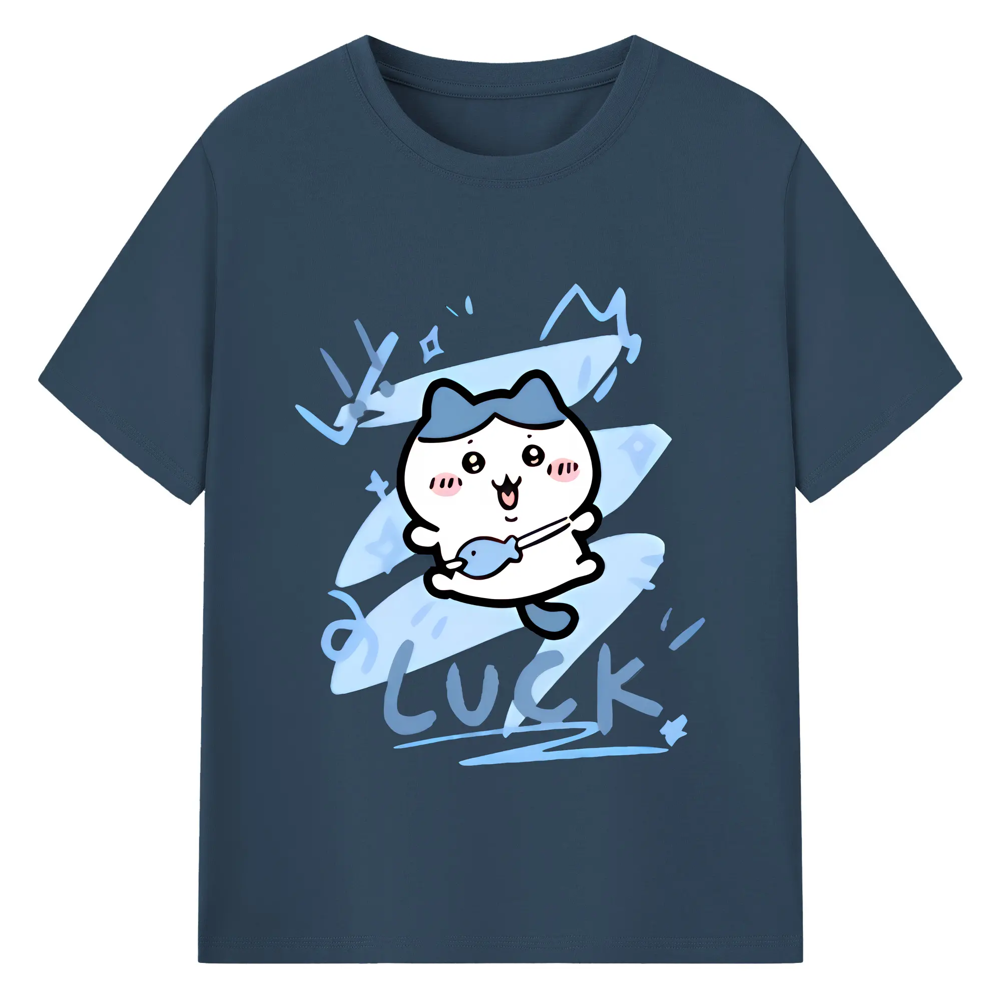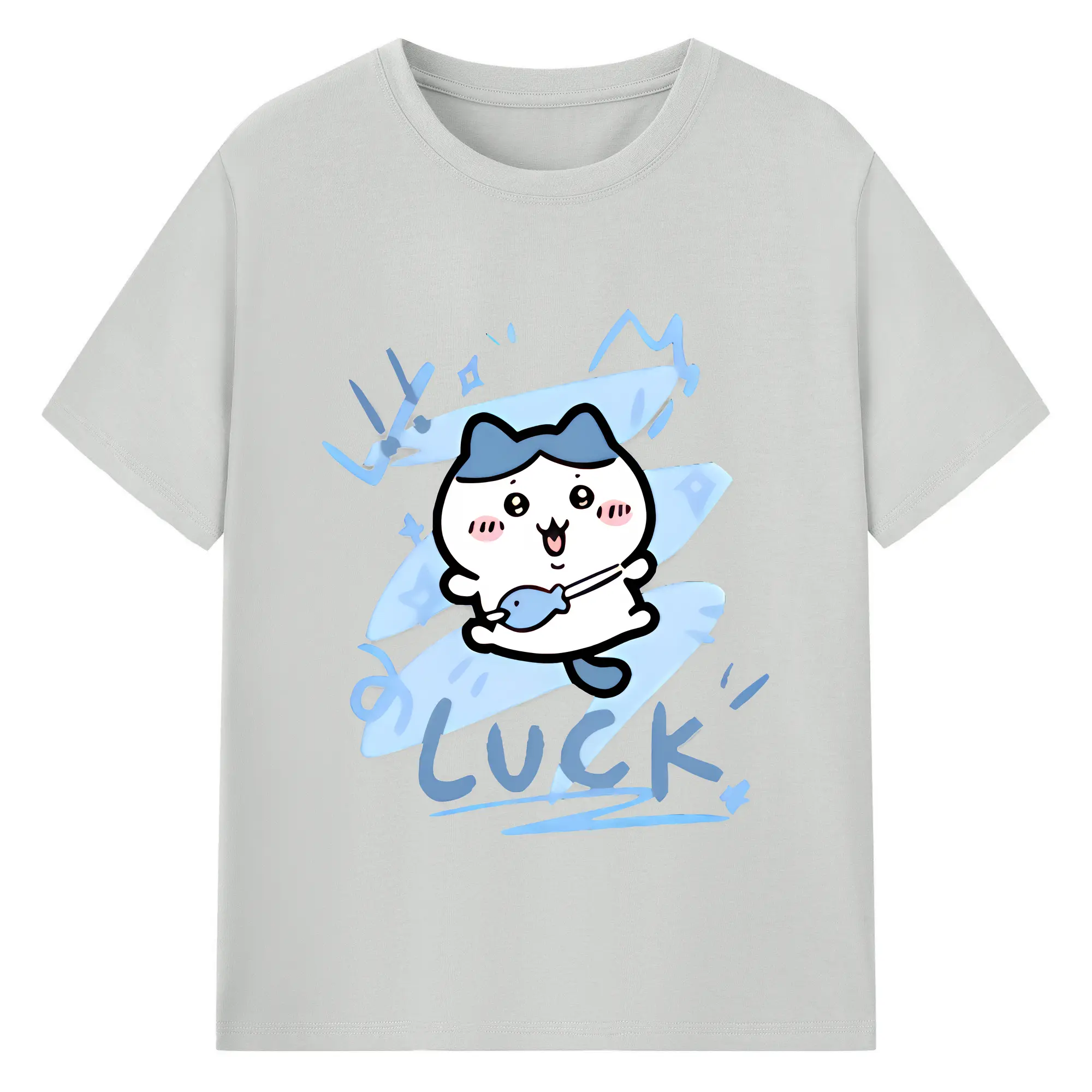 ちい が わ グッズ ハチワレ - 綿100% 半袖Tシャツ ・ バックプリント ・ 快適 通気性 ・ 日常使い 散歩 スポーツ用