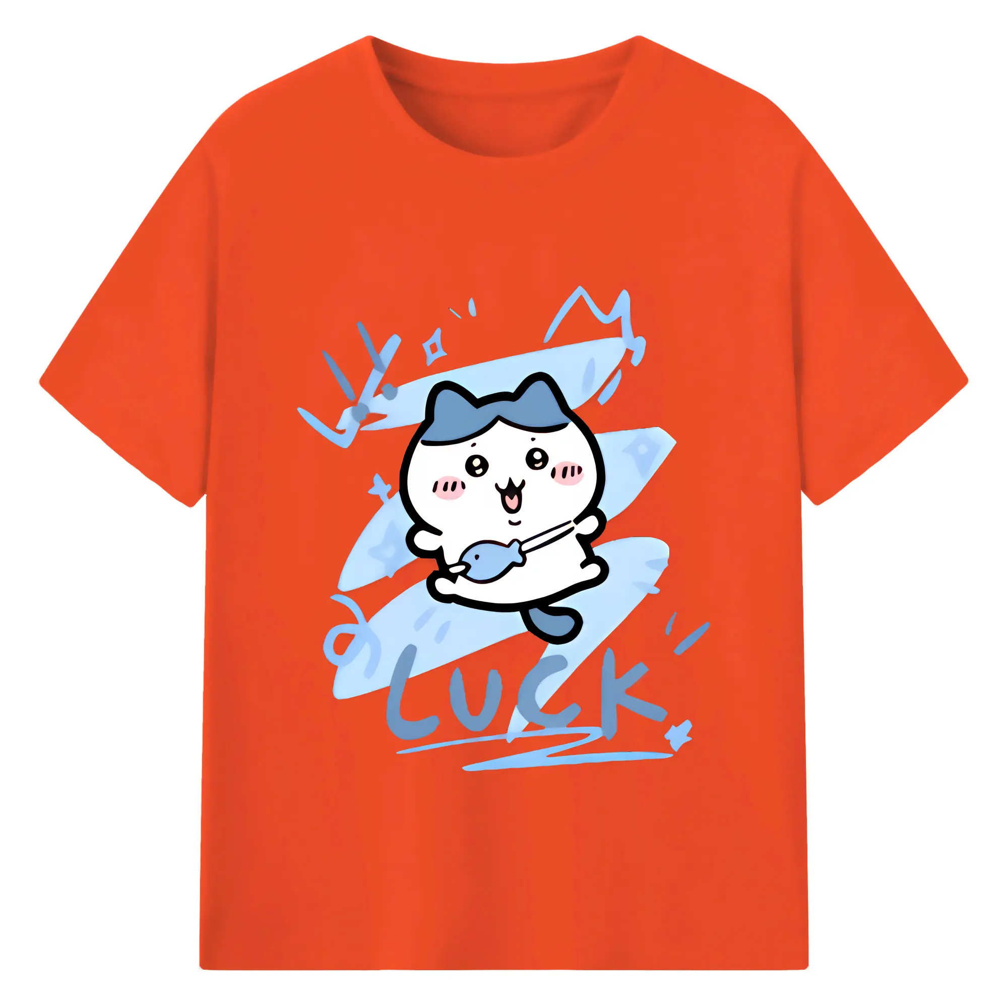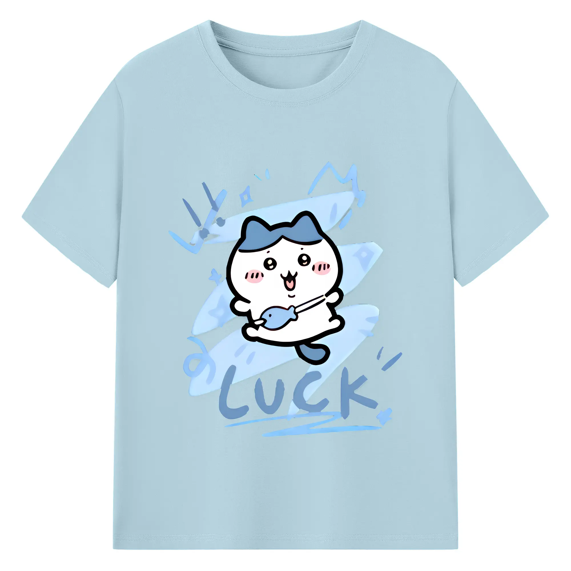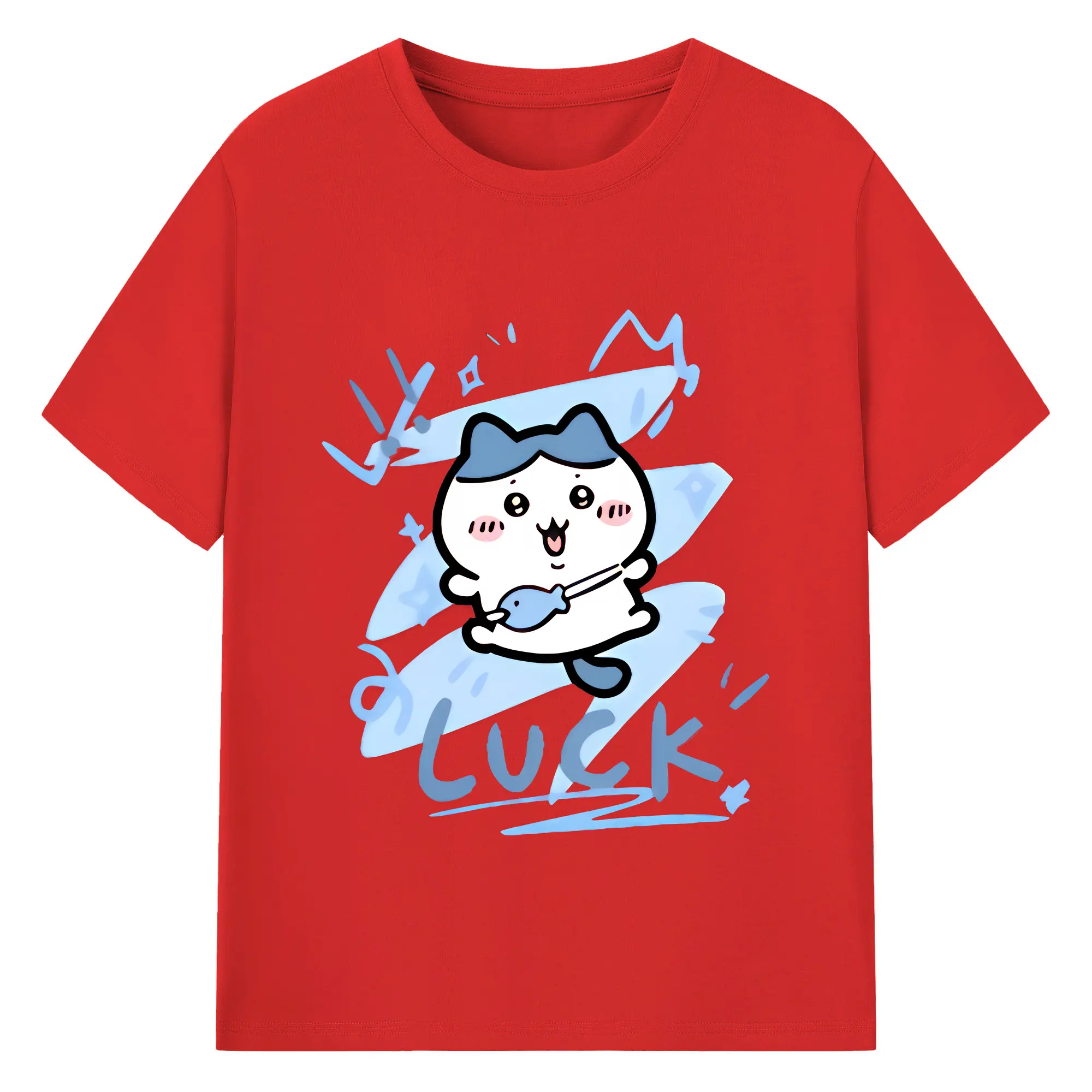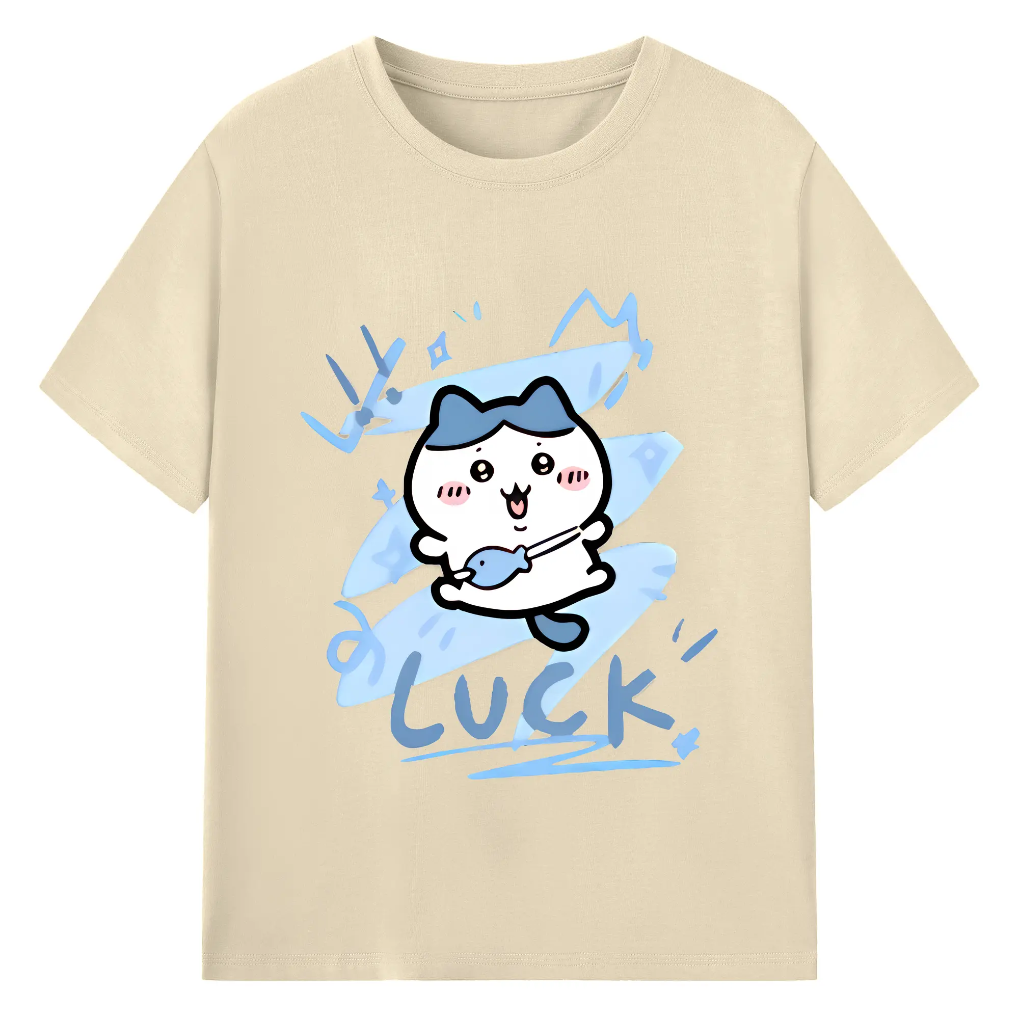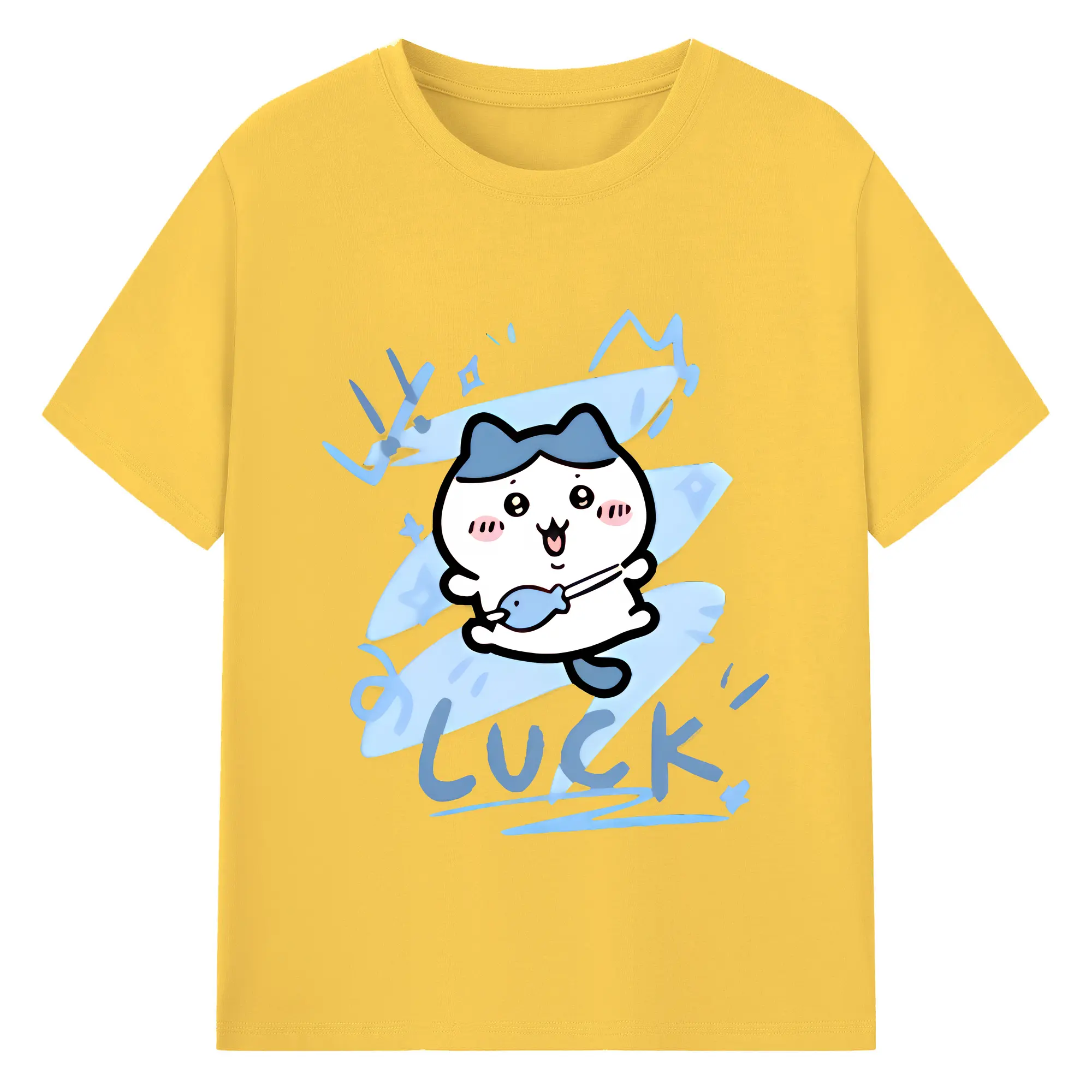 ちい が わ グッズ ハチワレ - 綿100% 半袖Tシャツ ・ バックプリント ・ 快適 通気性 ・ 日常使い 散歩 スポーツ用