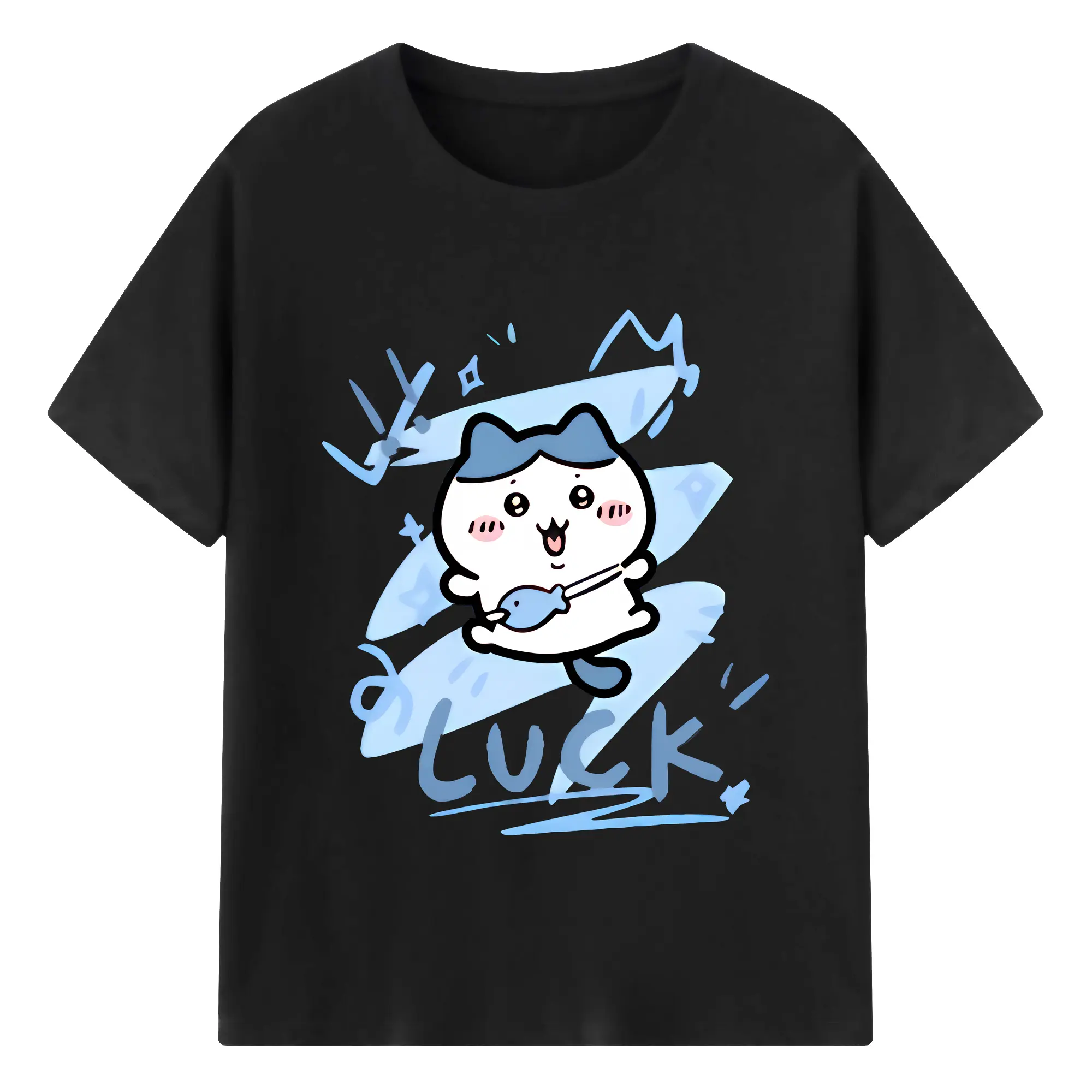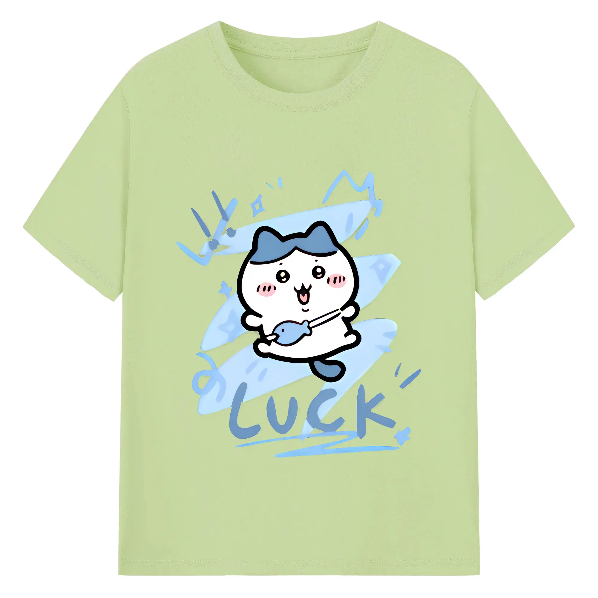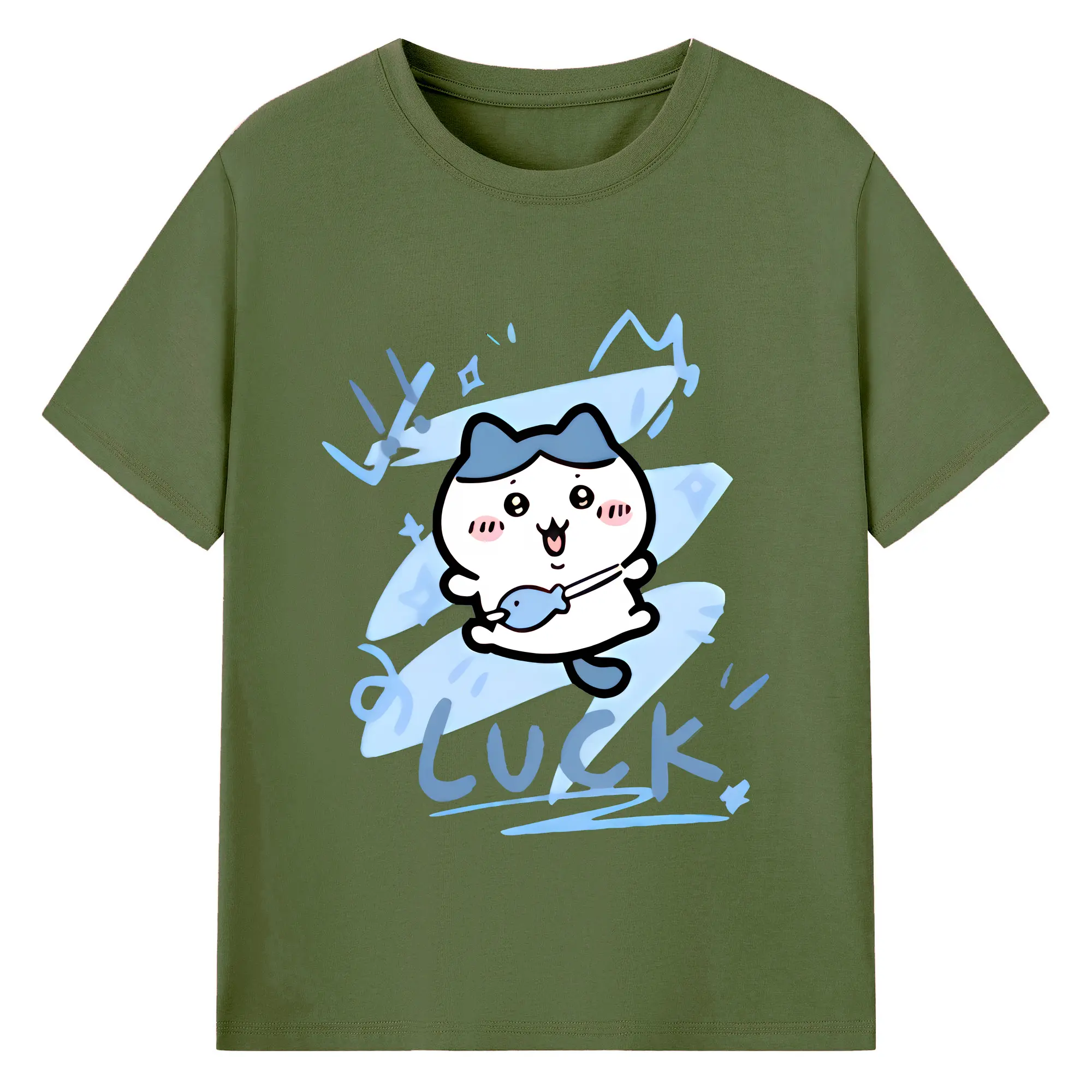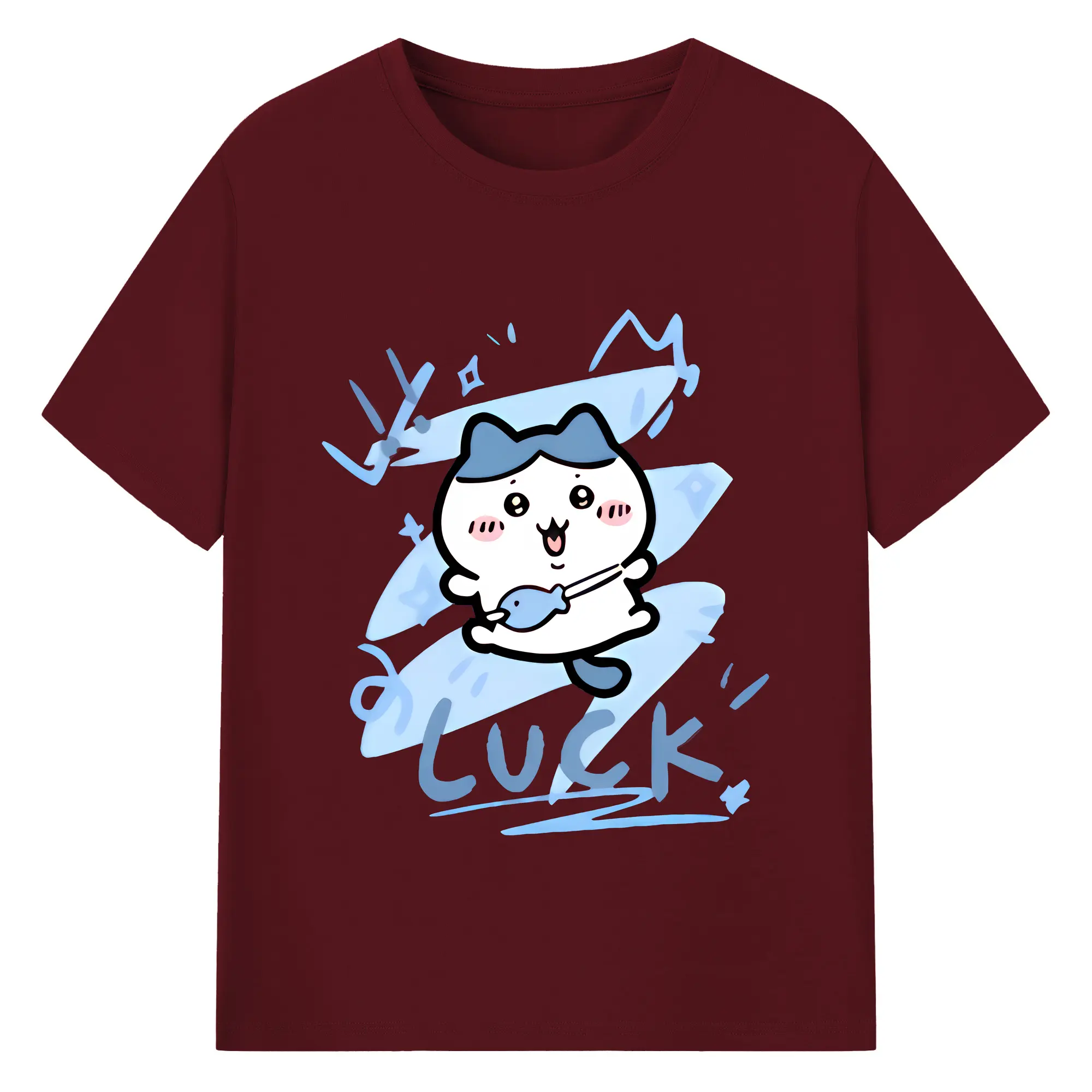ちい が わ グッズ ハチワレ - 綿100% 半袖Tシャツ ・ バックプリント ・ 快適 通気性 ・ 日常使い 散歩 スポーツ用