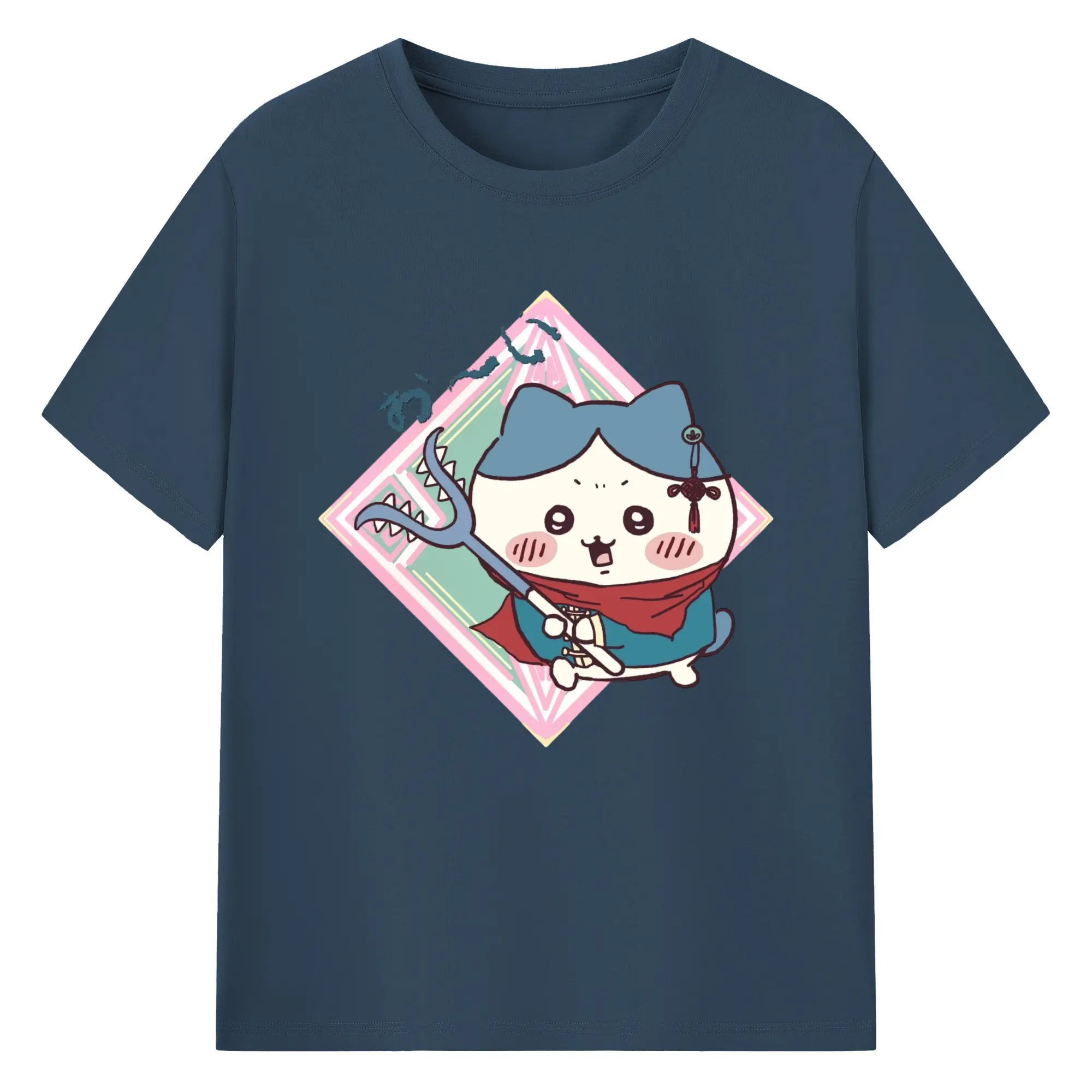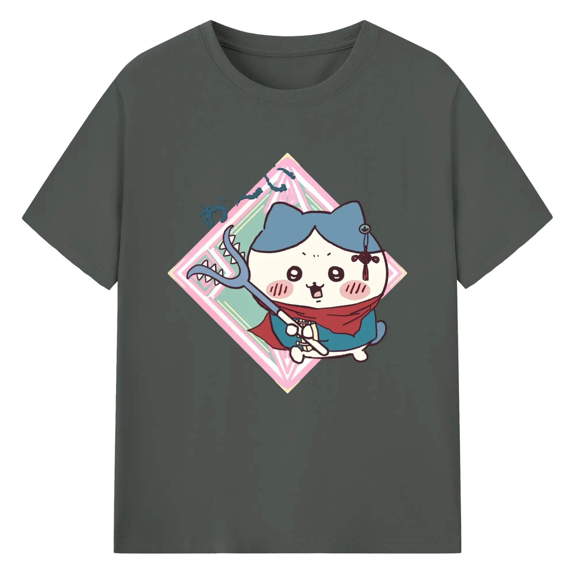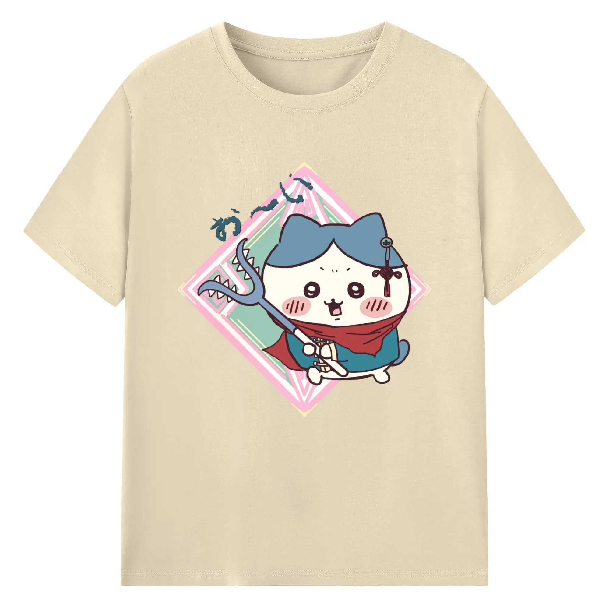 ちい が わ グッズ ハチワレ - 綿100% ヴィンテージ風 半袖Tシャツ ・ フロントプリント ・ 柔らか肌触り ・ 通気性 快適 ・ スポーツ カジュアル 外出用