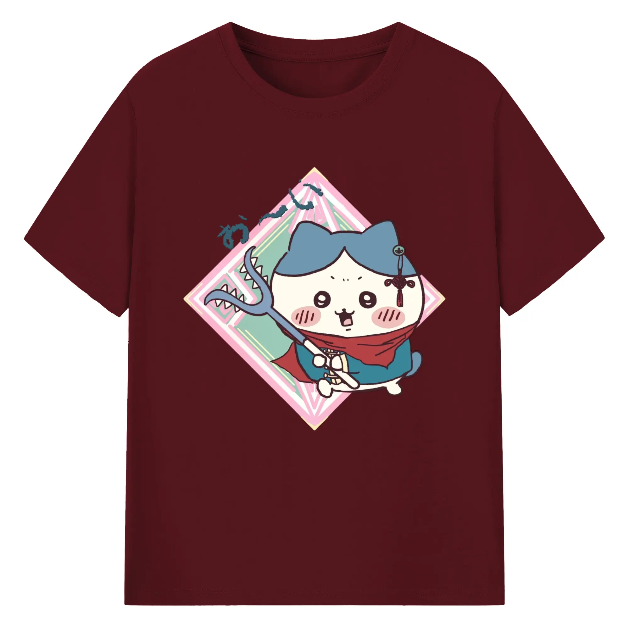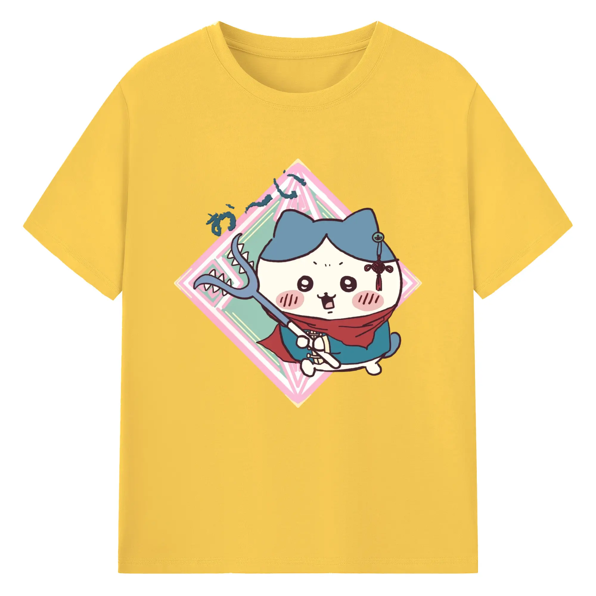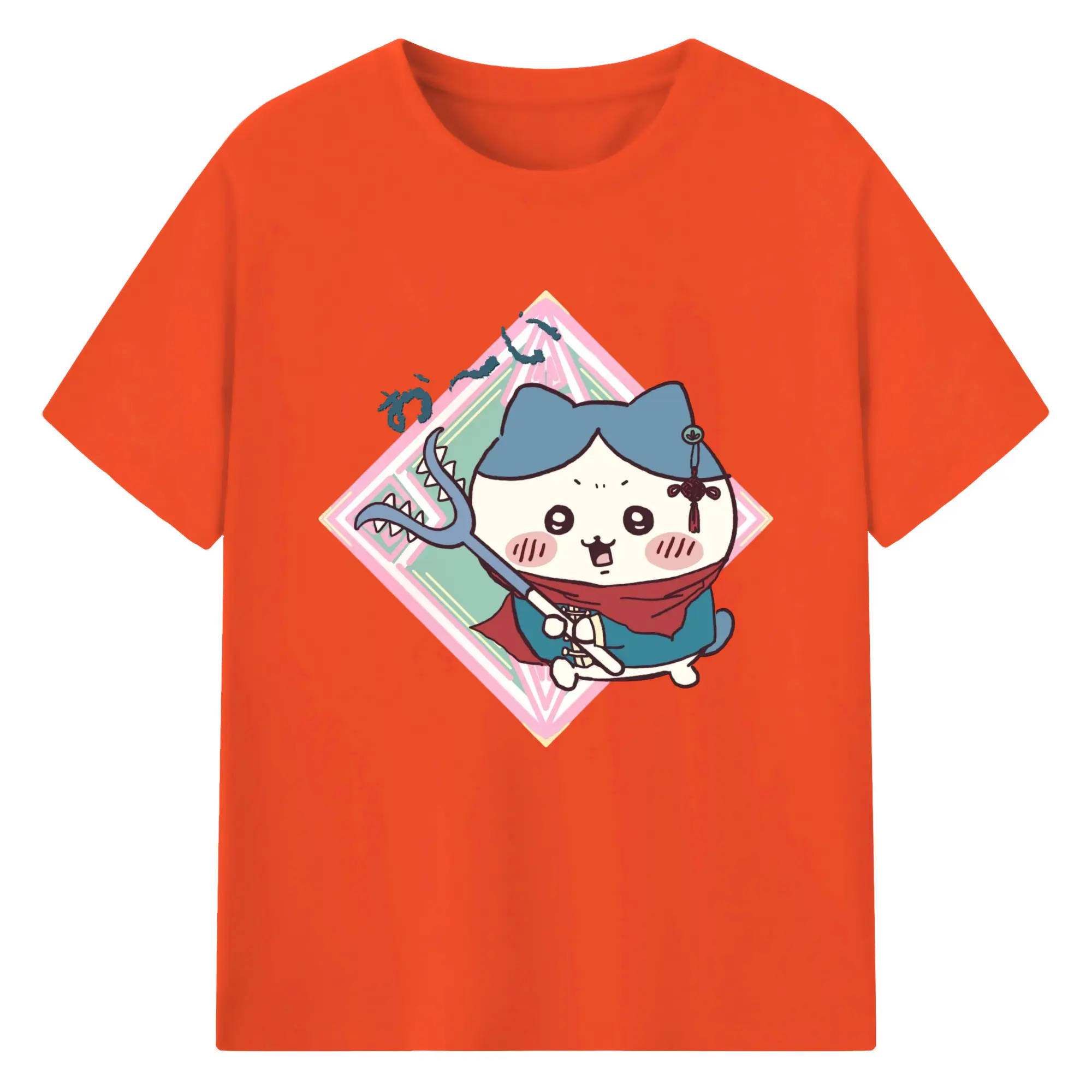 ちい が わ グッズ ハチワレ - 綿100% ヴィンテージ風 半袖Tシャツ ・ フロントプリント ・ 柔らか肌触り ・ 通気性 快適 ・ スポーツ カジュアル 外出用