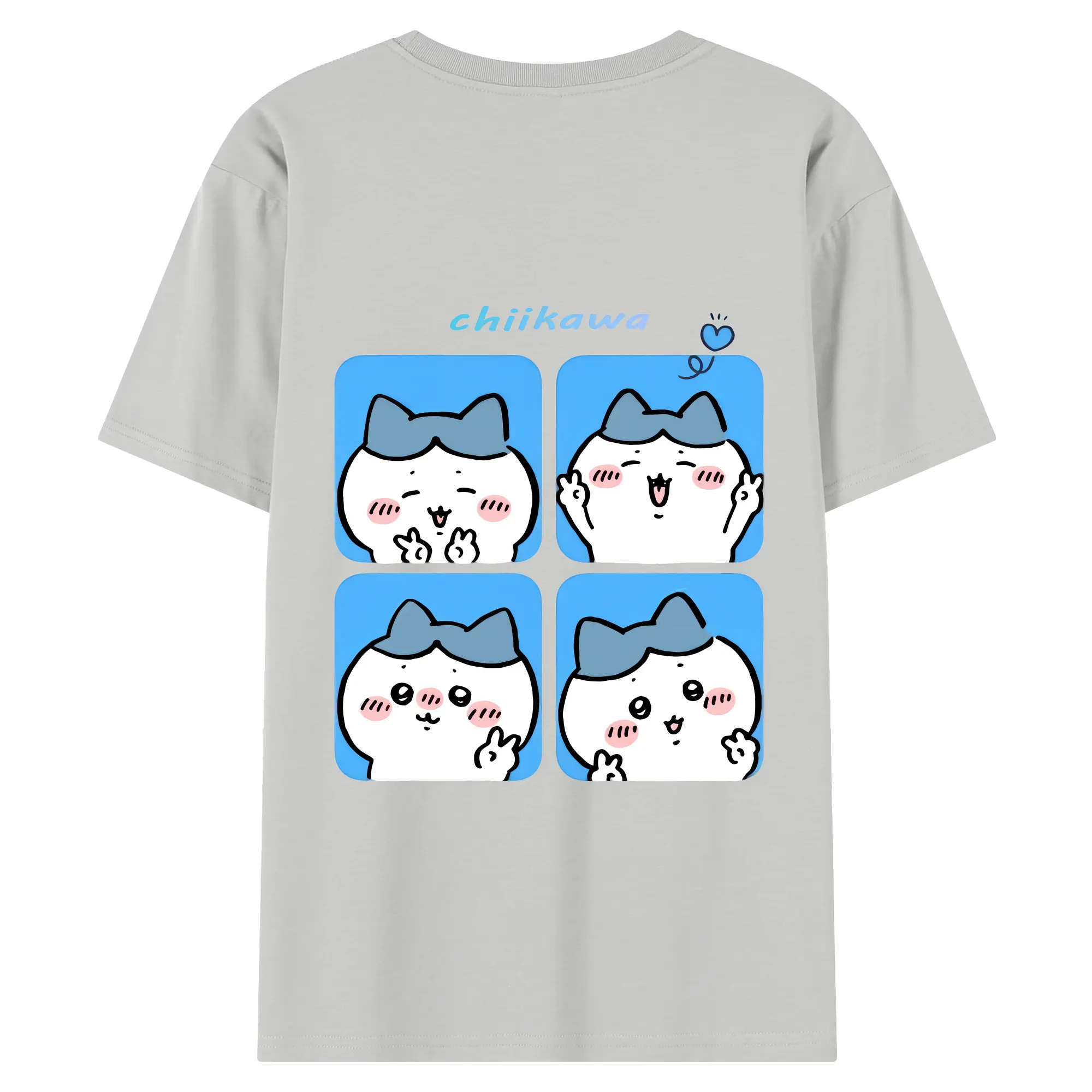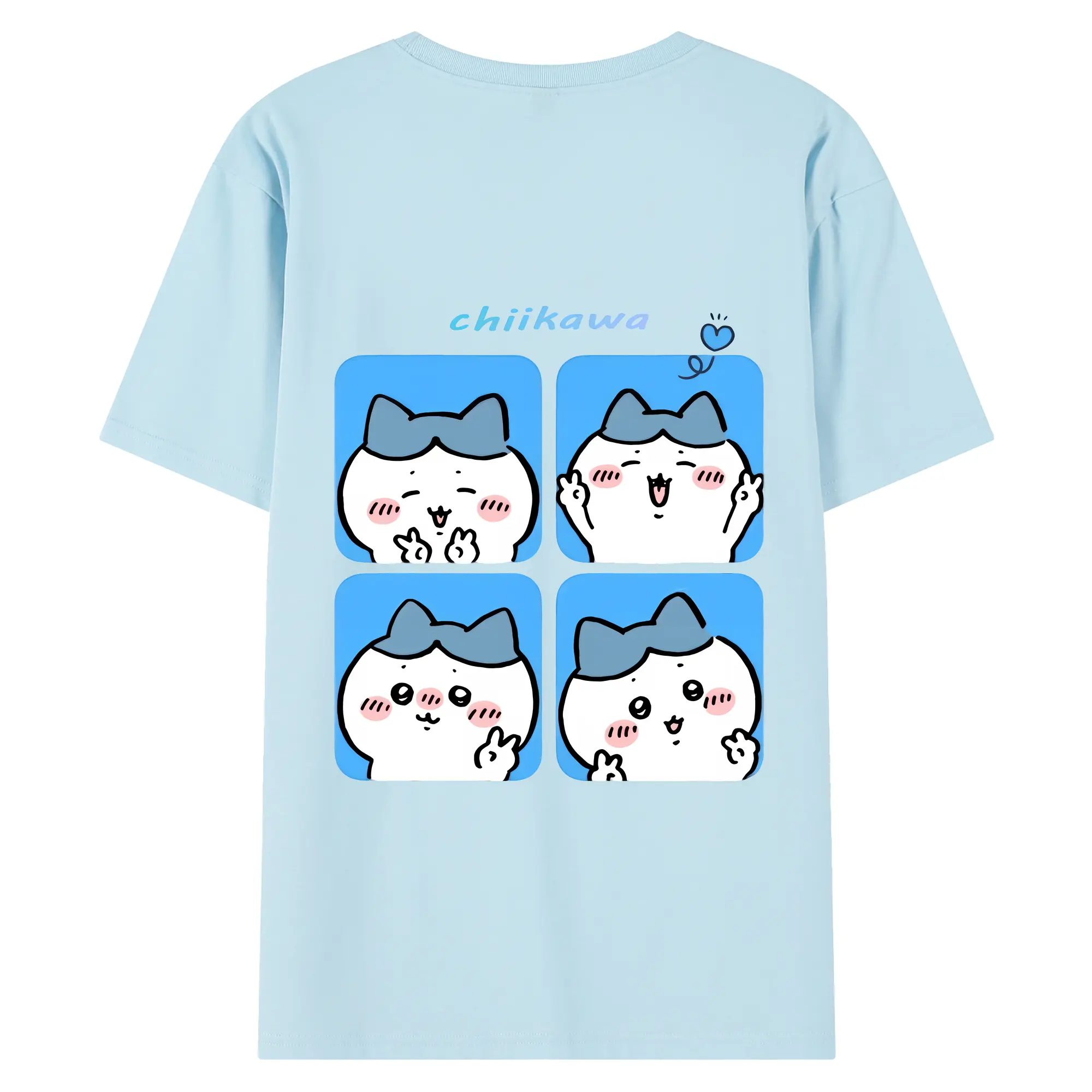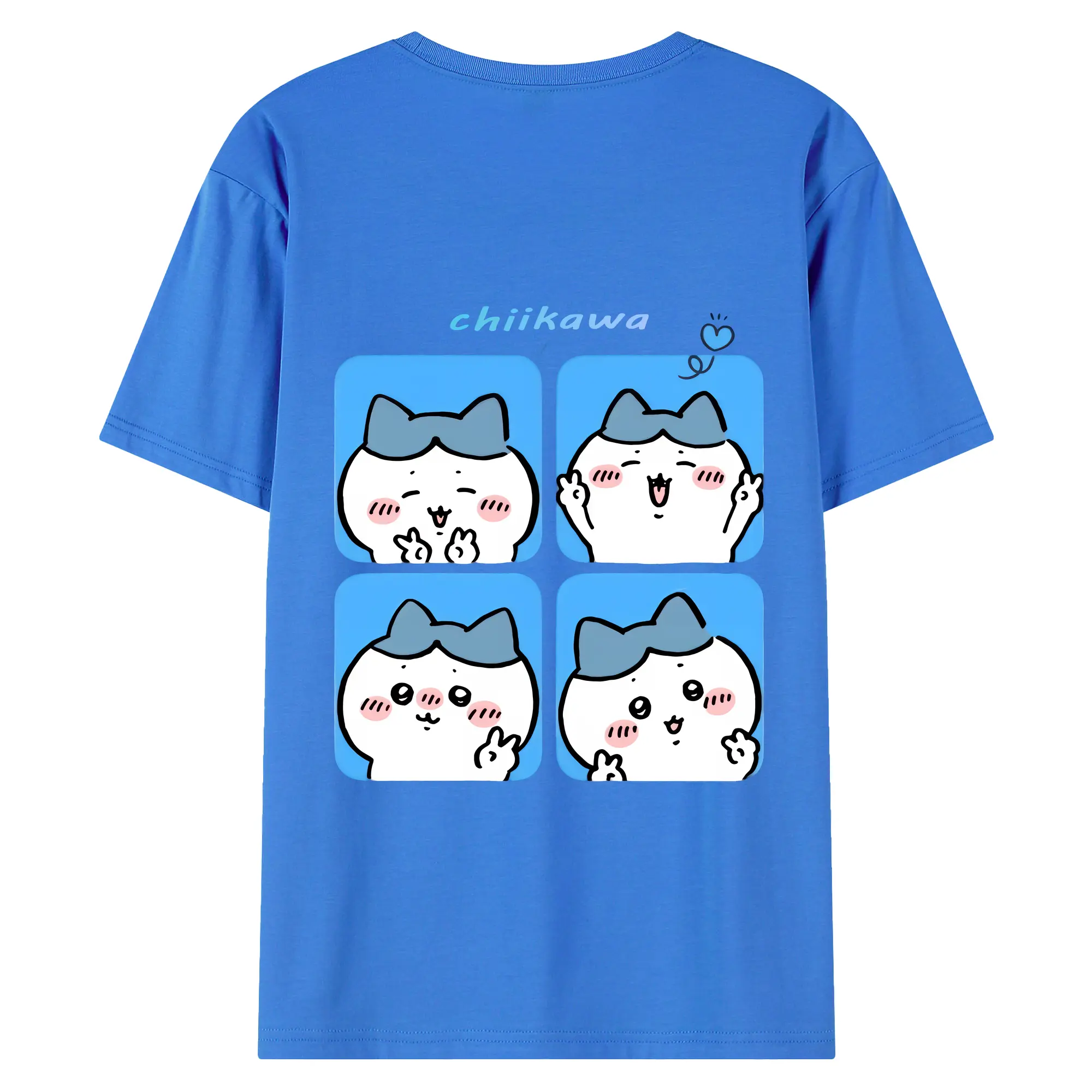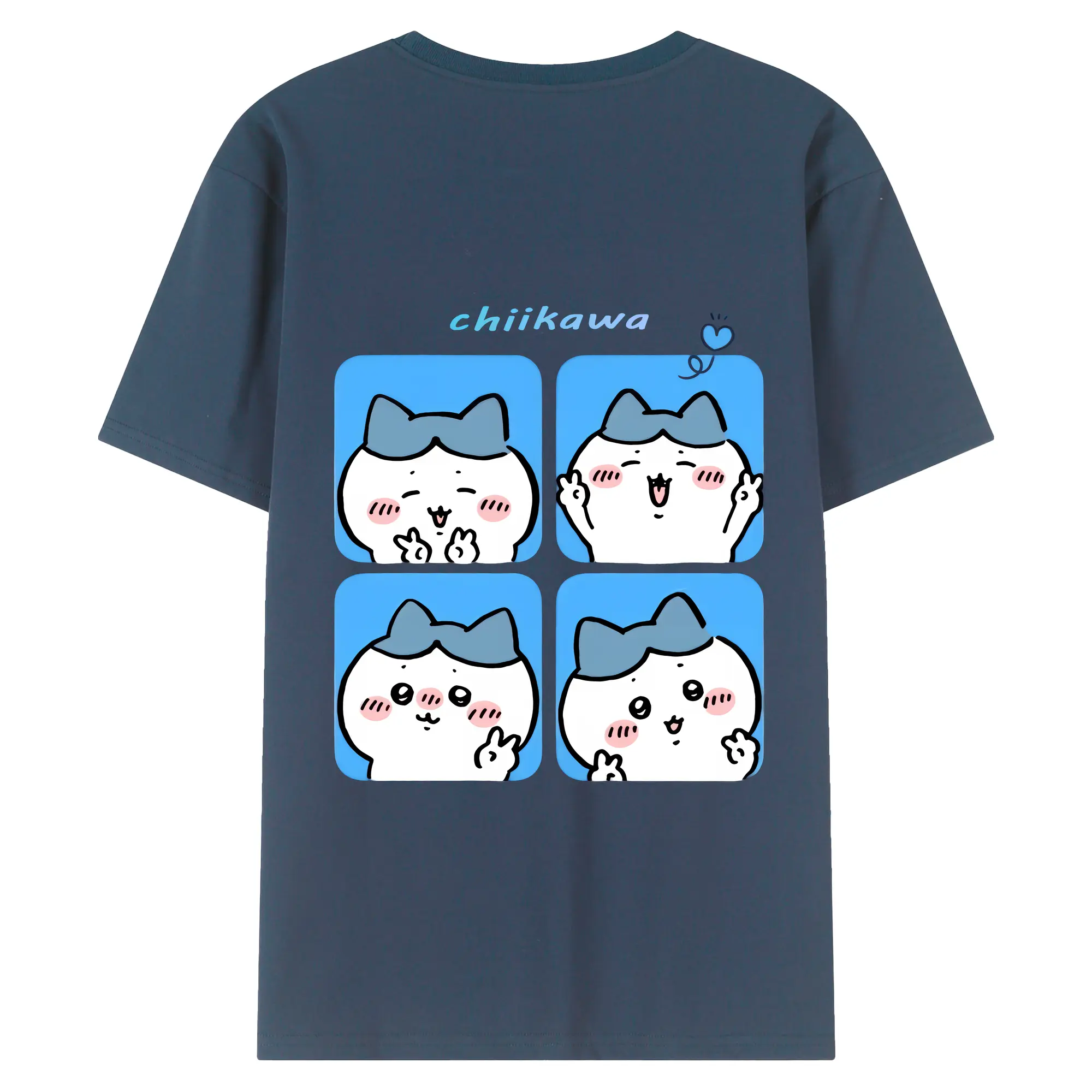 ちい が わ グッズ ハチワレ - 綿100% 半袖Tシャツ ・ フロントプリント ・ 快適 通気性 ・ 日常使い 散歩 スポーツ用