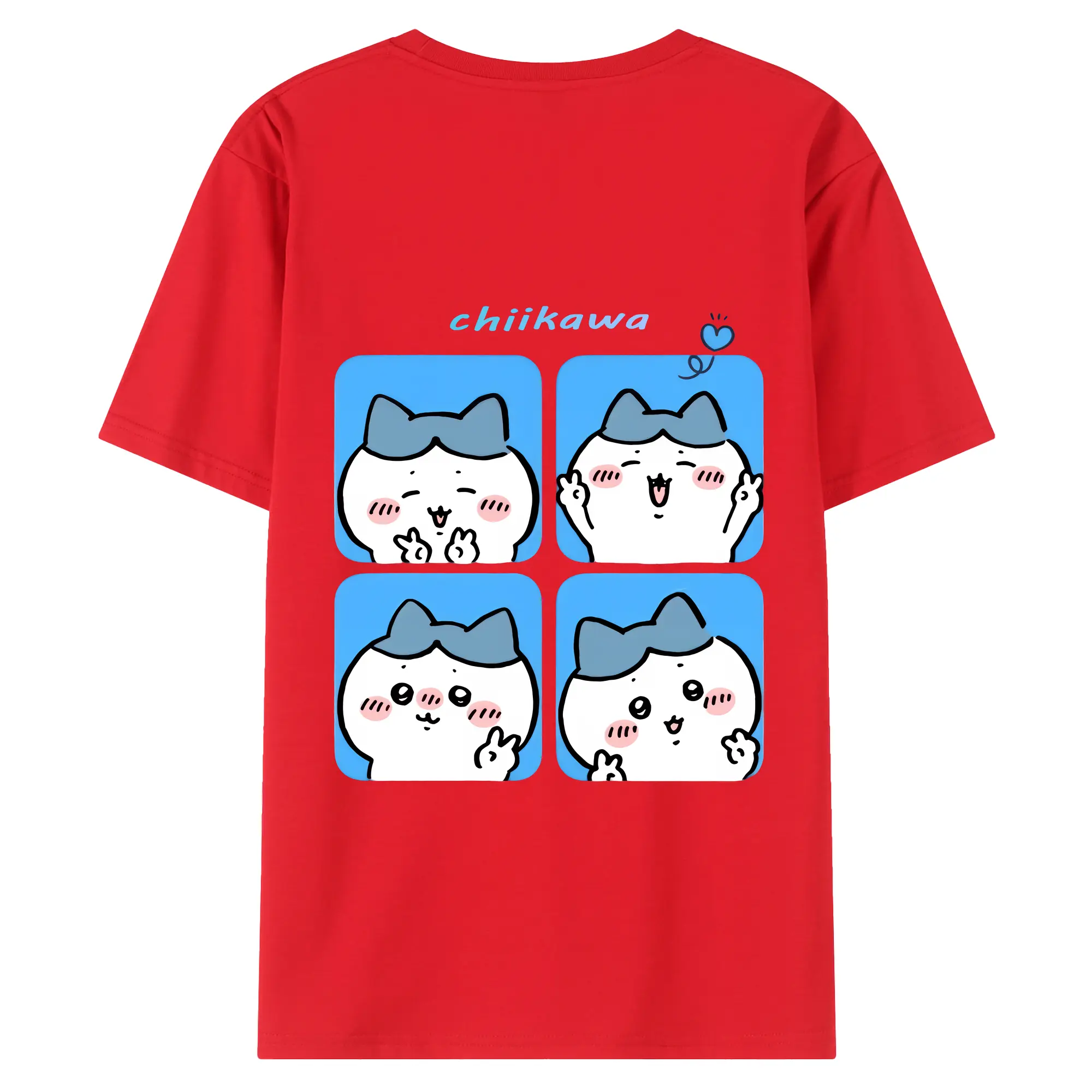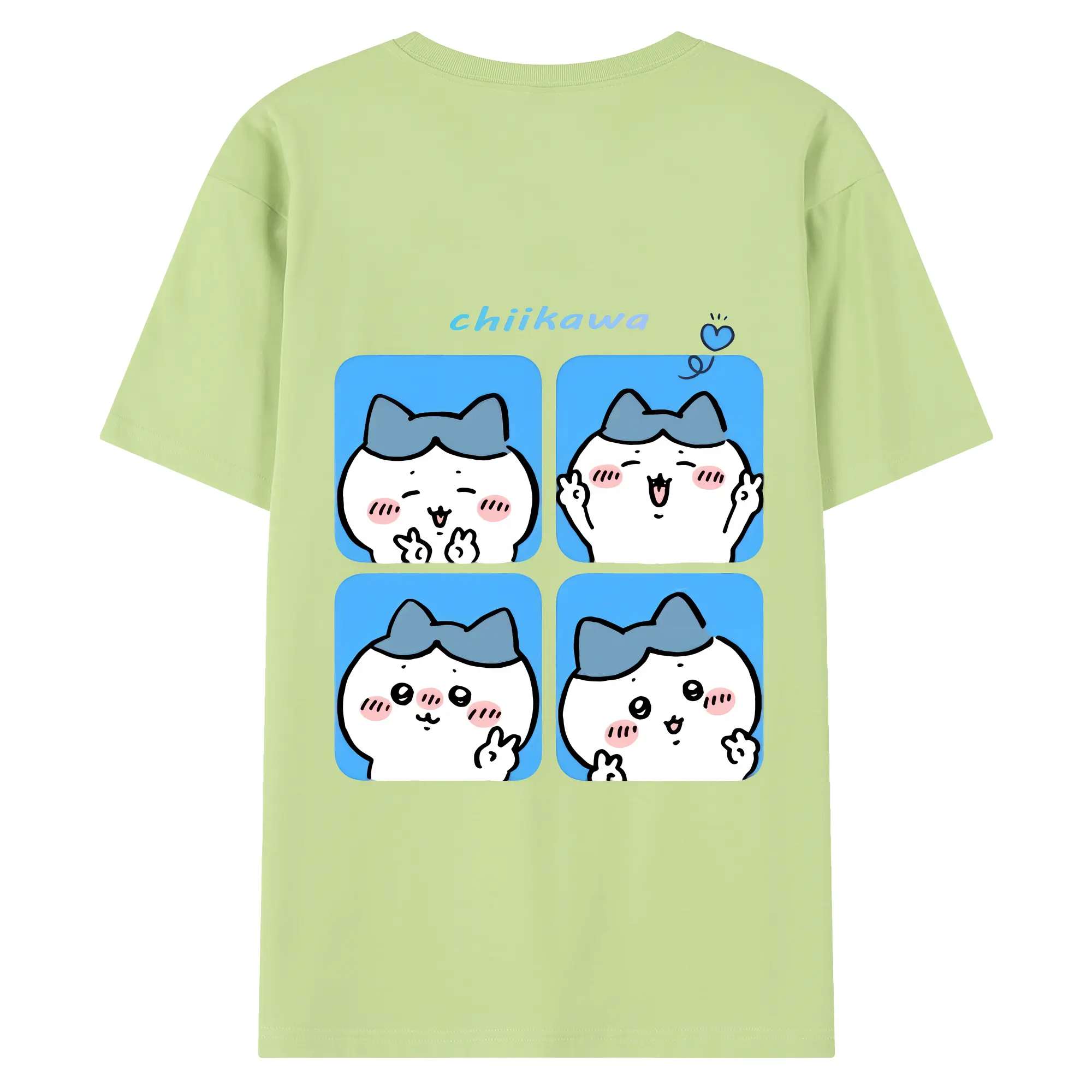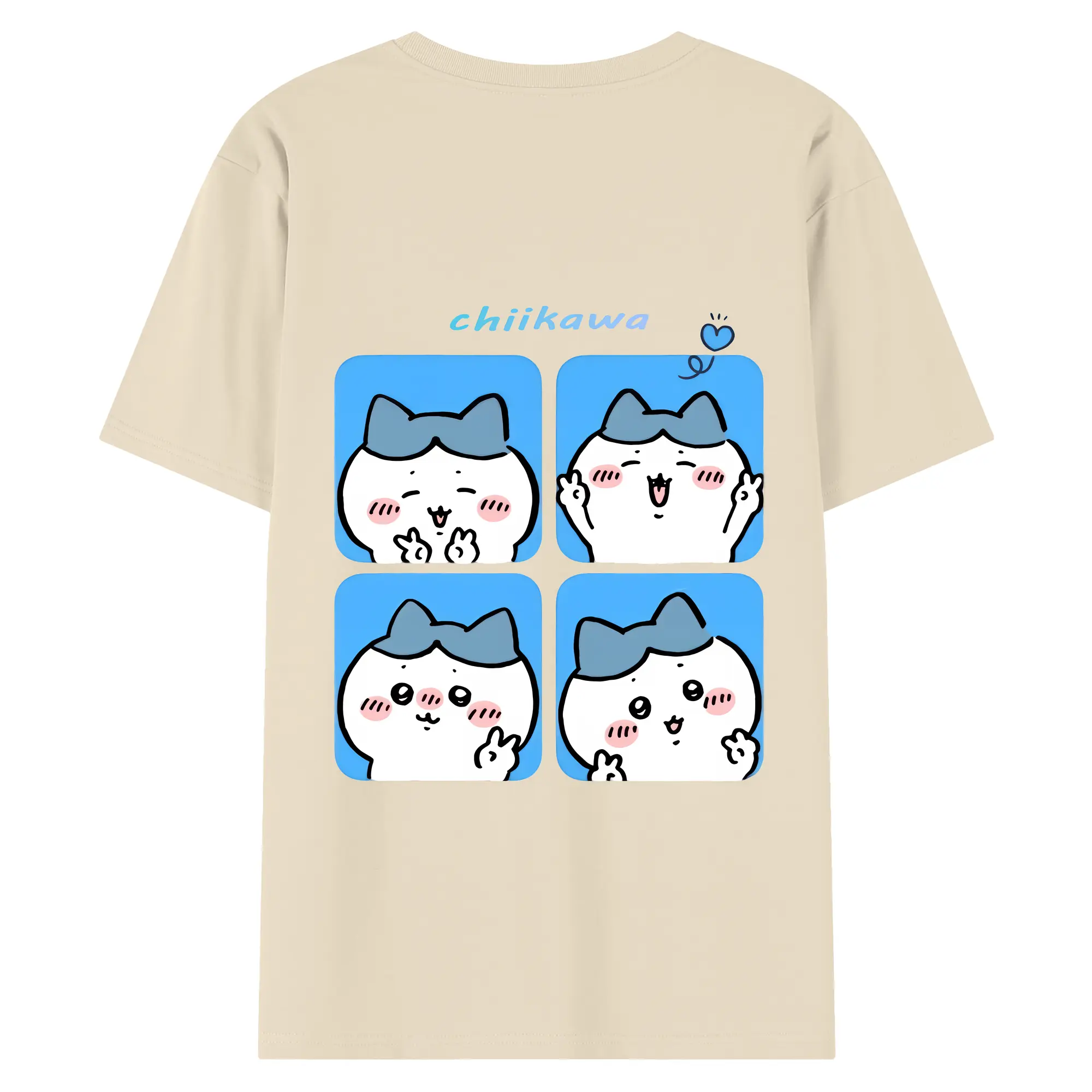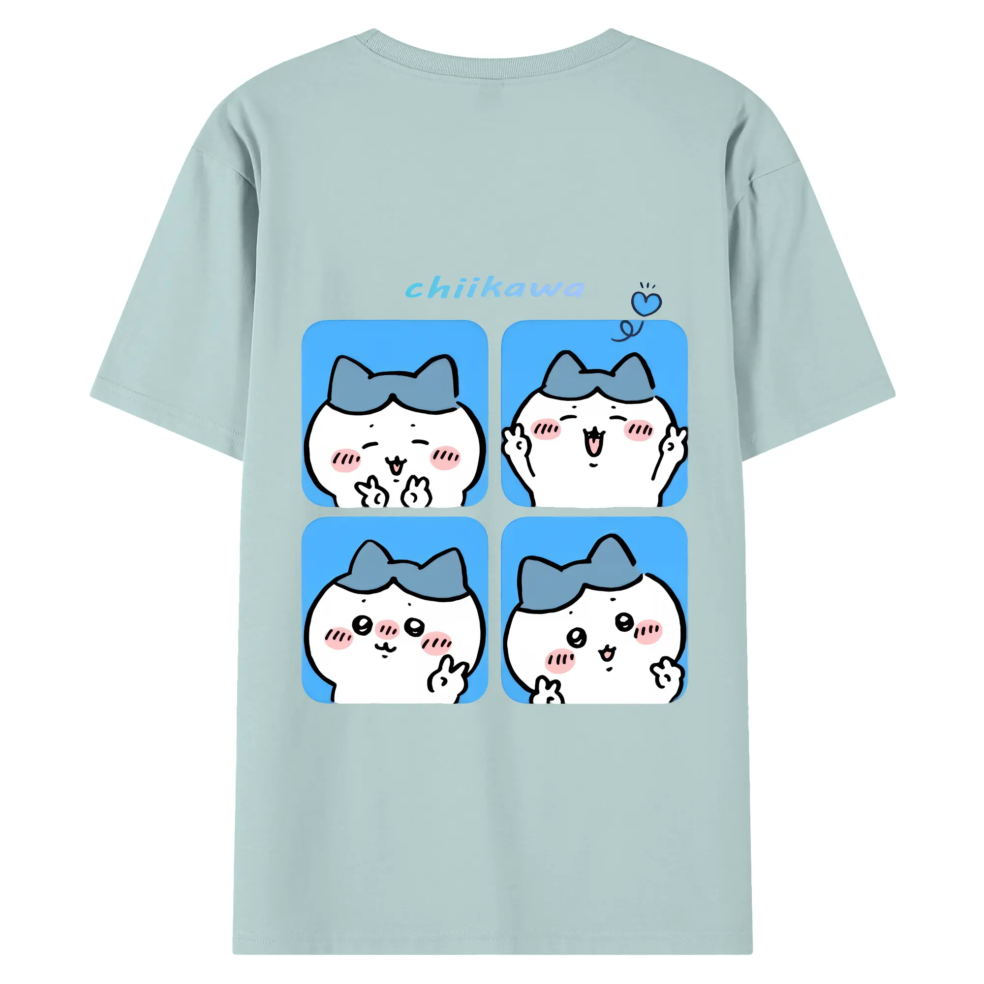 ちい が わ グッズ ハチワレ - 綿100% 半袖Tシャツ ・ フロントプリント ・ 快適 通気性 ・ 日常使い 散歩 スポーツ用