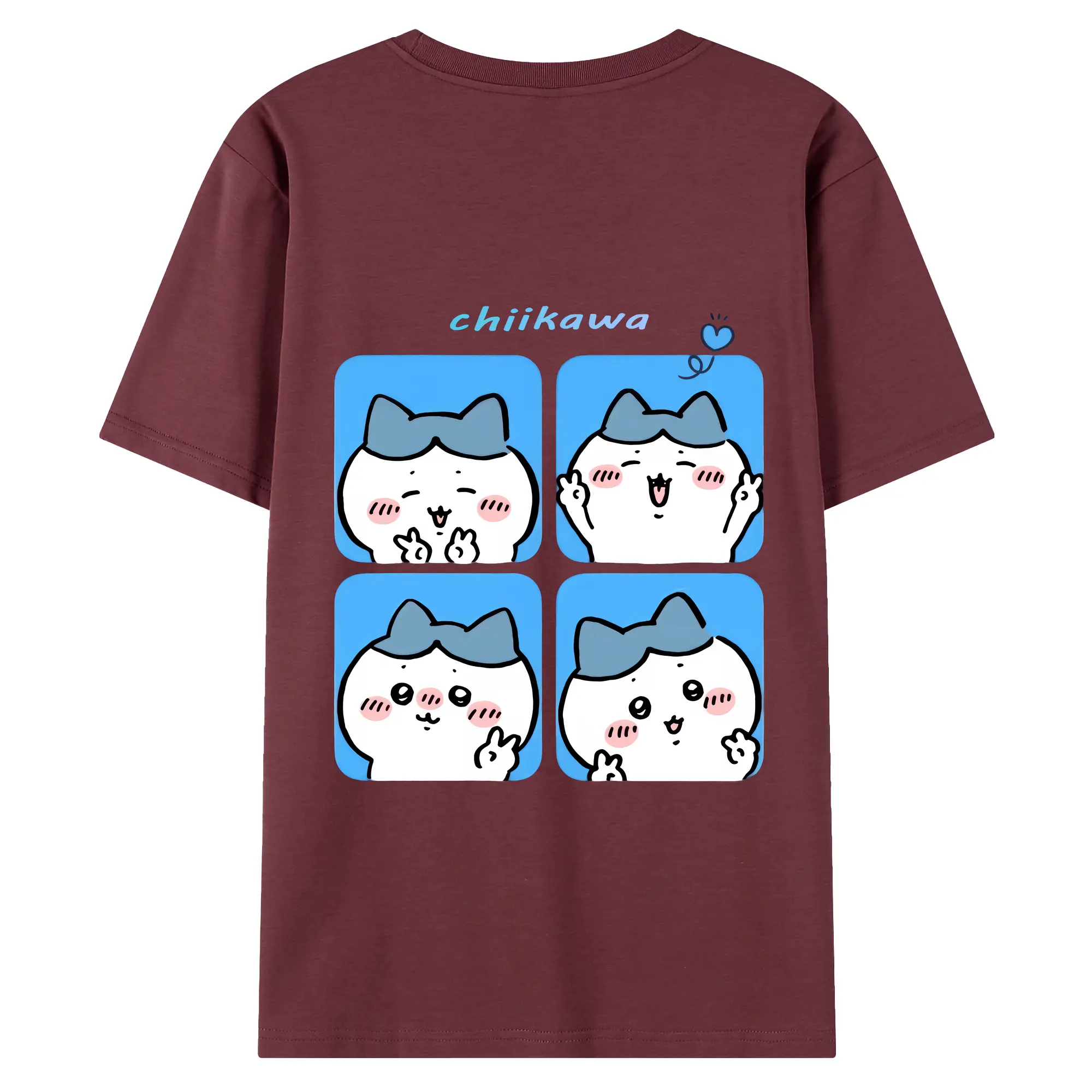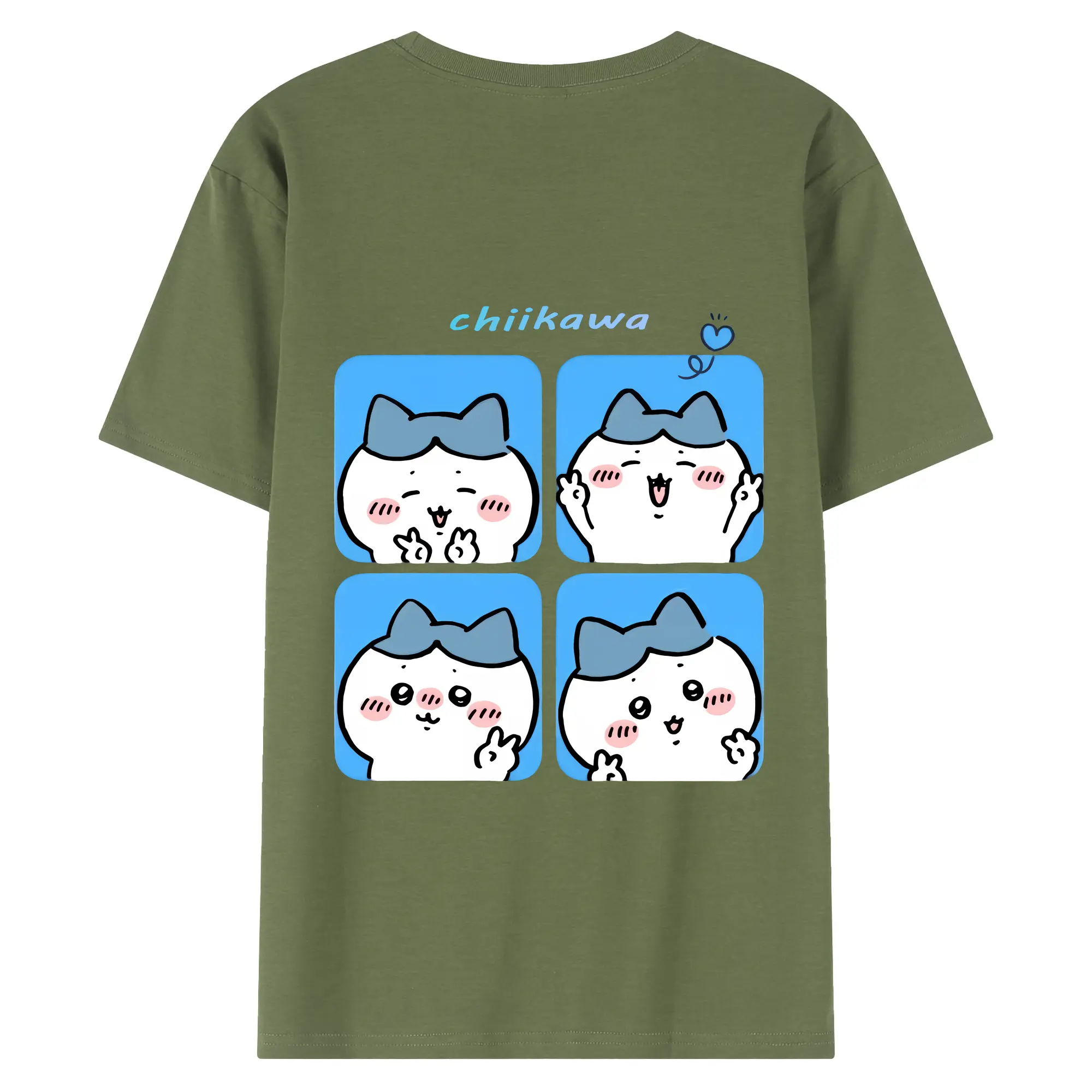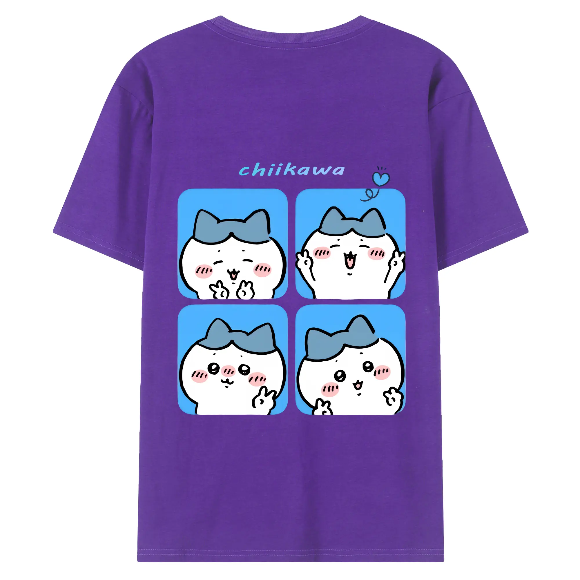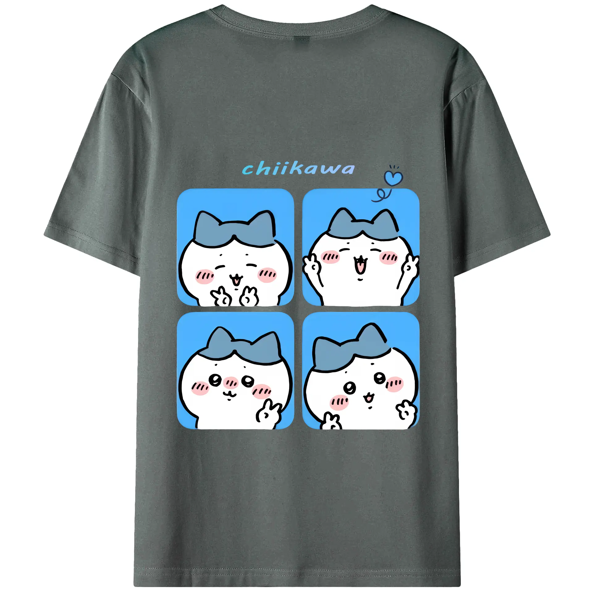 ちい が わ グッズ ハチワレ - 綿100% 半袖Tシャツ ・ フロントプリント ・ 快適 通気性 ・ 日常使い 散歩 スポーツ用