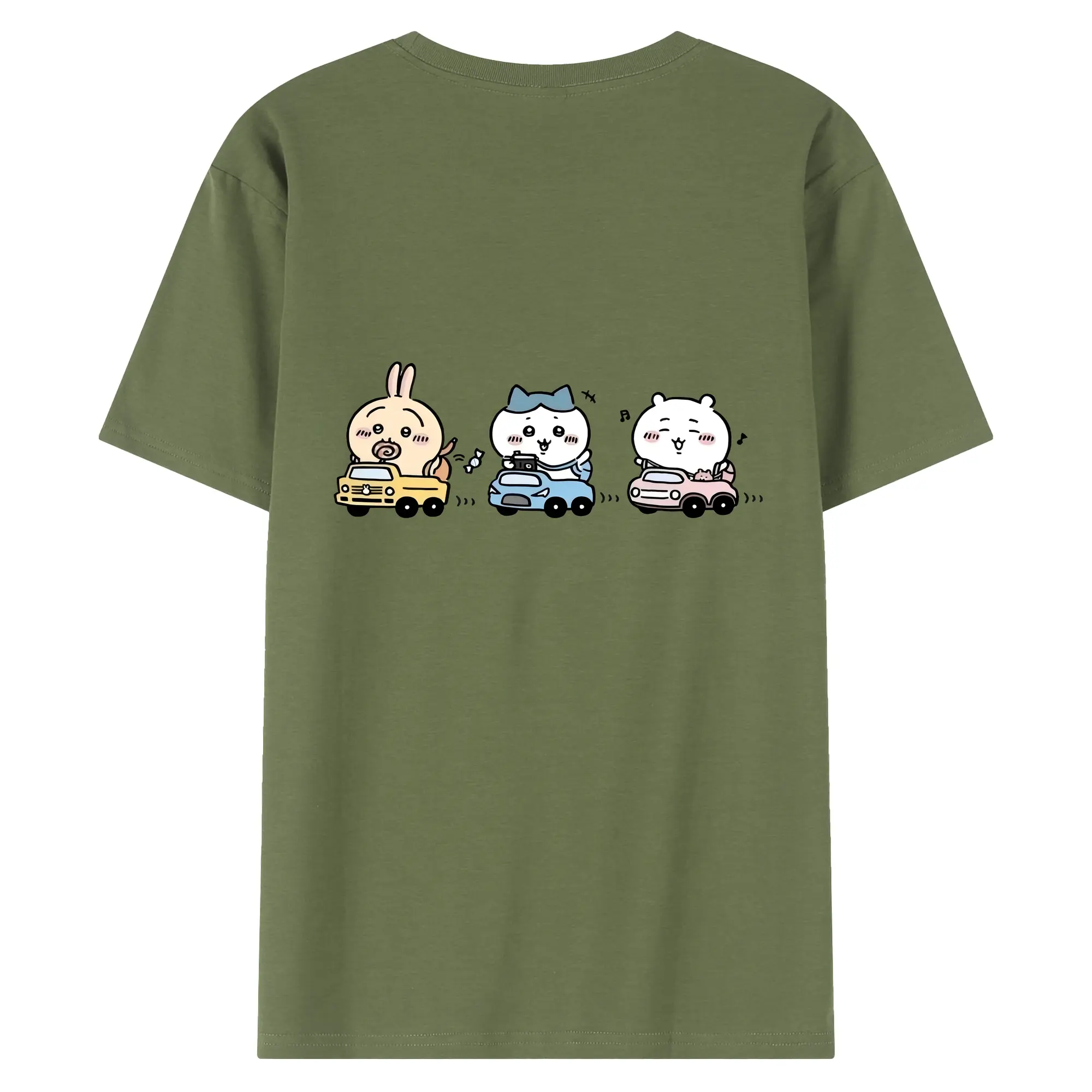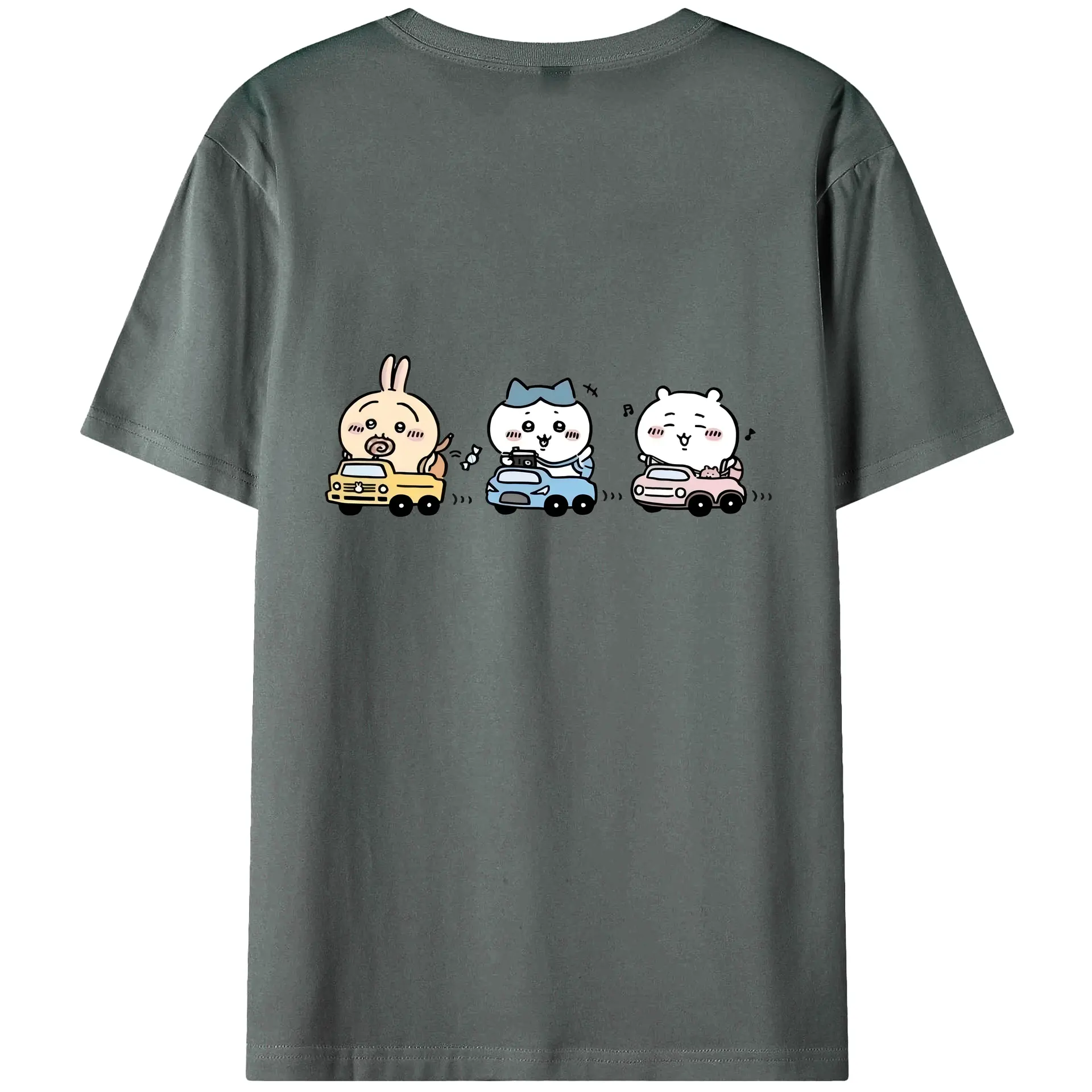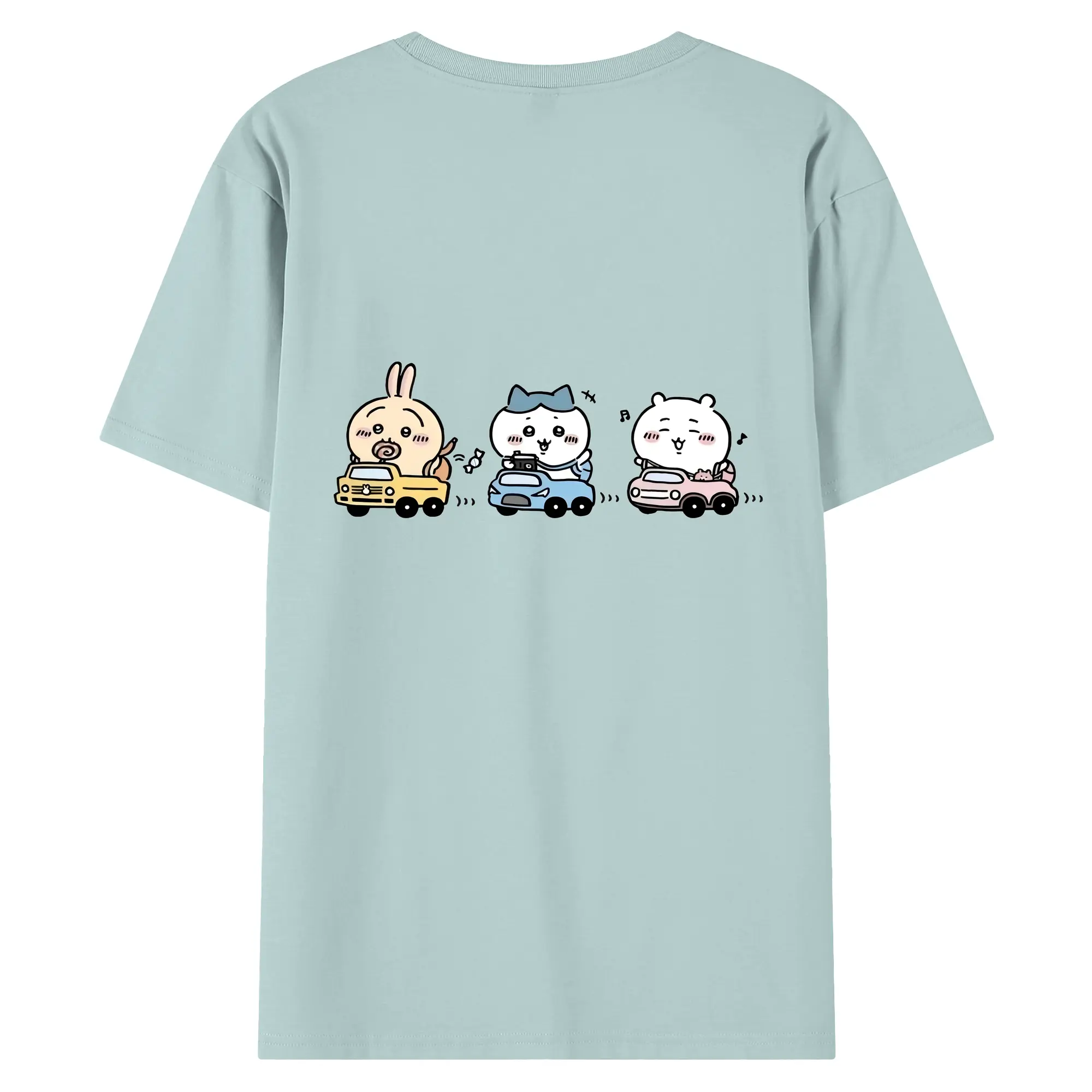 ちい が わ グッズ ハチワレ - 綿100% ヴィンテージ風 半袖Tシャツ ・ 背面プリント ・ 柔らか肌触り ・ 通気性 快適 ・ スポーツ カジュアル 外出用