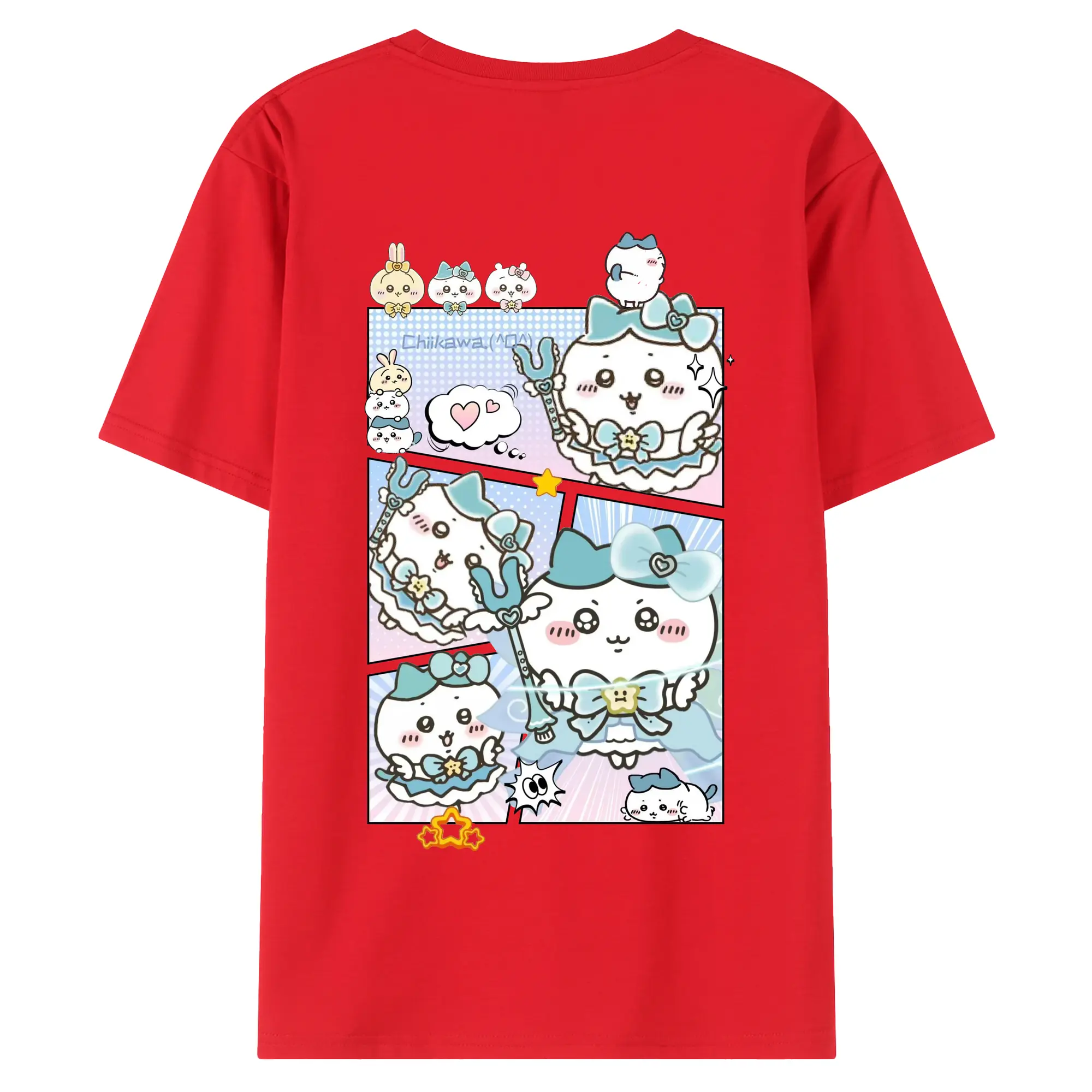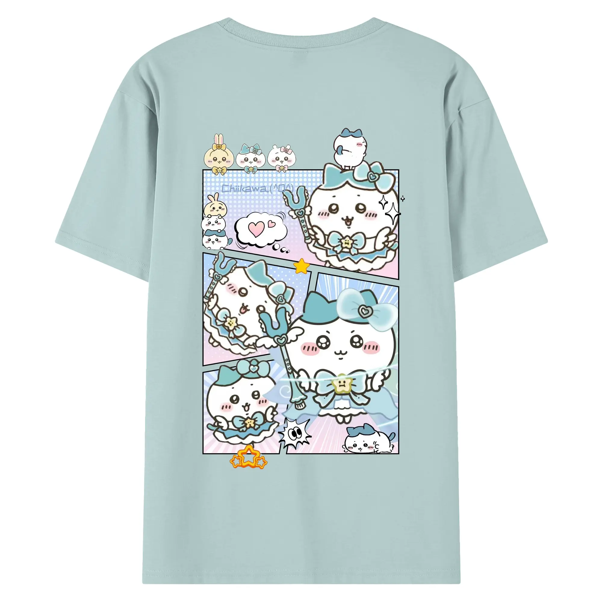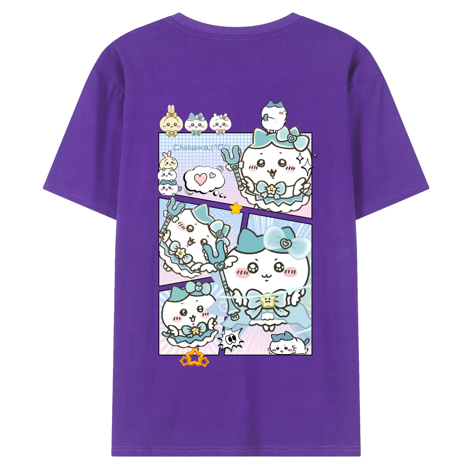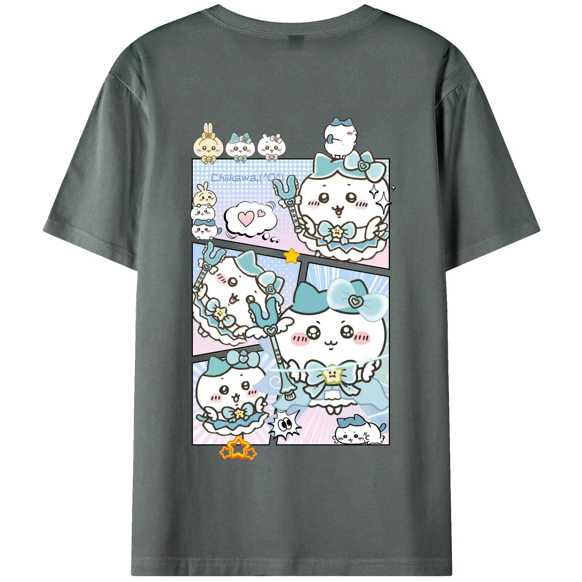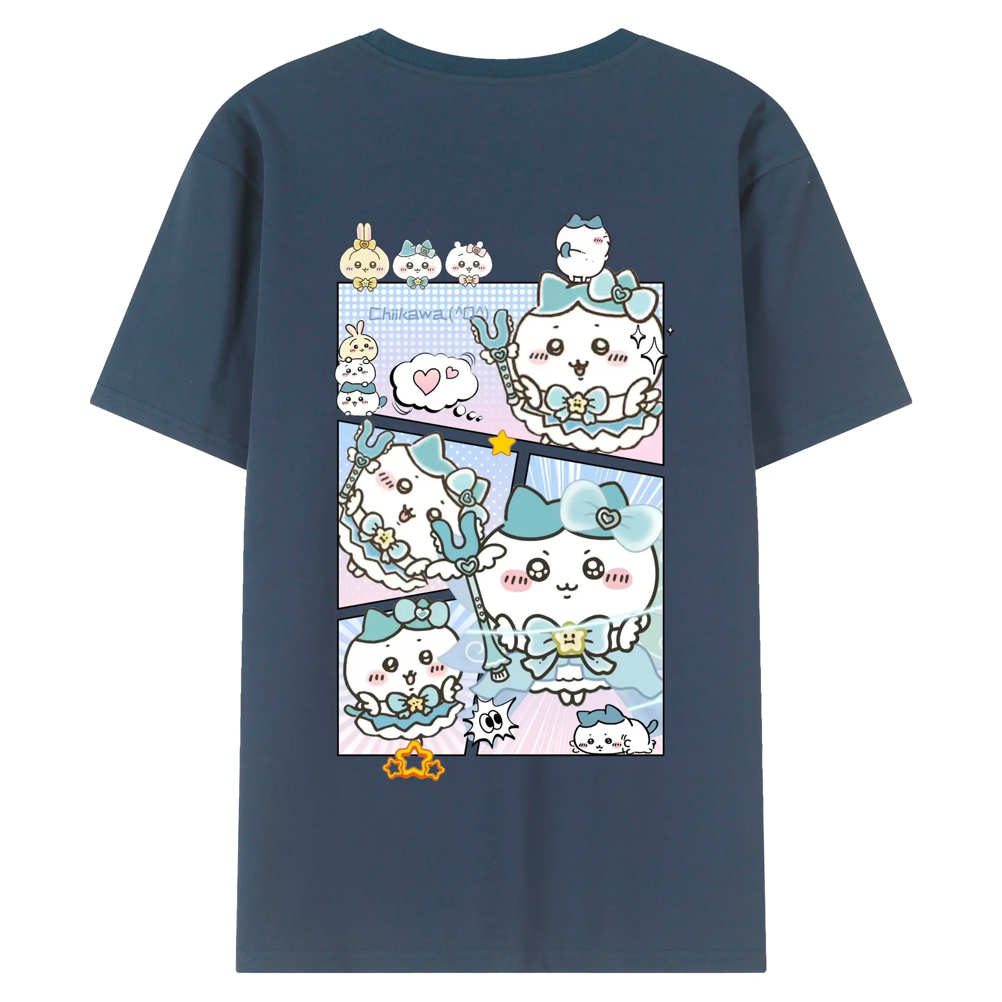 ちい が わ グッズ ハチワレ - 綿100% 半袖Tシャツ ・ フロントプリント ・ 快適 通気性 ・ 日常使い 散歩 スポーツ用