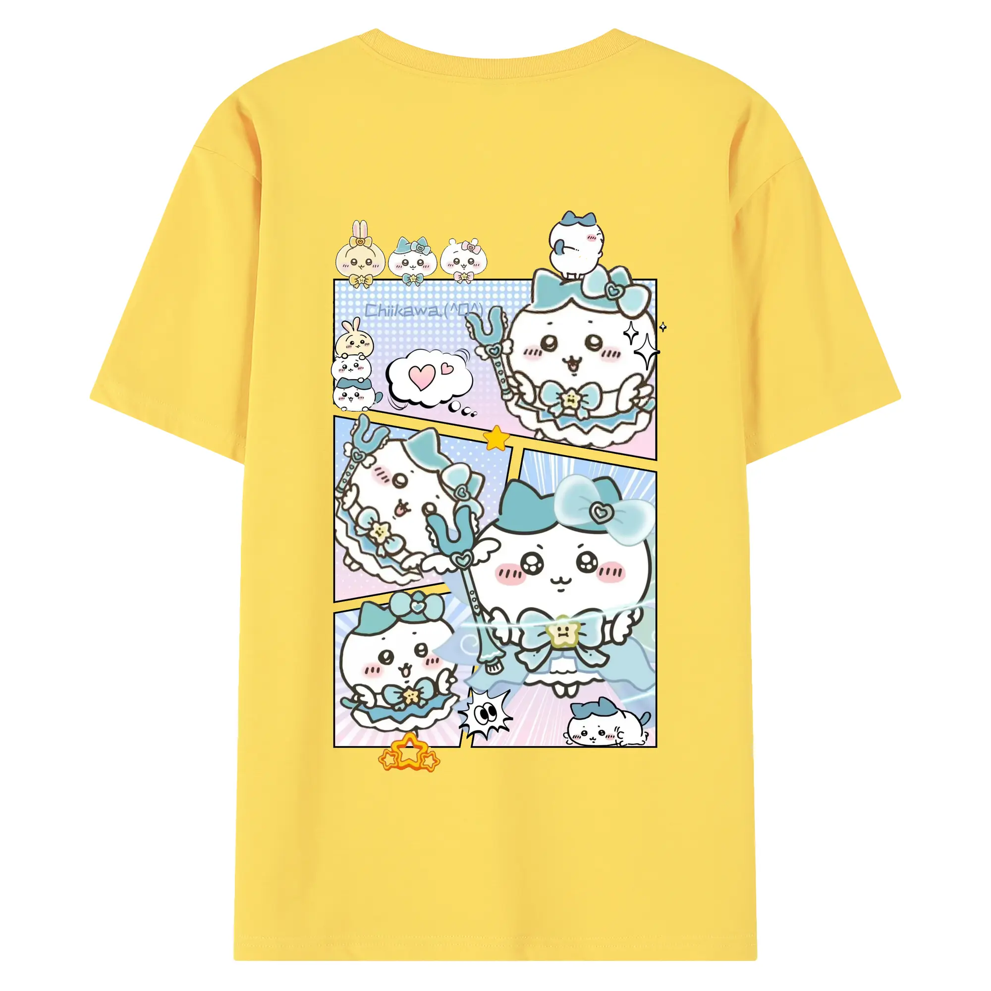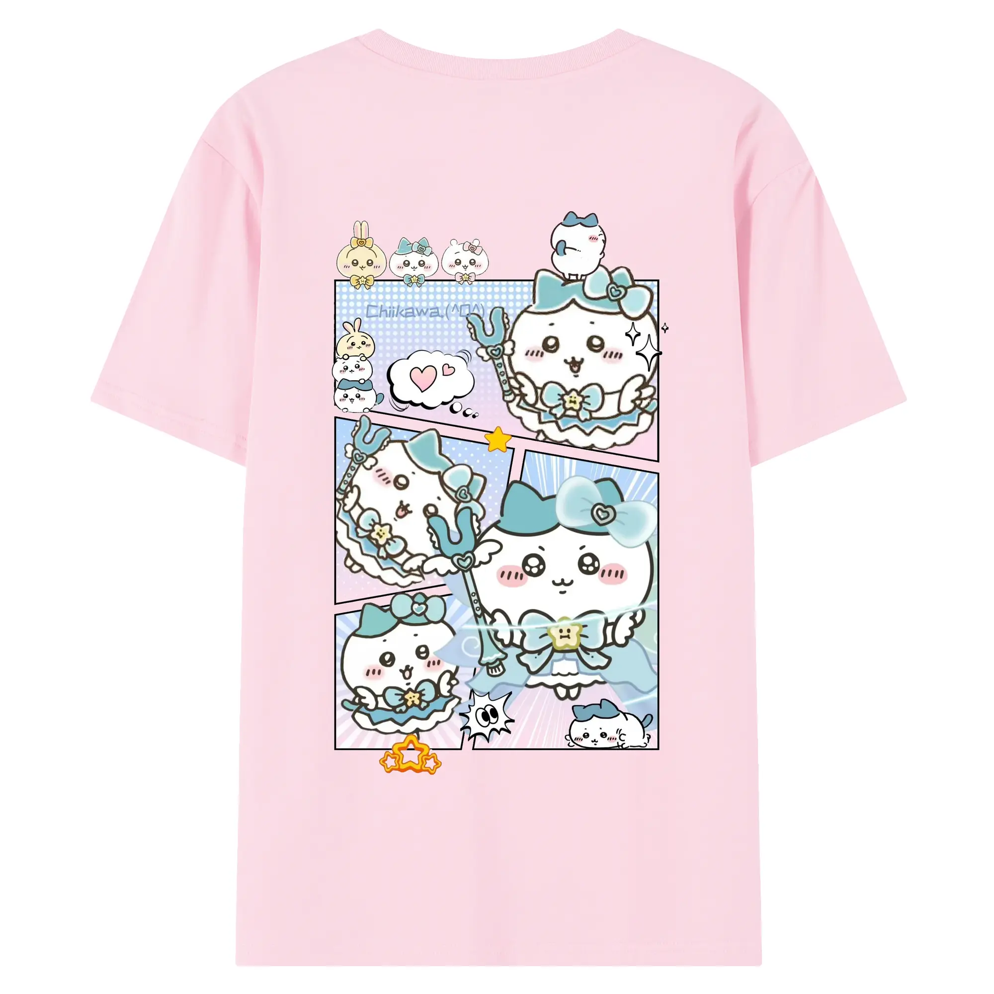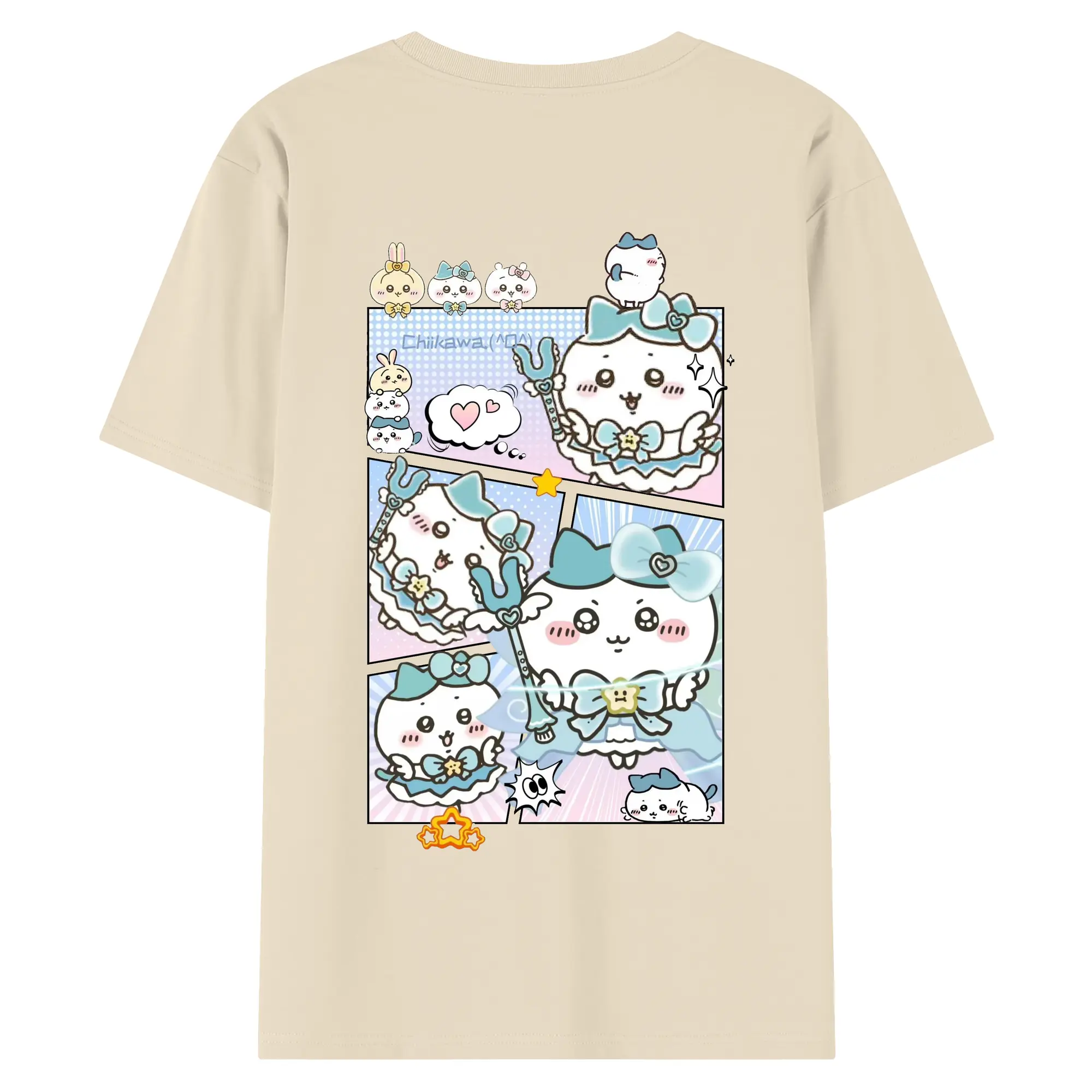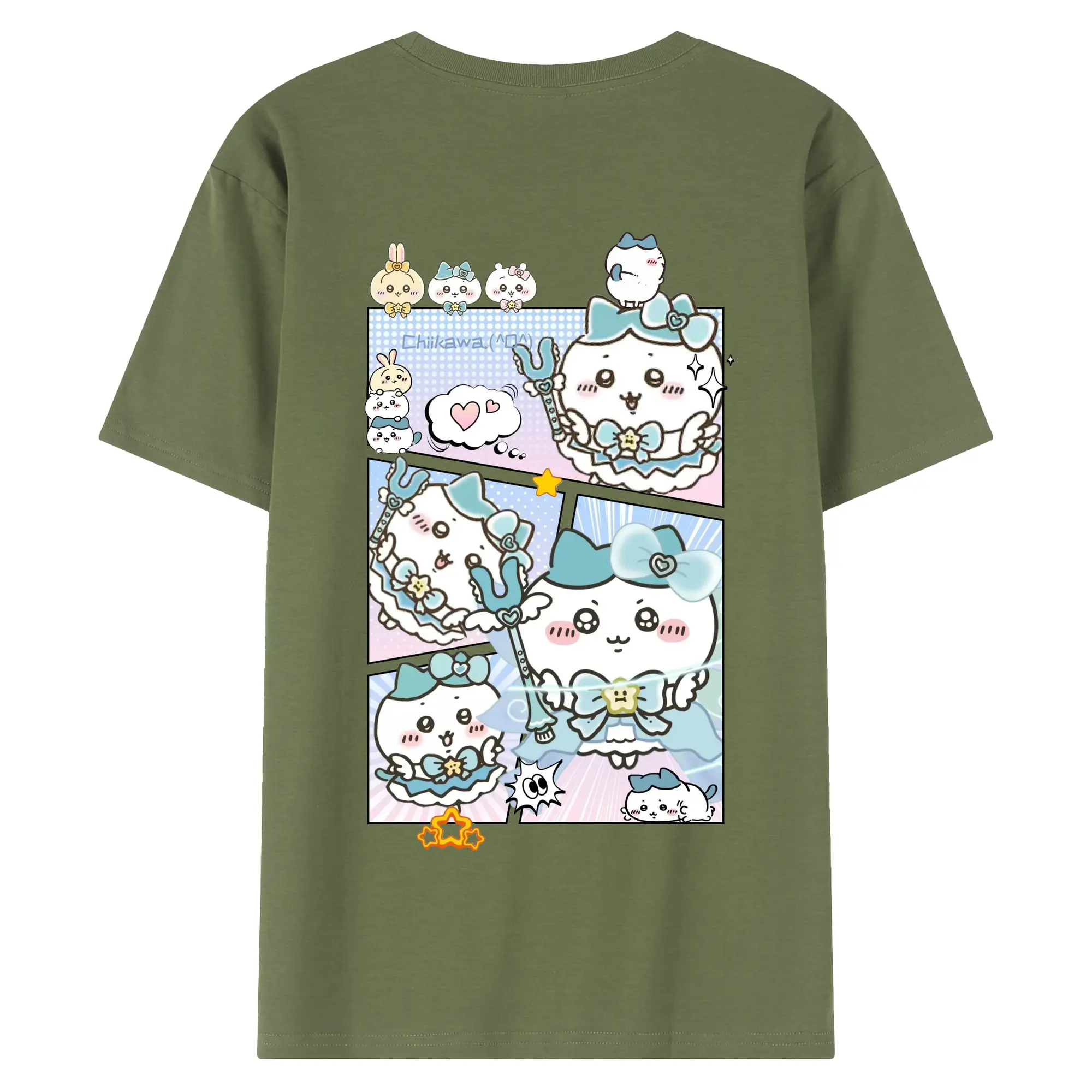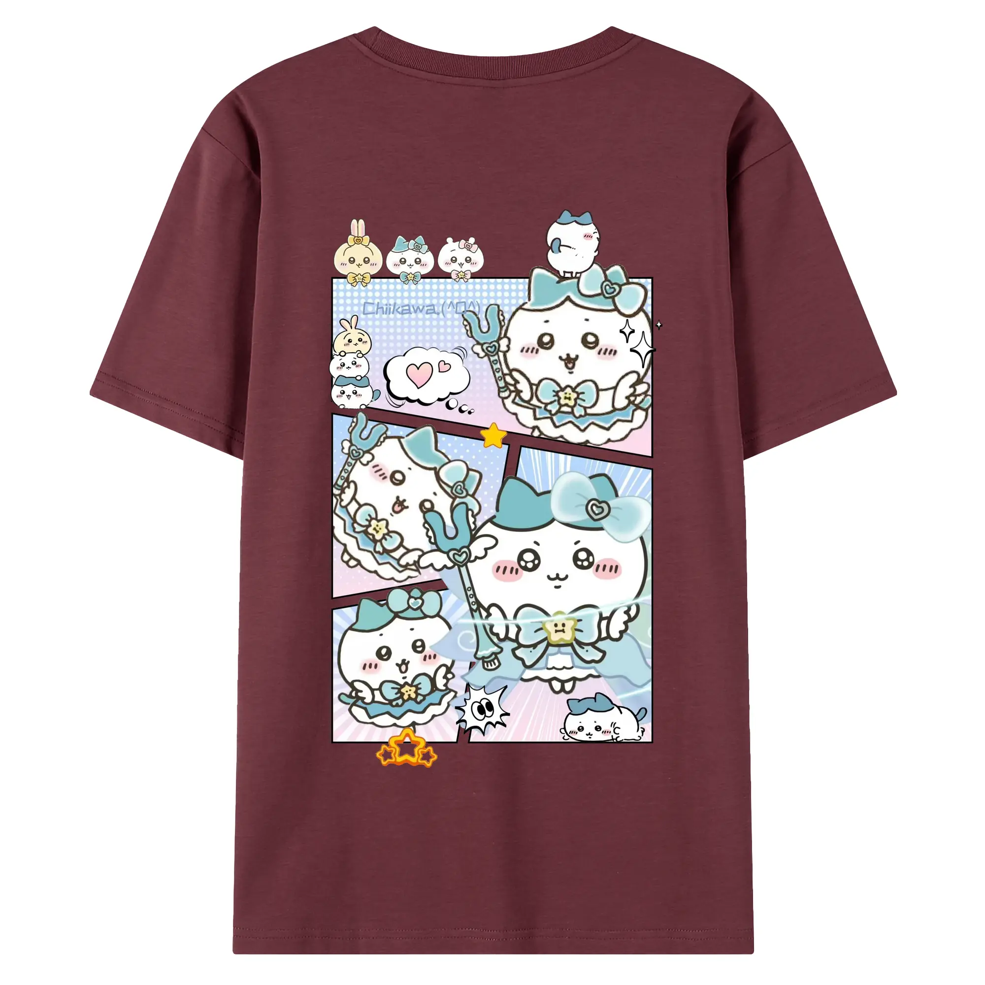 ちい が わ グッズ ハチワレ - 綿100% 半袖Tシャツ ・ フロントプリント ・ 快適 通気性 ・ 日常使い 散歩 スポーツ用
