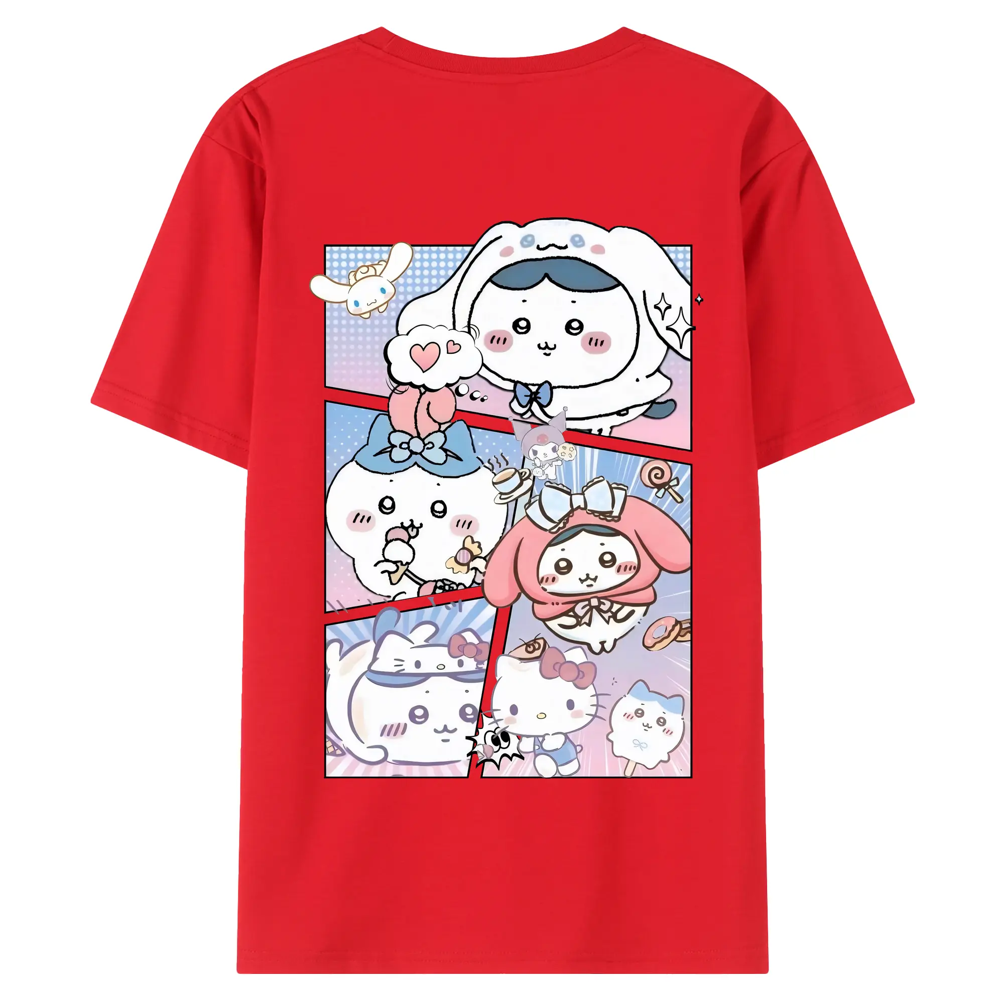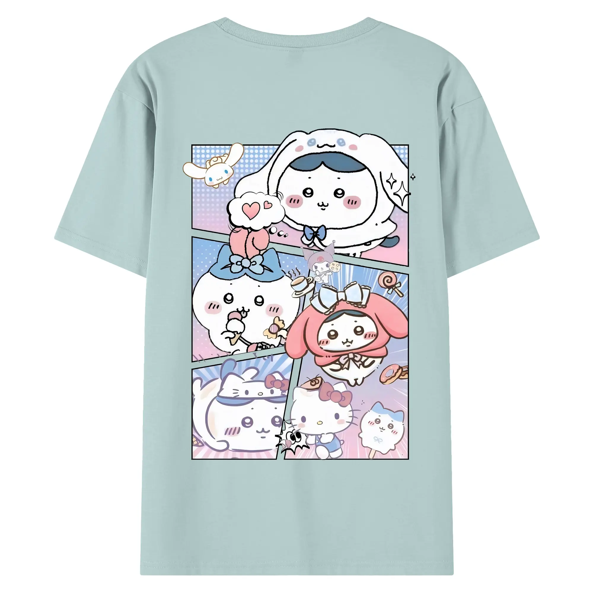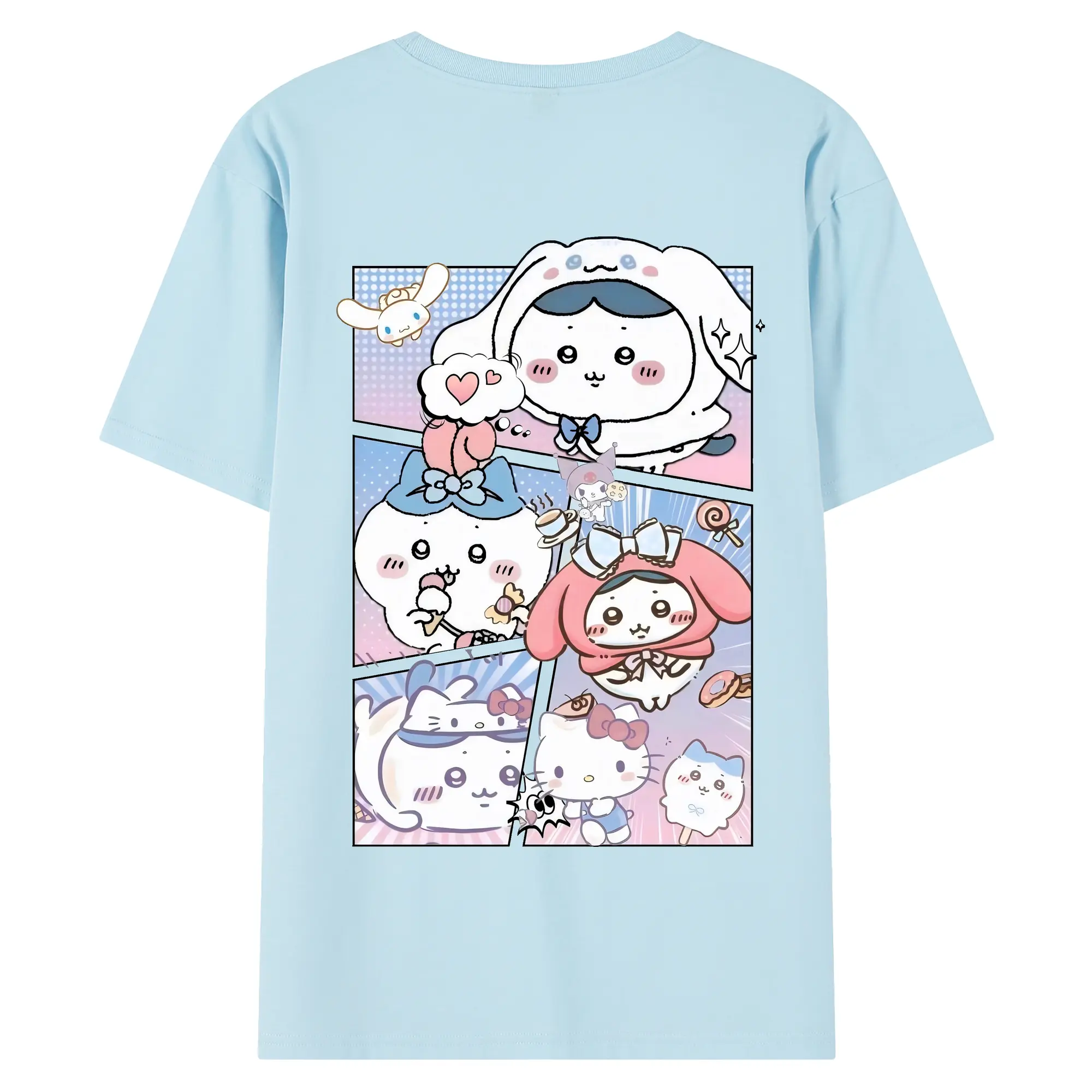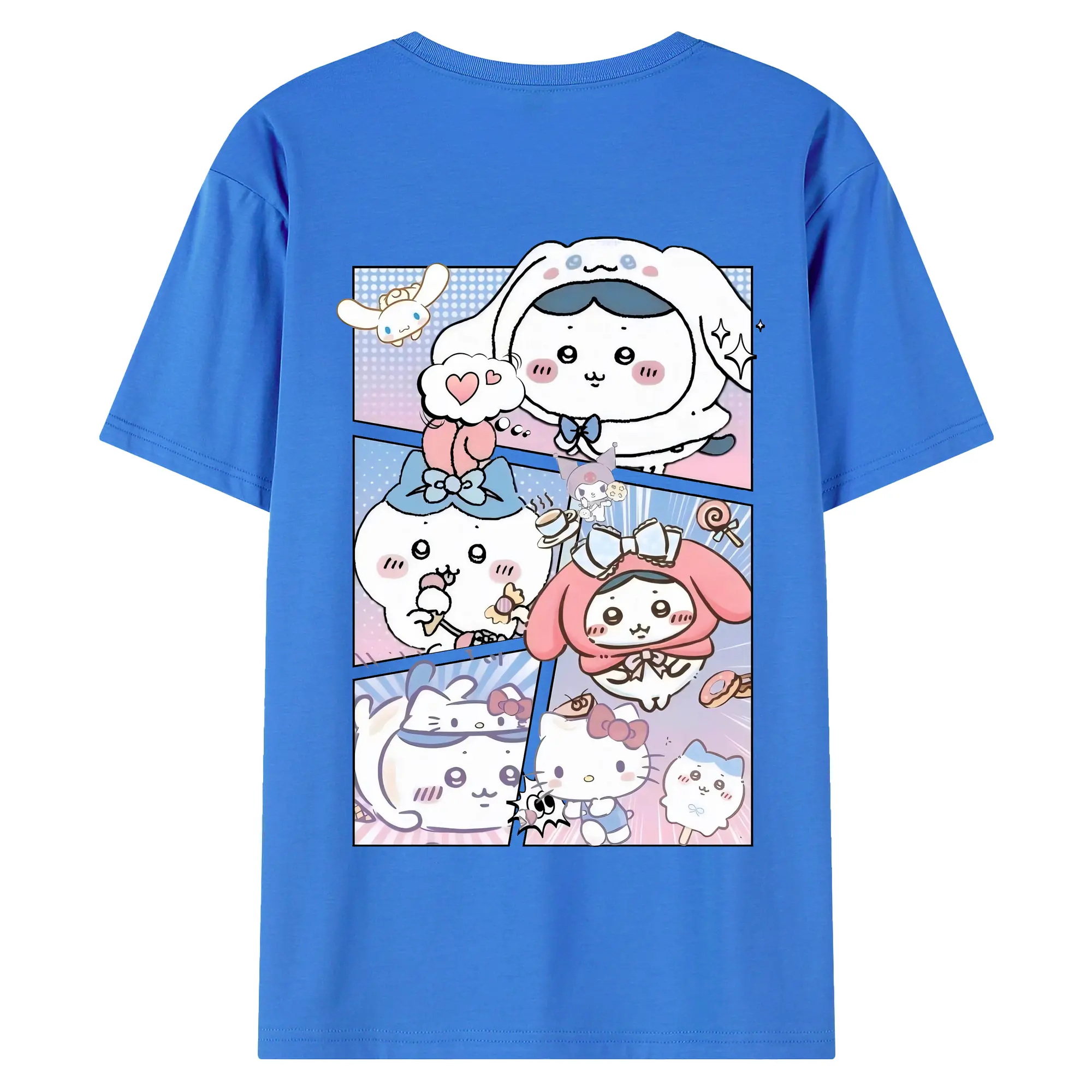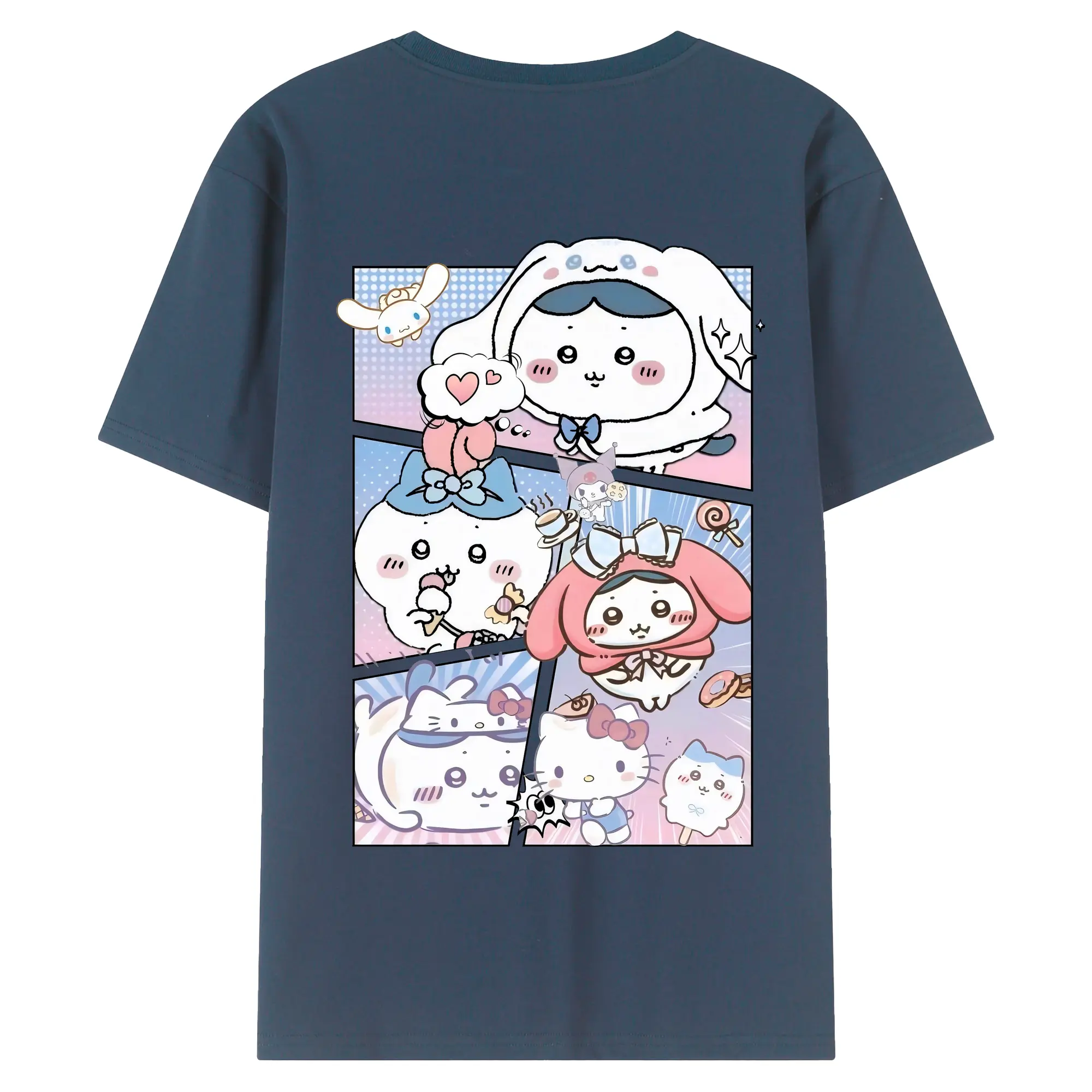 ちい が わ グッズ ハチワレ - 綿100% 半袖Tシャツ ・ フロントプリント ・ 快適 通気性 ・ 日常使い 散歩 スポーツ用