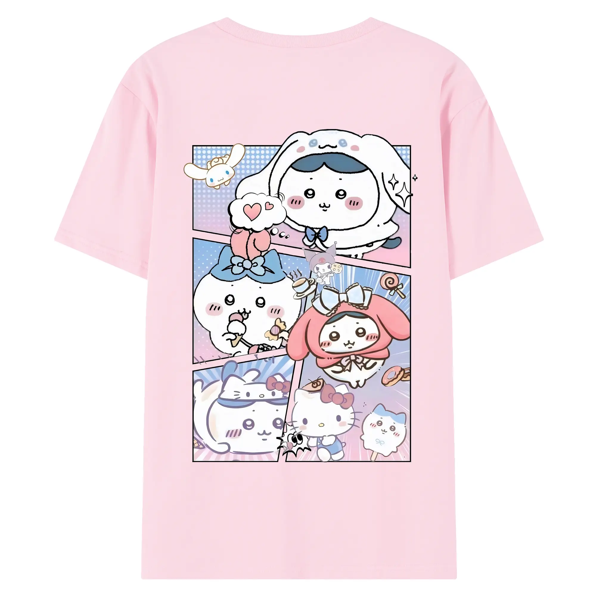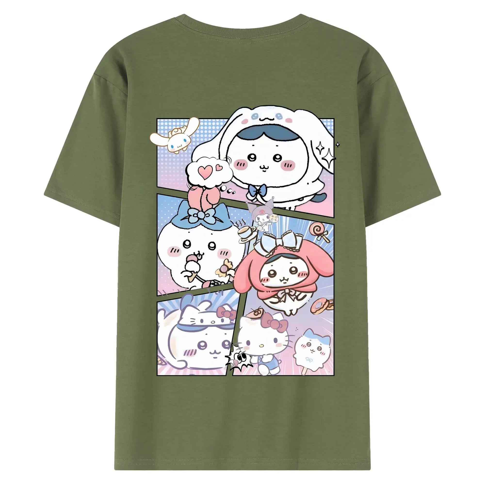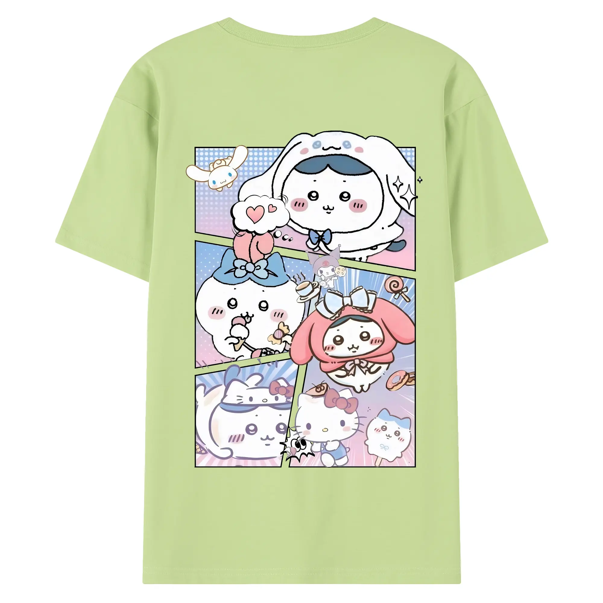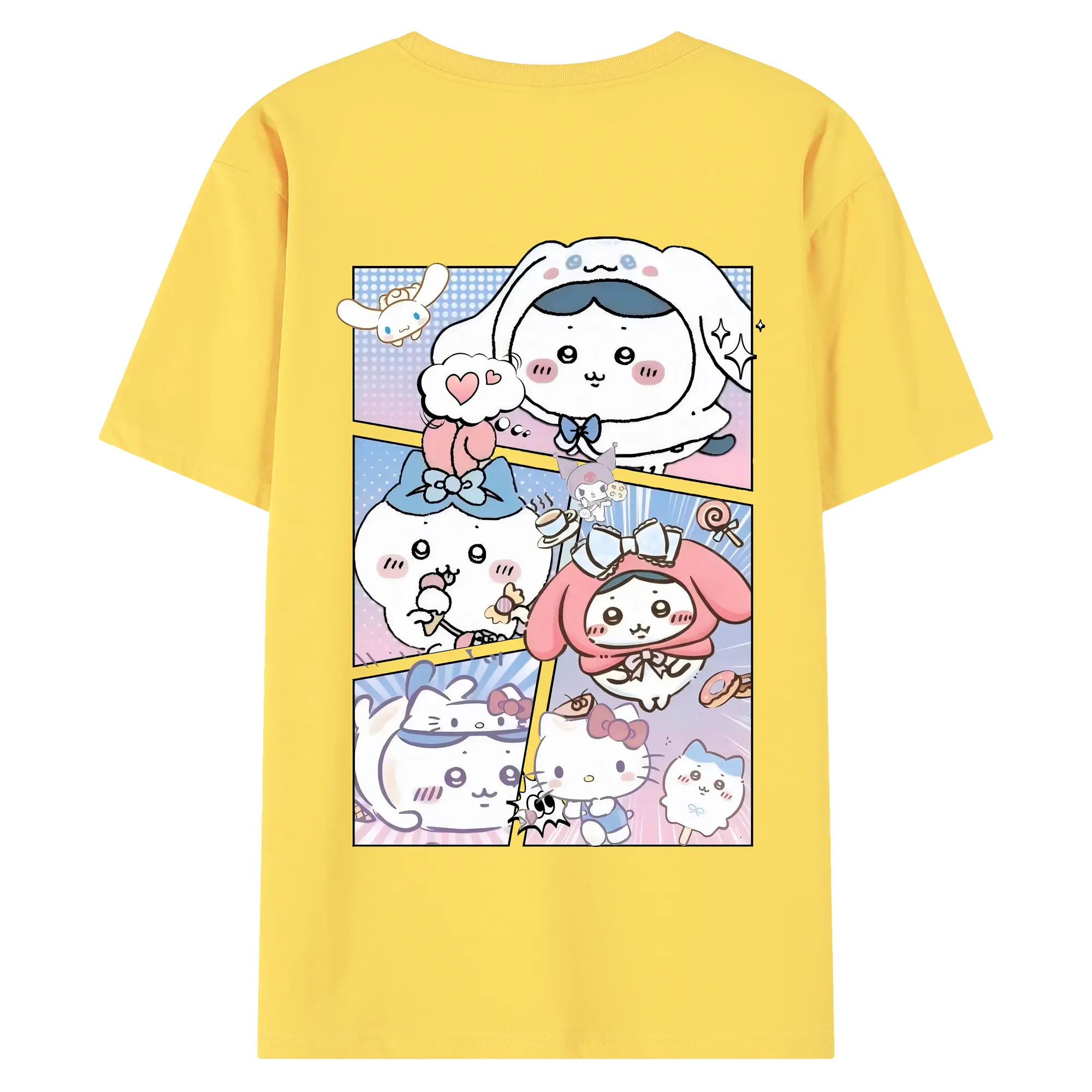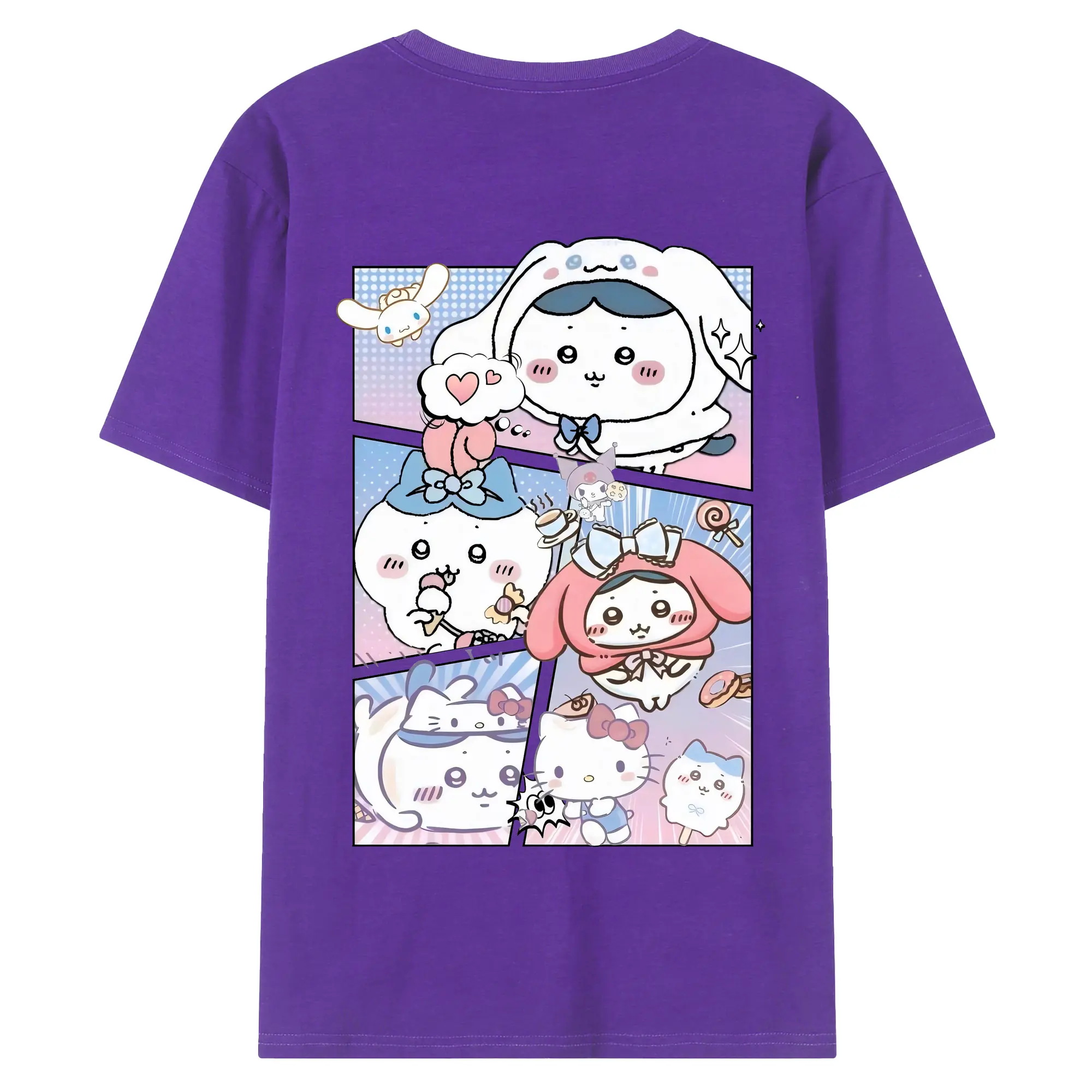 ちい が わ グッズ ハチワレ - 綿100% 半袖Tシャツ ・ フロントプリント ・ 快適 通気性 ・ 日常使い 散歩 スポーツ用