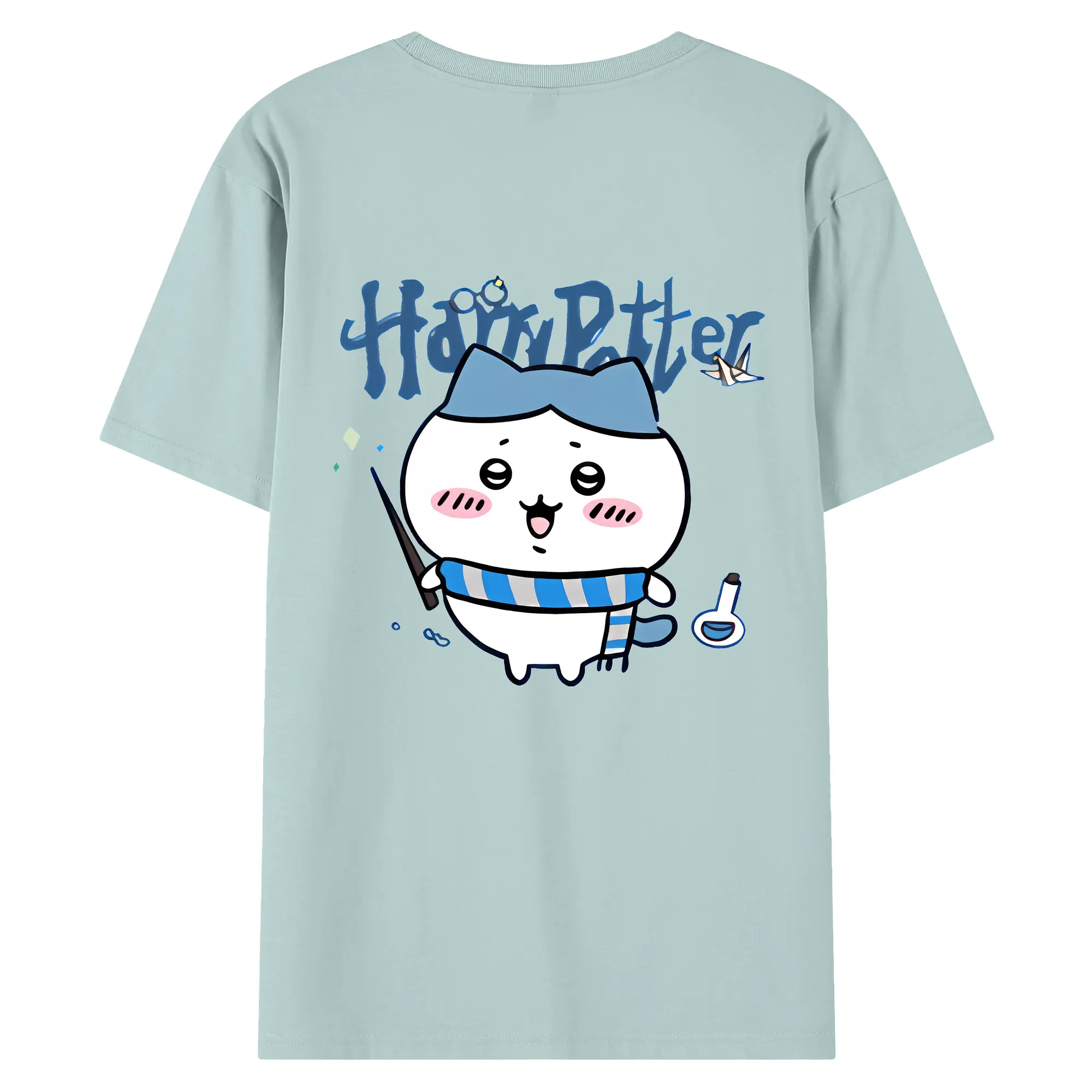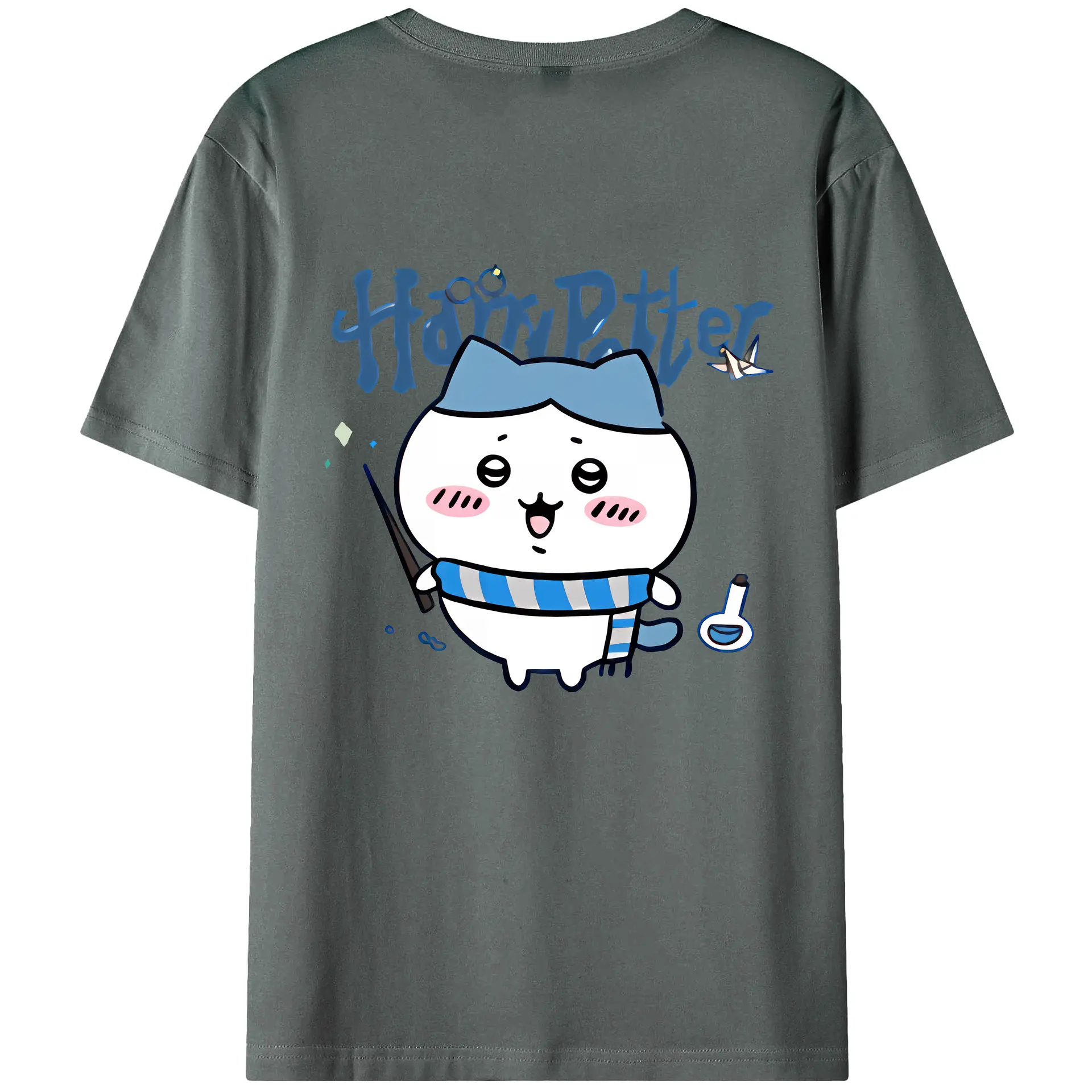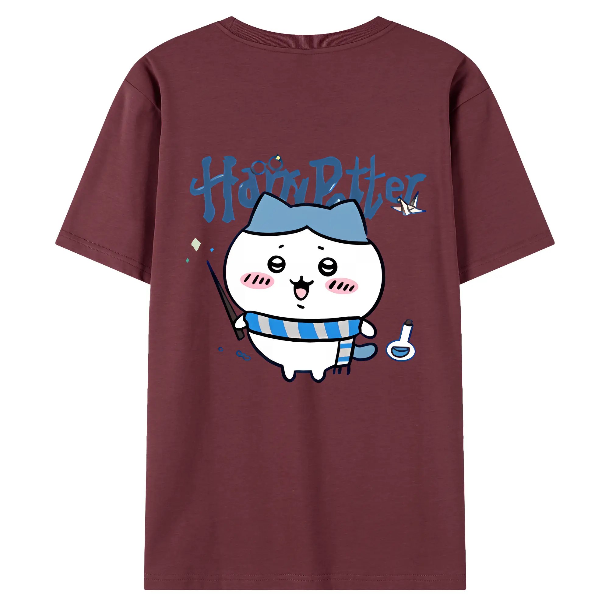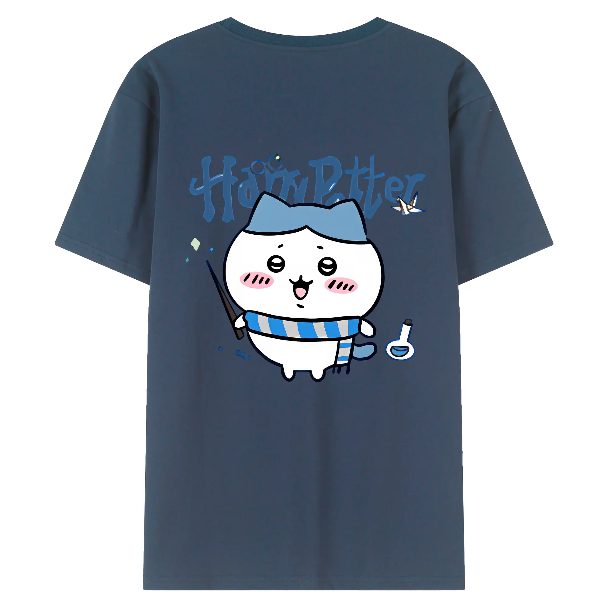 ちい が わ グッズ ハチワレ - 綿100% ヴィンテージ風 半袖Tシャツ ・ 背面プリント ・ 柔らか肌触り ・ 通気性 快適 ・ スポーツ カジュアル 外出用