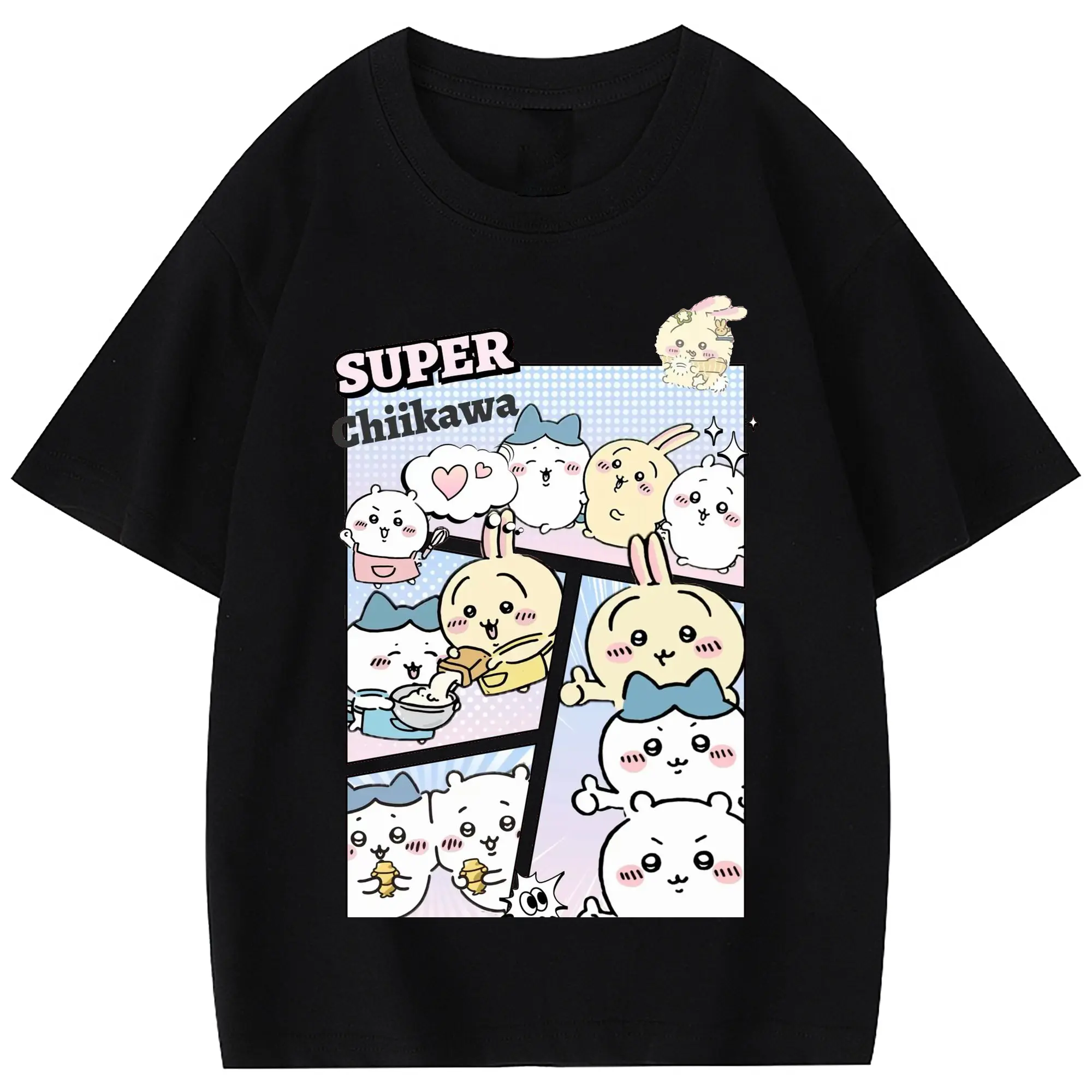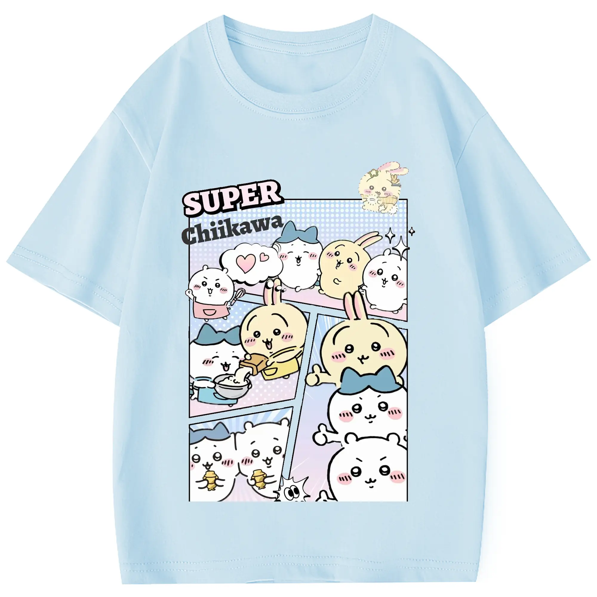 ちい が わ グッズ ハチワレ - 綿100% 半袖Tシャツ ・ フロントプリント ・ 快適 通気性 ・ 日常使い 散歩 スポーツ用