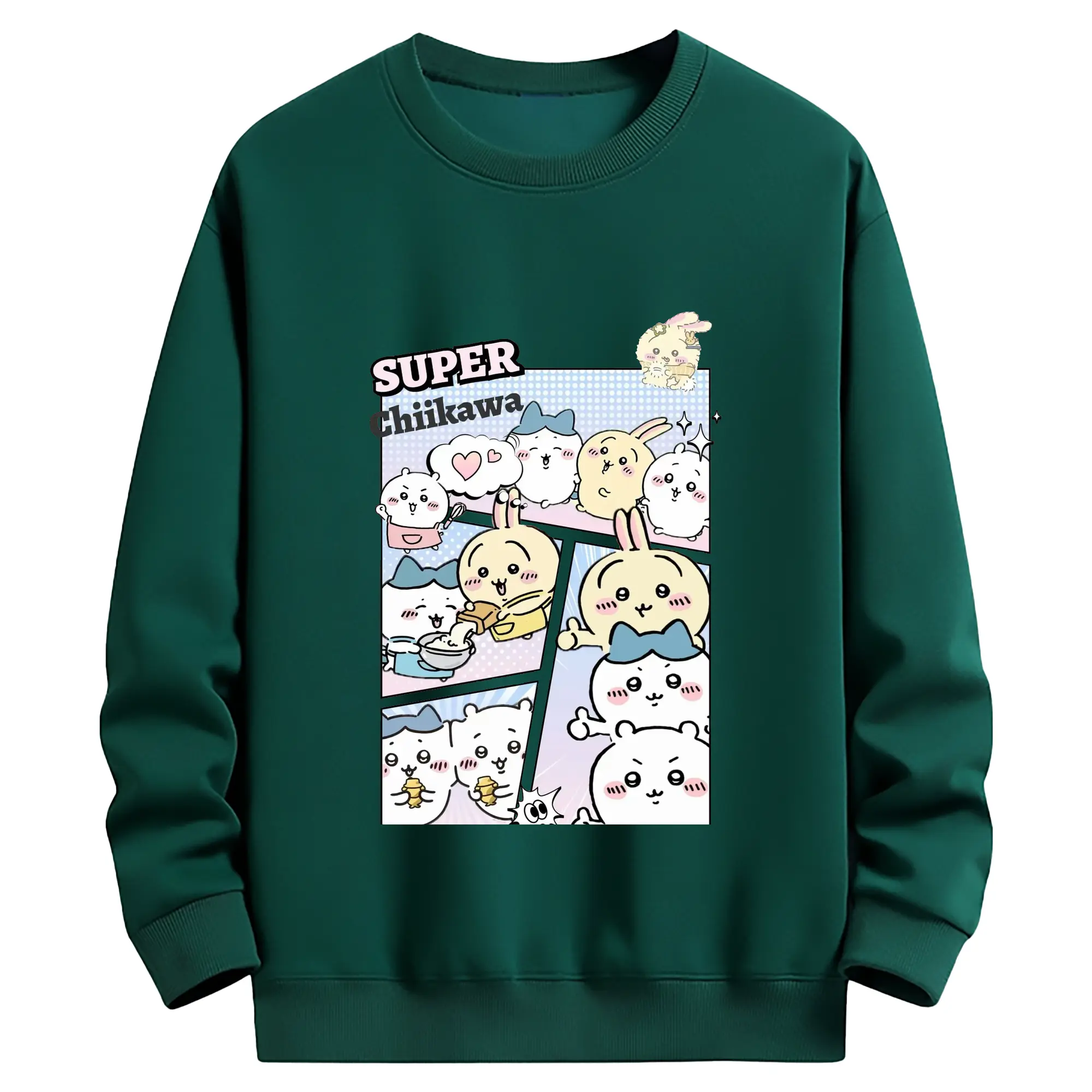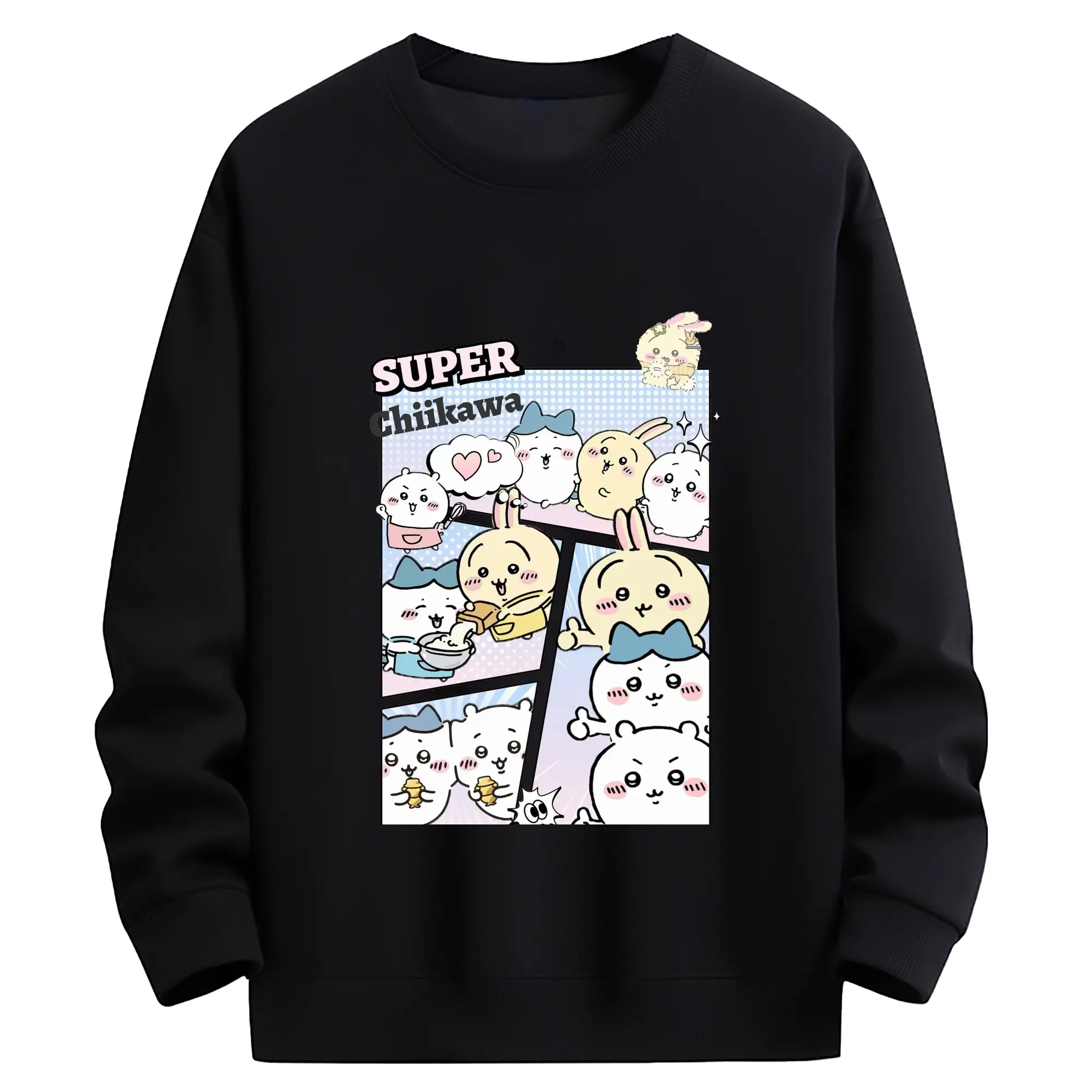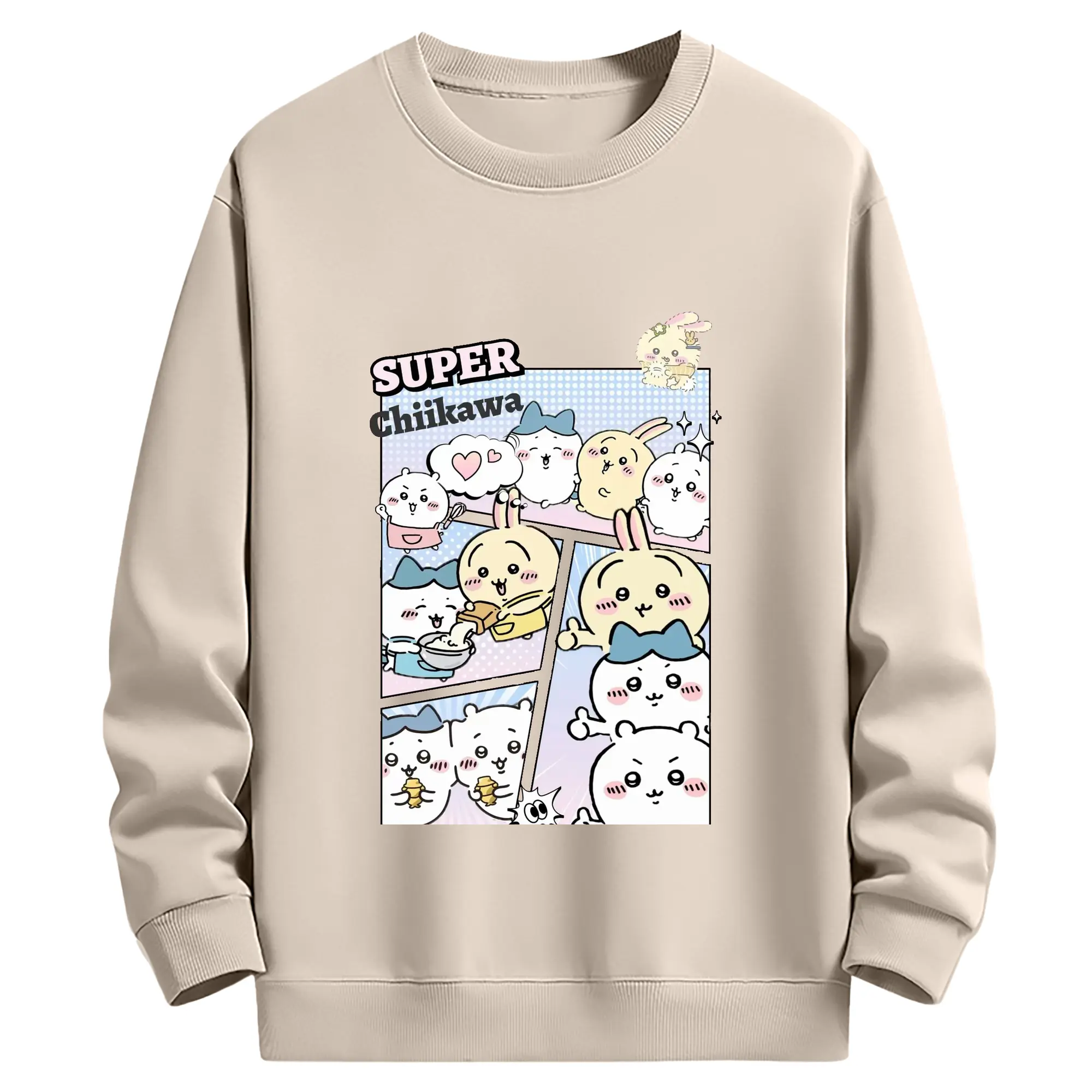 ちい が わ グッズ ハチワレ - 薄手 クルーネック スウェット 裏毛260g · ポリエステル 春秋向け カジュアル 男女兼用 · トレーナー デイリー スポーツ 散歩に最適