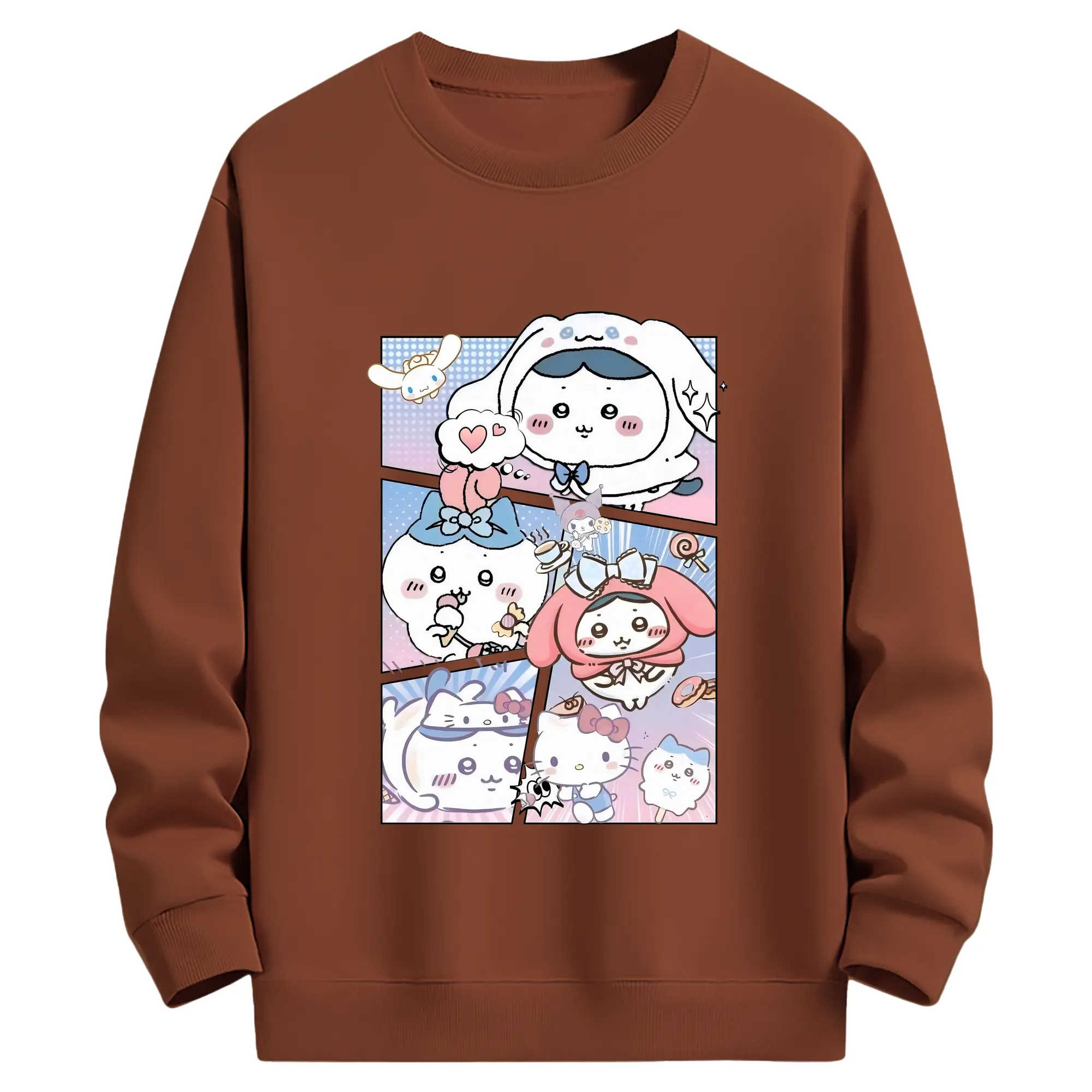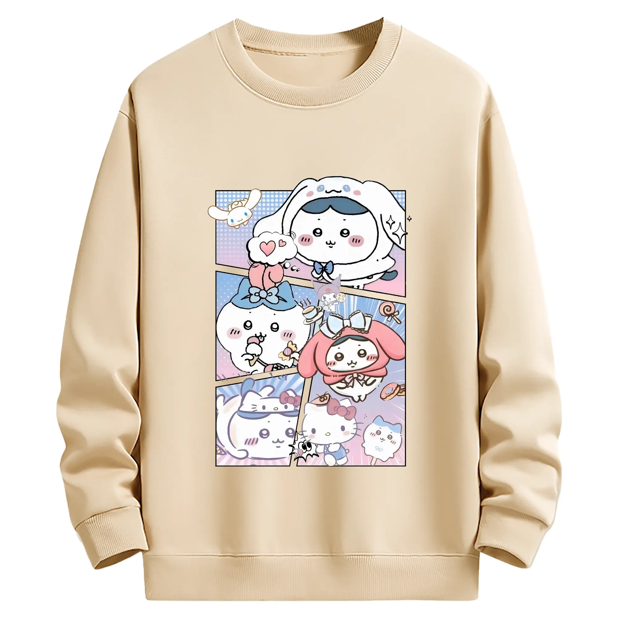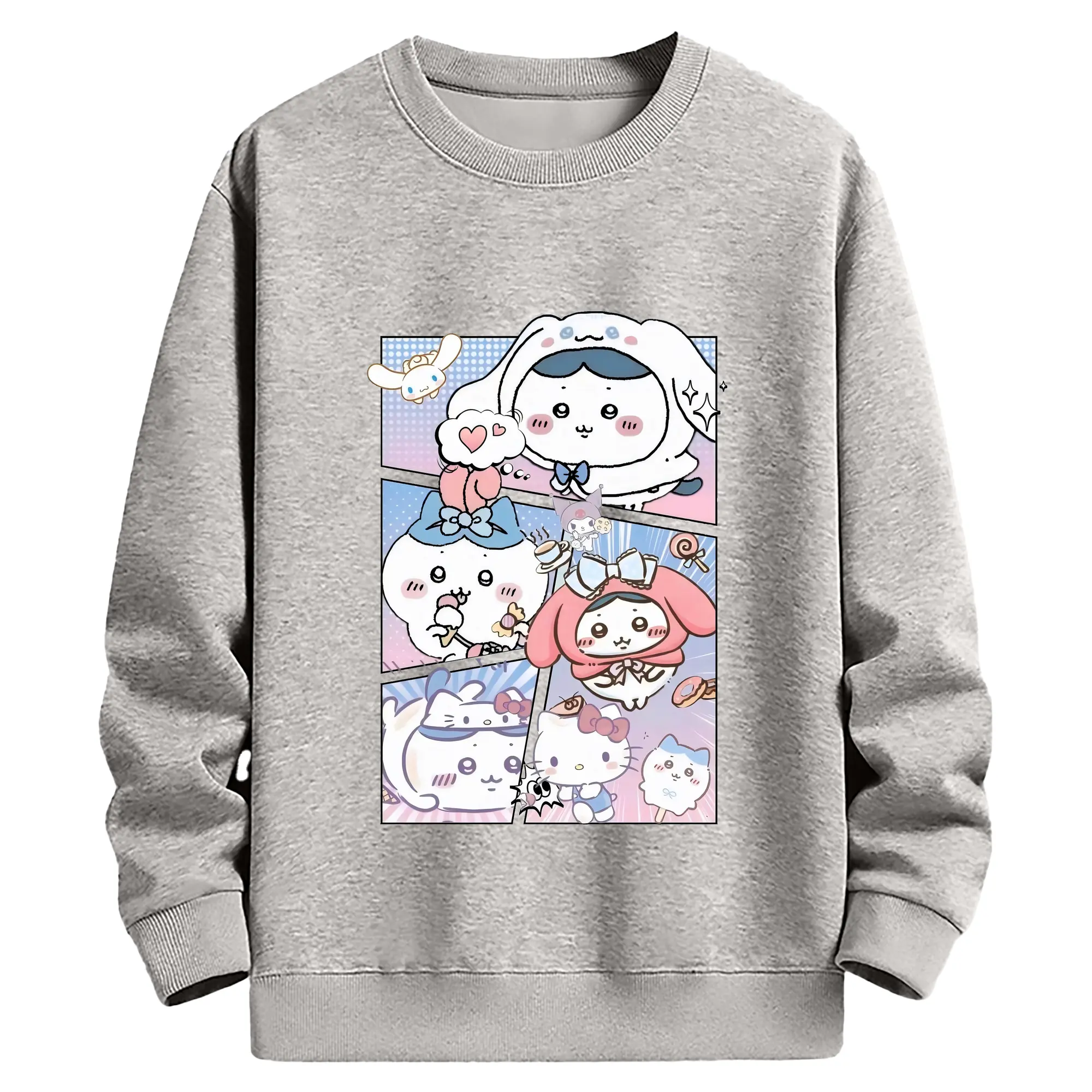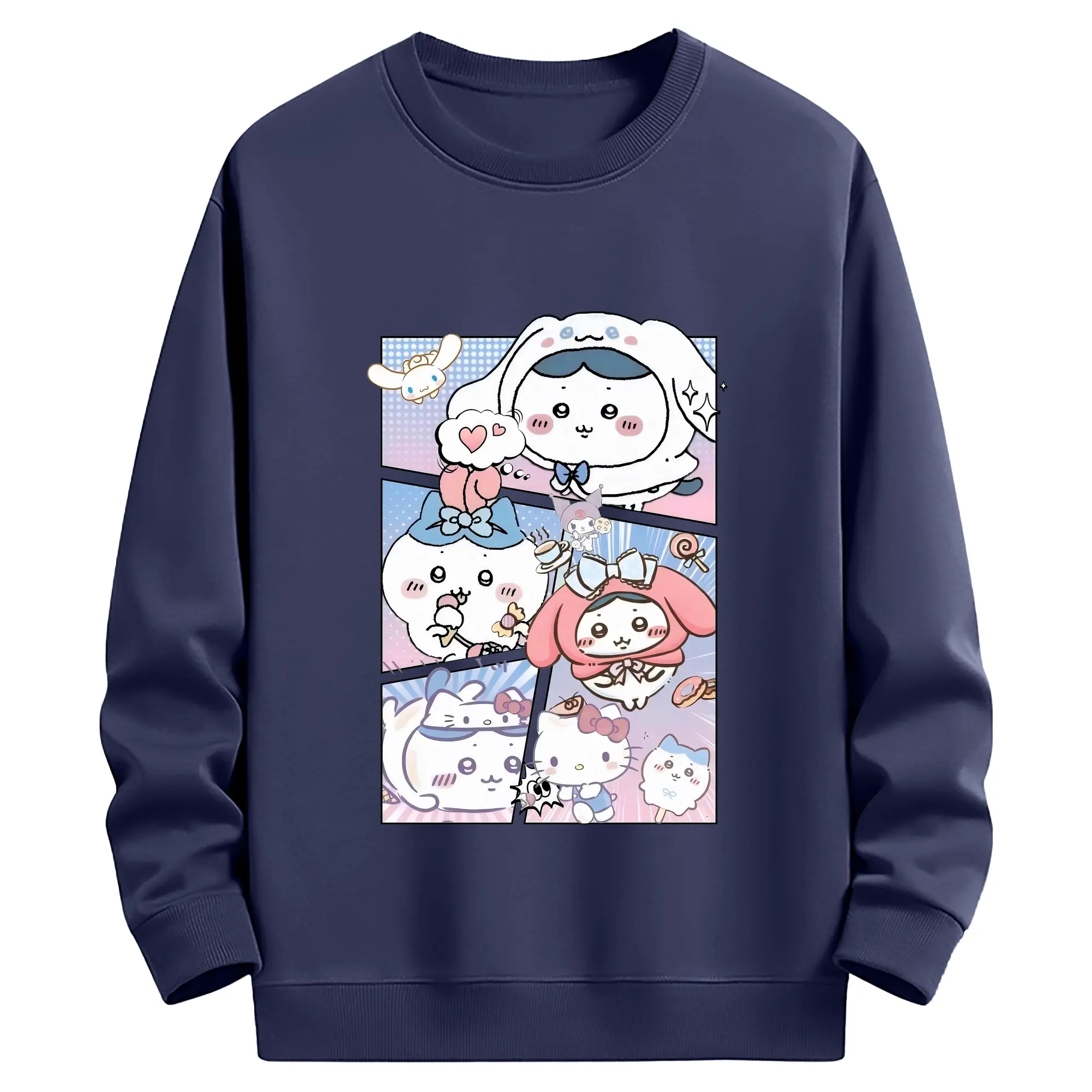 ちい が わ グッズ ハチワレ - 薄手 クルーネック スウェット 裏毛260g · ポリエステル 春秋向け カジュアル 男女兼用 · トレーナー デイリー スポーツ 散歩に最適