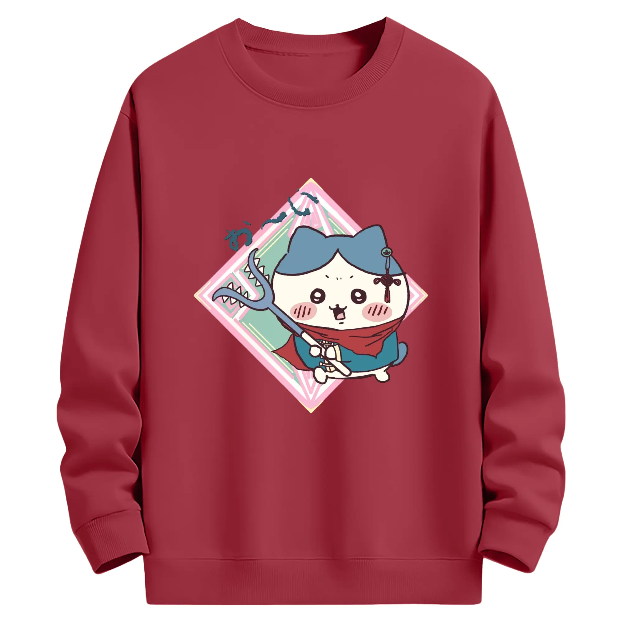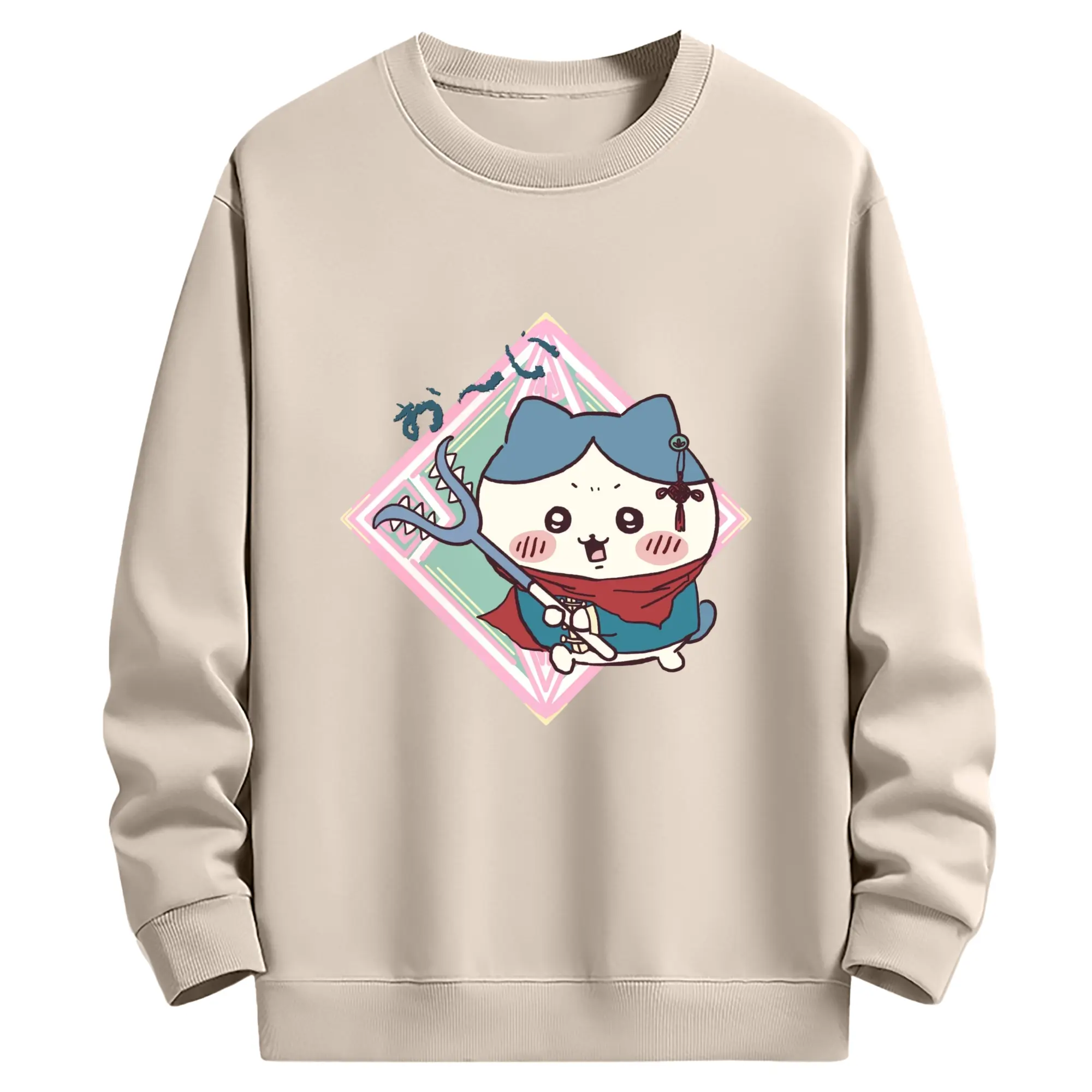 ちい が わ グッズ ハチワレ - 薄手 クルーネック スウェット 裏毛260g · ポリエステル 春秋向け カジュアル 男女兼用 · トレーナー デイリー スポーツ 散歩に最適