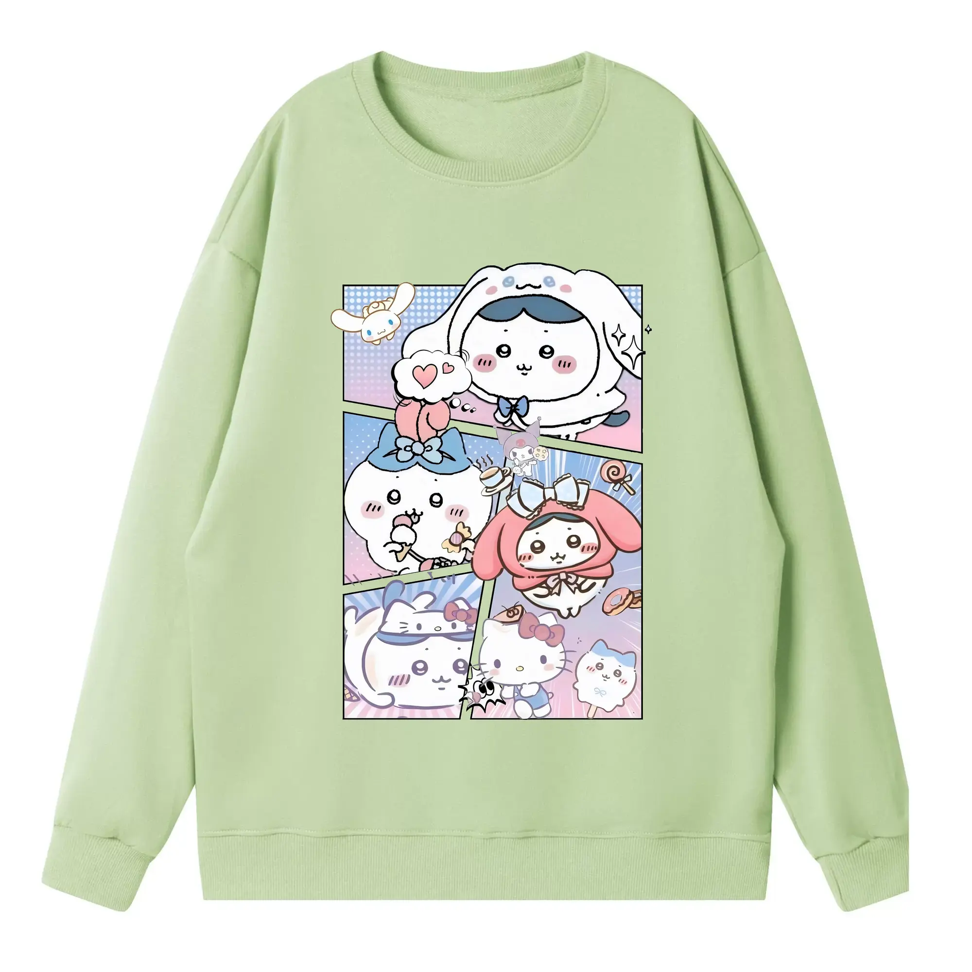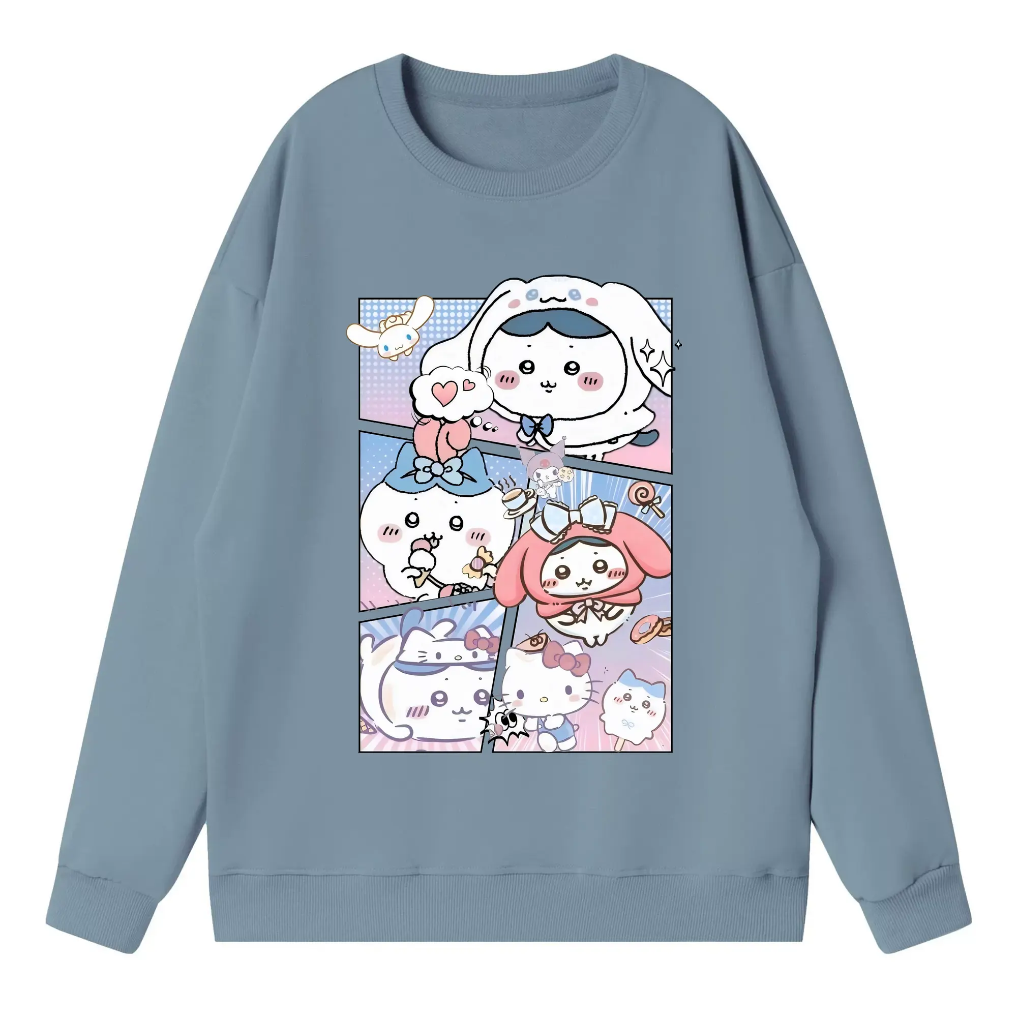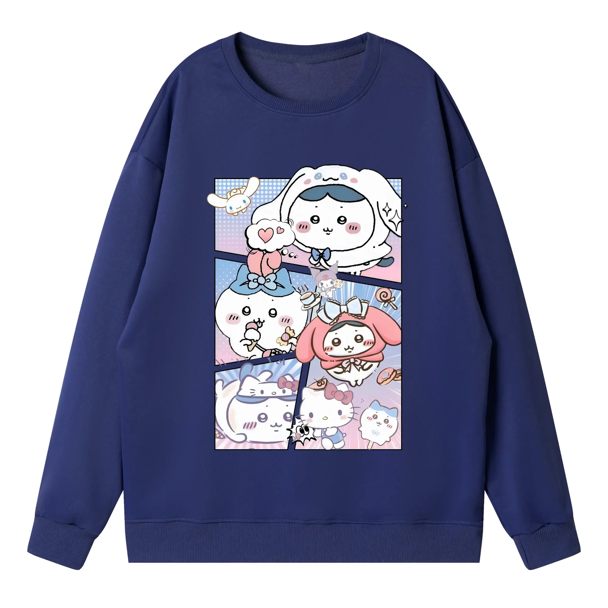 ちい が わ グッズ ハチワレ - 高品質 クルーネック スウェット ・ コットン59% ポリエステル41% ・ ユニセックス 長袖 トレーナー ・ カジュアル デイリー スポーツ 散歩用