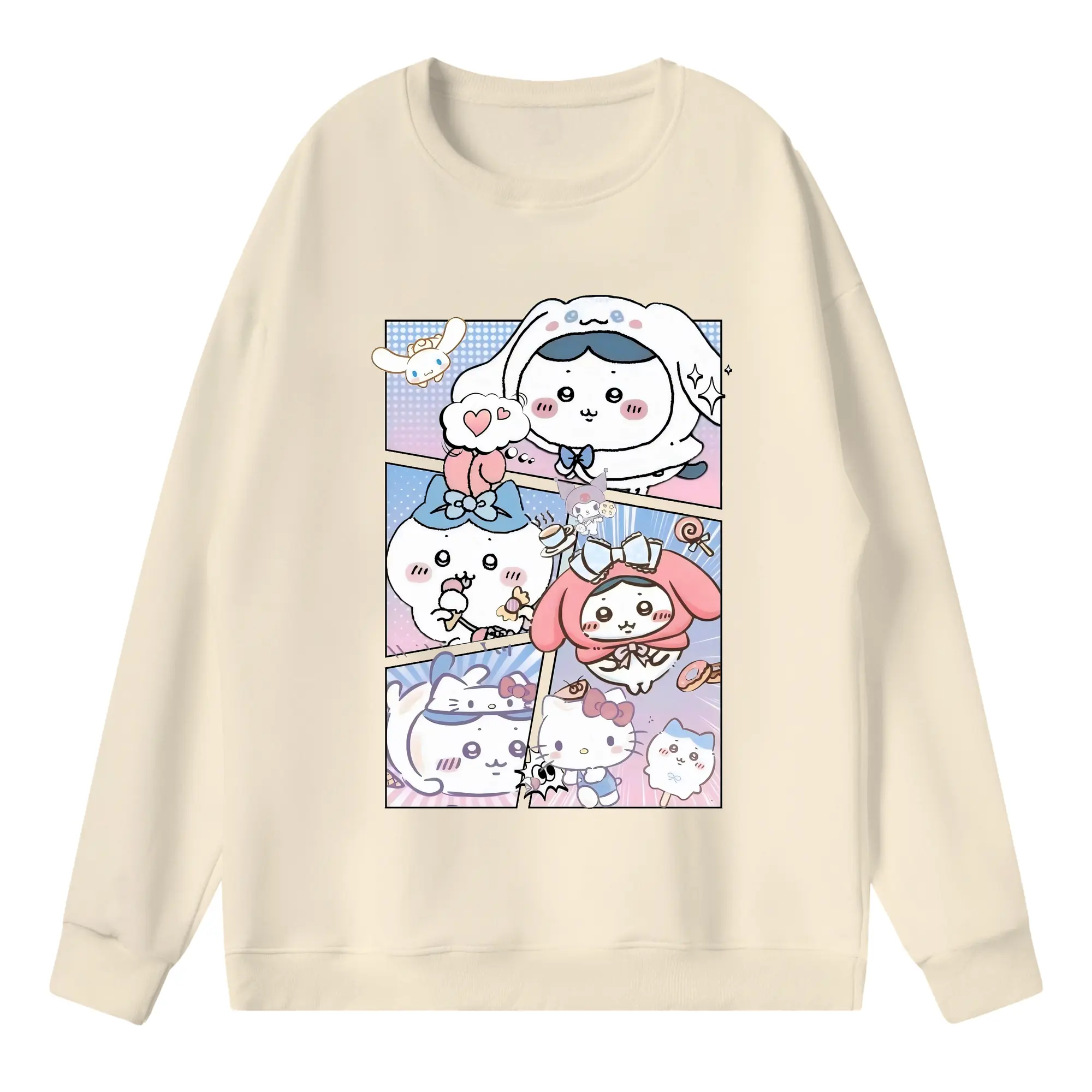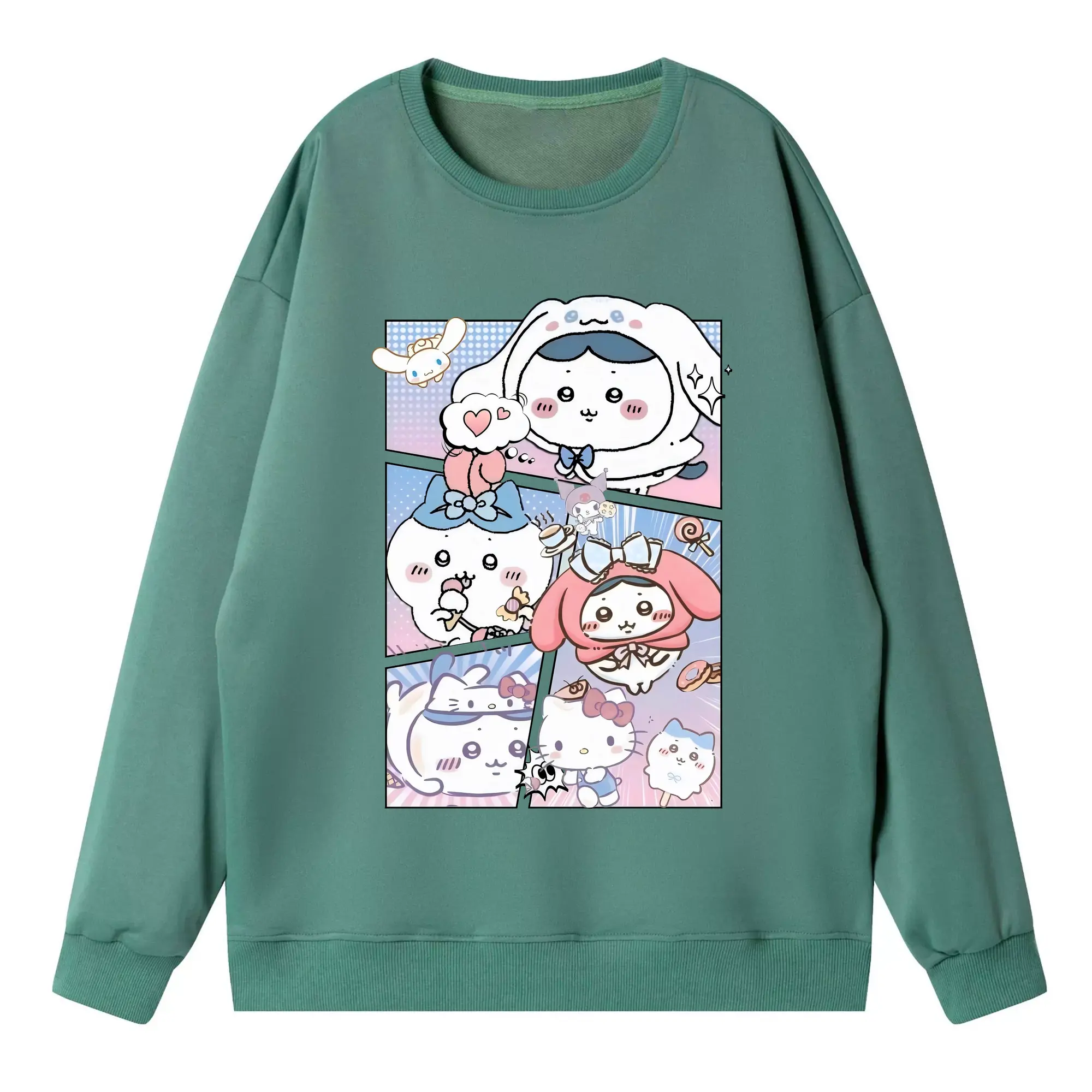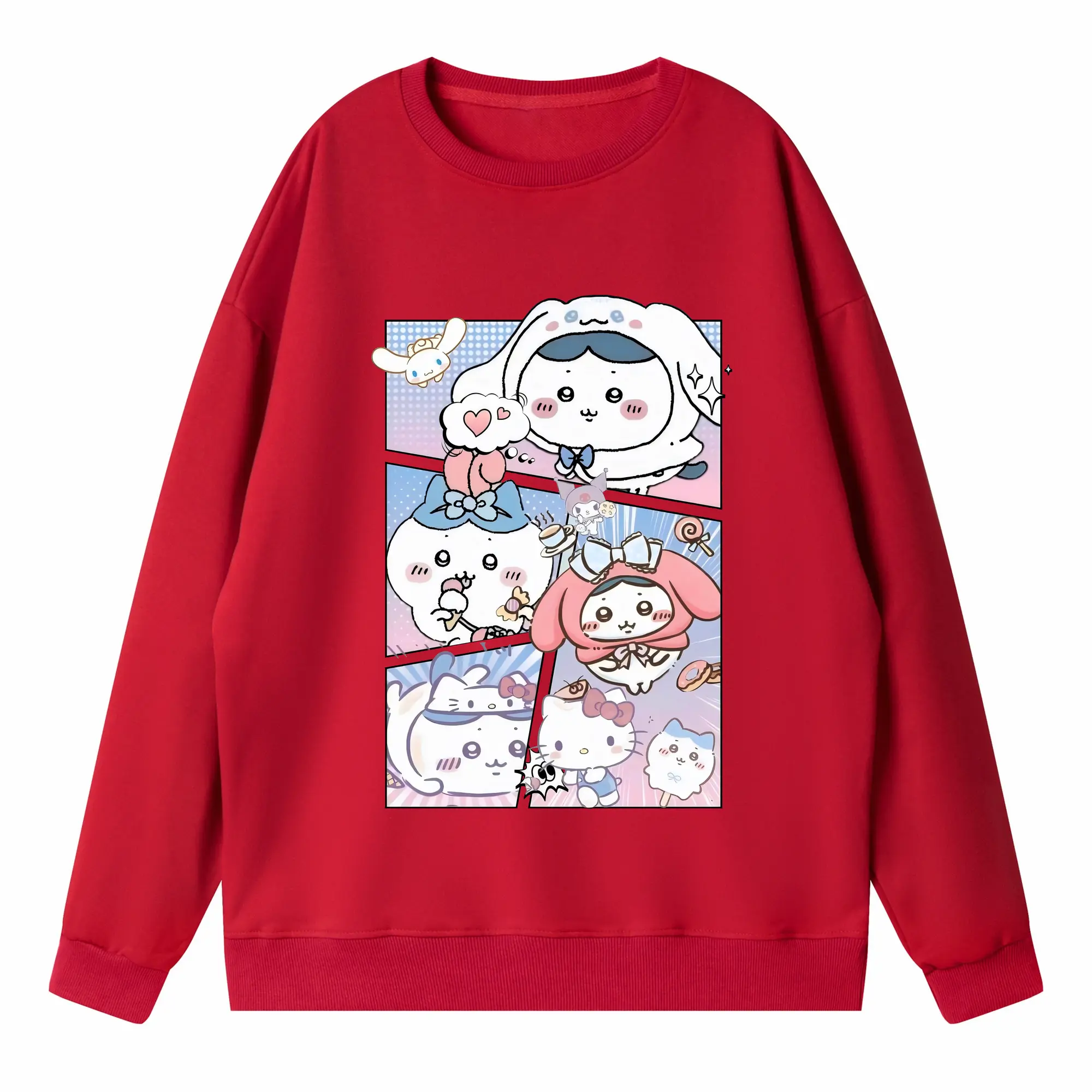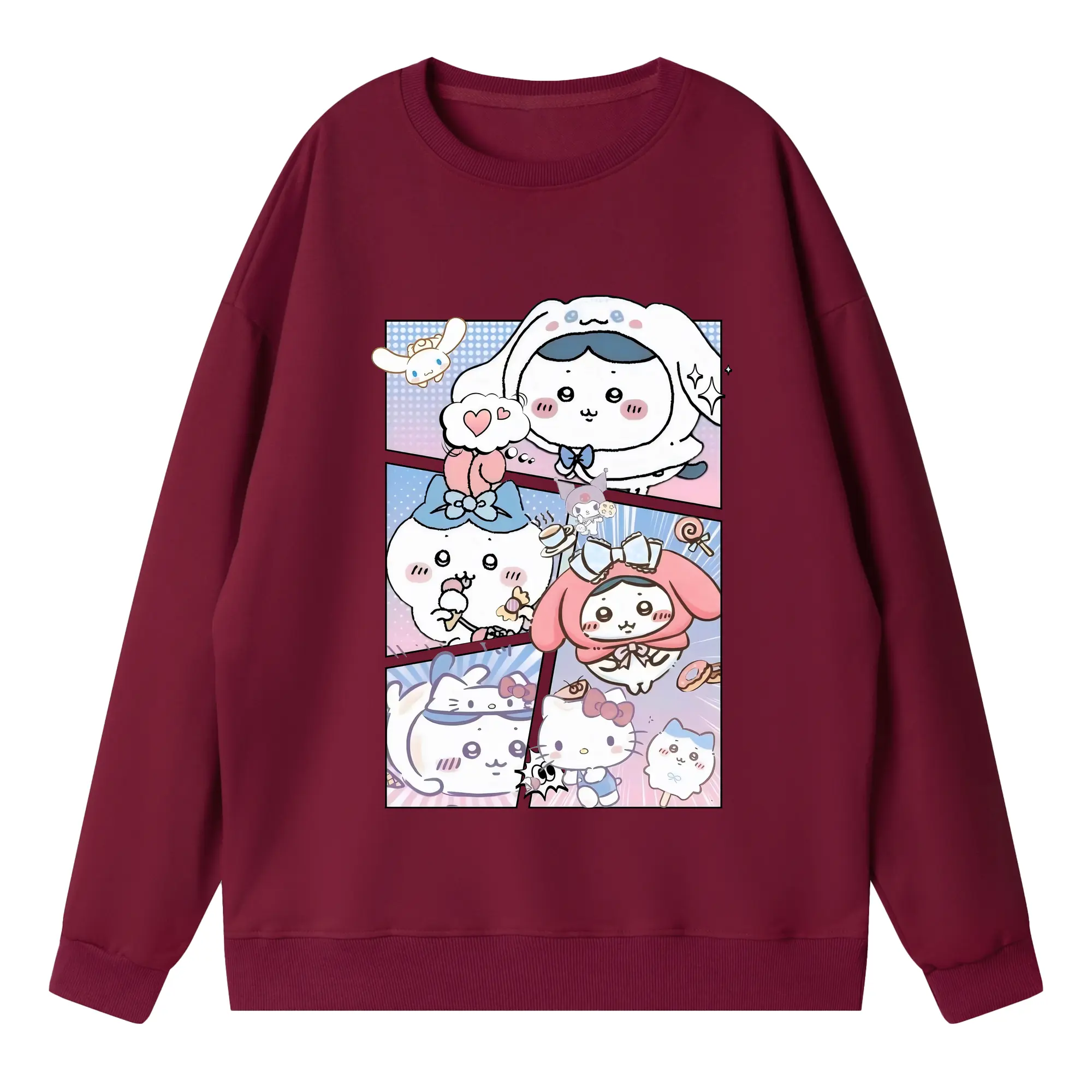ちい が わ グッズ ハチワレ - 高品質 クルーネック スウェット ・ コットン59% ポリエステル41% ・ ユニセックス 長袖 トレーナー ・ カジュアル デイリー スポーツ 散歩用